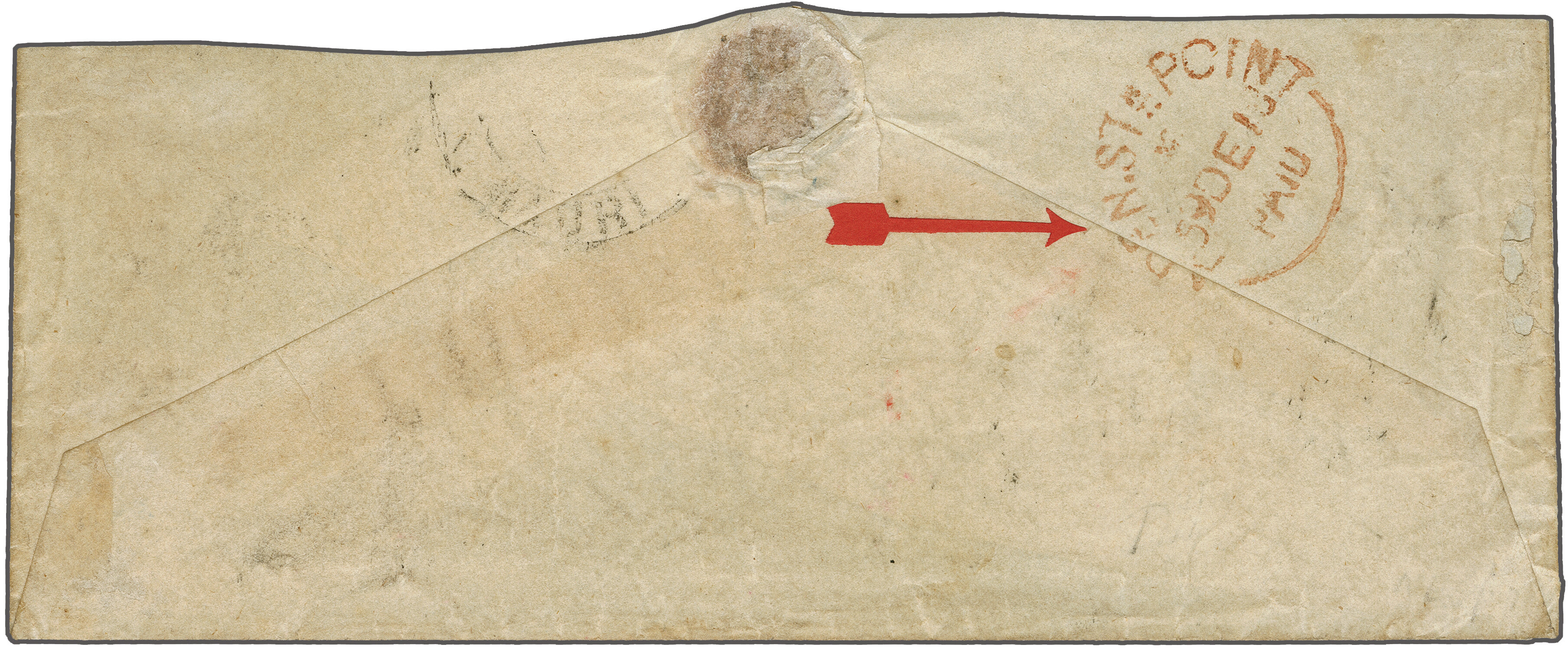 1857 (March 7): Soldier's Letter from Sgt. Wood, of the 5th Fusiliers in Mauritius and sent to Trenton, New Jersey, USA; countersigned by Commanding Officer at left. Reverse with oval framed "PACKET LETTER / MAURITIUS" and