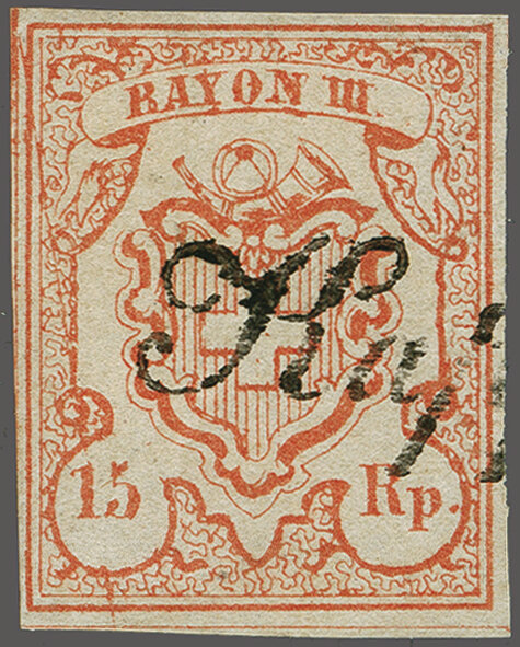 Kl. Wertziffer: Type 3, farbfr. und breit- bis überrandig, zartklar und dekorativ entw. mit Teilabschlag des schwarzen Schreibschriftstempels "[Schwar]zenegg" (AW 3311). SBK=CHF 1'000. (Image 1)