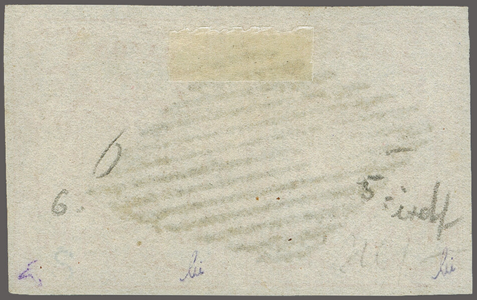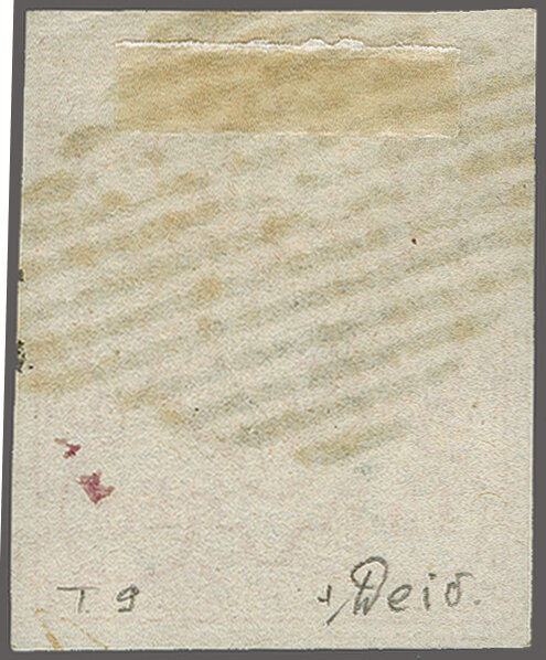 natürlicher Sandkorn-Punkt im rechten Kordelkreis, schwarze Farbspritzer rechts), ungebraucht und nachgummiert, der Entwertung entgangen. In ungebrauchter Erhaltung eine der seltensten Rayon-Marken, die minimen Einschränkungen daher zu