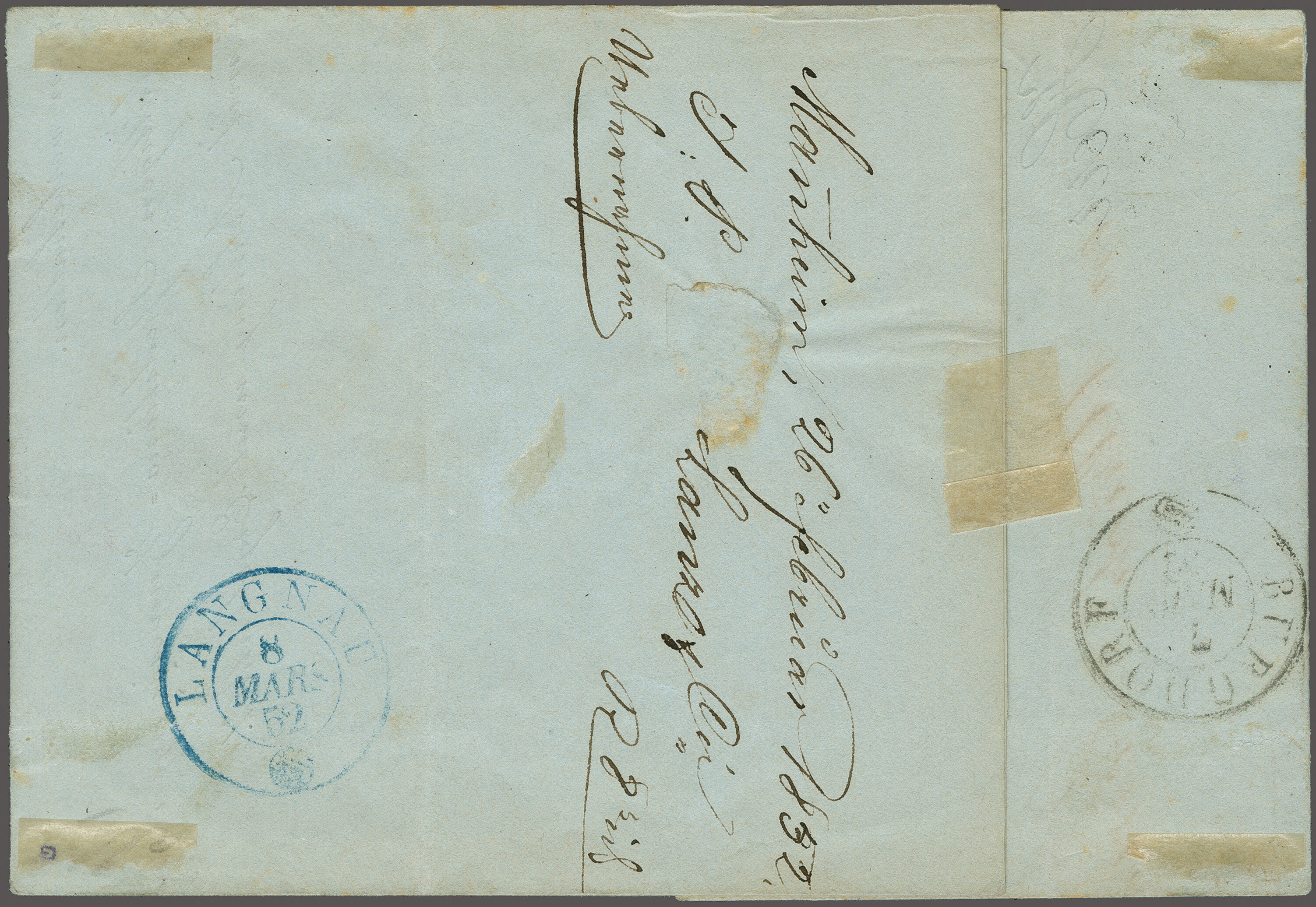 "Mannheim, den 2t. Februar 1852", auf privatem Weg nach Zürich befördert, dort zur Post gegeben und an die Käsehandelsfirma Ulrich Lehmann & Söhne in Langnau adressiert. Rücks. Transitstp. "BURGDORF" und Ankunftsstp. vom 8. März. Eine