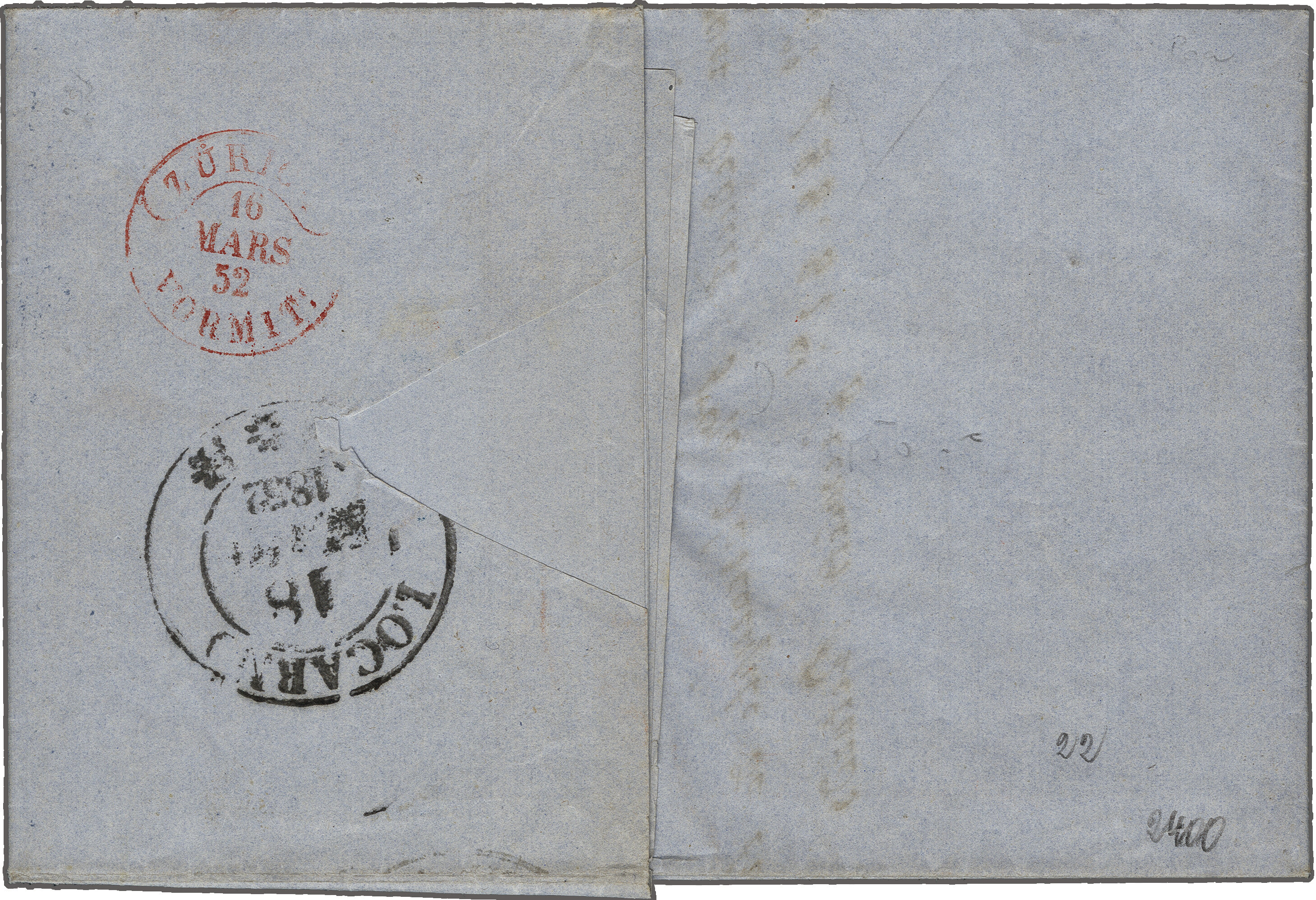 inwendiger Unterschrift "Bally frères" nach Locarno (TI). Rücks. Transitstp. "ZÜRICH 16 MARS. 52 VORMIT:" und Ankunftsstp. vom 18. März. Ein ansprechender Brief aus der Feder eines bekannten Absenders; signiert Sassone; Attest Marchand (2025).