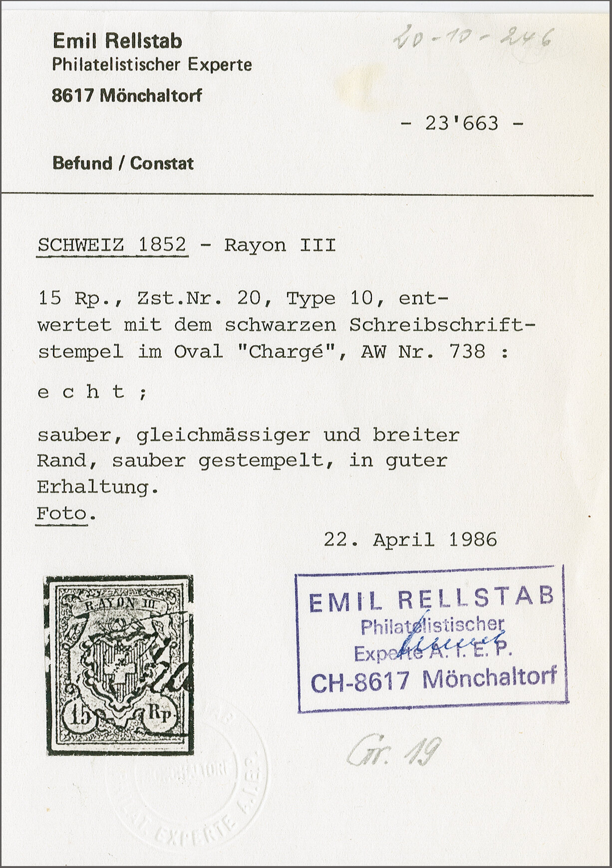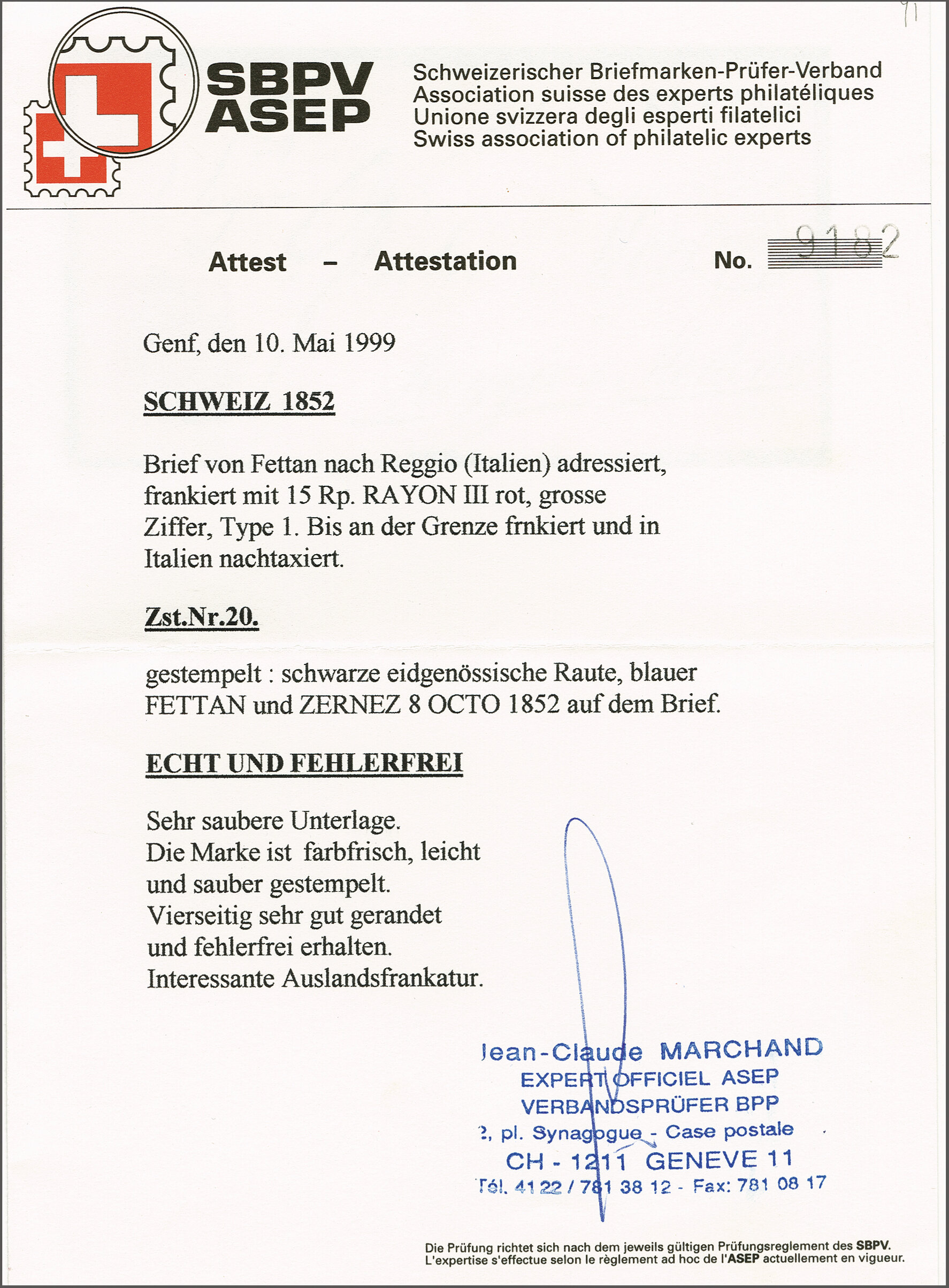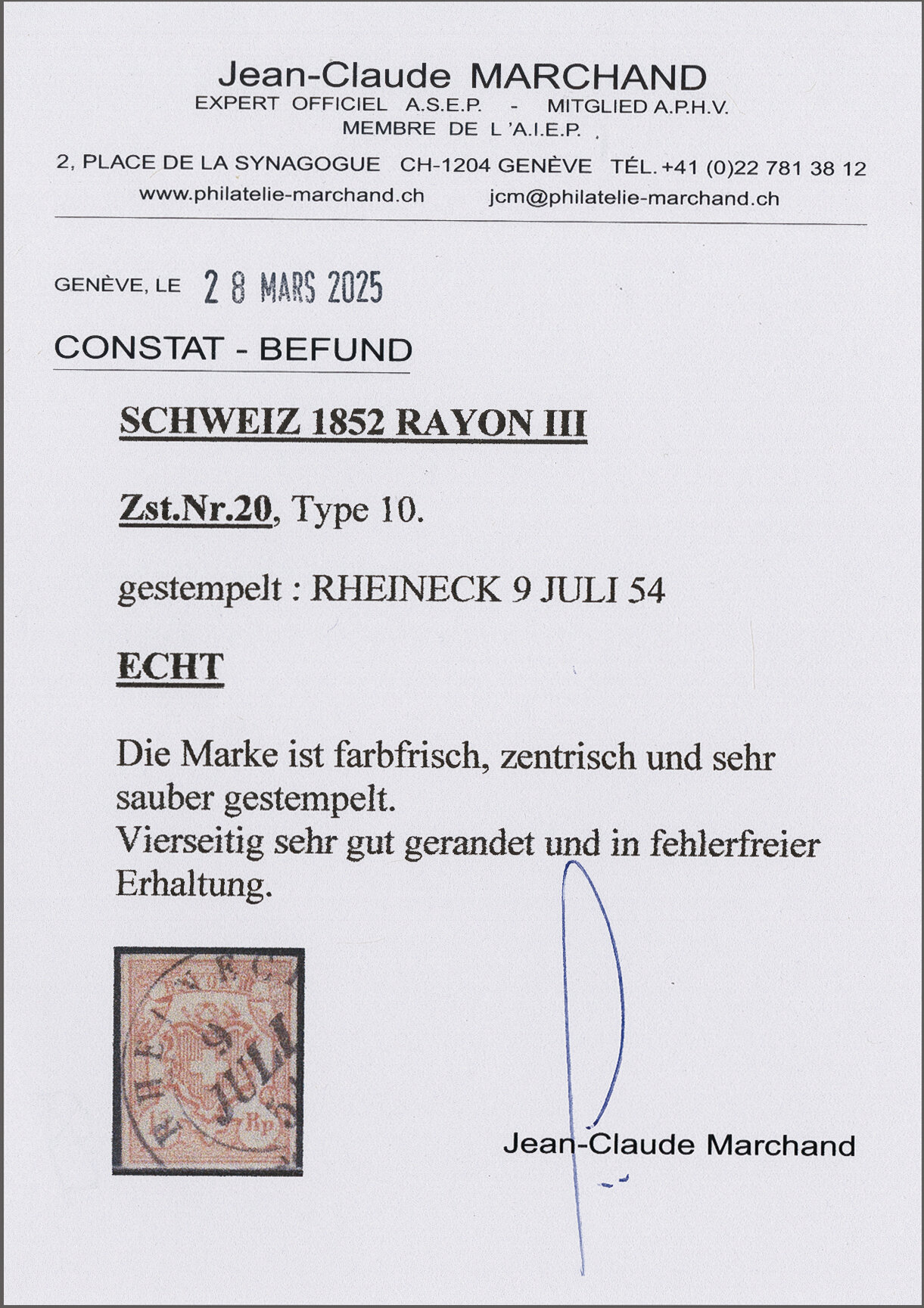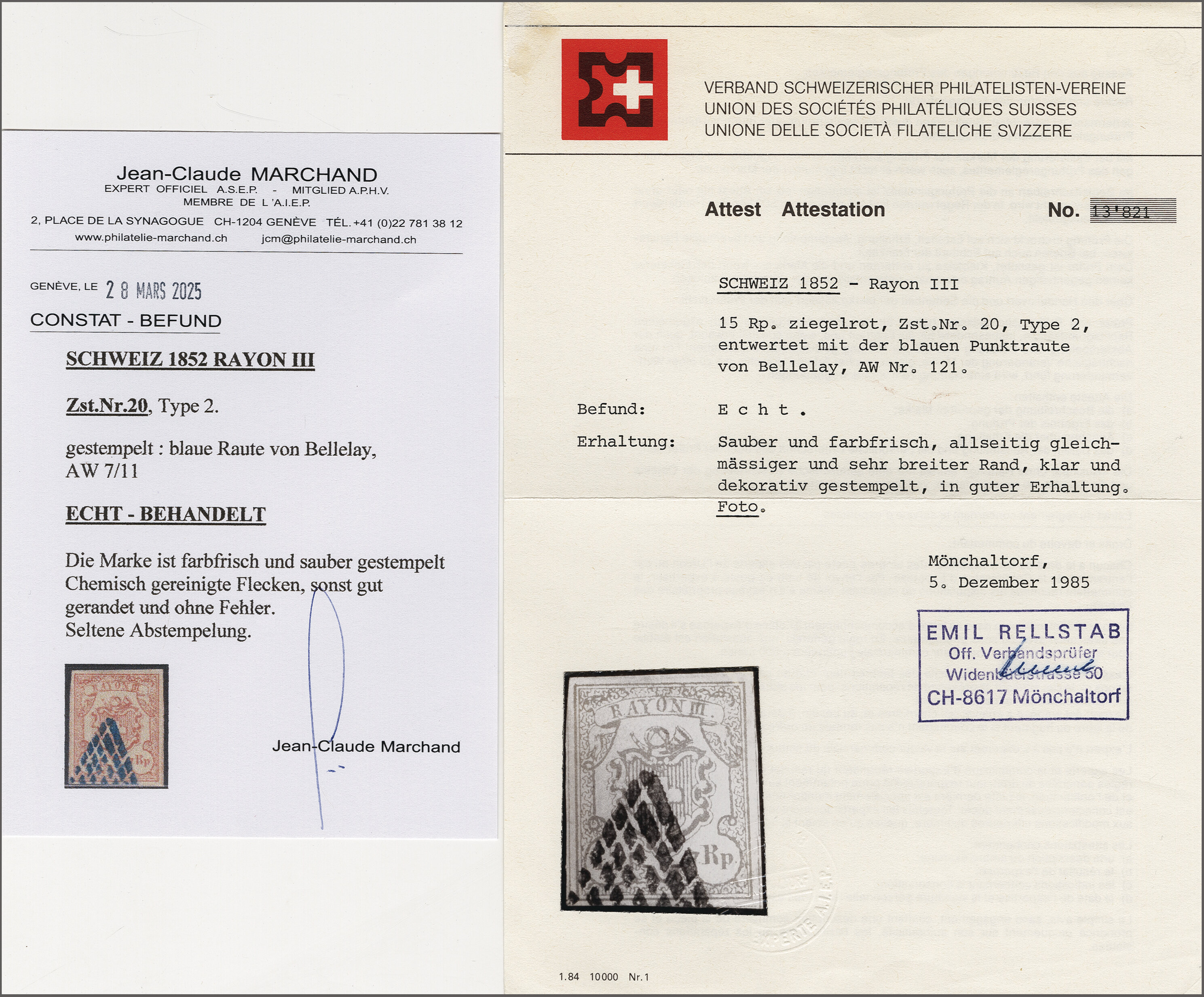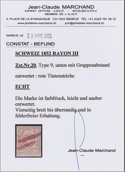 auch sehr seltene Entwertung; Atttest Rellstab (1985), Befund Marchand (2025). (Image 1)