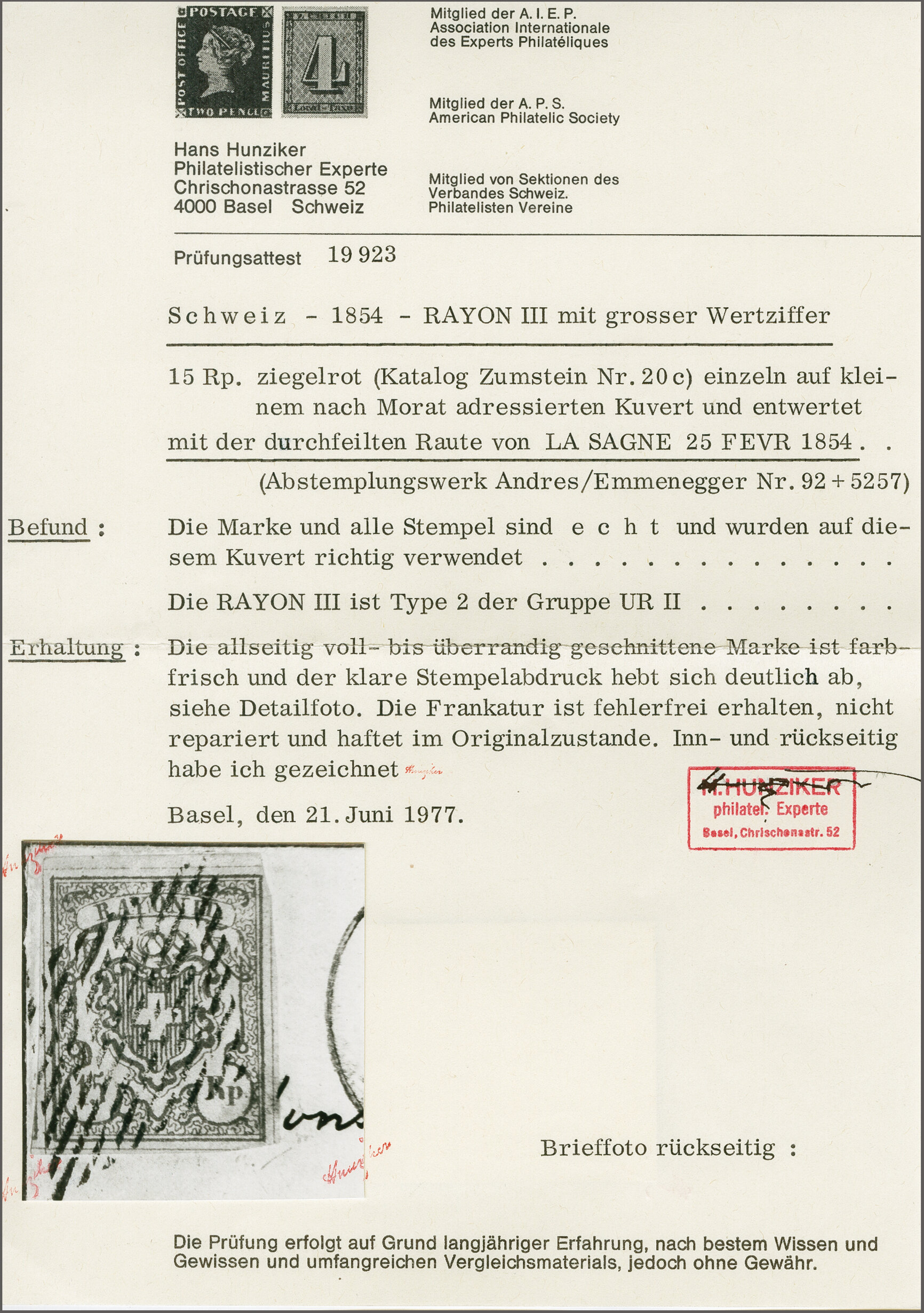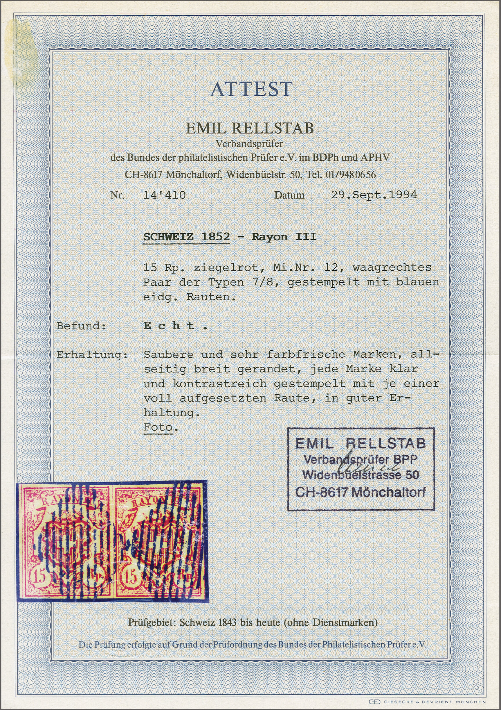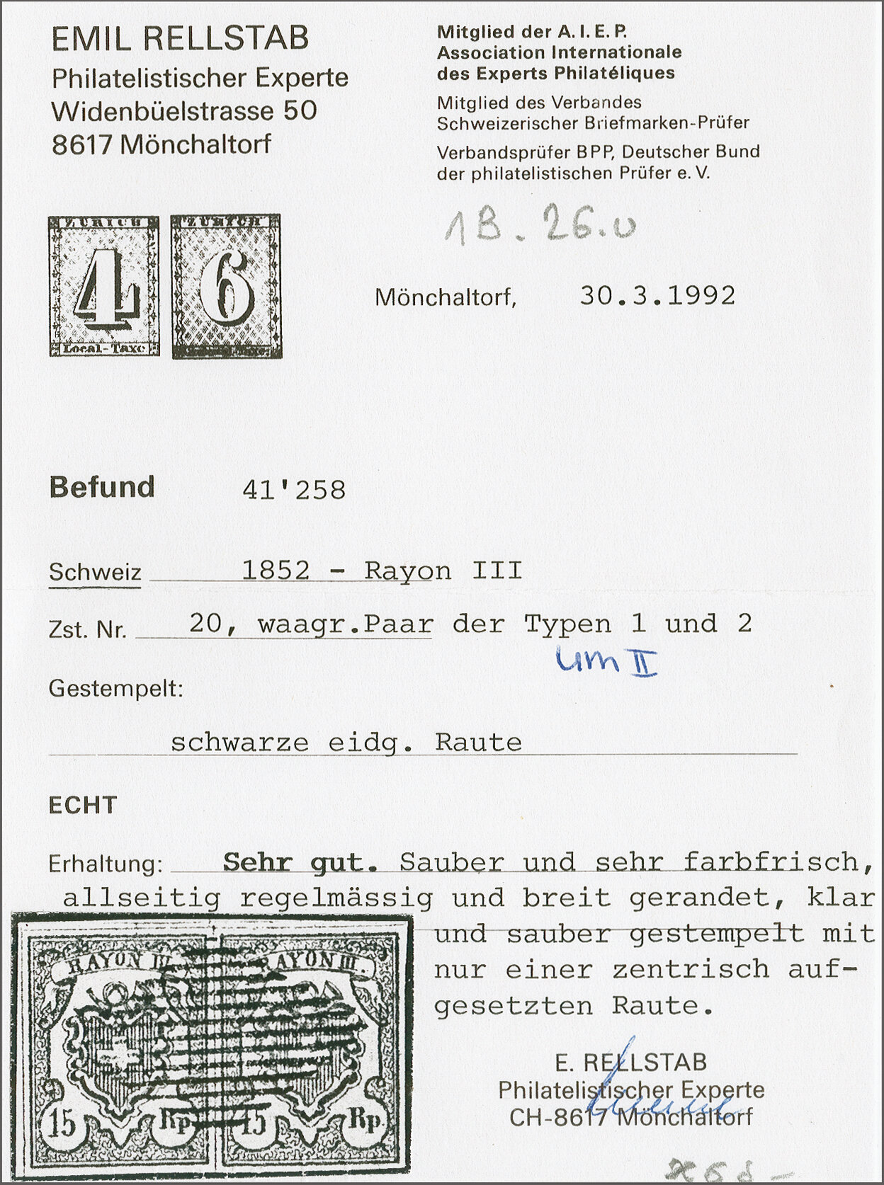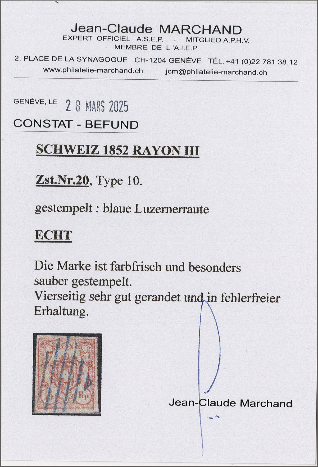 auch sehr seltene Entwertung; Atttest Rellstab (1985), Befund Marchand (2025). (Image 1)