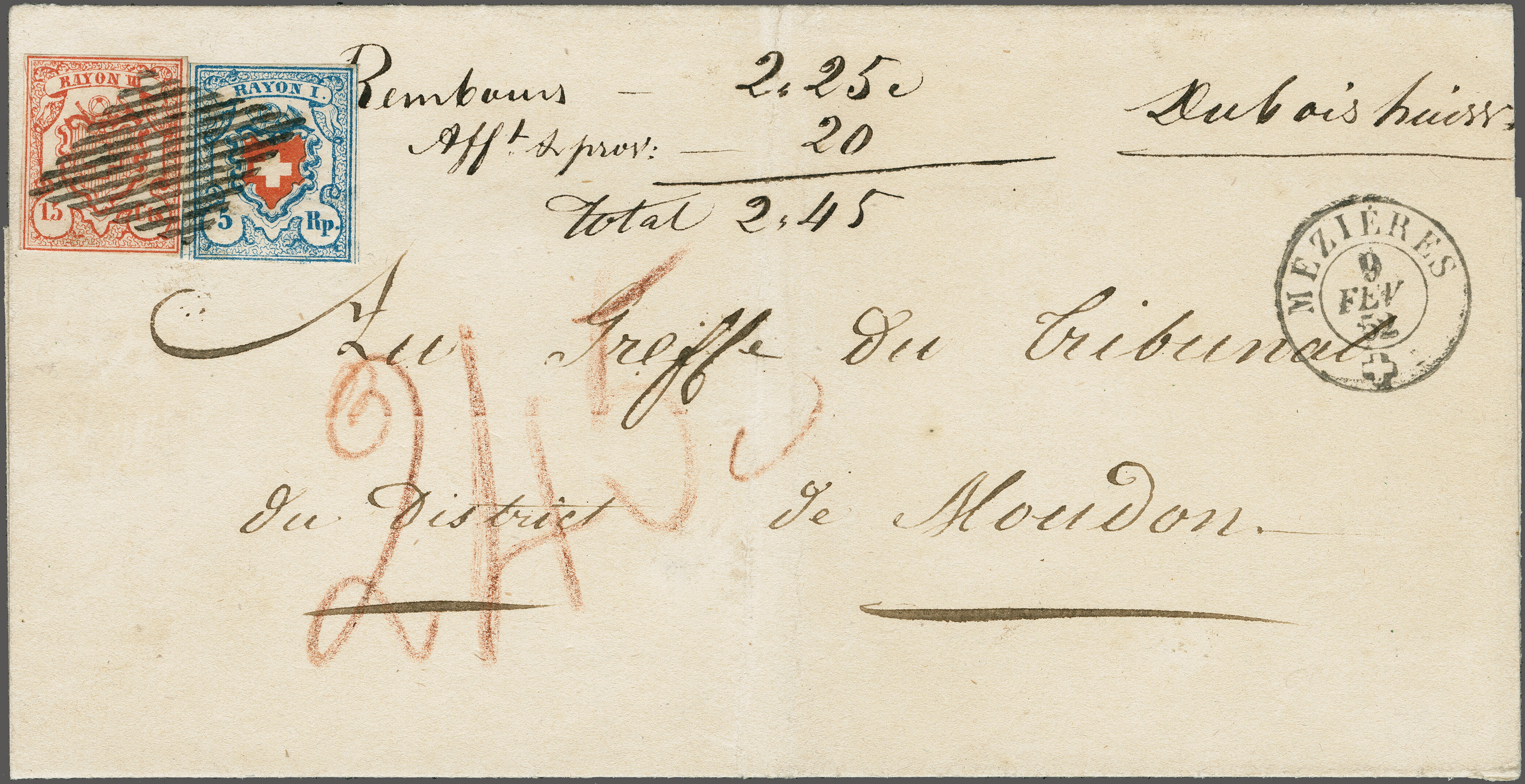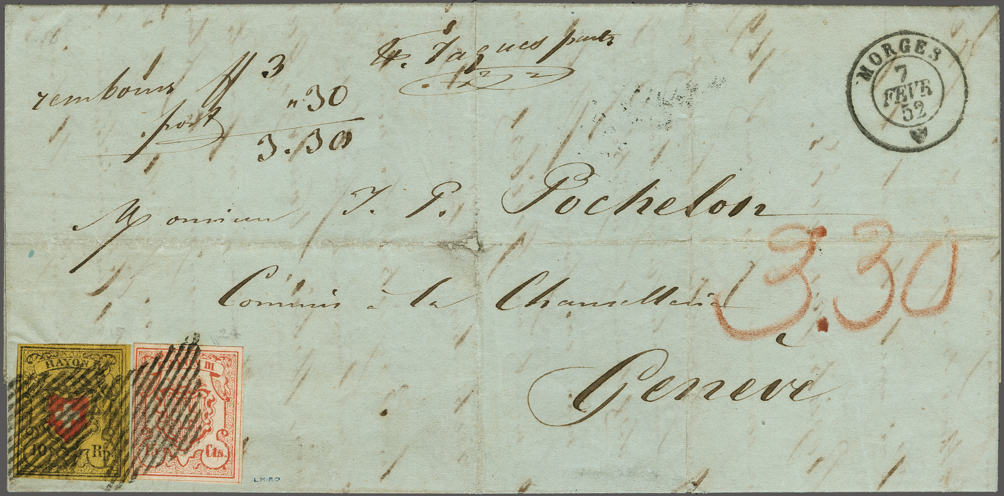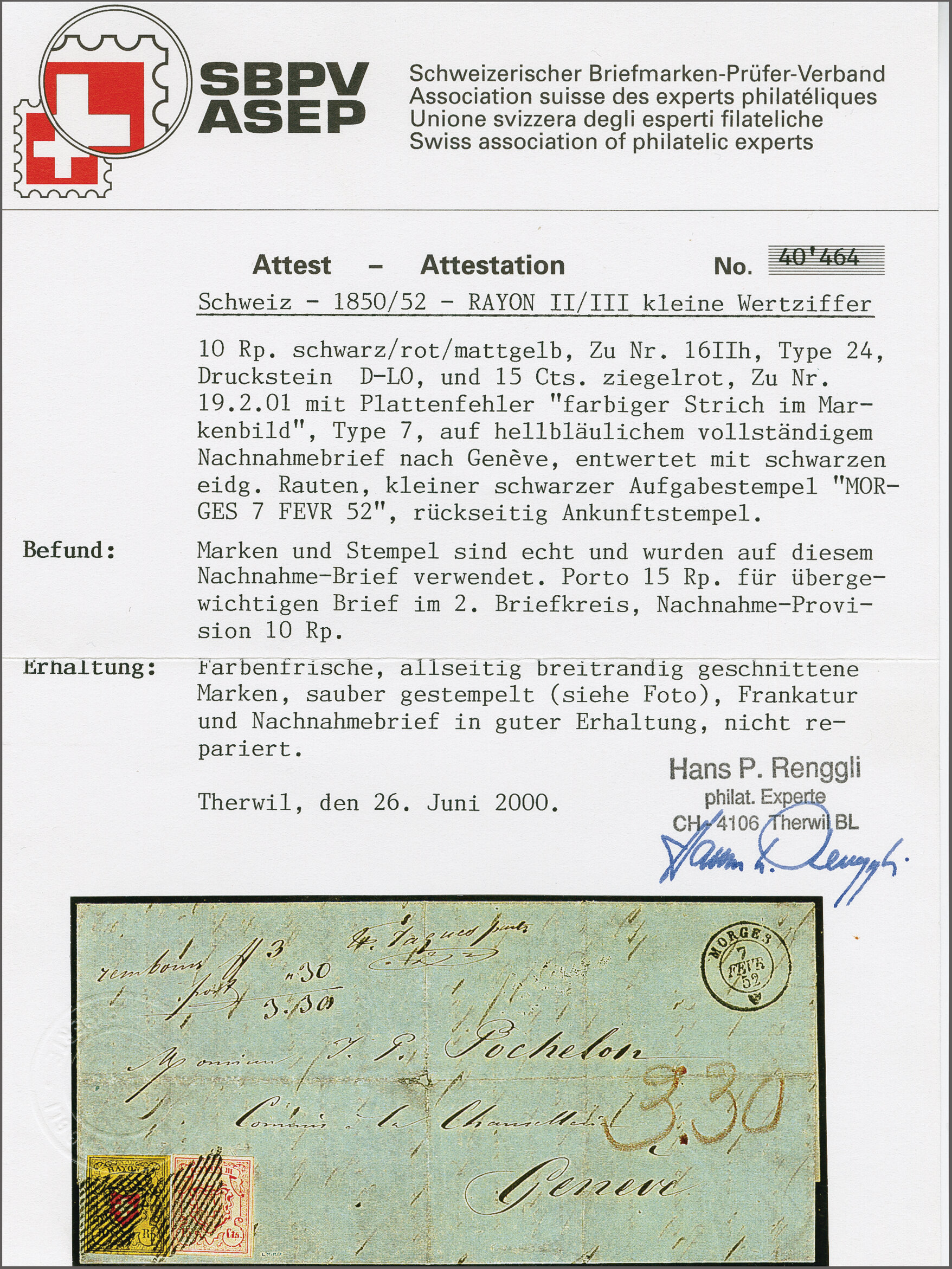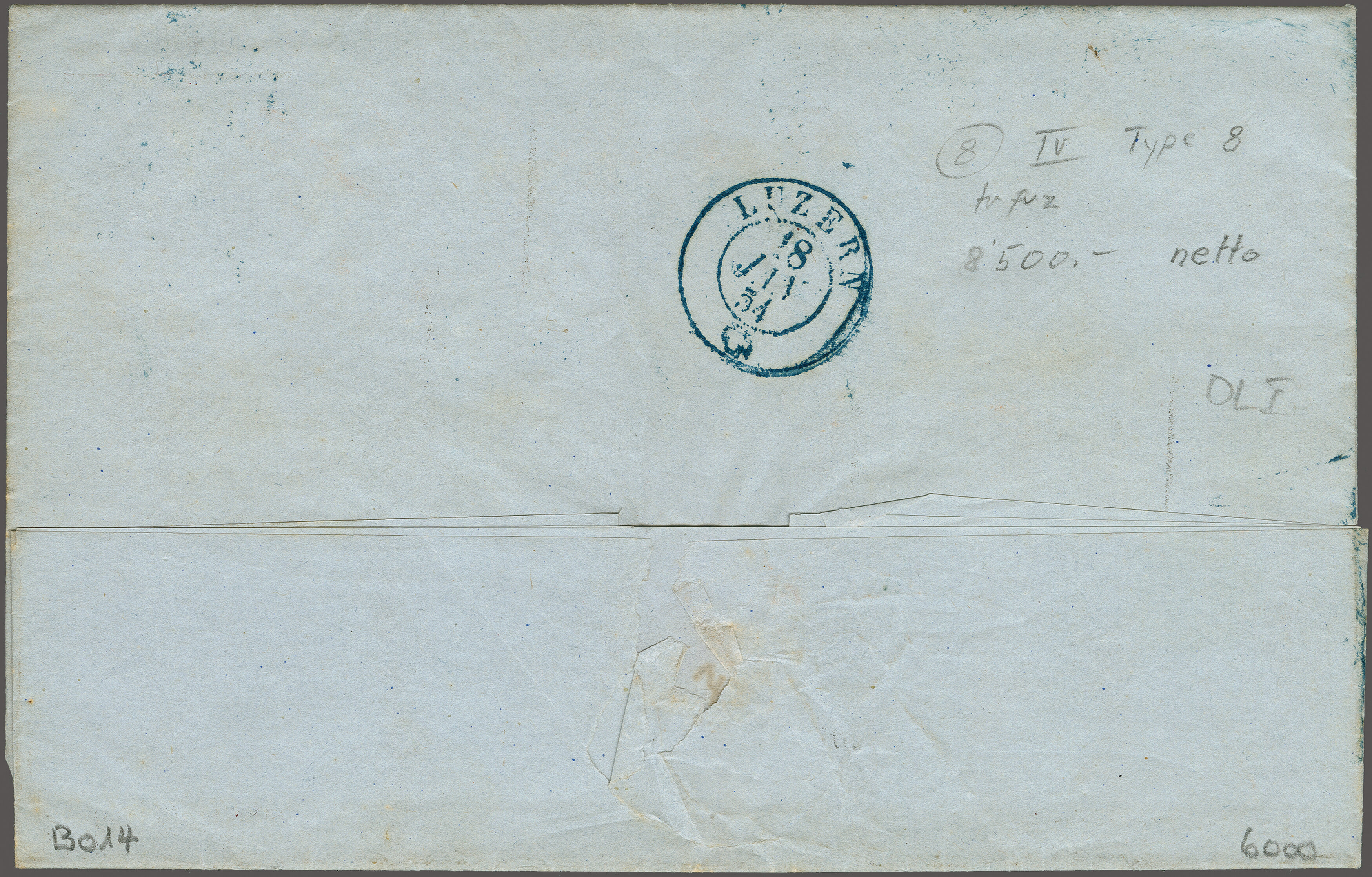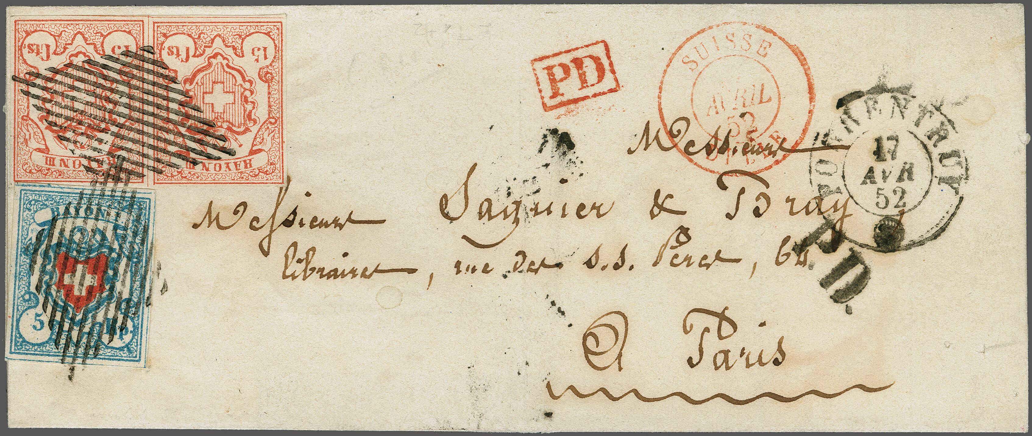 "Schweizer Auslandsfrankaturen zur Zeit der Rayon-Marken (1850-1854)", S. 107. Provenienz: Sammlung Jack Luder, 219. Corinphila-Auktion, Zürich 11. November 2017, Los 2297. (Image 1)