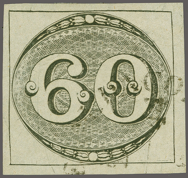 144 image60 reis grey-black, Intermediate Impression, a fine large even margined example in a translucent shade, minor bend, showing the horizontal marginal line at top, cancelled by fine circular "CORREIO DE CAMPINAS" handstamp (Ayres fig. 1564) in brown. Superb. Provenance: Collection Dr. Hugo Goeggel, Corinphila sale 178, Feb 2013, lot 4079. (Image 1) (Image 2)