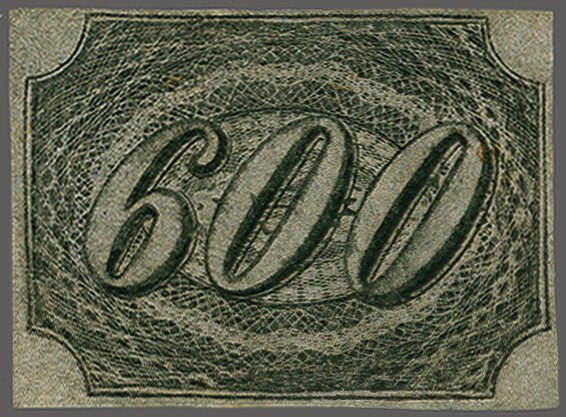 156 image1844: Inclinado 600 r. black, fine used example with good to large margins all round, lightly cancelled in black. A charming example of a very rare stamp. Cert. Philatelic Foundation 2025 Scott = $ 2'200. (Image 1) (Image 2) (Image 3)