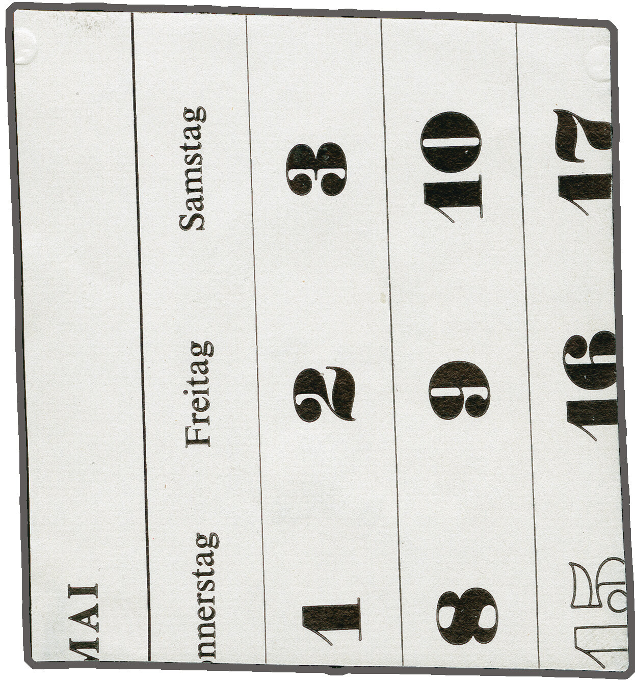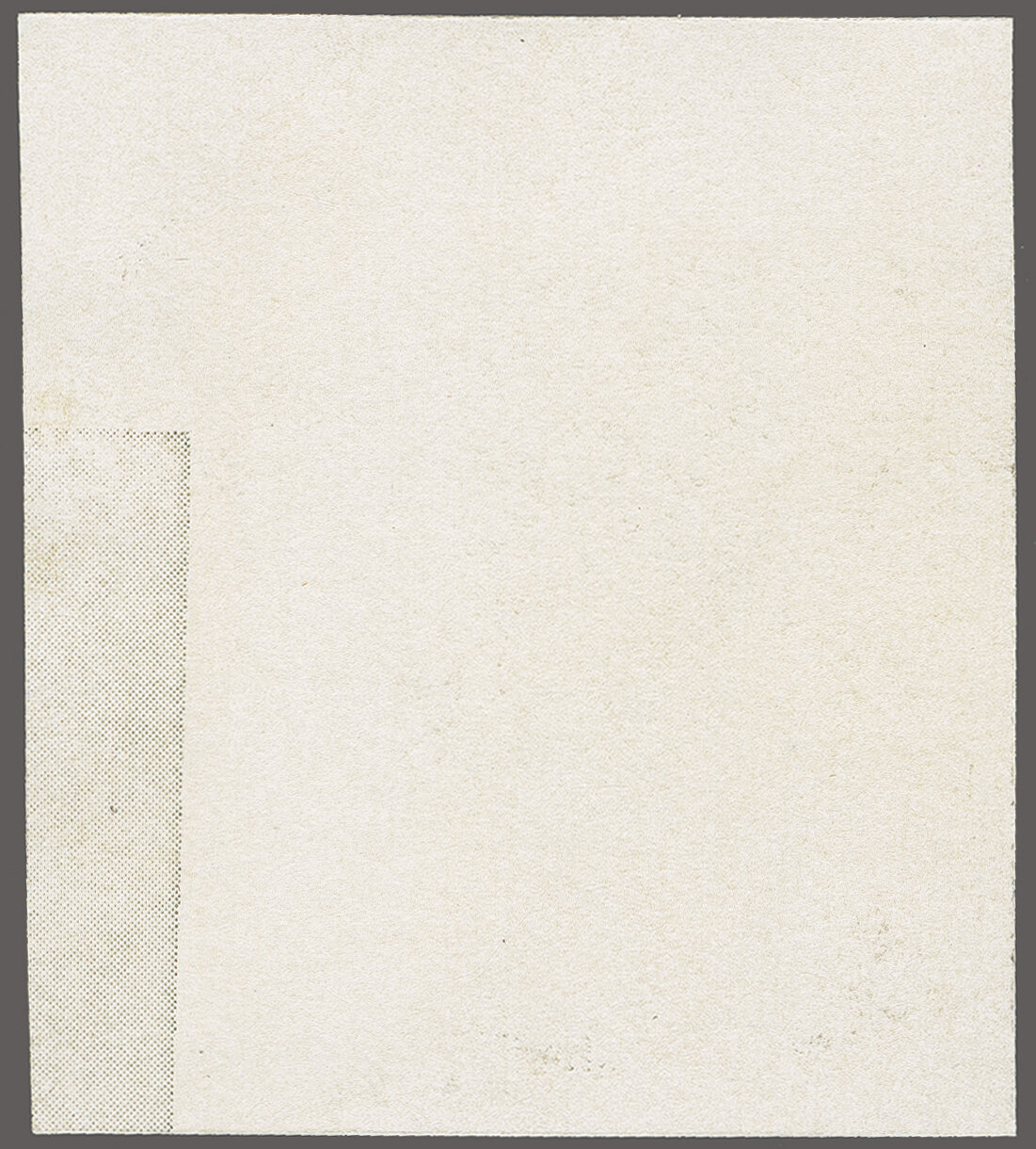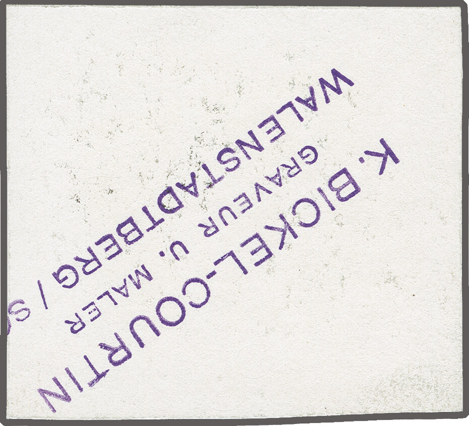 bedrucktem Ausschusspapier ohne Gummierung (50x54mm). Oben zwei Prägestellen zur Befestigung sowie rechts unten handschriftl. Versionsnummer "VIII" in rotem Kugelschreiber. Eine seltene Probe aus dem Bickel-Archiv. (Image 1)
