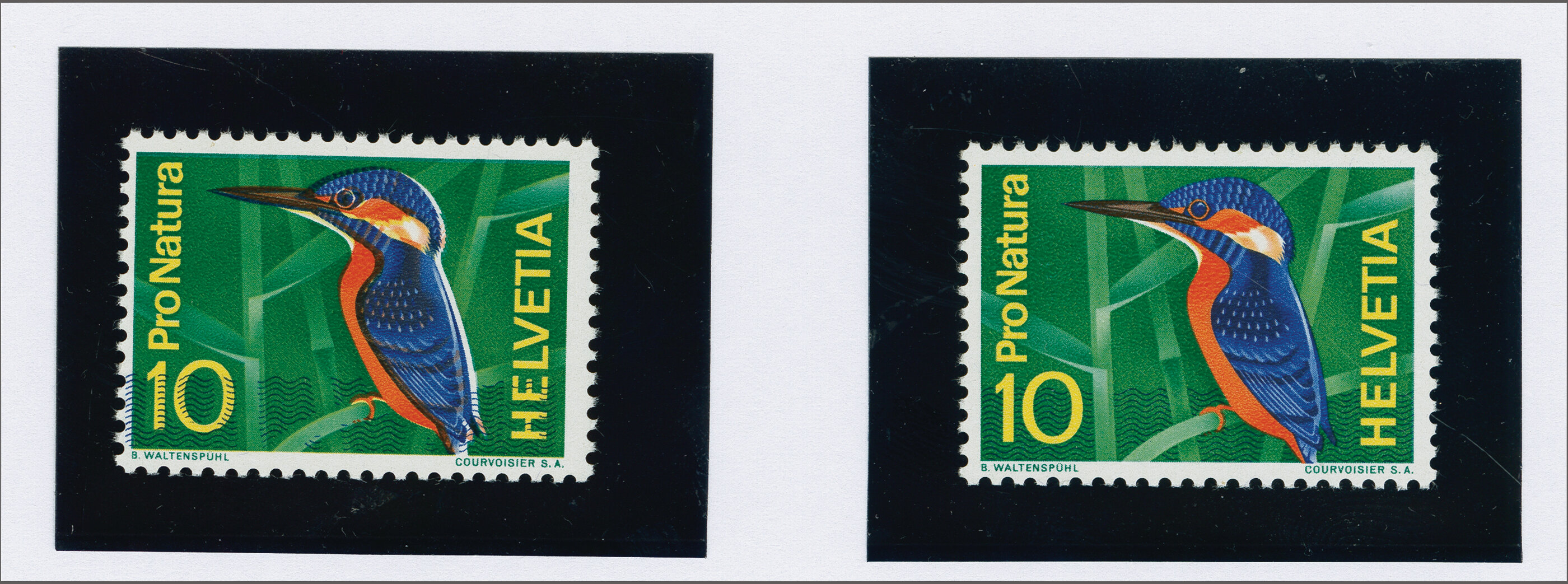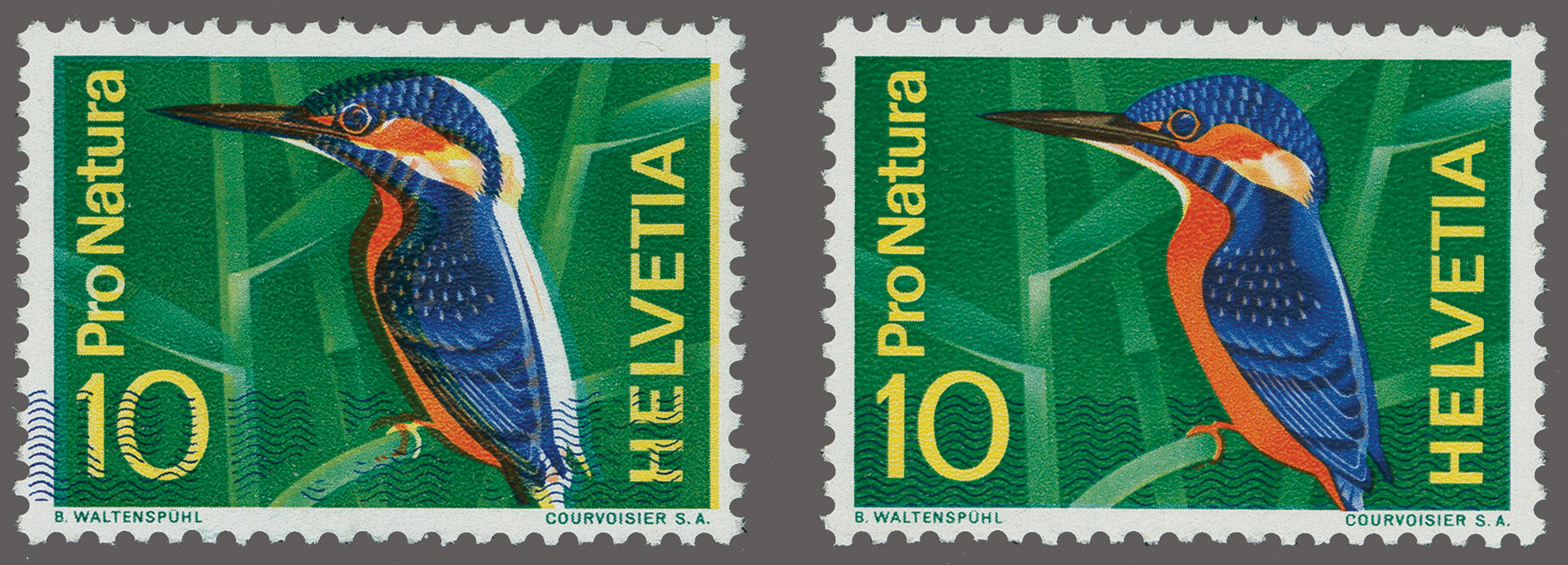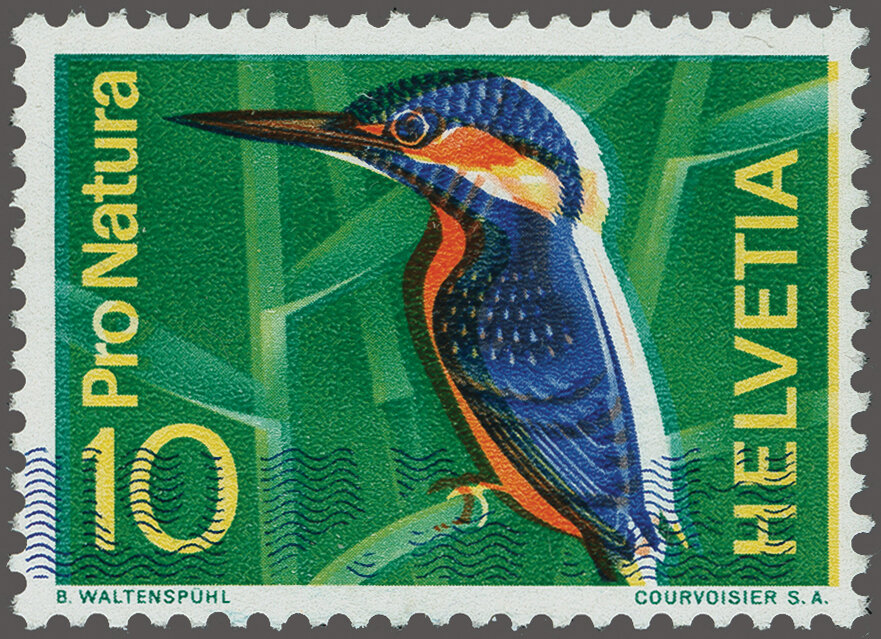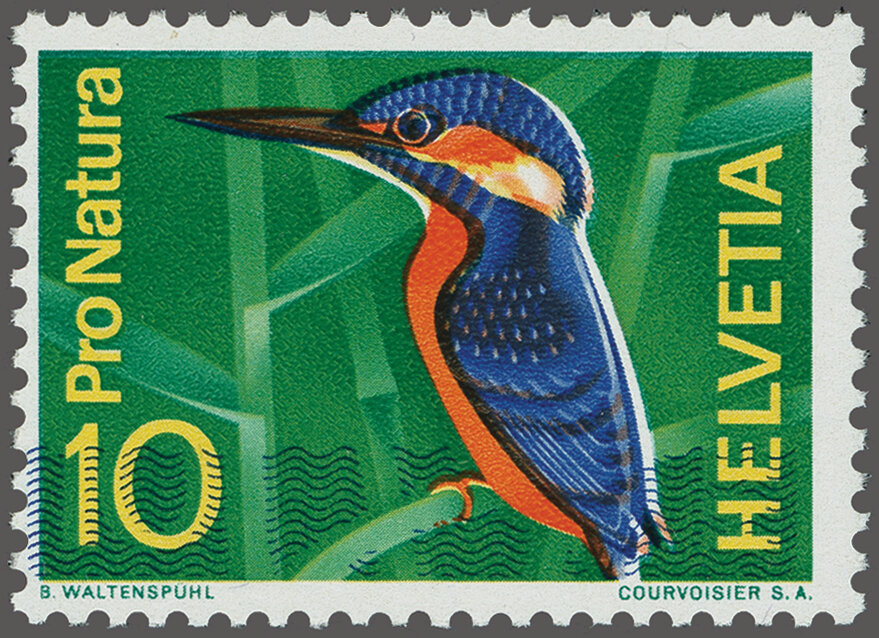 1966: "Eisvogel im Schneepelz" mit starker Verschiebung der blauen Druckfarbe, gut gez., postfrisch und fehlerfrei. Attest Renggli (1995). SBK=CHF 1'200. (Image 1)