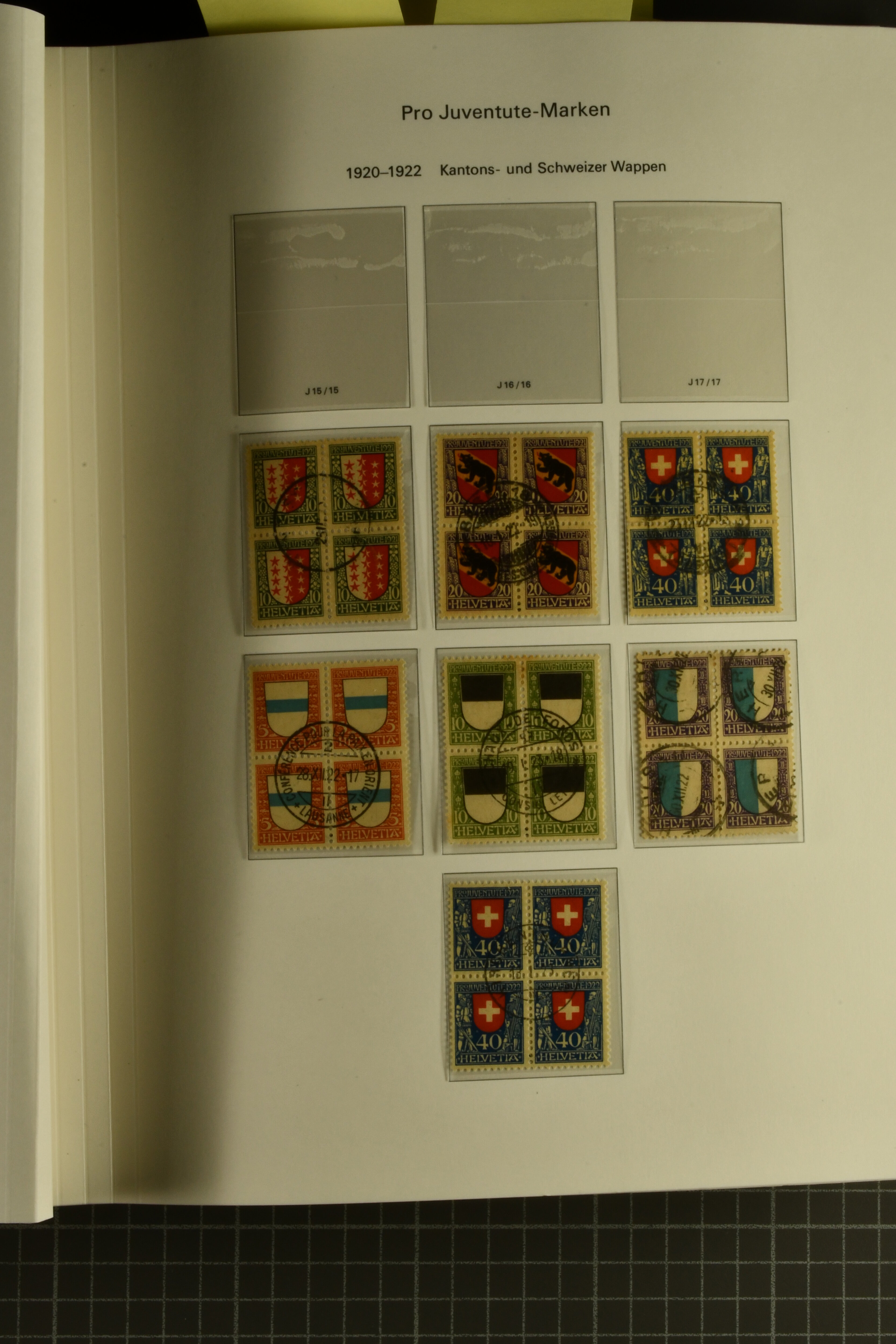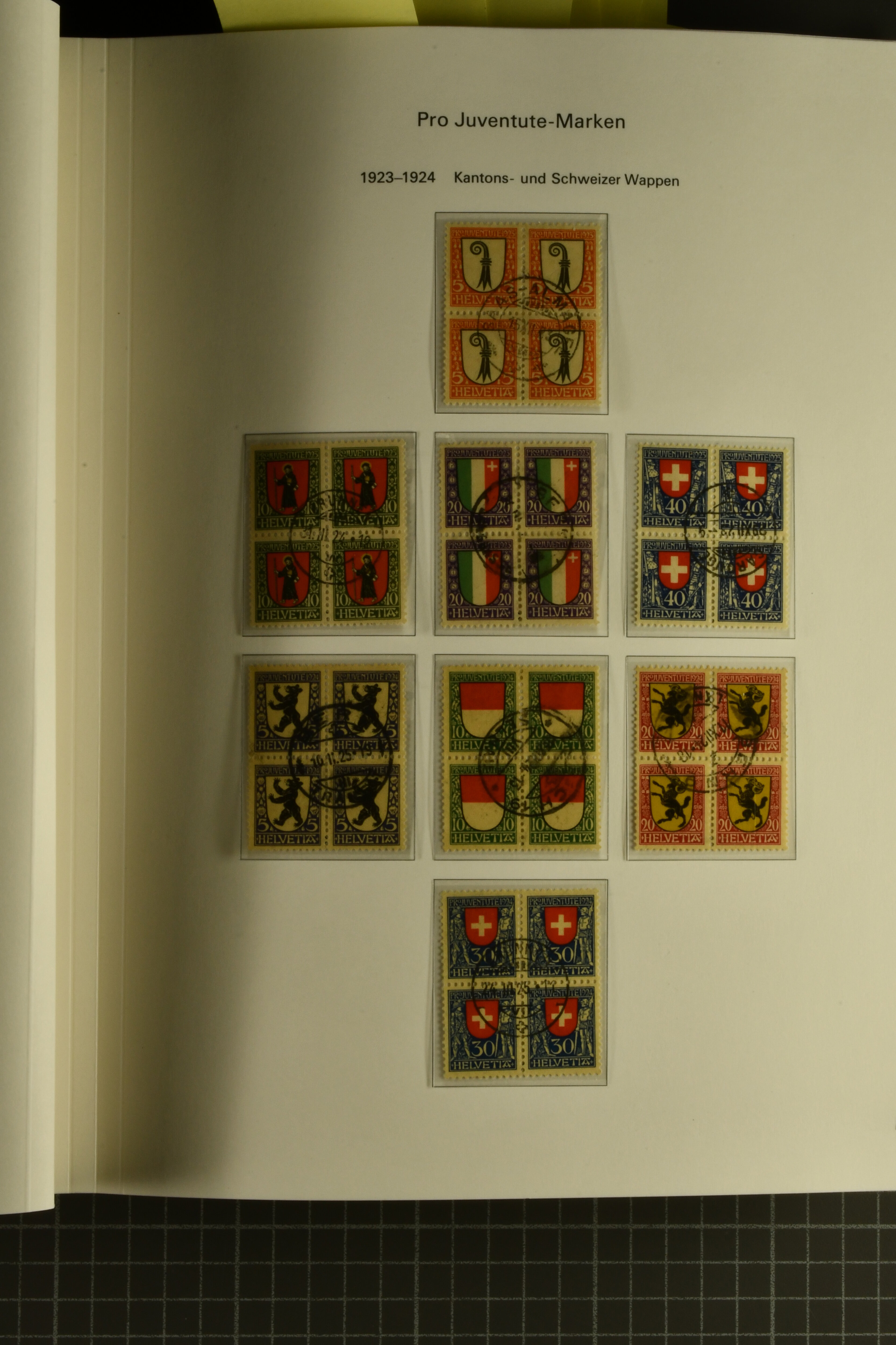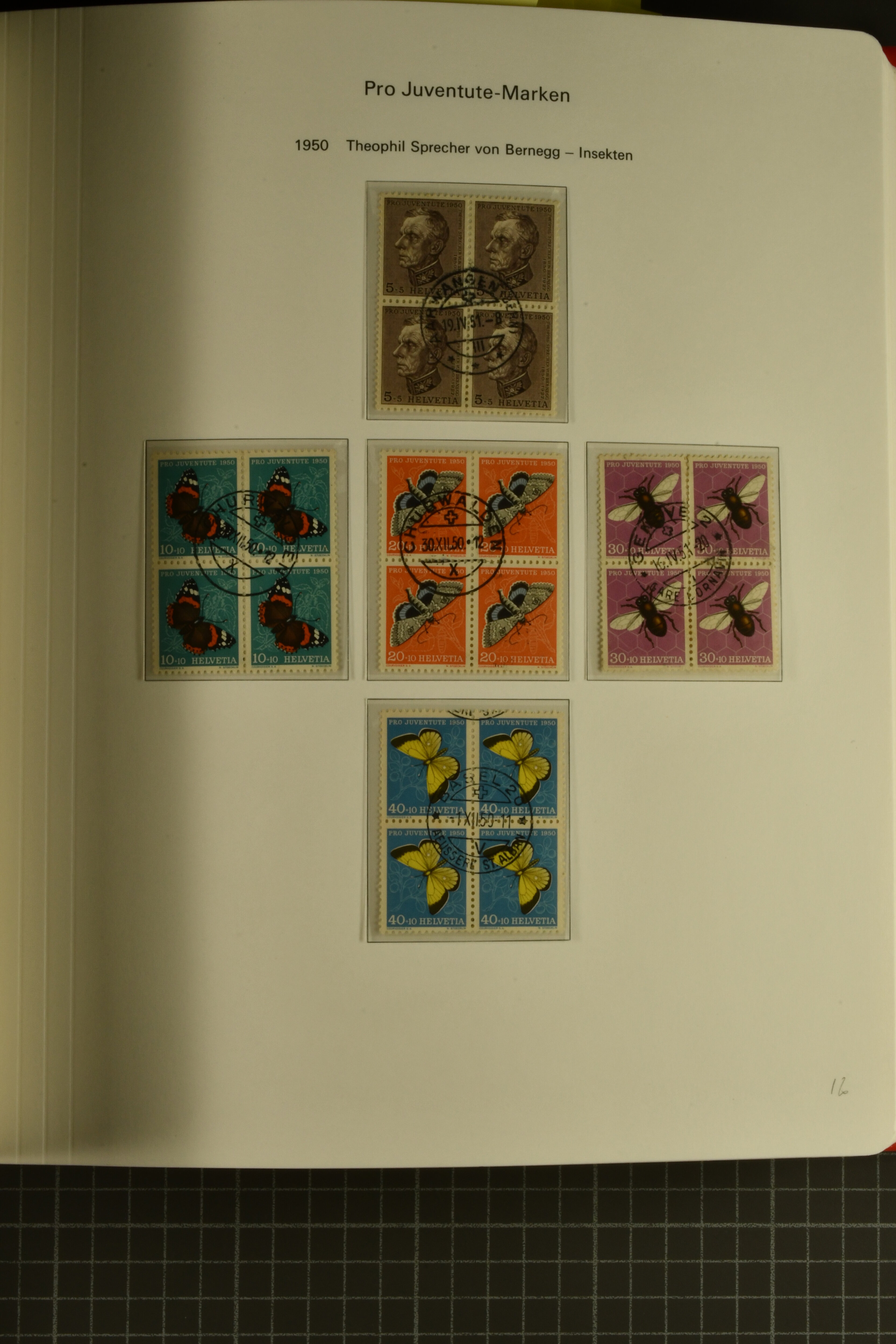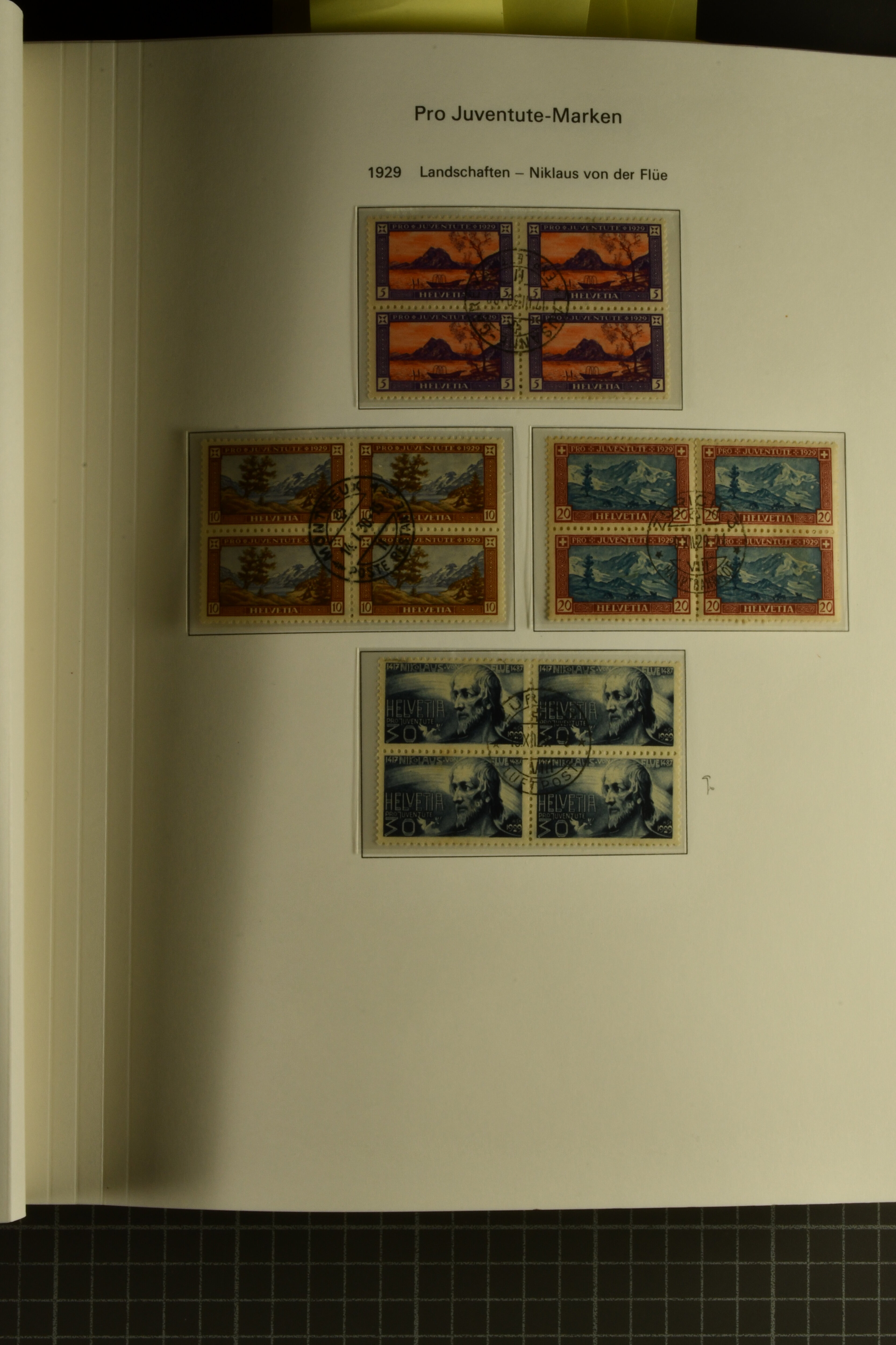1913/83: Viererblock-Sammlung im Müller-Vordruckalbum, Pro Juventute 1917-81 und Pro Patria 1938-83 gestempelt, zumeist gut erhalten, wenige Lücken. SBK = ca. CHF 11'000+. (Image 1)