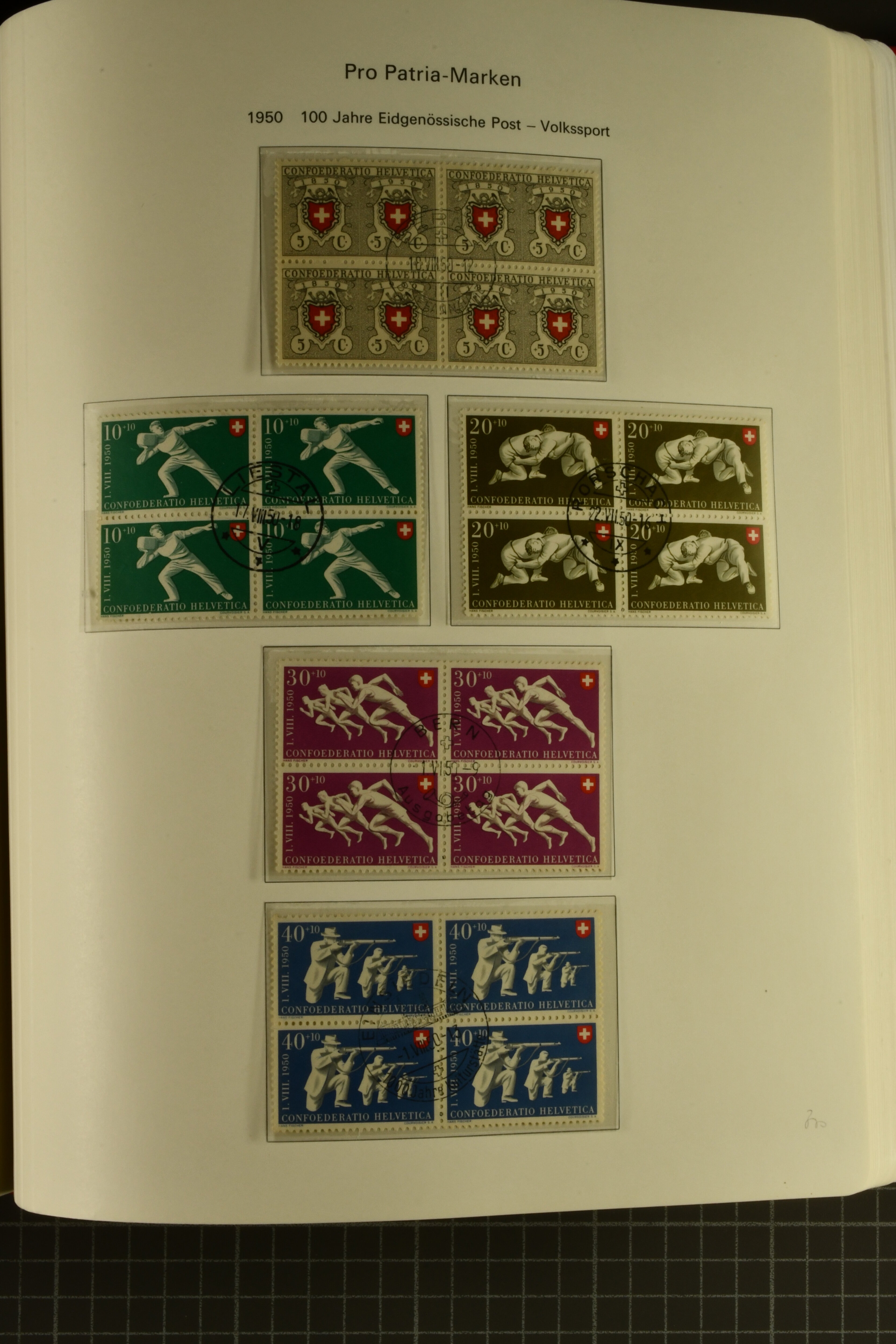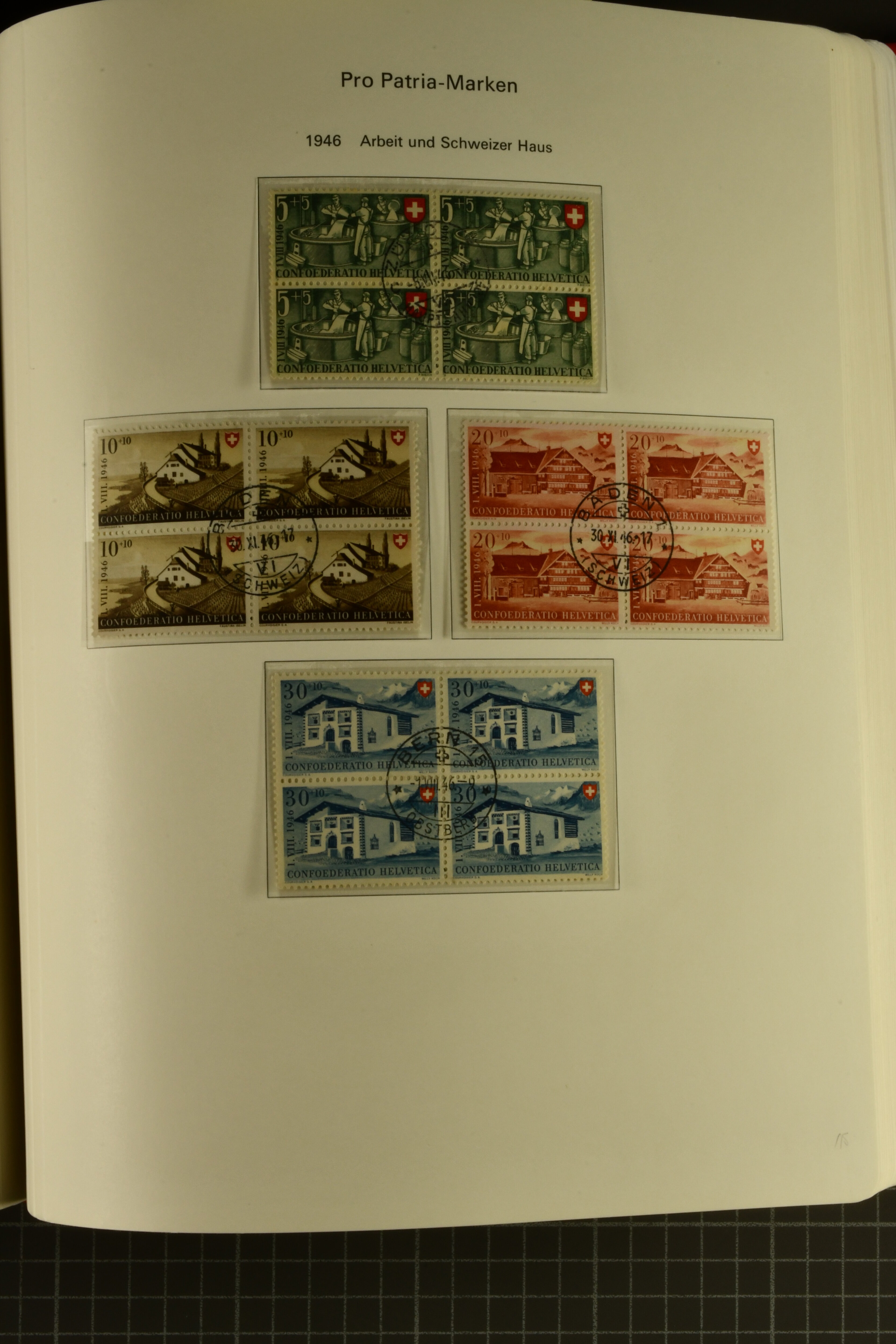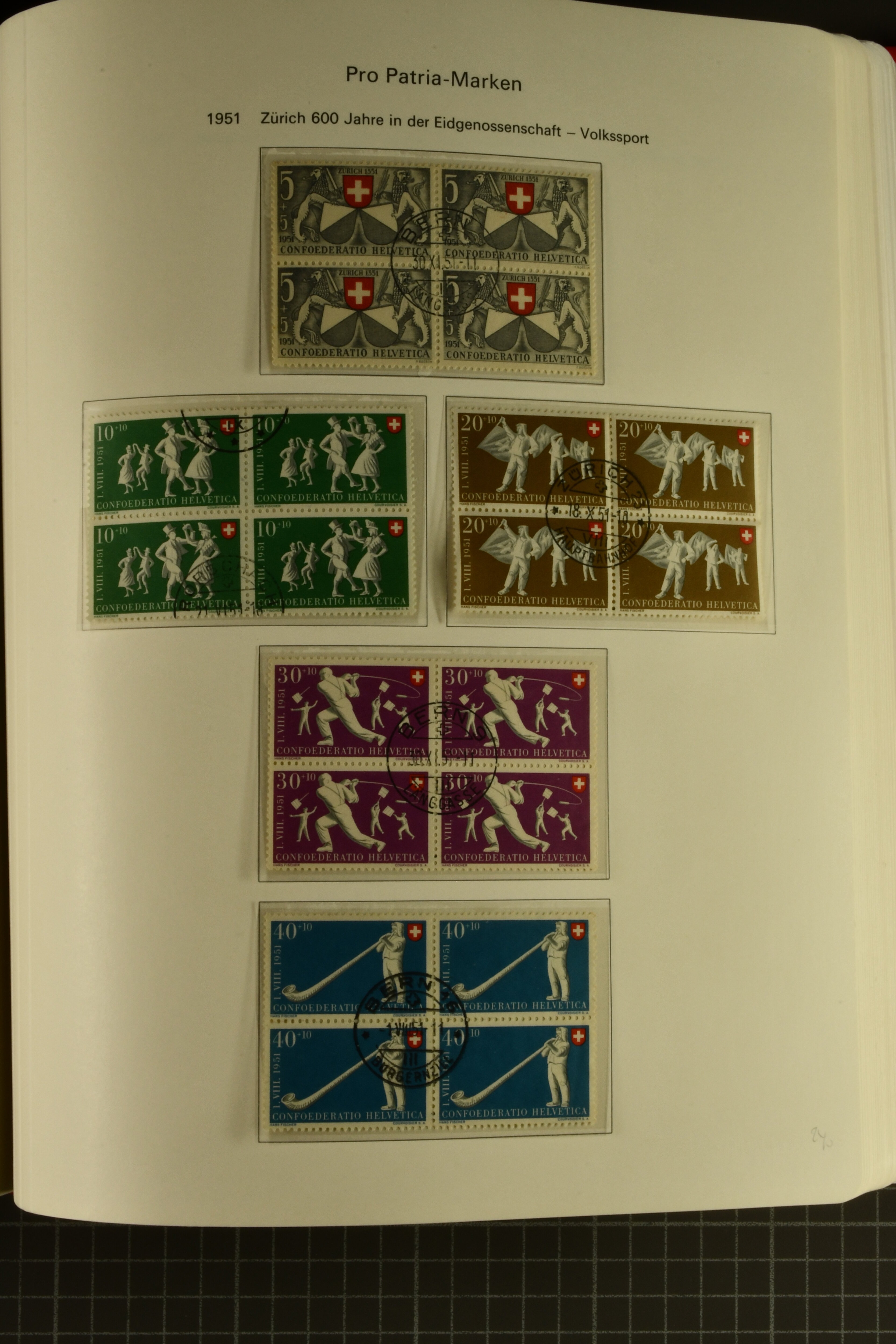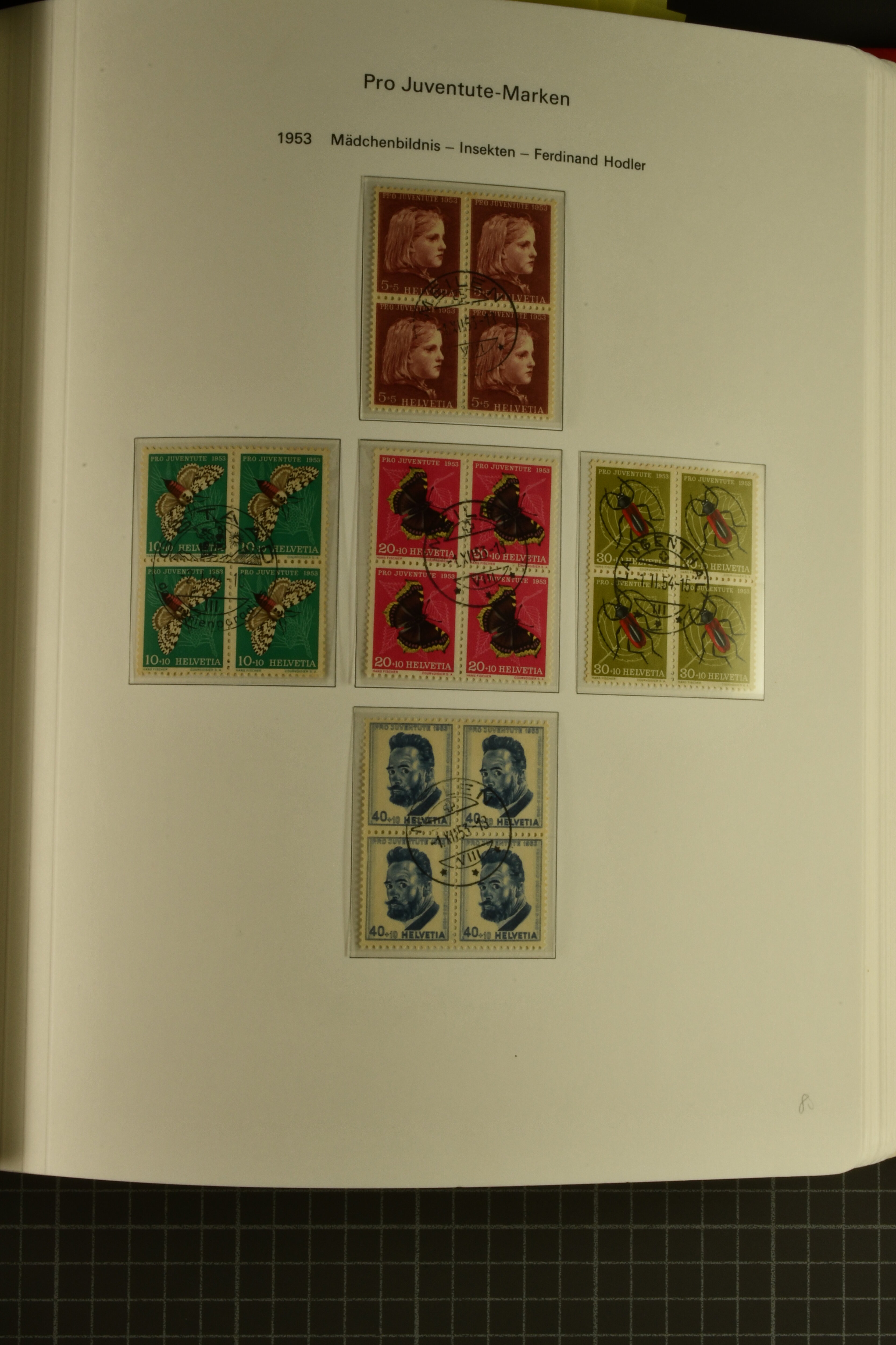 1913/83: Viererblock-Sammlung im Müller-Vordruckalbum, Pro Juventute 1917-81 und Pro Patria 1938-83 gestempelt, zumeist gut erhalten, wenige Lücken. SBK = ca. CHF 11'000+. (Image 1)