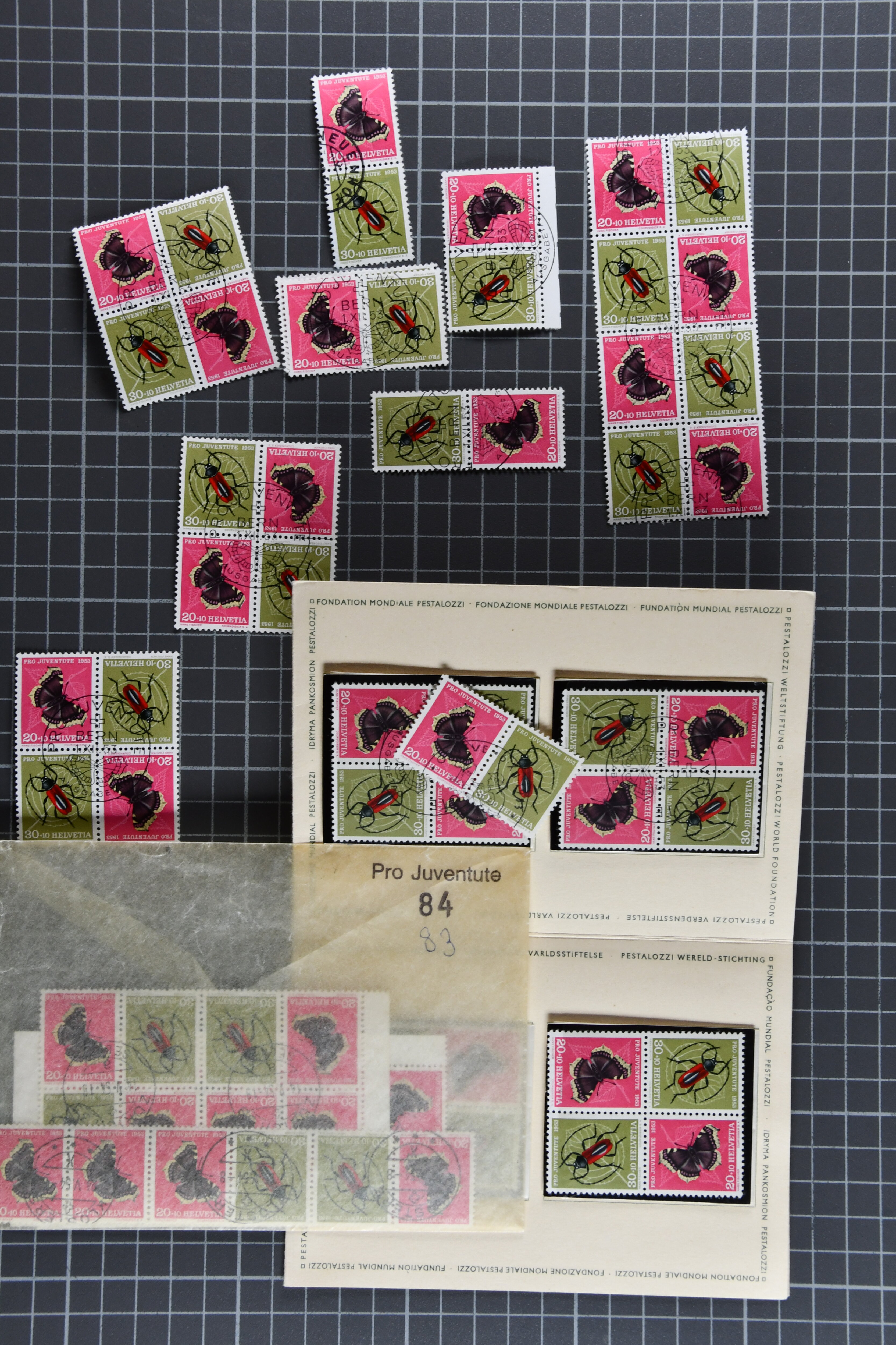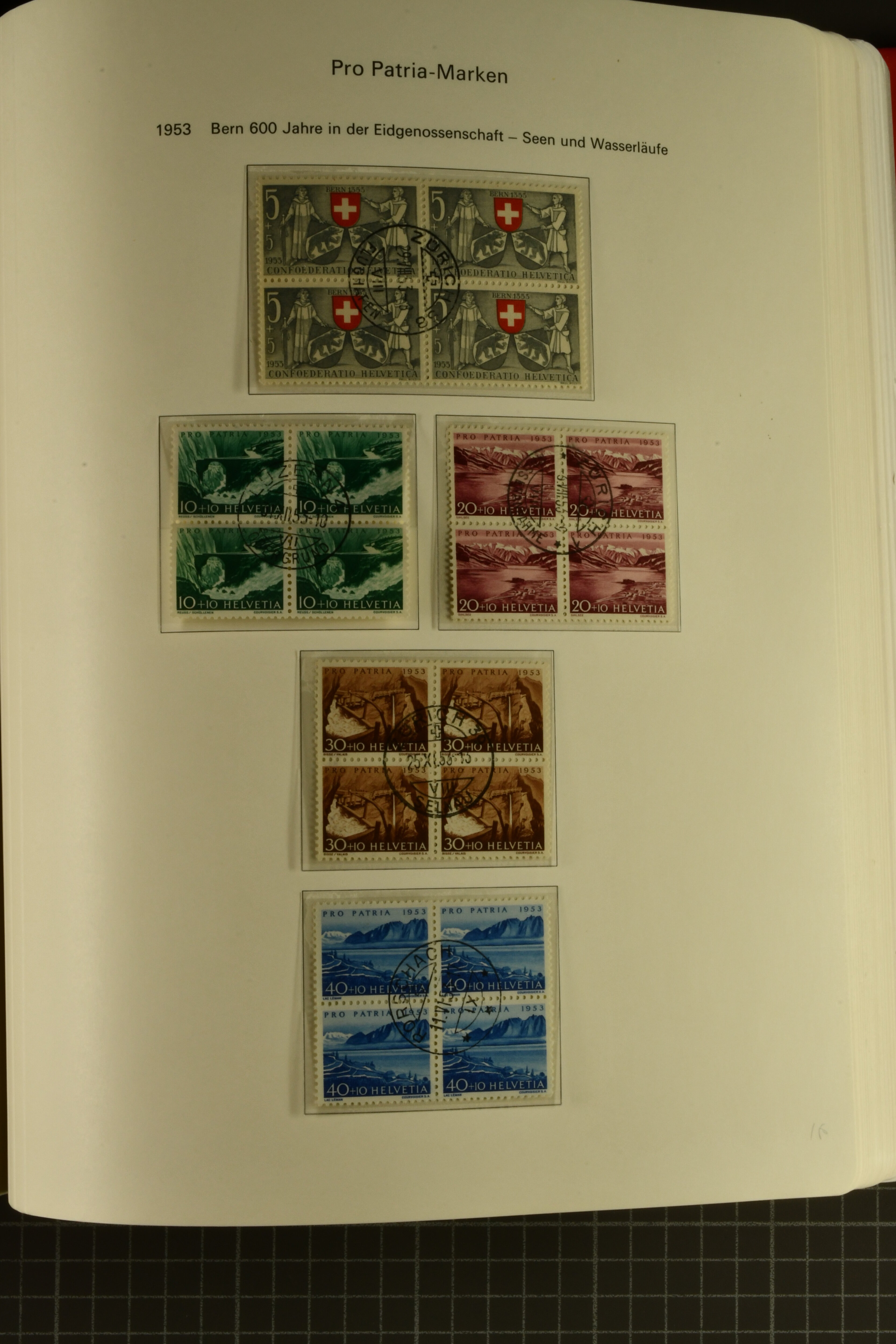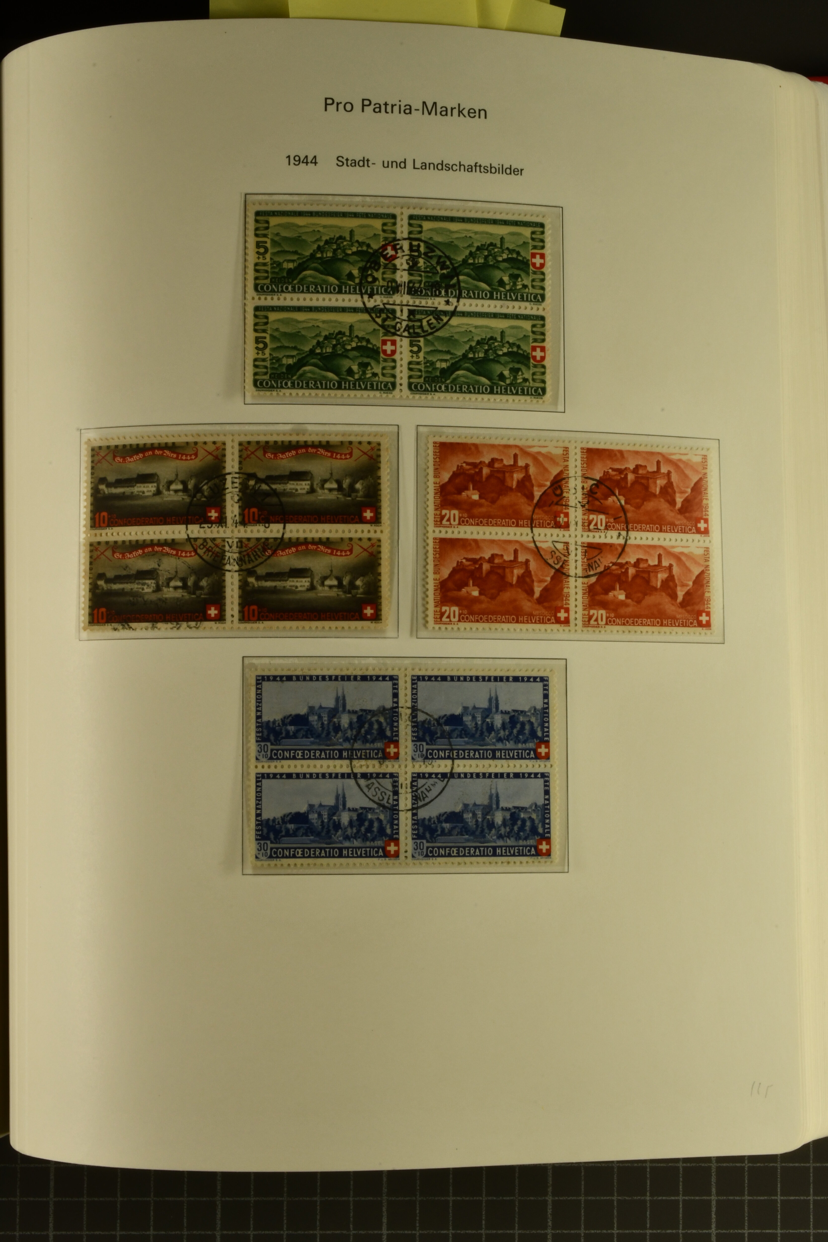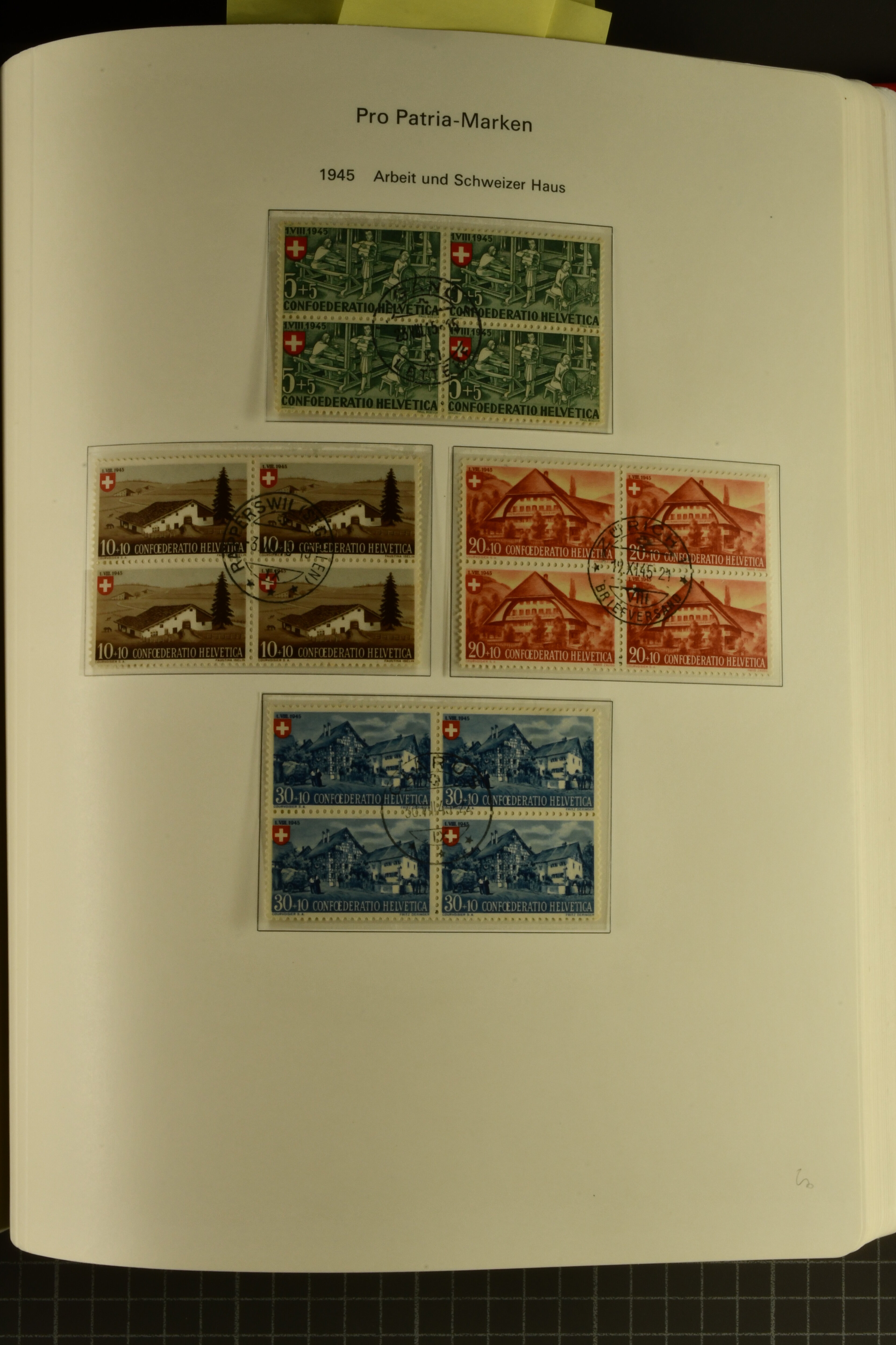 1913/83: Viererblock-Sammlung im Müller-Vordruckalbum, Pro Juventute 1917-81 und Pro Patria 1938-83 gestempelt, zumeist gut erhalten, wenige Lücken. SBK = ca. CHF 11'000+. (Image 1)