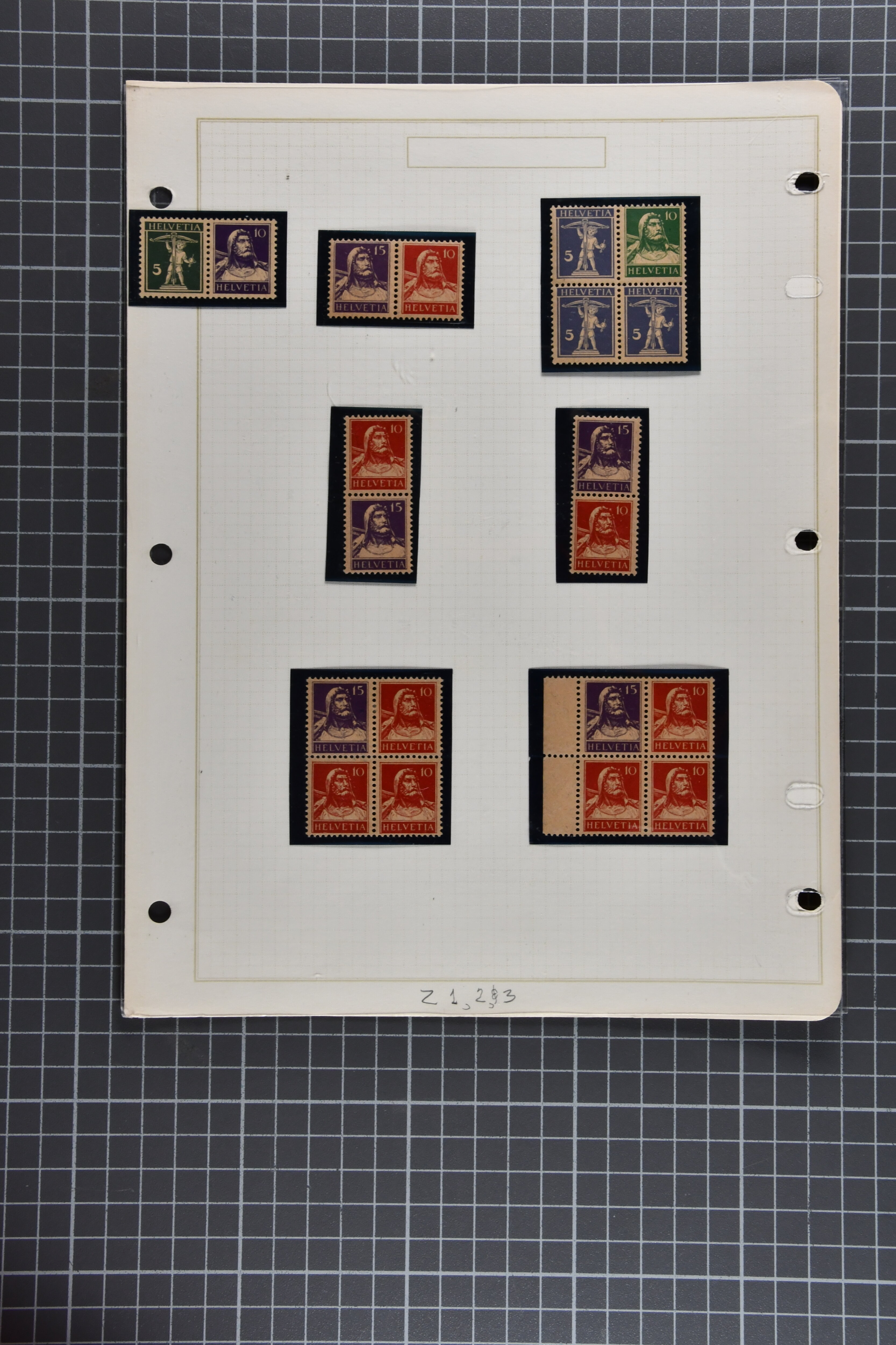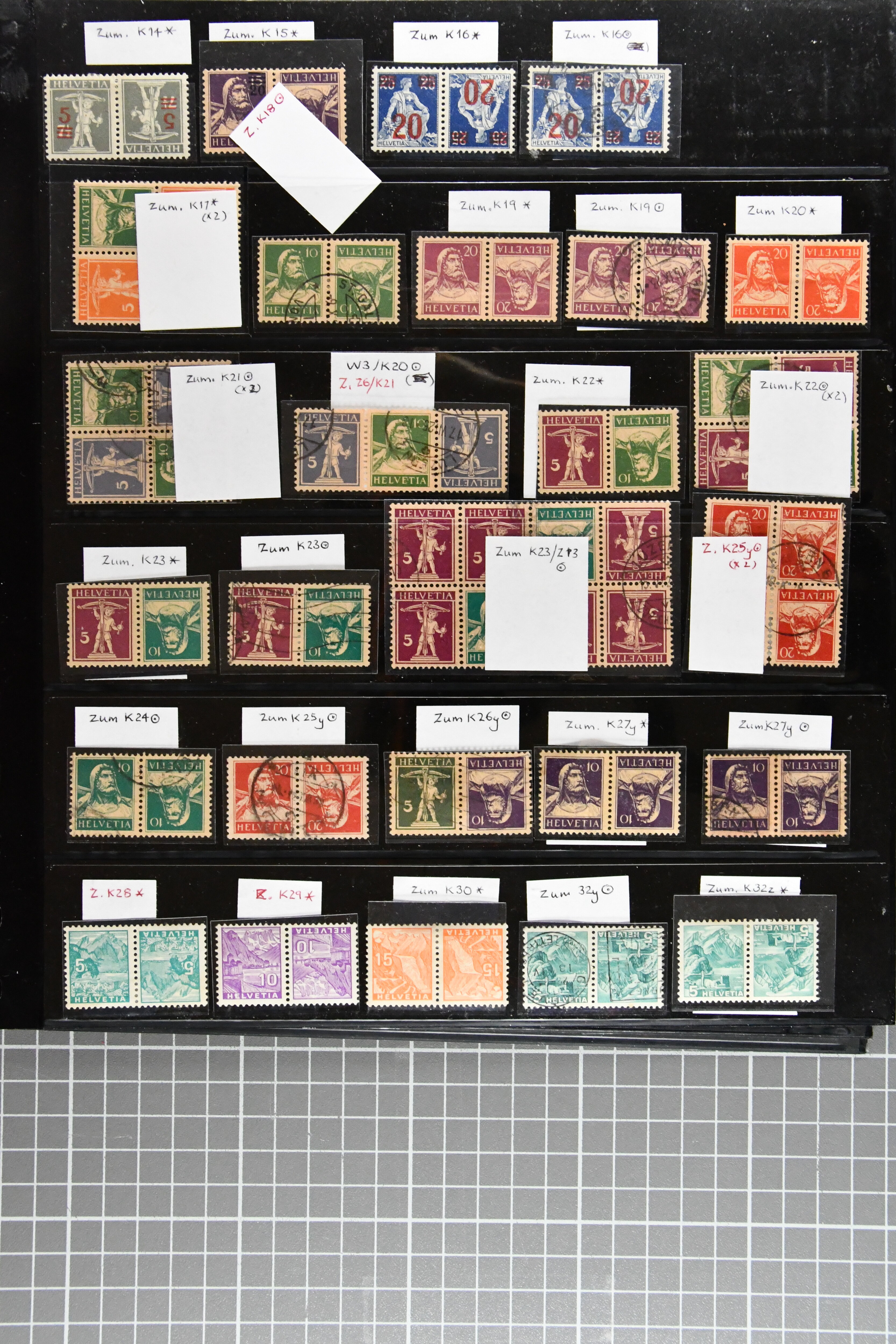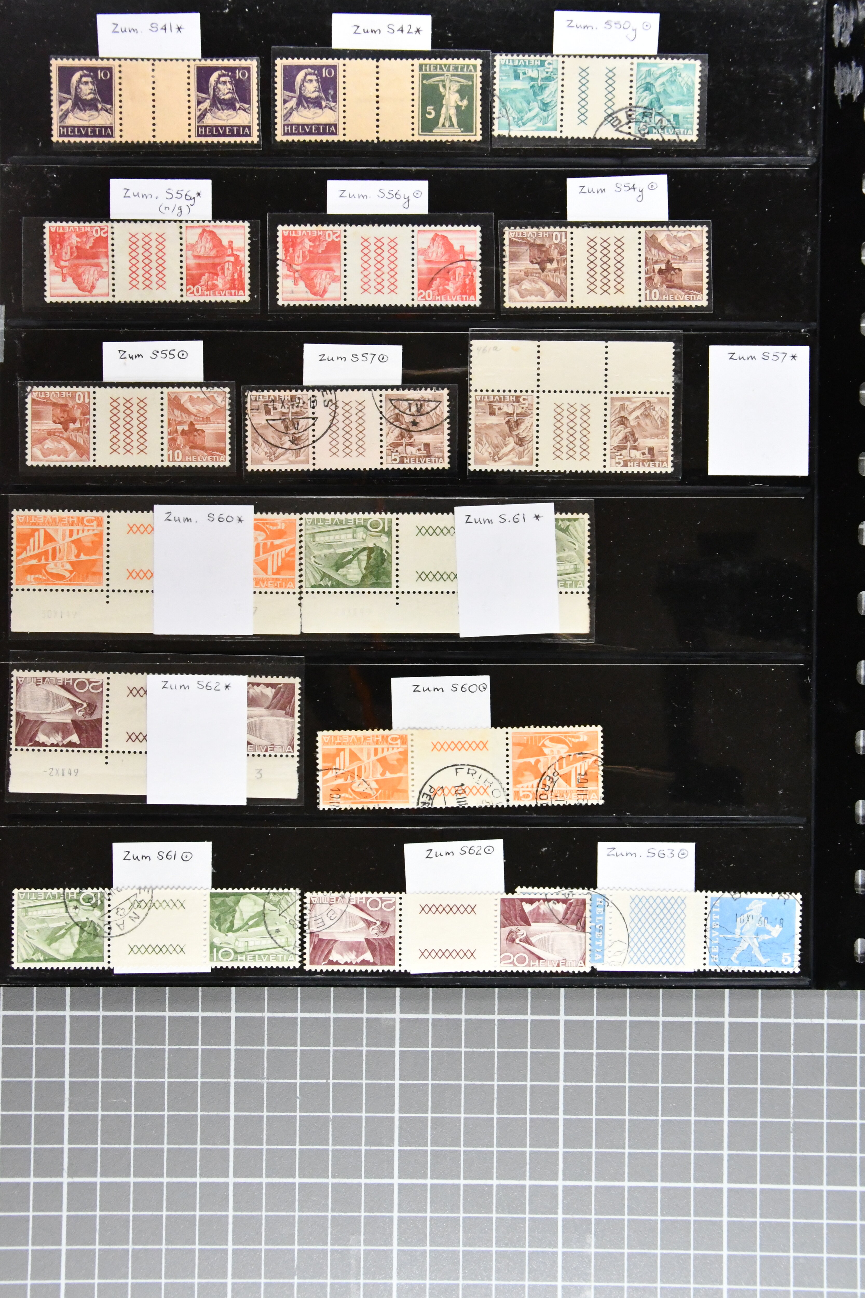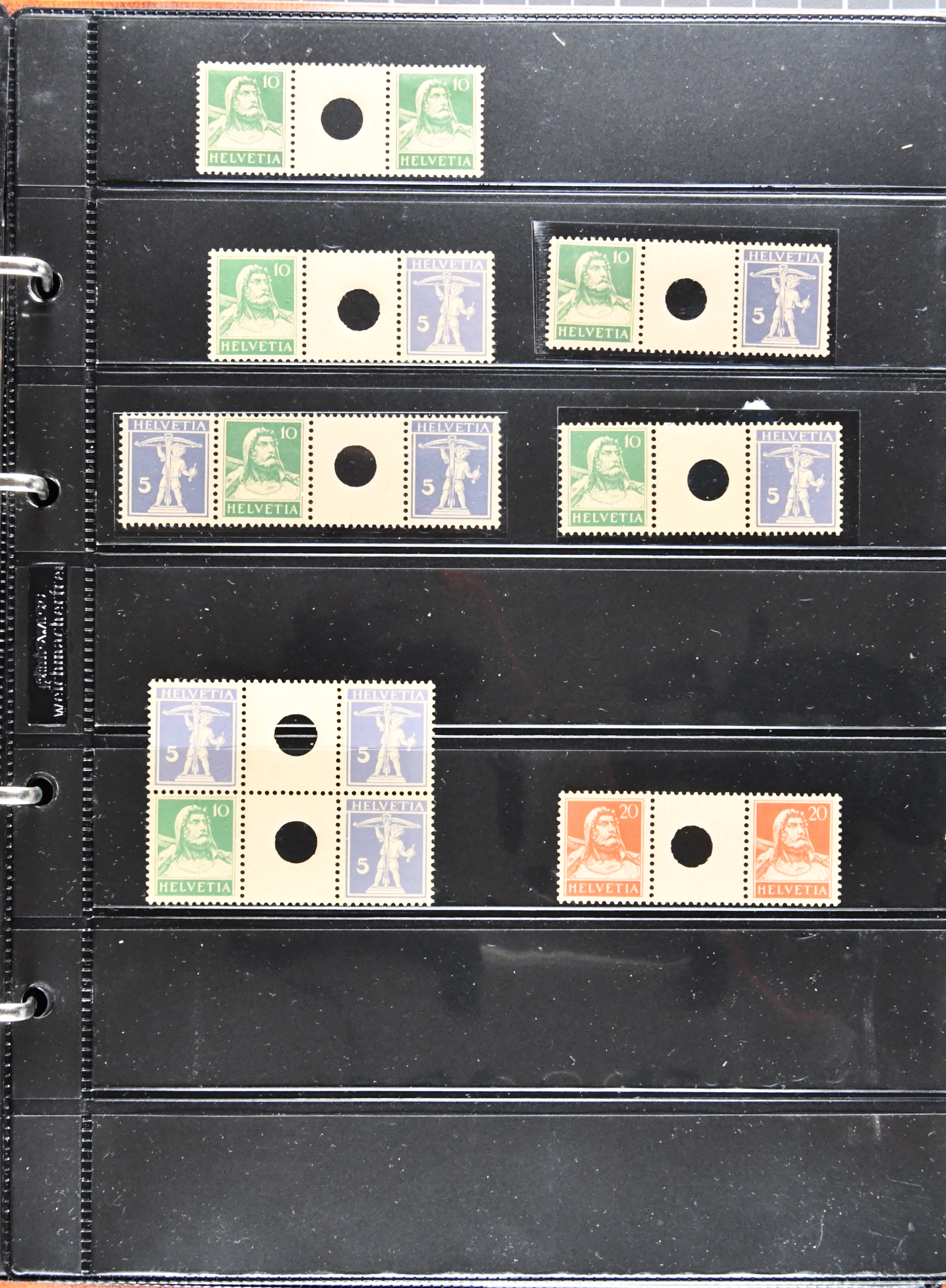 1910/80: Lot - Kehrdrucke, Zusammendrucke und Zwischenstege auf Steckblättern in gemischter Erhaltung, ungebraucht, postfrisch und gestempelt. Enthalten ist u. a. die 20 Rp. Tell-Brustbild mit Zwischensteg auf