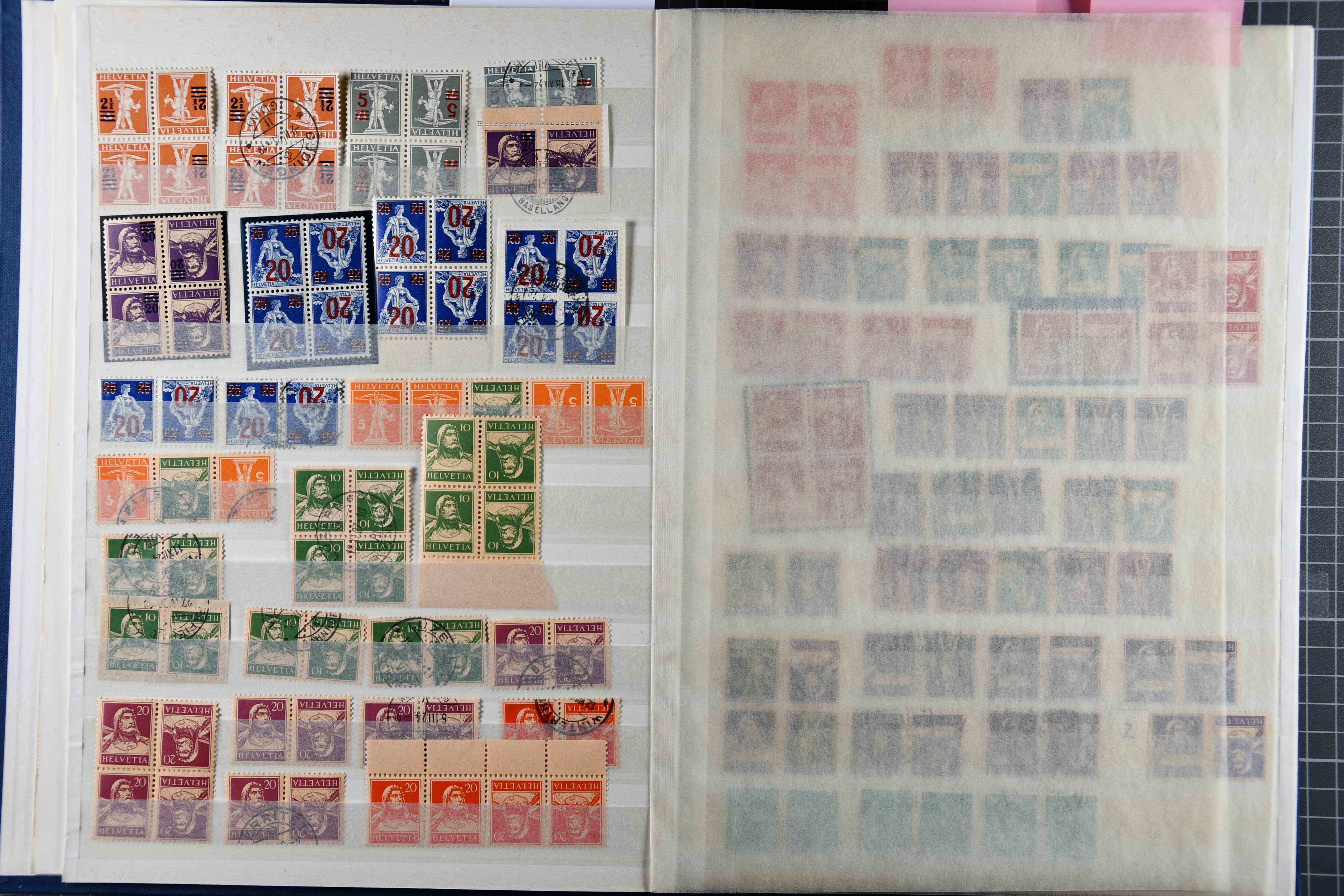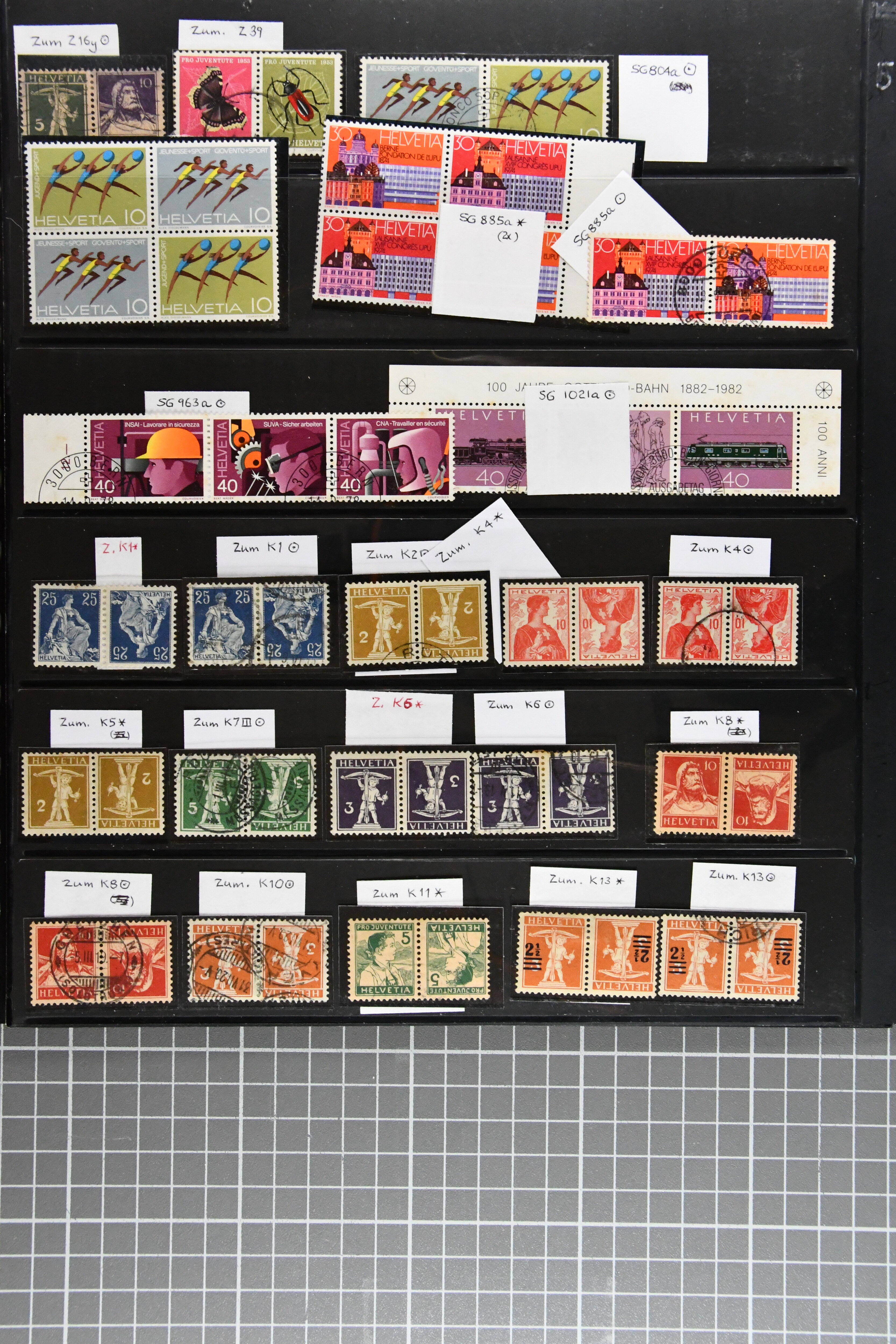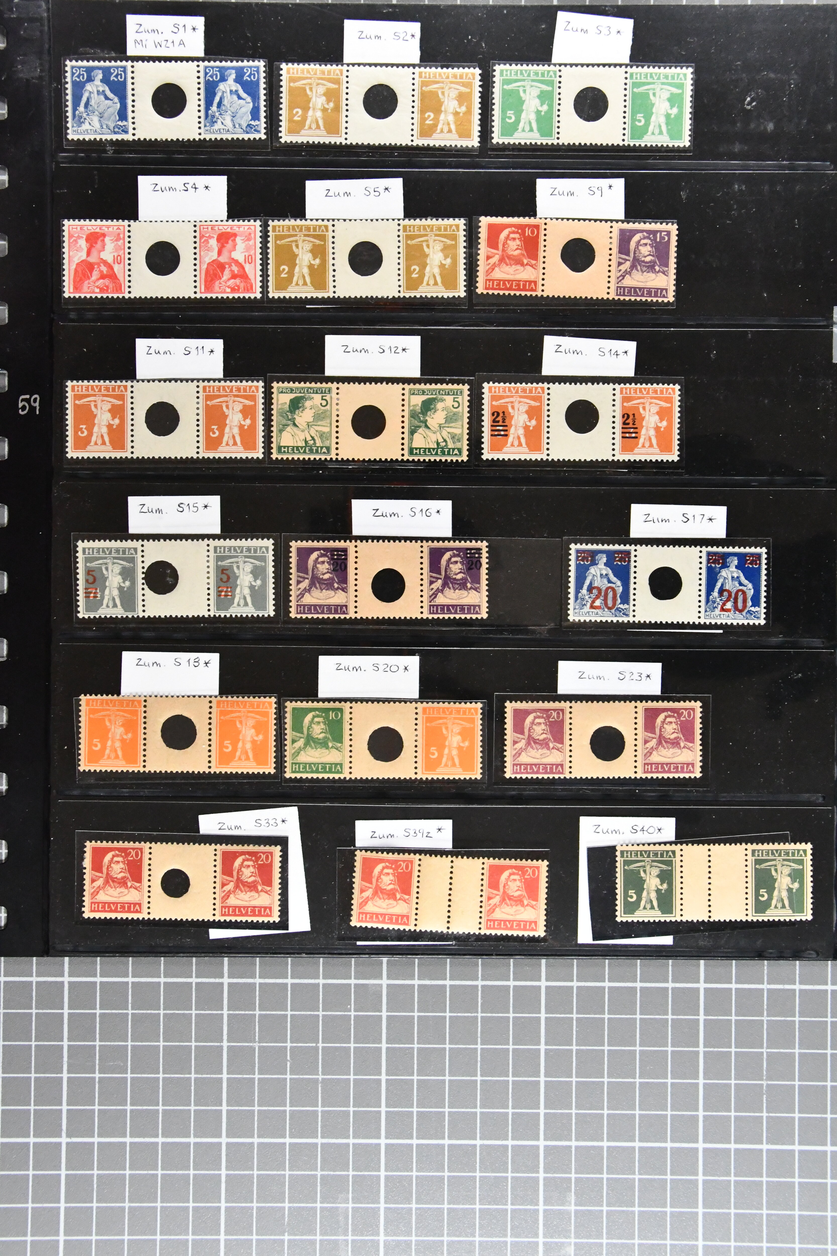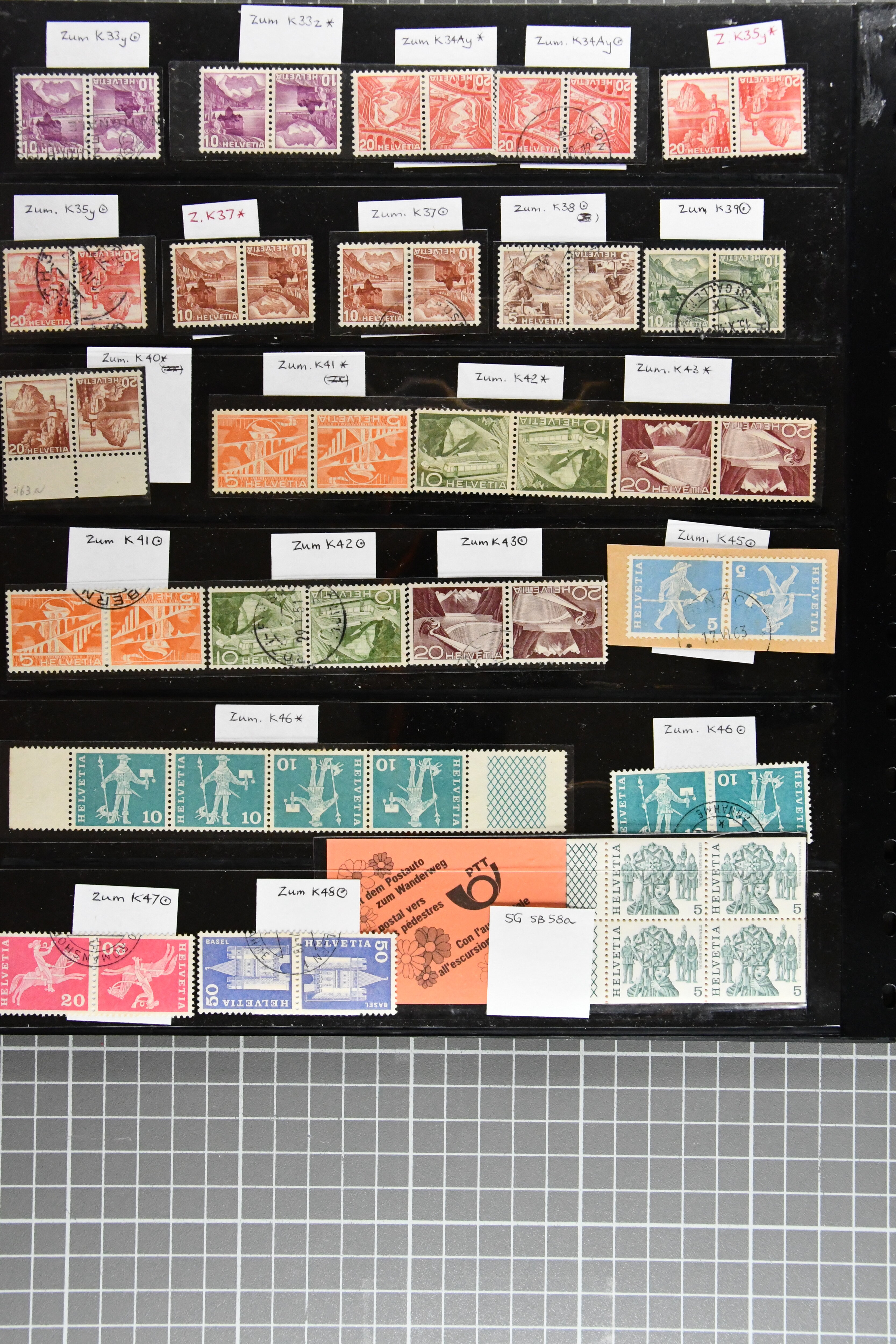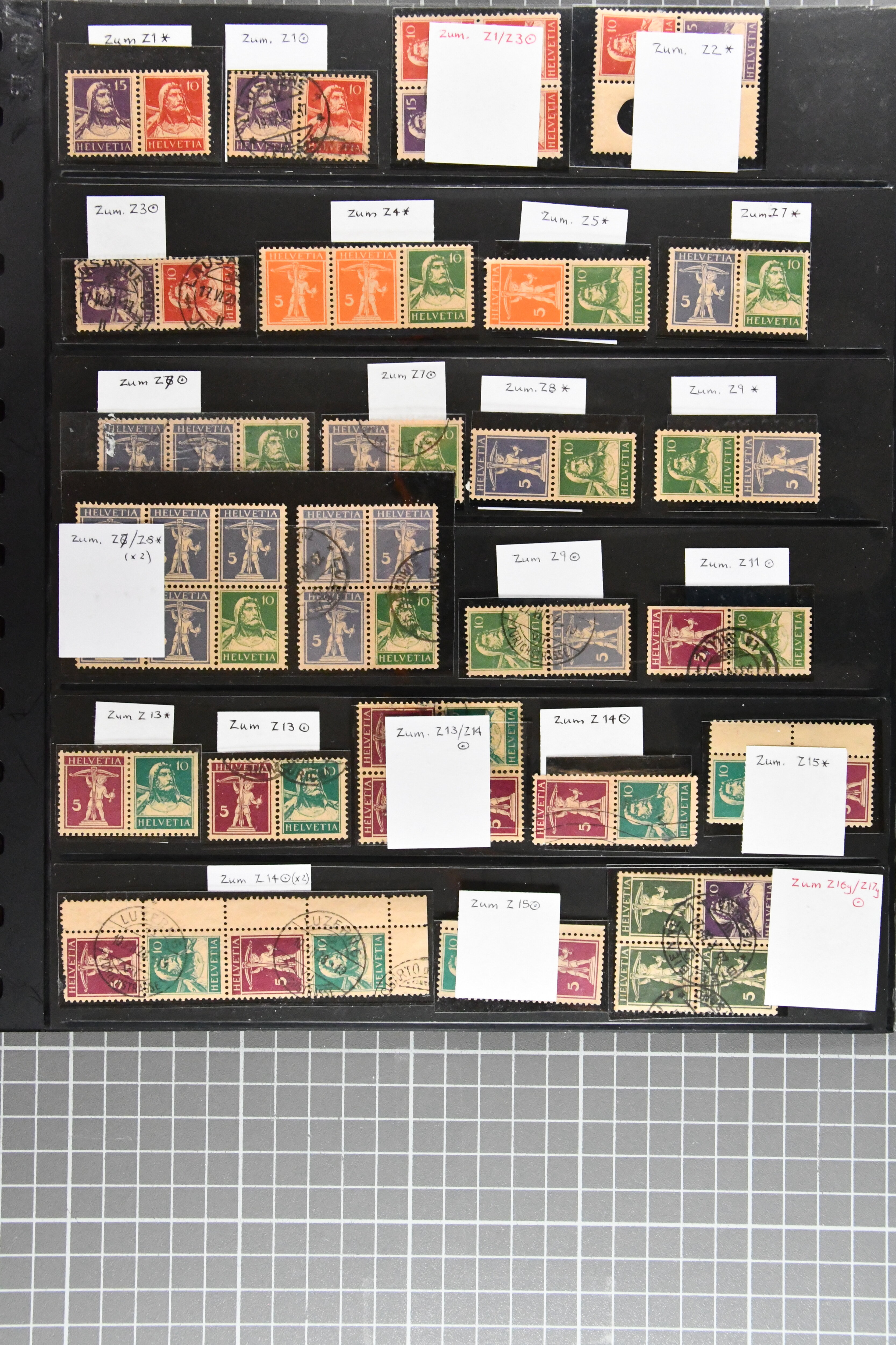 1910/80: Lot - Kehrdrucke, Zusammendrucke und Zwischenstege auf Steckblättern in gemischter Erhaltung, ungebraucht, postfrisch und gestempelt. Enthalten ist u. a. die 20 Rp. Tell-Brustbild mit Zwischensteg auf