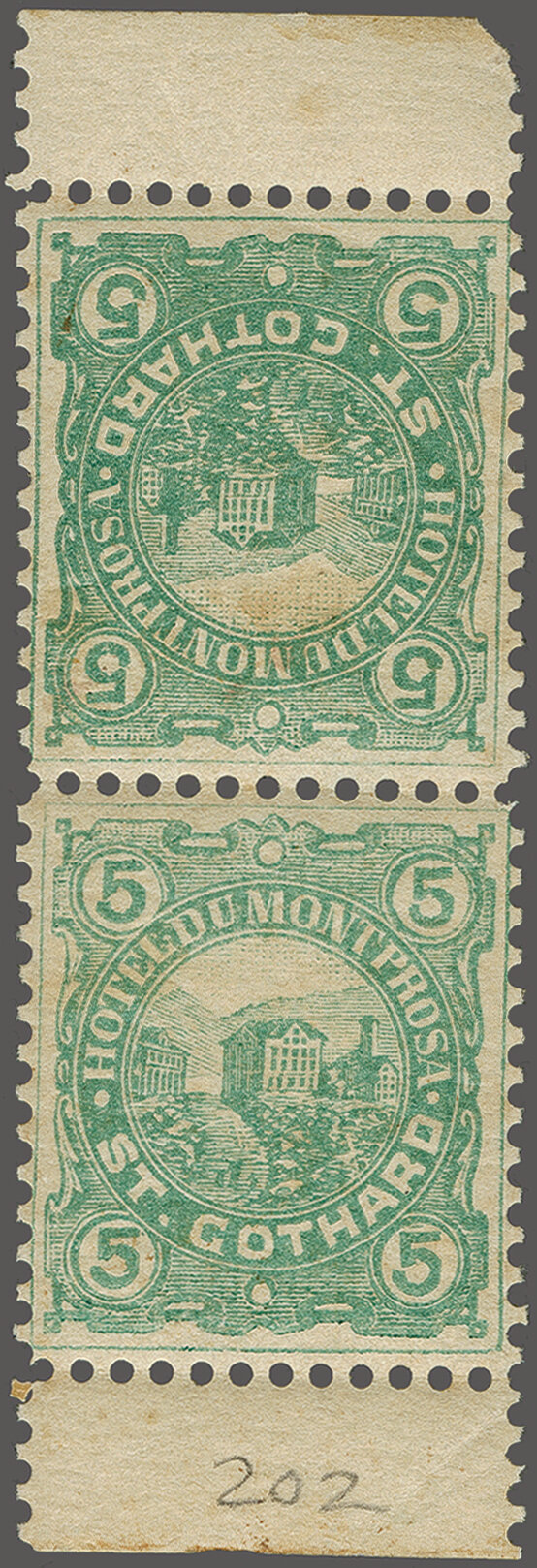 1882: Hotel Mont Prosa St. Gotthard, 5 Rp. grün im senkr. Kehrdruckpaar, postfrisch mit voller Originalgummierung und in guter Erhaltung. SBK CHF 800 (ungebraucht). (Image 1)
