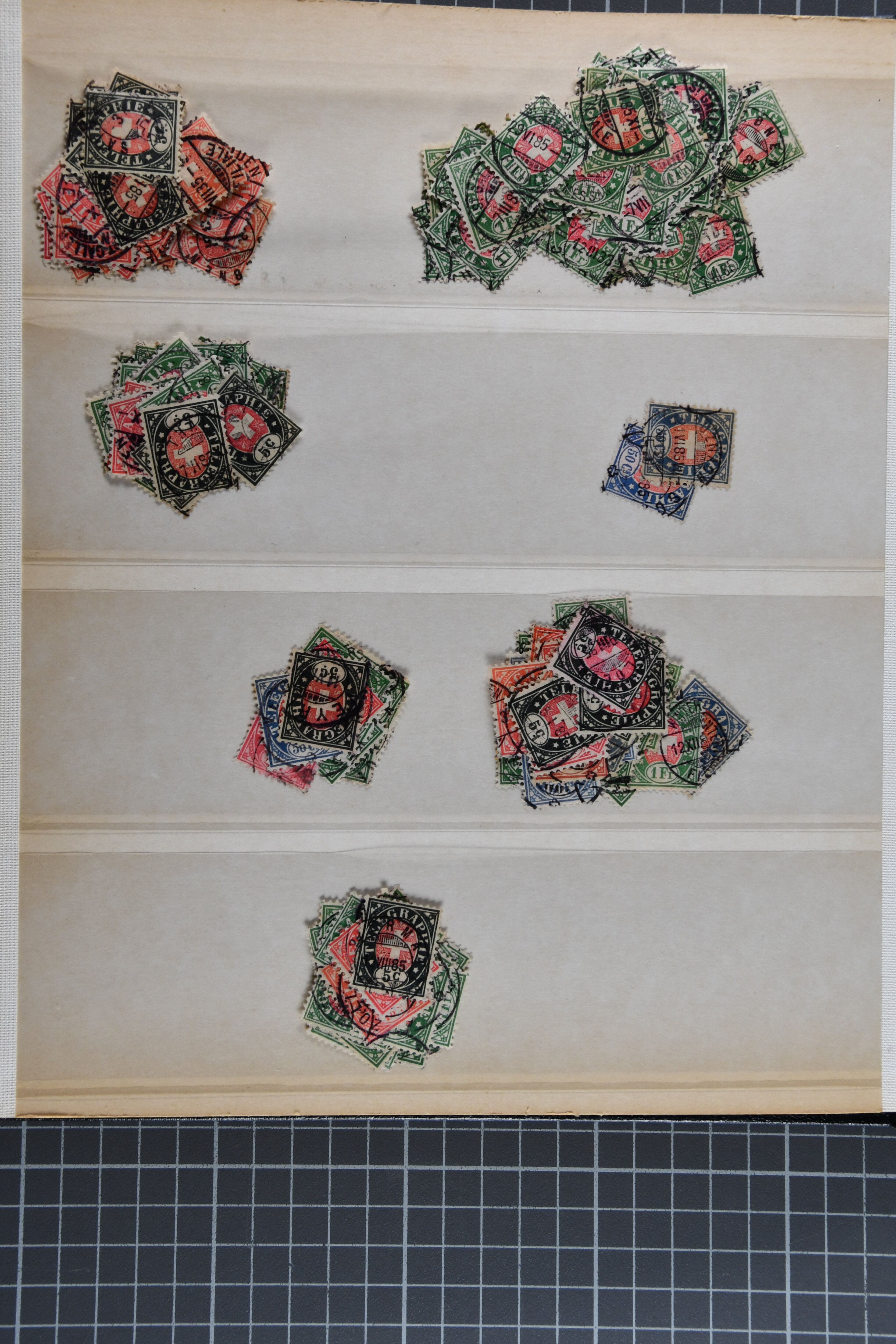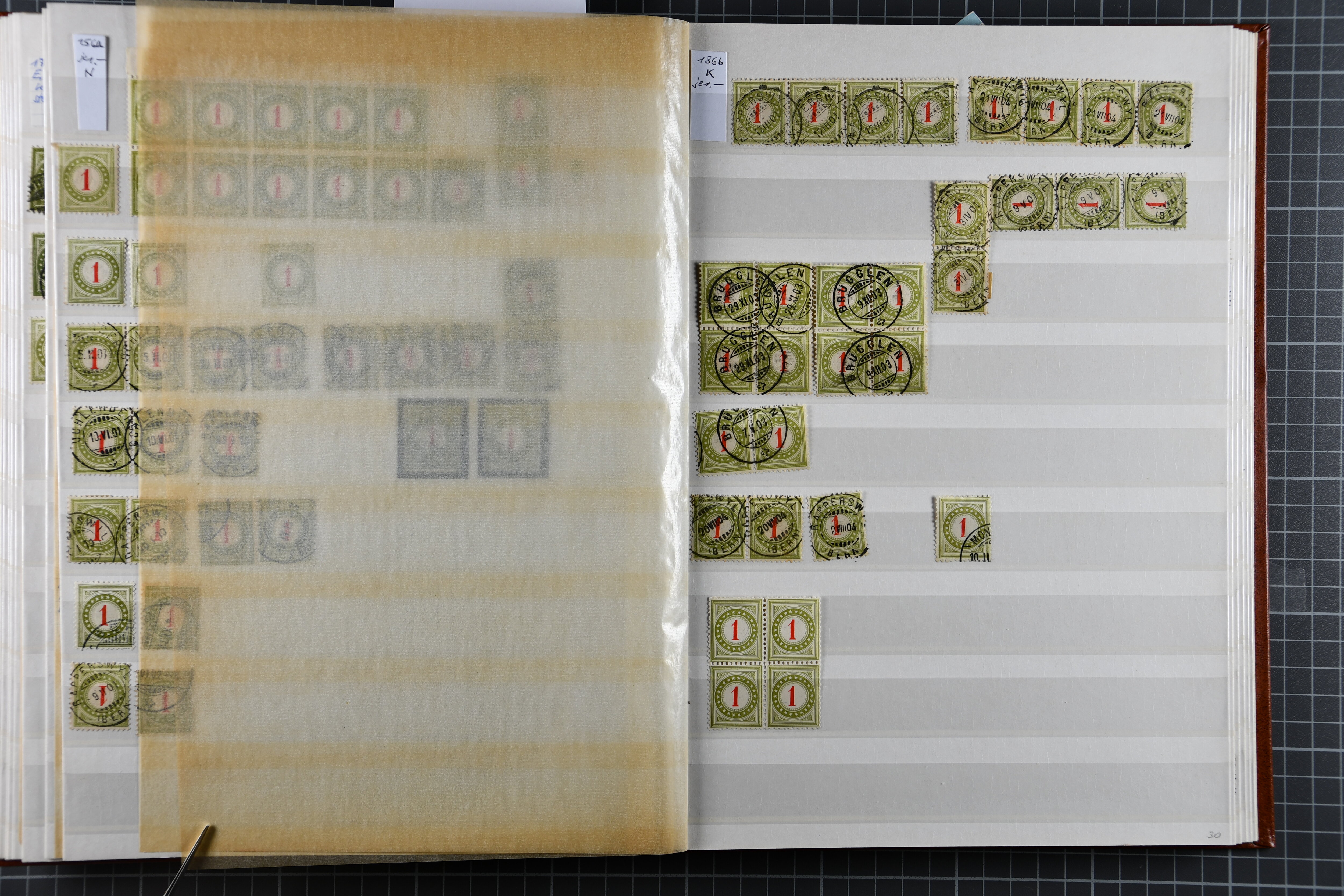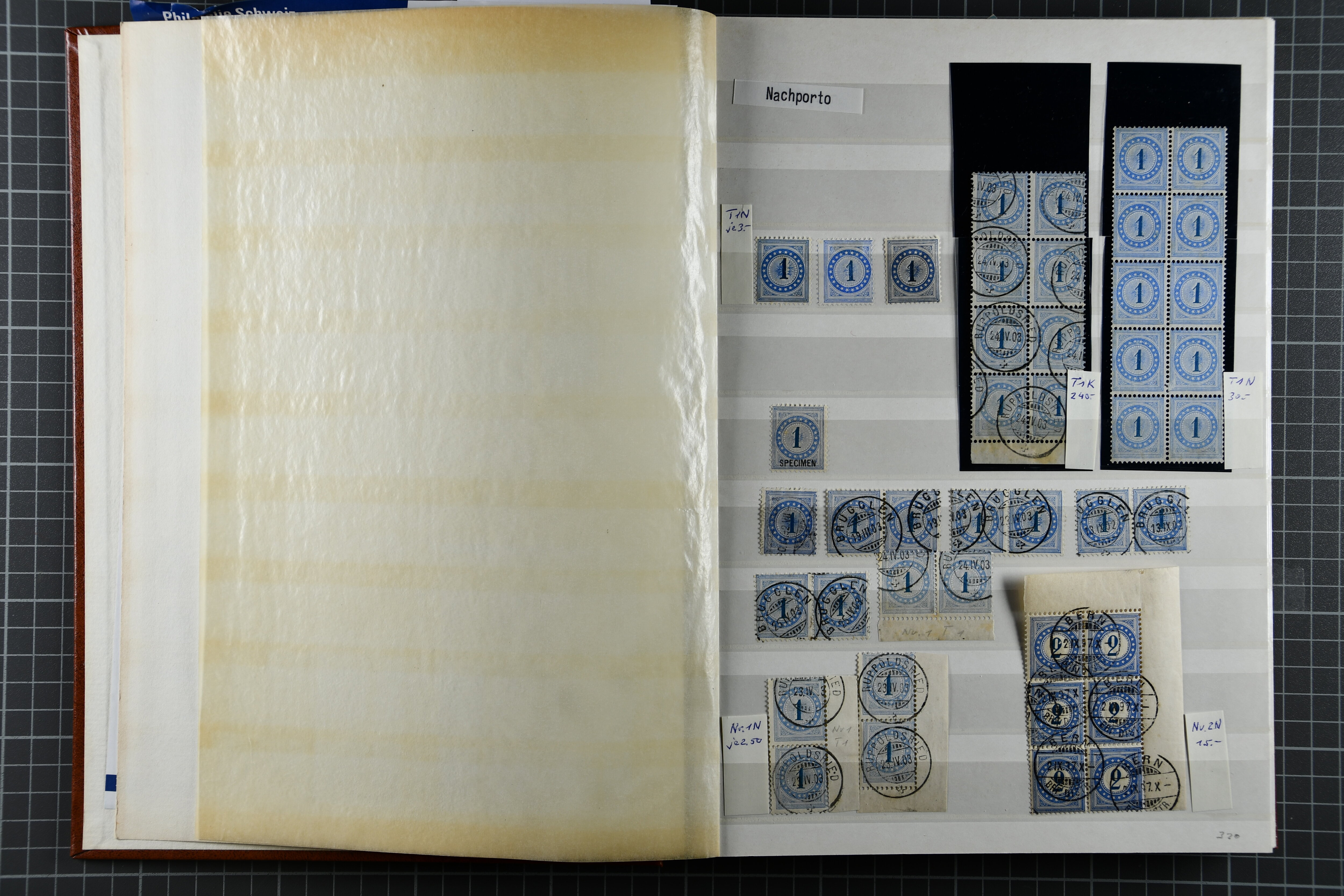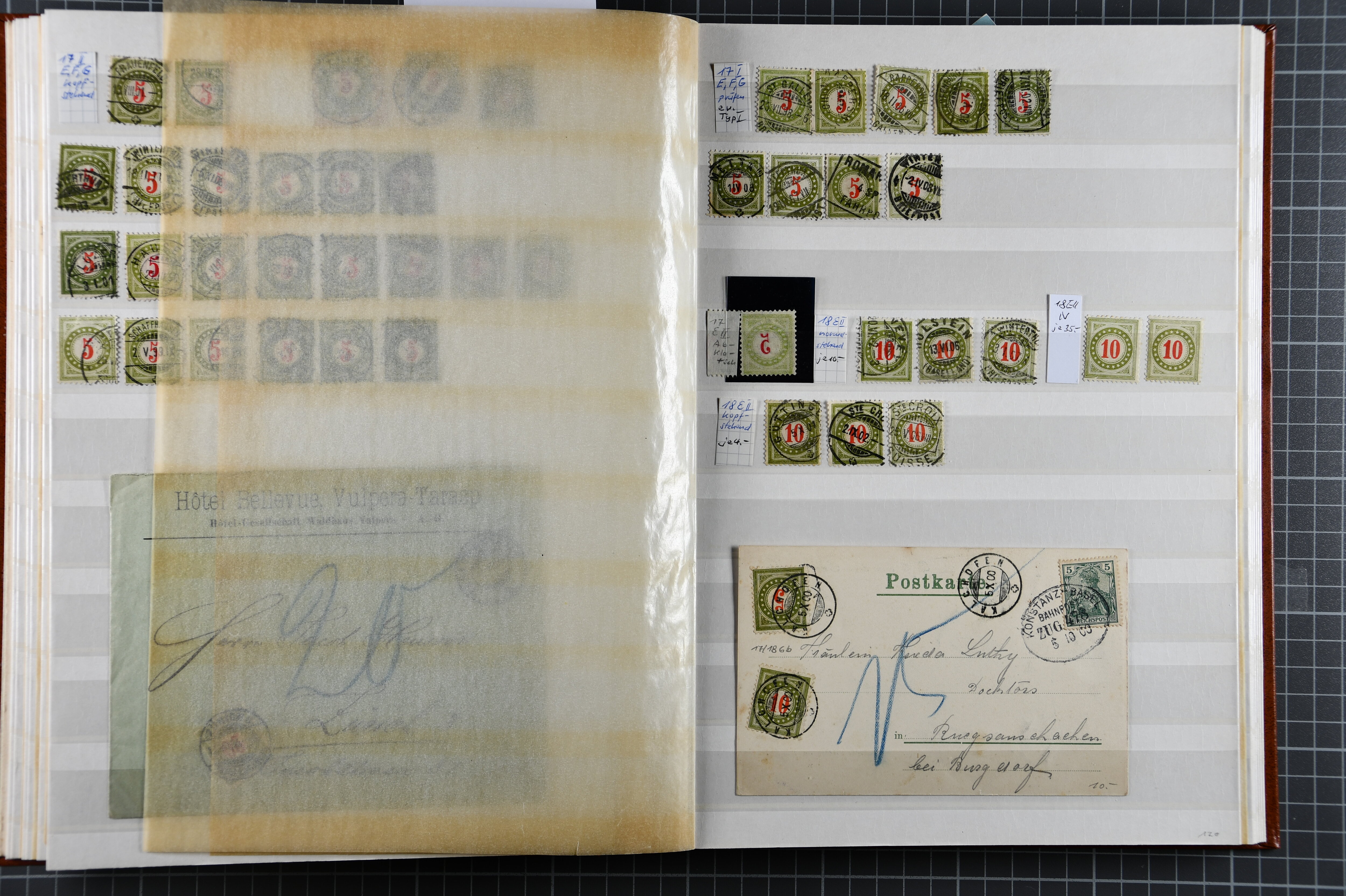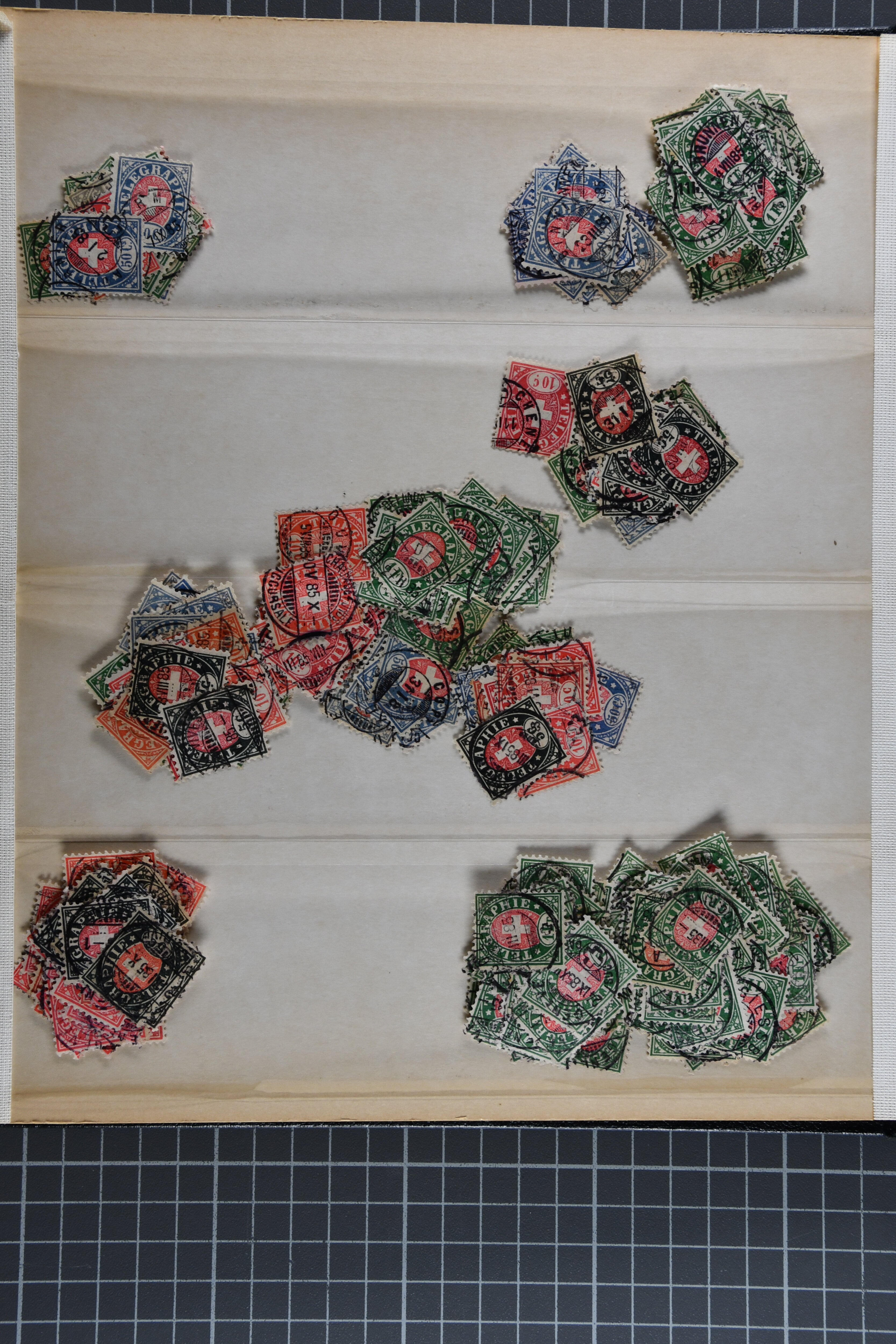 1878/1938: Grösserer Bestand, vorwiegend Zifferausgabe: Eine Sammlung im Einsteckbuch sowie Teil- und Dublettensammlungen in vier weiteren Alben (ein Album enthält zudem etwas Portofreiheit, Telegraphenmarken und