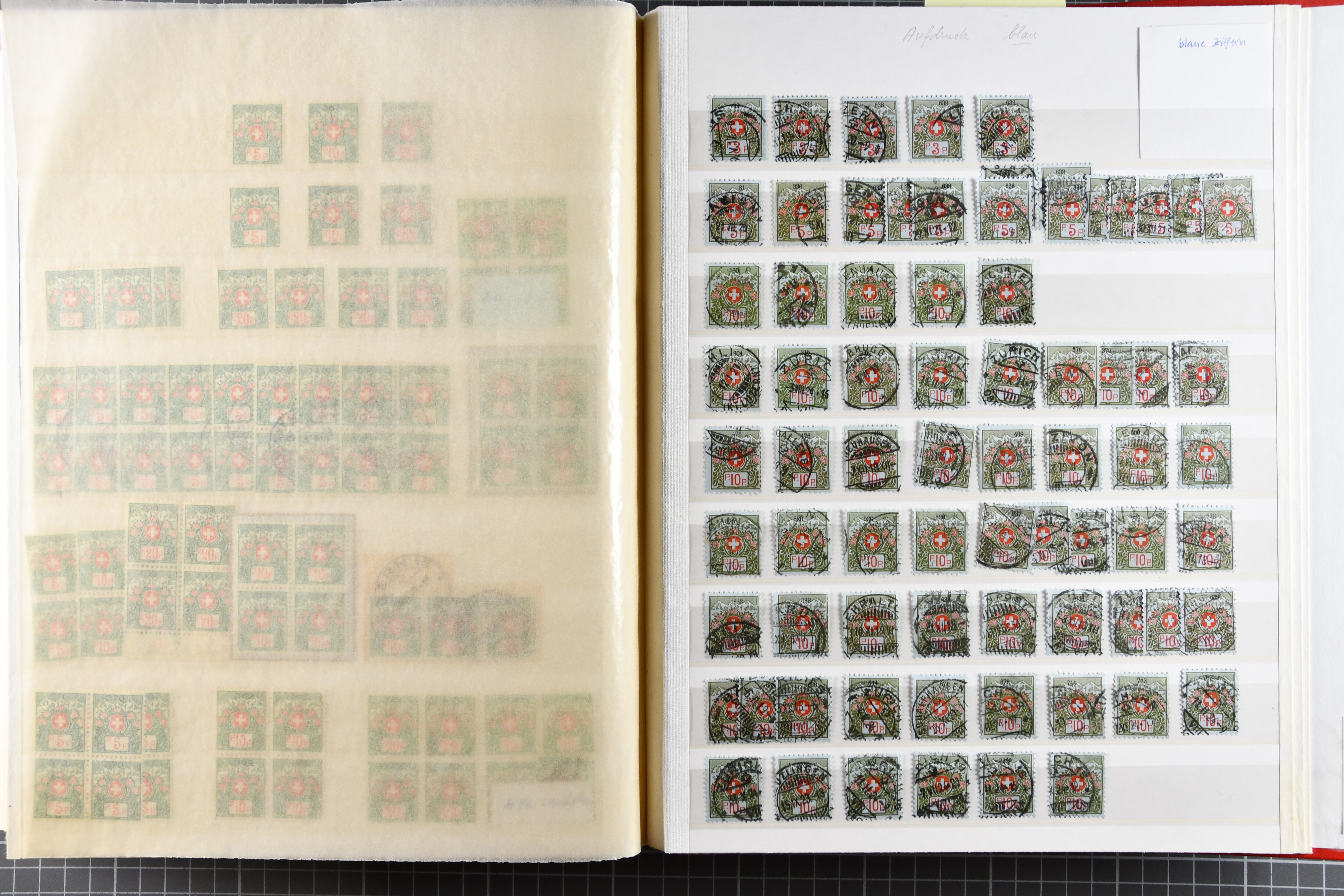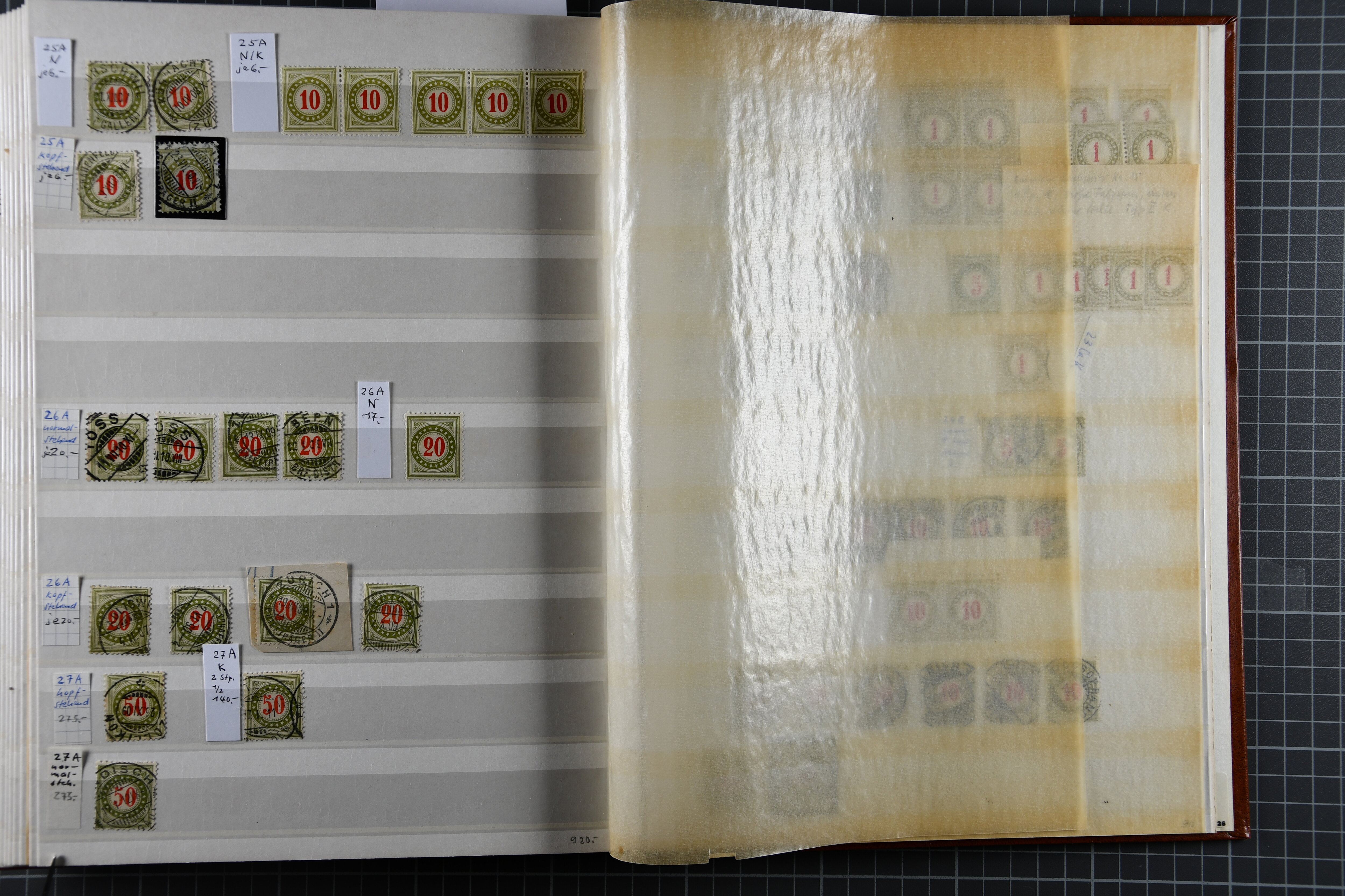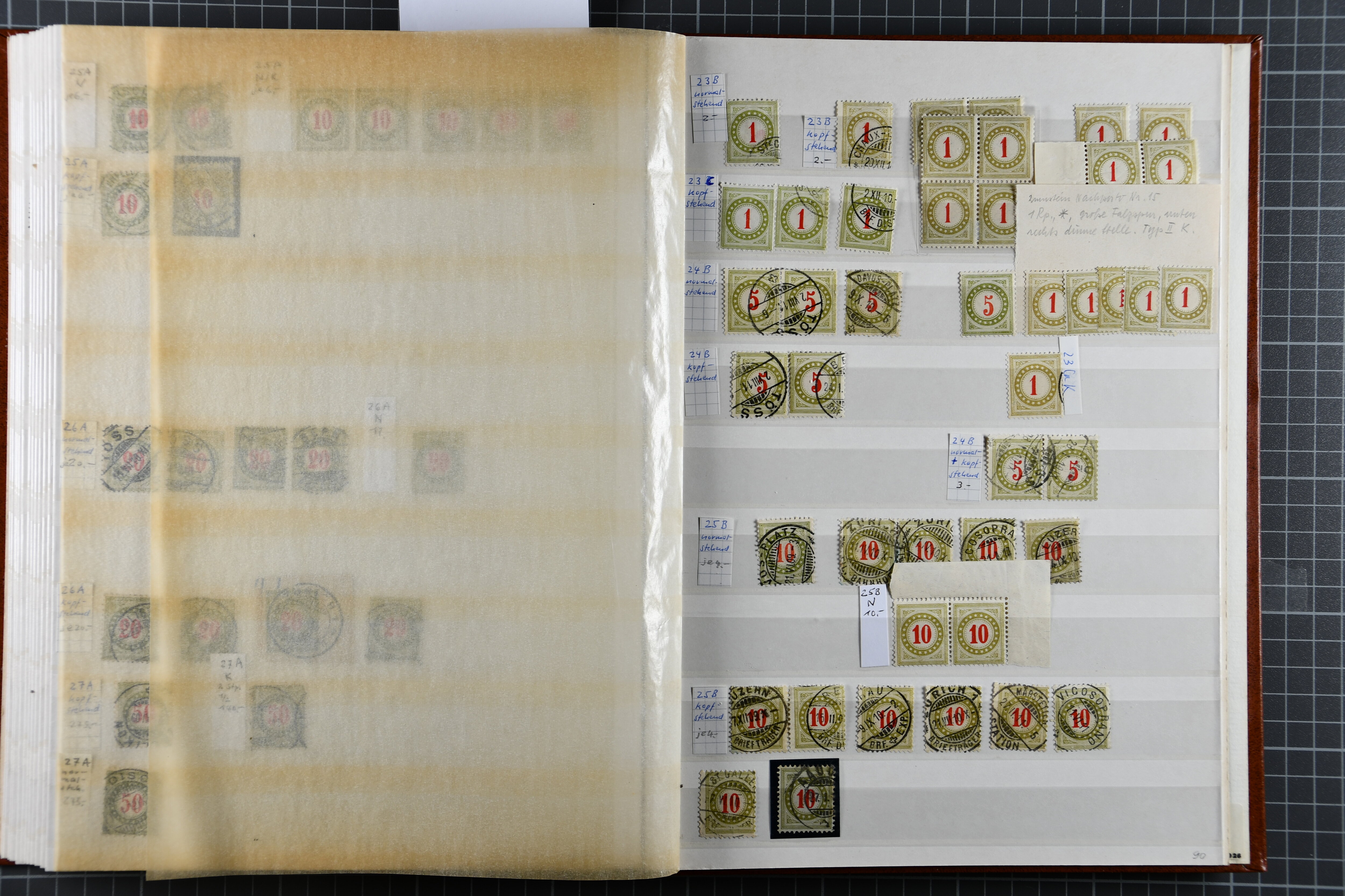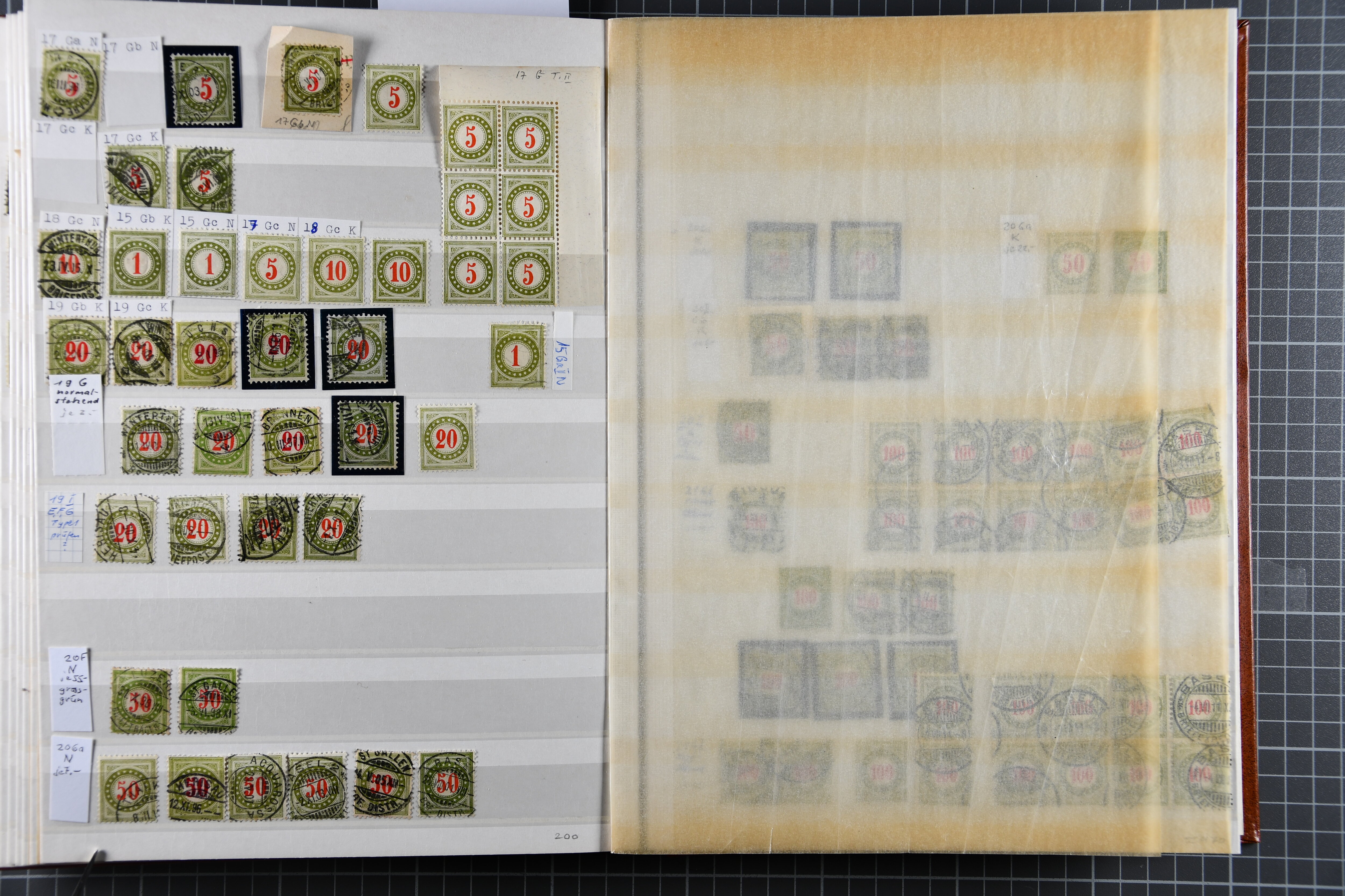 1878/1938: Grösserer Bestand, vorwiegend Zifferausgabe: Eine Sammlung im Einsteckbuch sowie Teil- und Dublettensammlungen in vier weiteren Alben (ein Album enthält zudem etwas Portofreiheit, Telegraphenmarken und