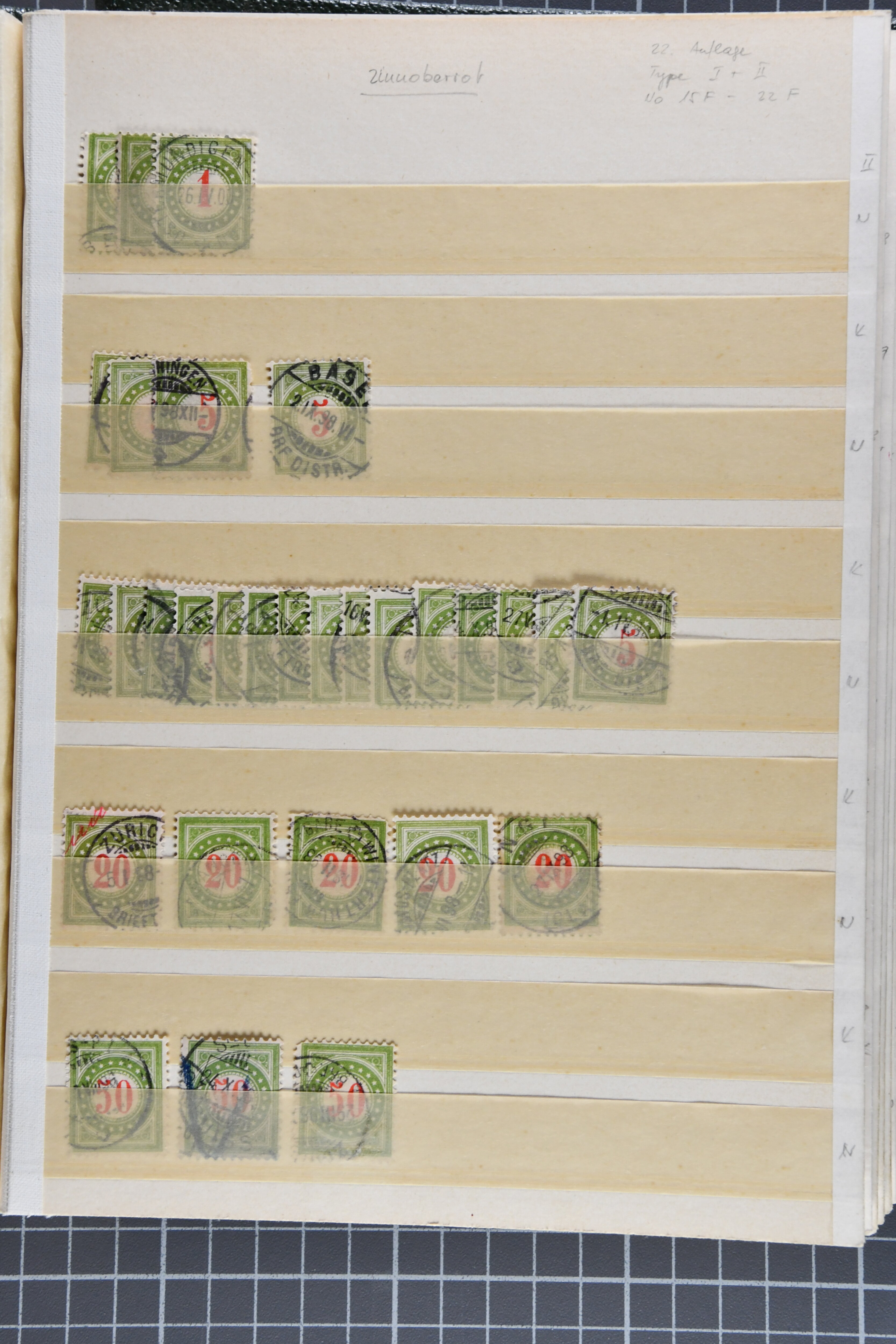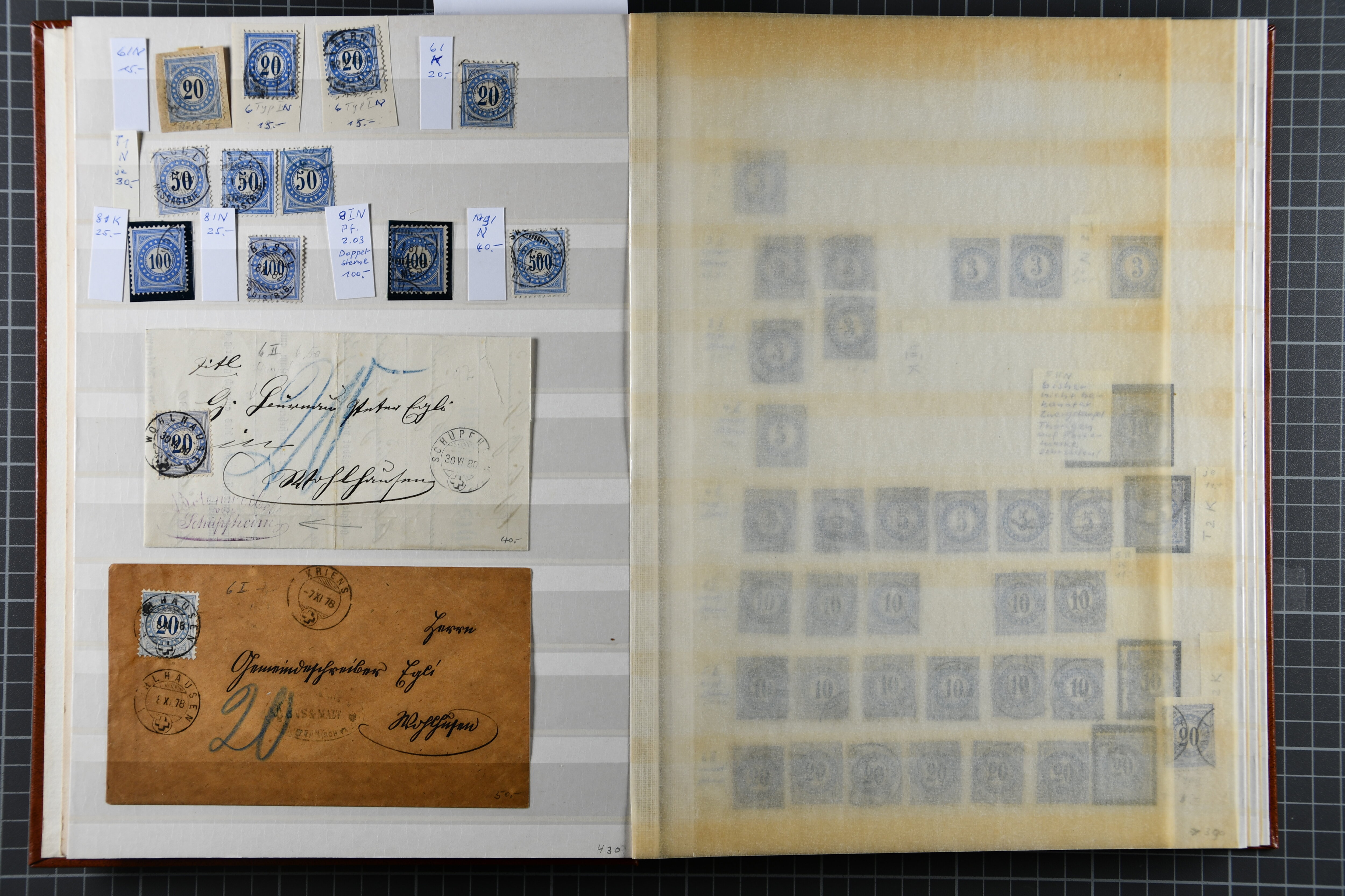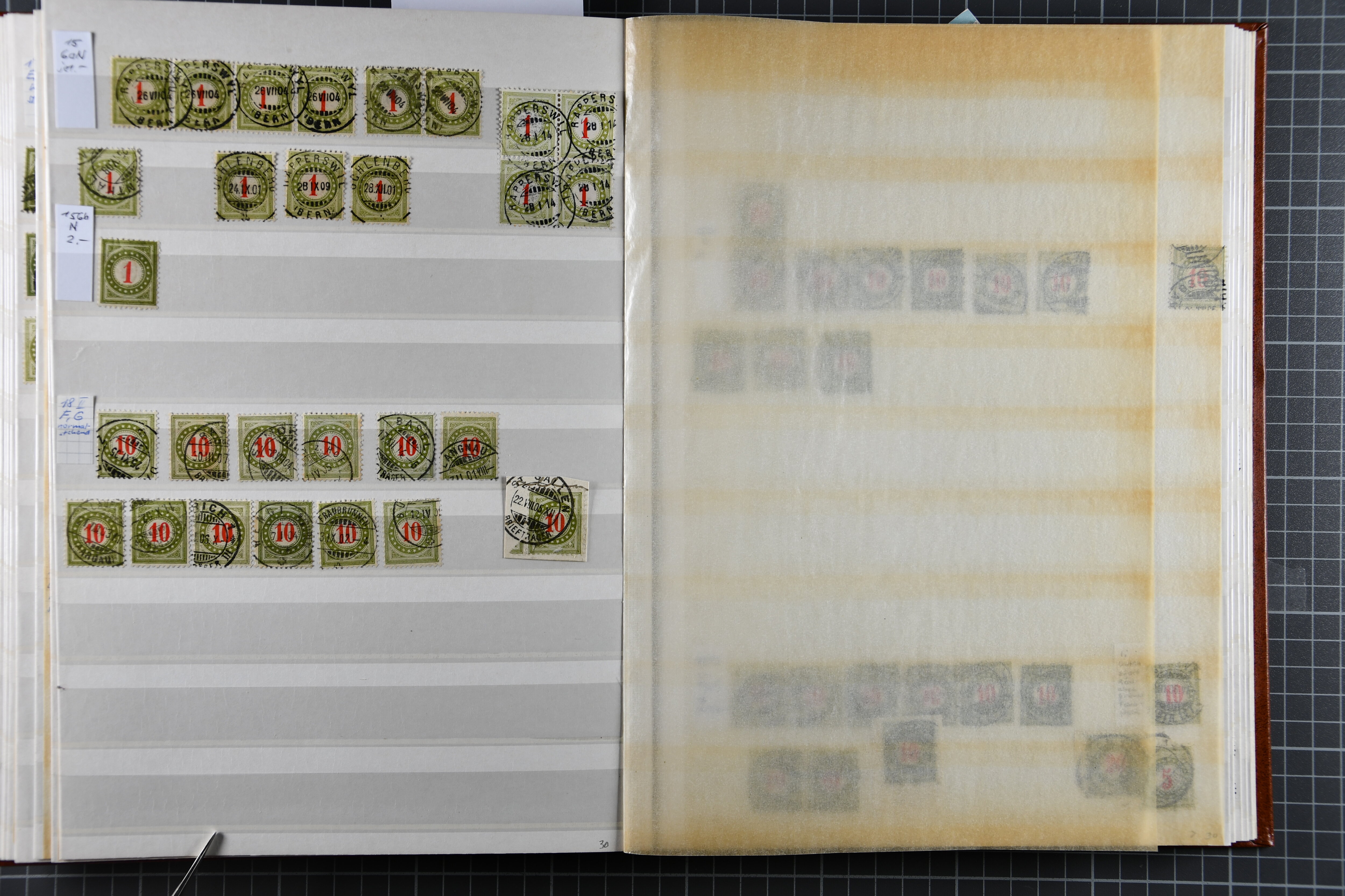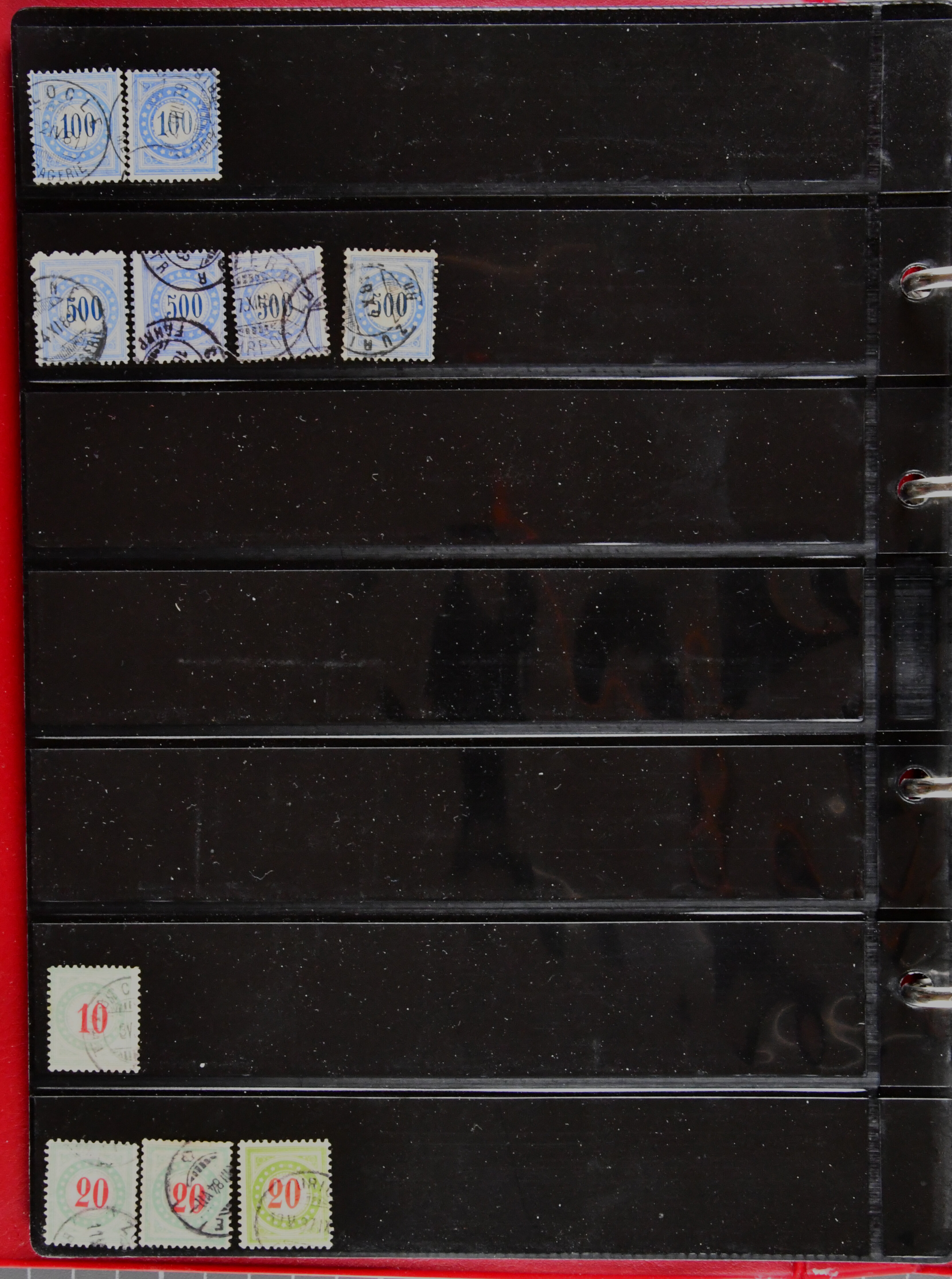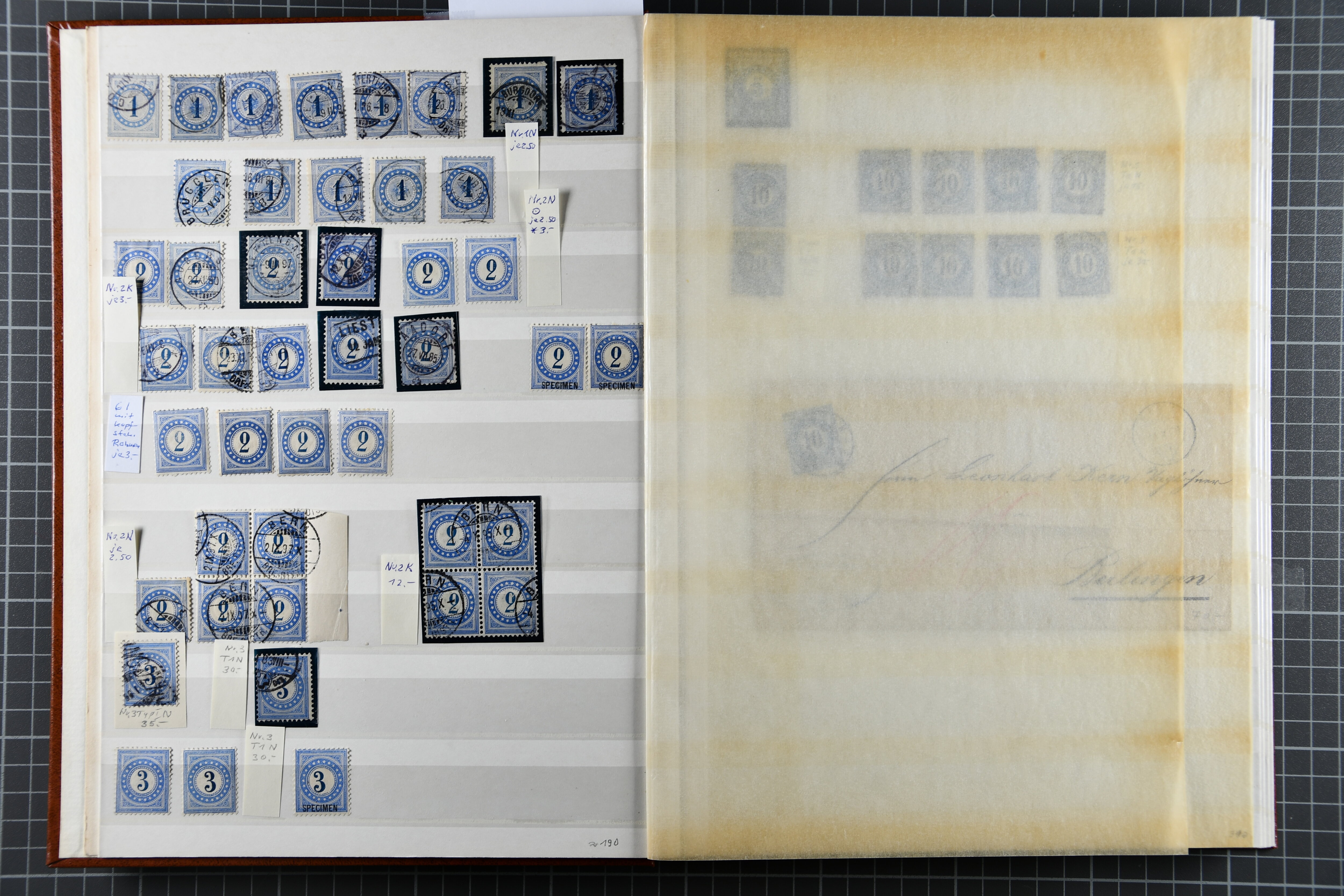 1878/1938: Grösserer Bestand, vorwiegend Zifferausgabe: Eine Sammlung im Einsteckbuch sowie Teil- und Dublettensammlungen in vier weiteren Alben (ein Album enthält zudem etwas Portofreiheit, Telegraphenmarken und