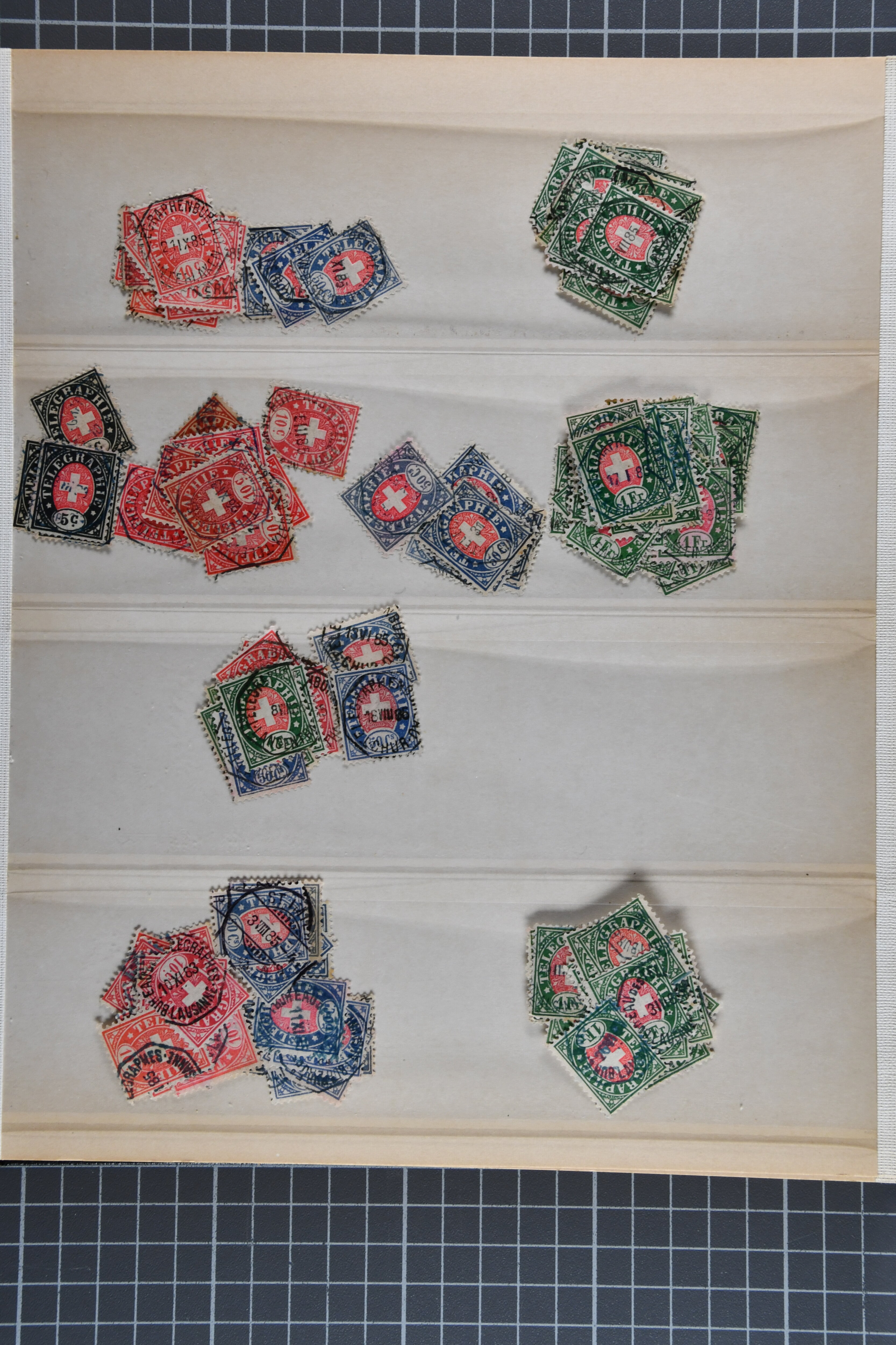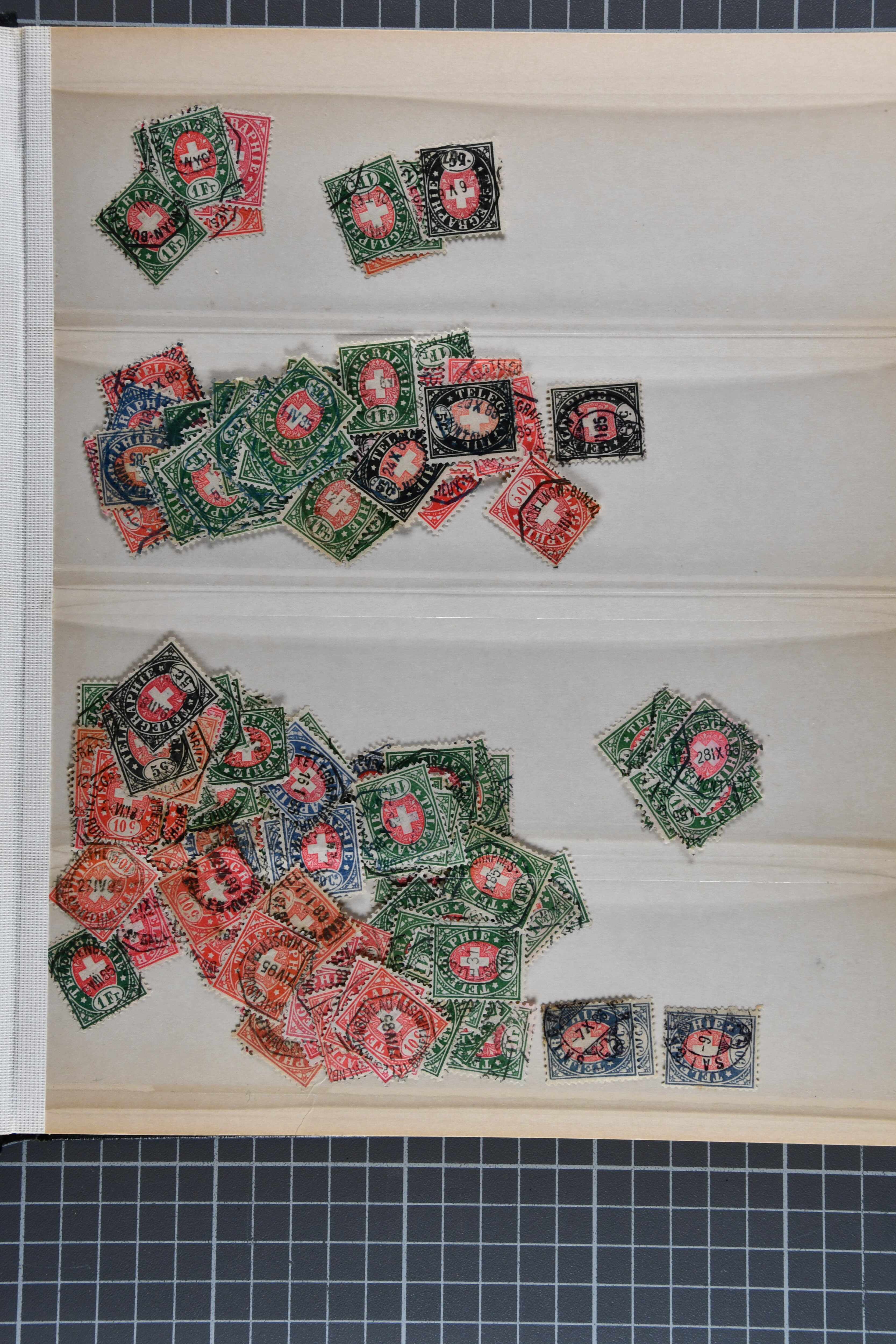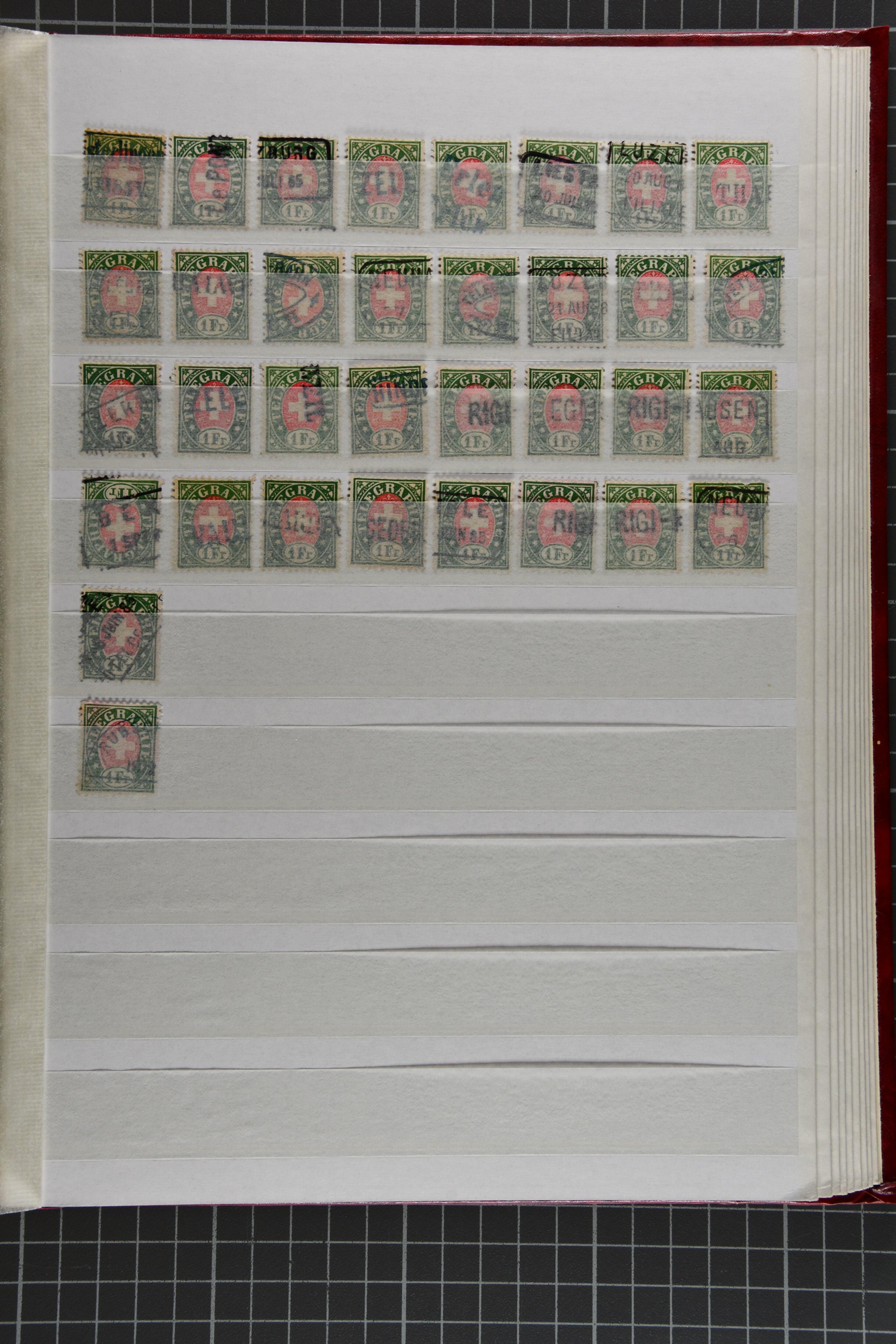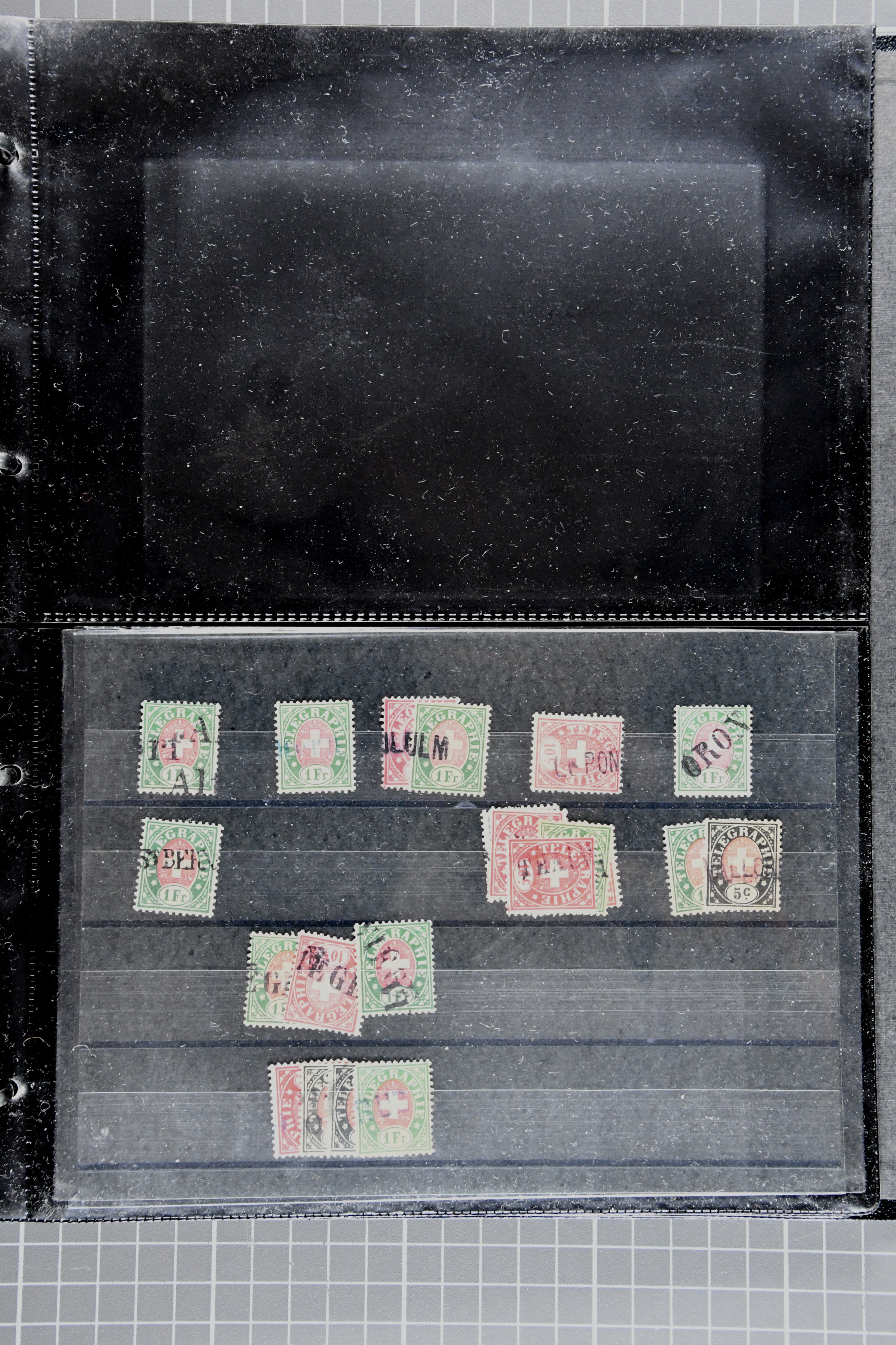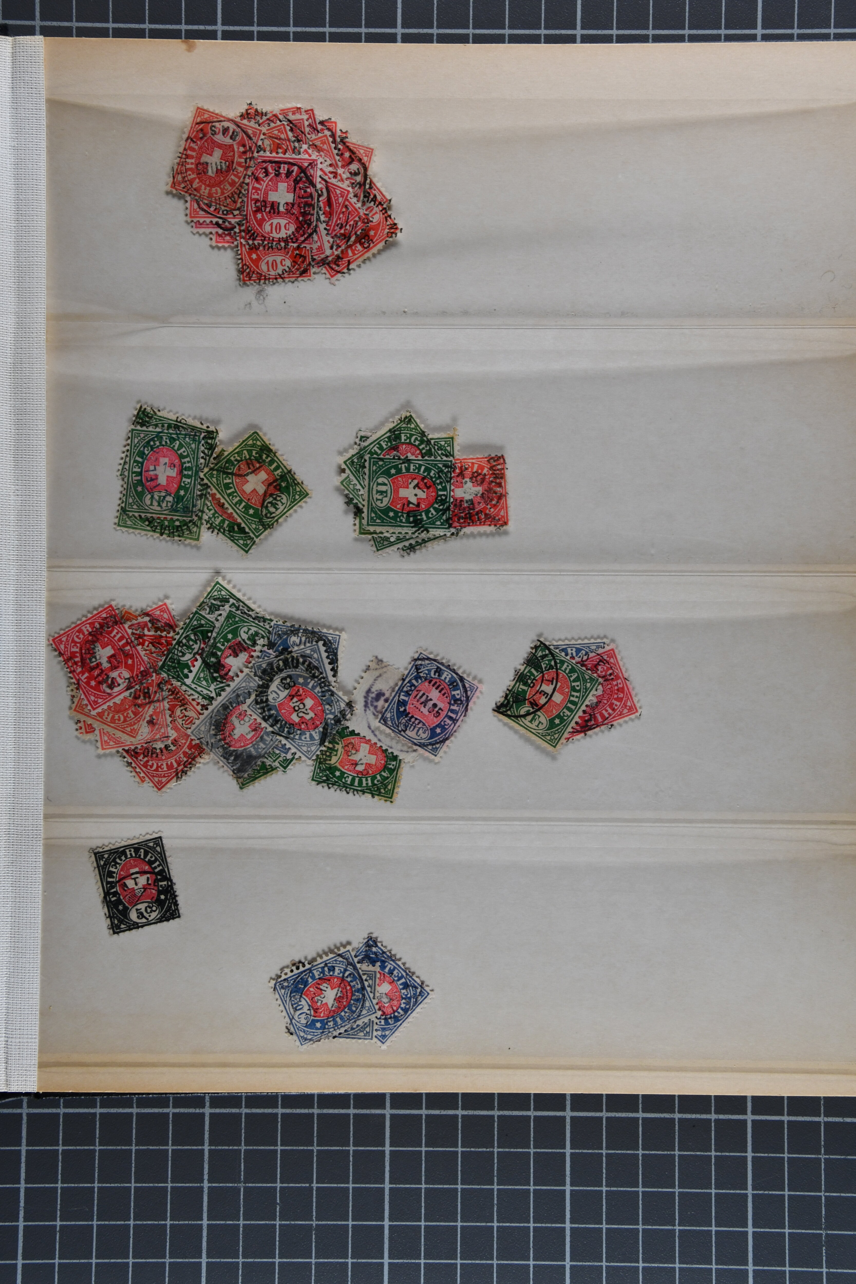 1878/1910: Einsteckbuch mit recht spezialsiert geordnetem Bestand gebraucht und ungebraucht mit Blocks Briefen, enthalten ein bisher ungelisteter Zwergstempel "THÖRIGEN" auf 10 Rp. blau. Geschätzter Katalogwert