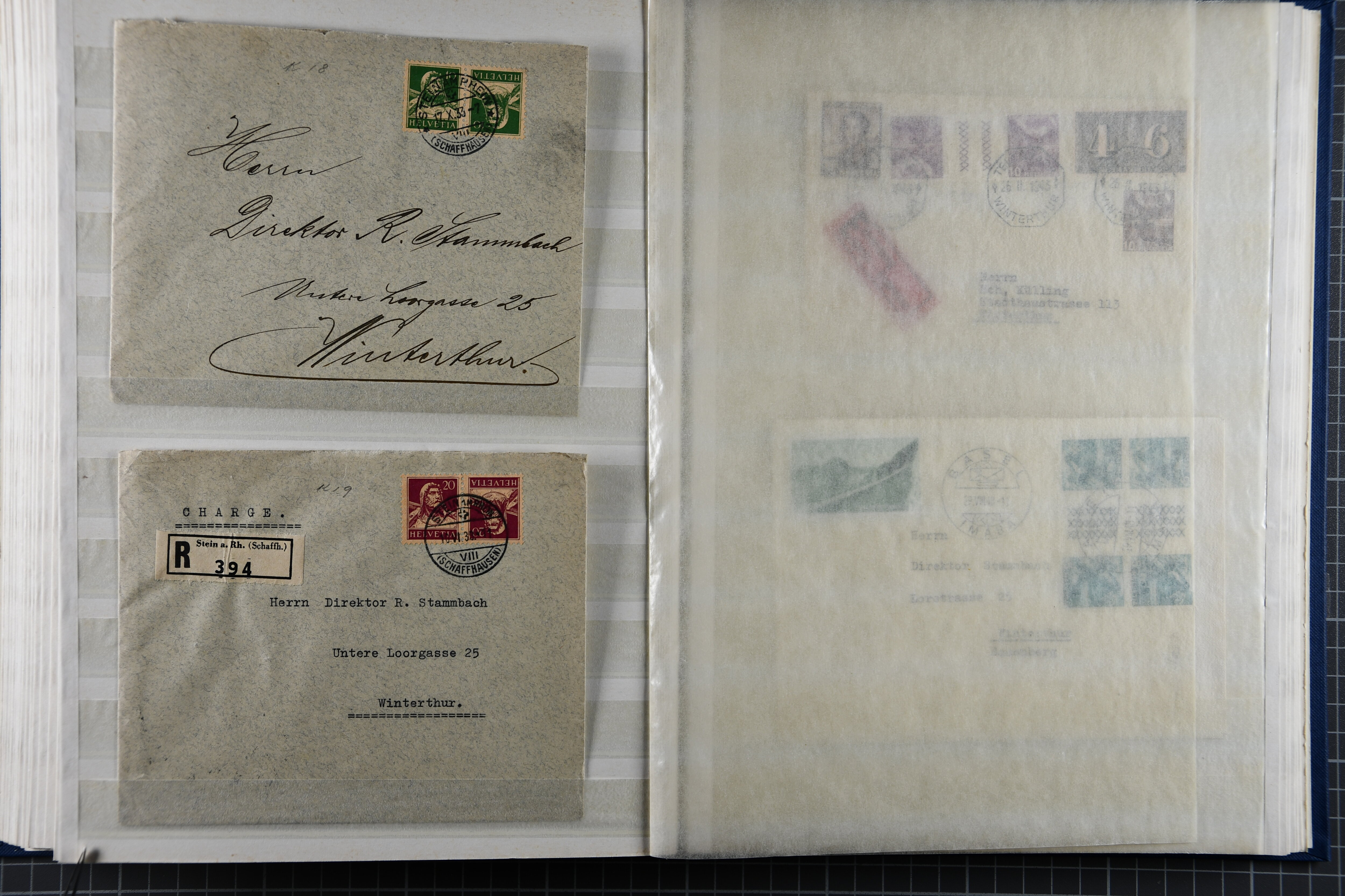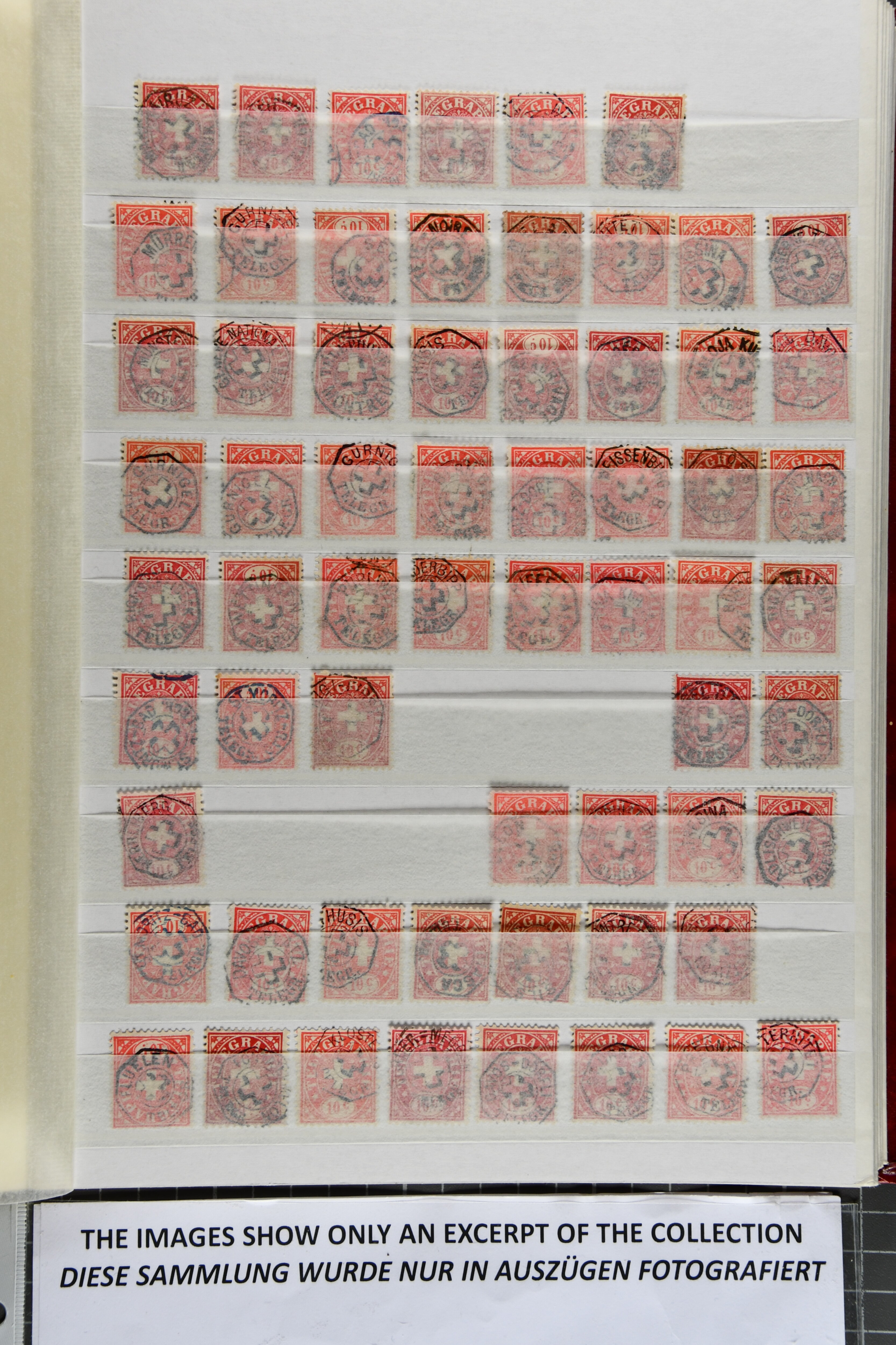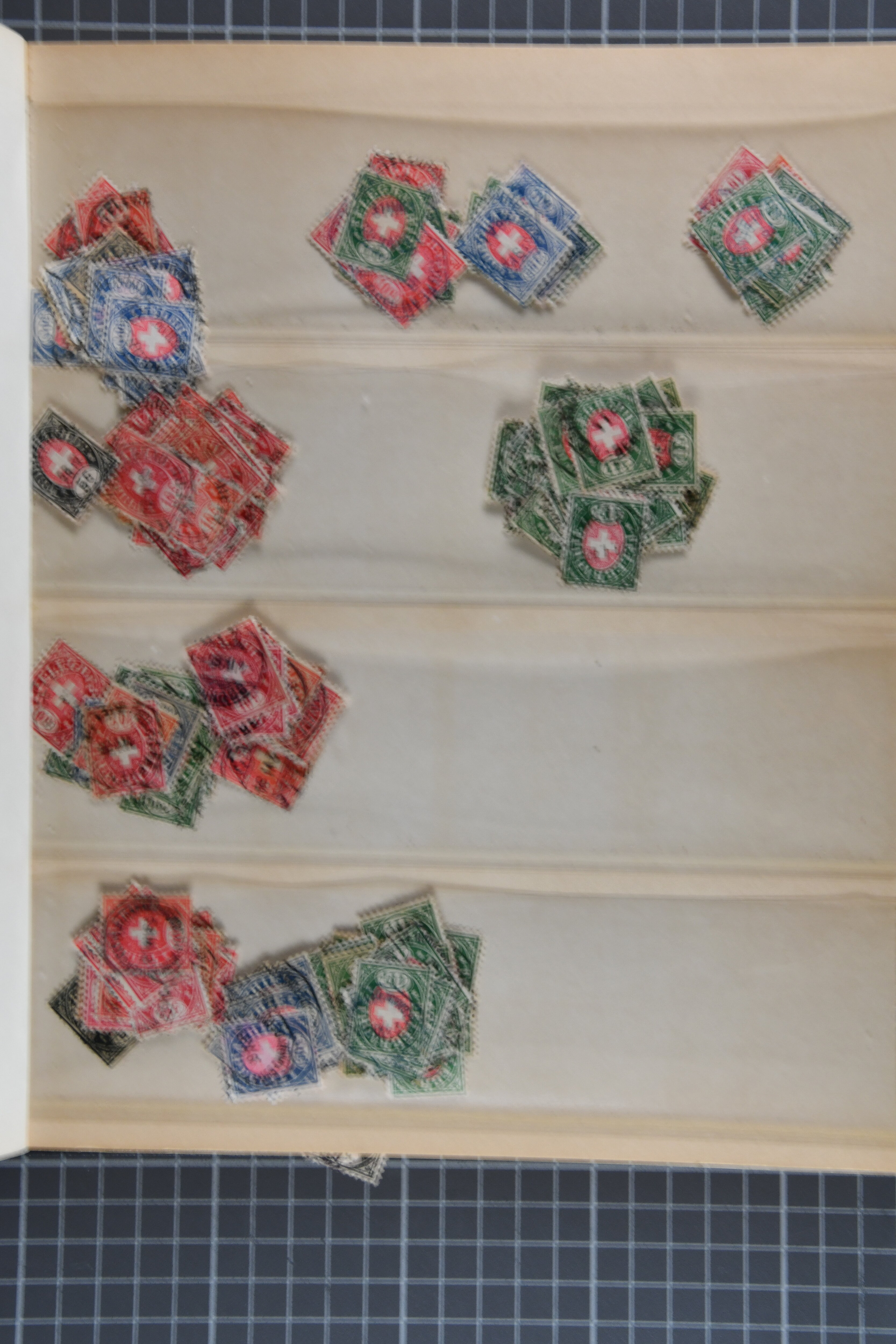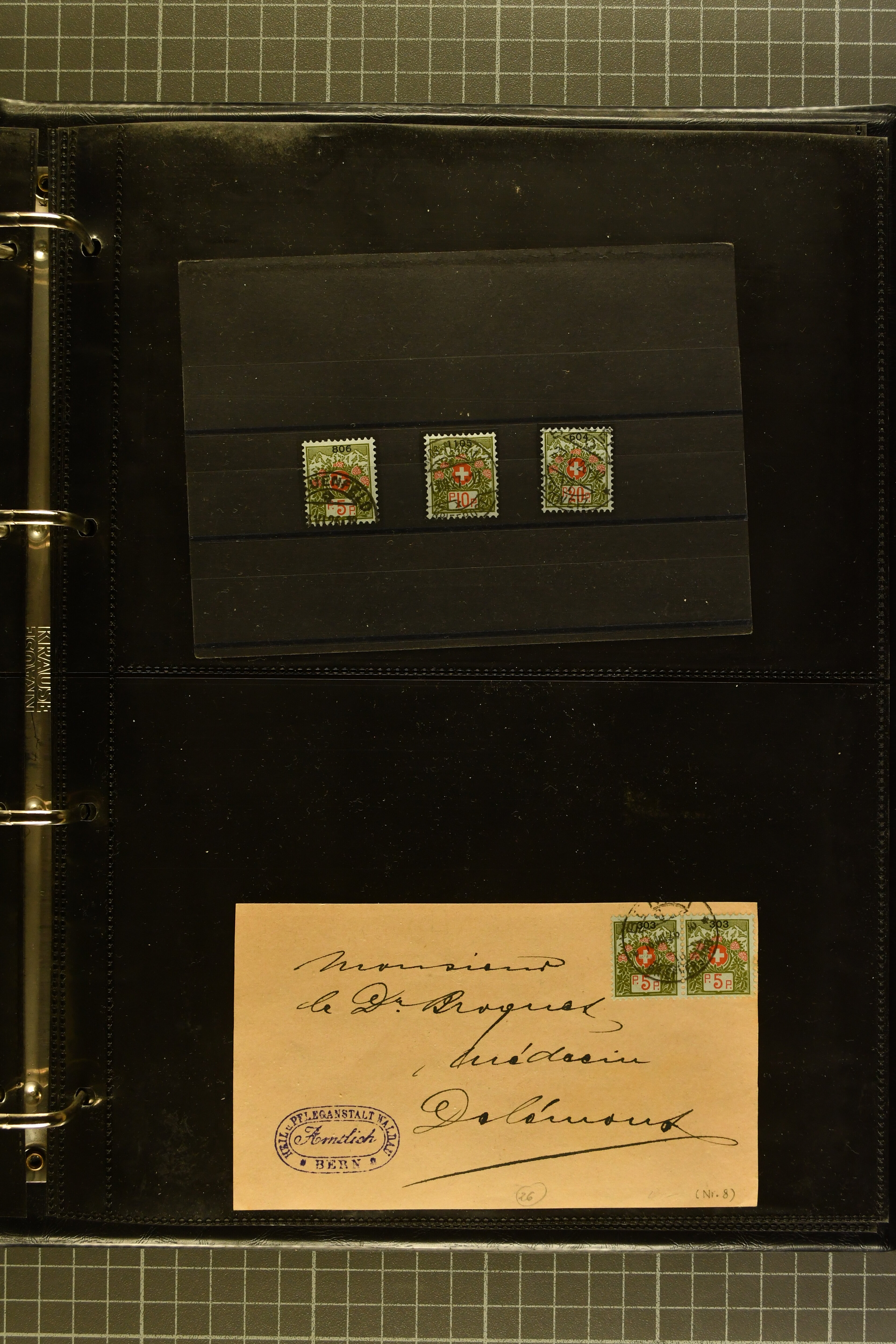 1878/1910: Einsteckbuch mit recht spezialsiert geordnetem Bestand gebraucht und ungebraucht mit Blocks Briefen, enthalten ein bisher ungelisteter Zwergstempel "THÖRIGEN" auf 10 Rp. blau. Geschätzter Katalogwert