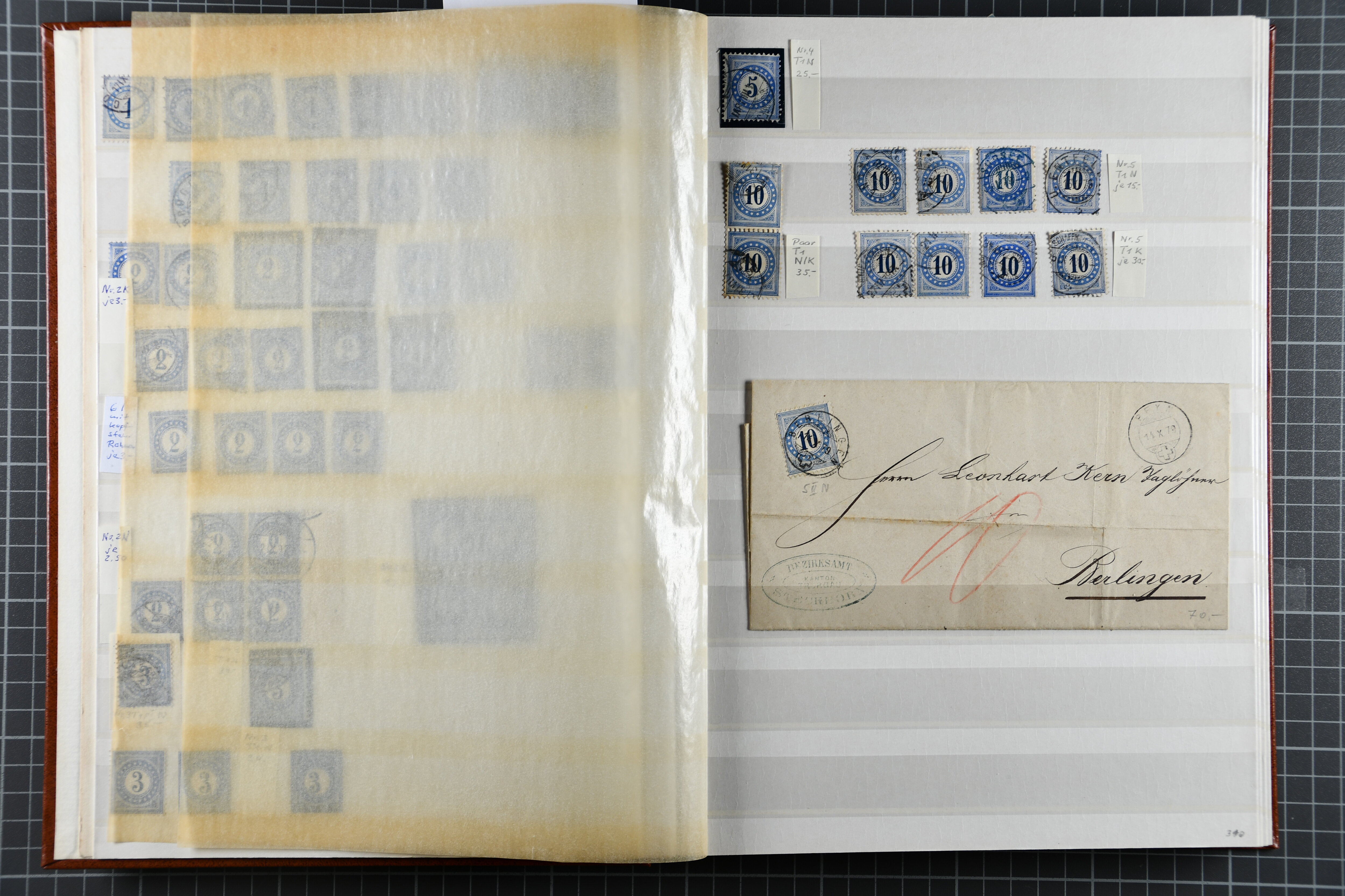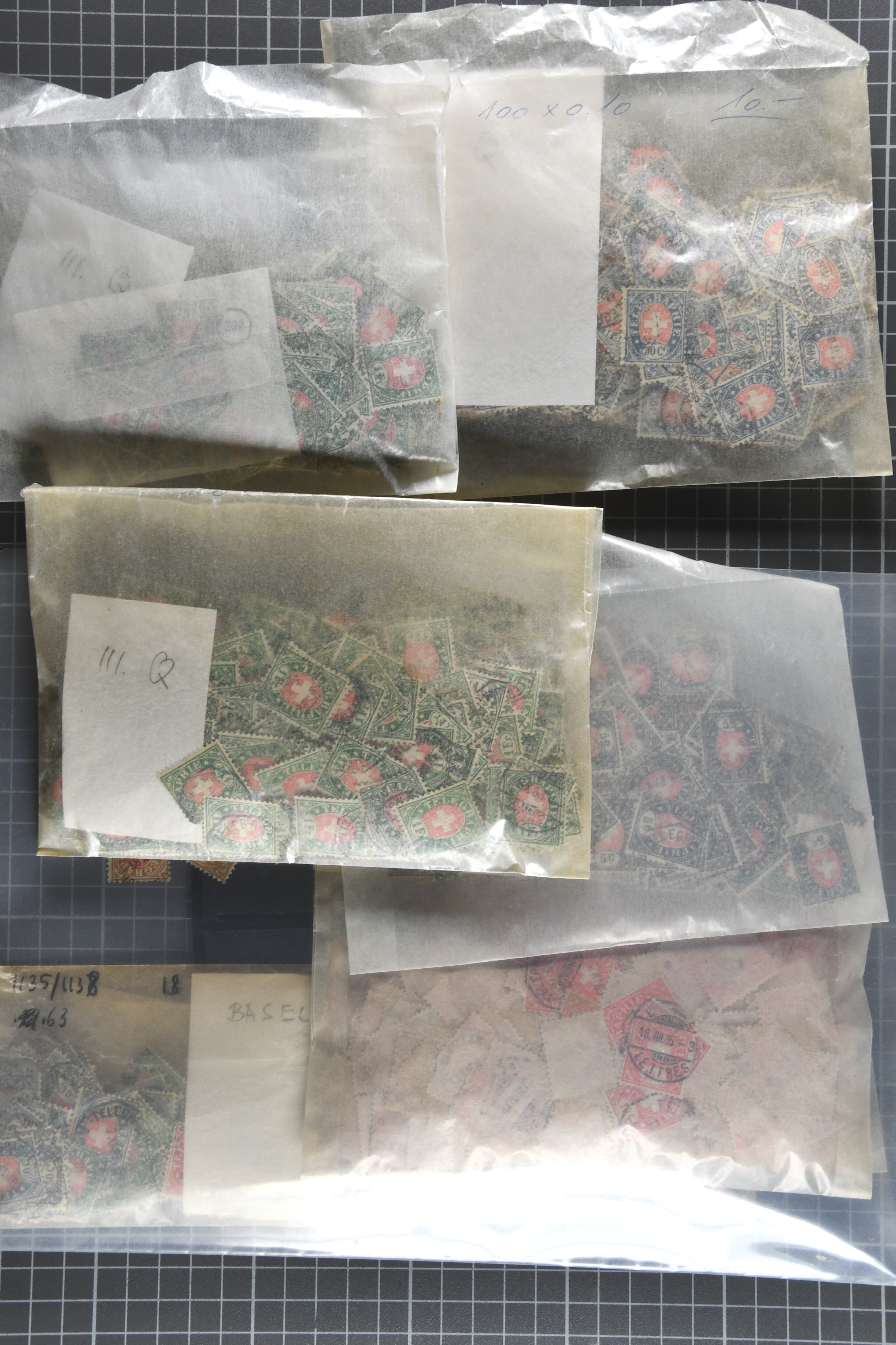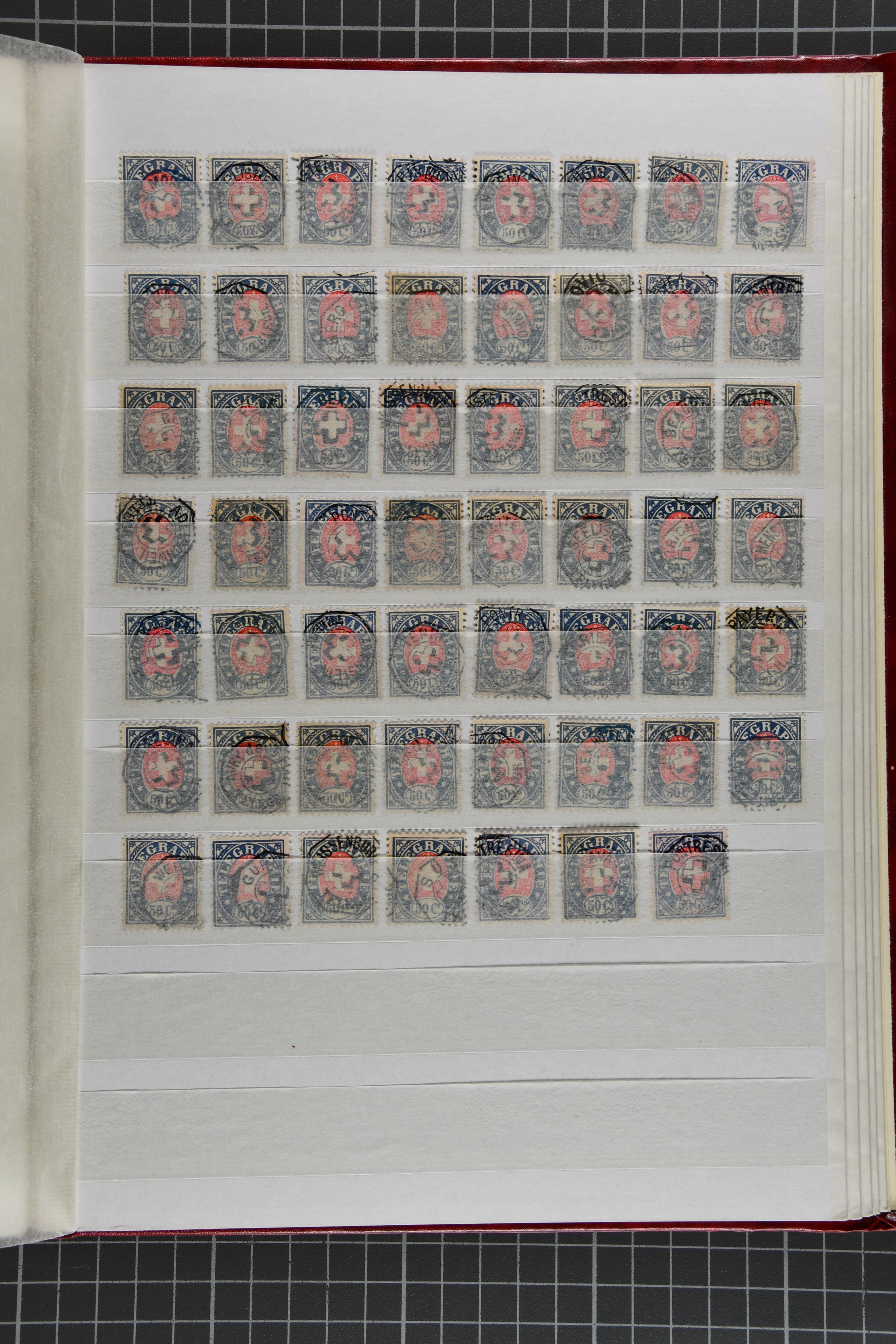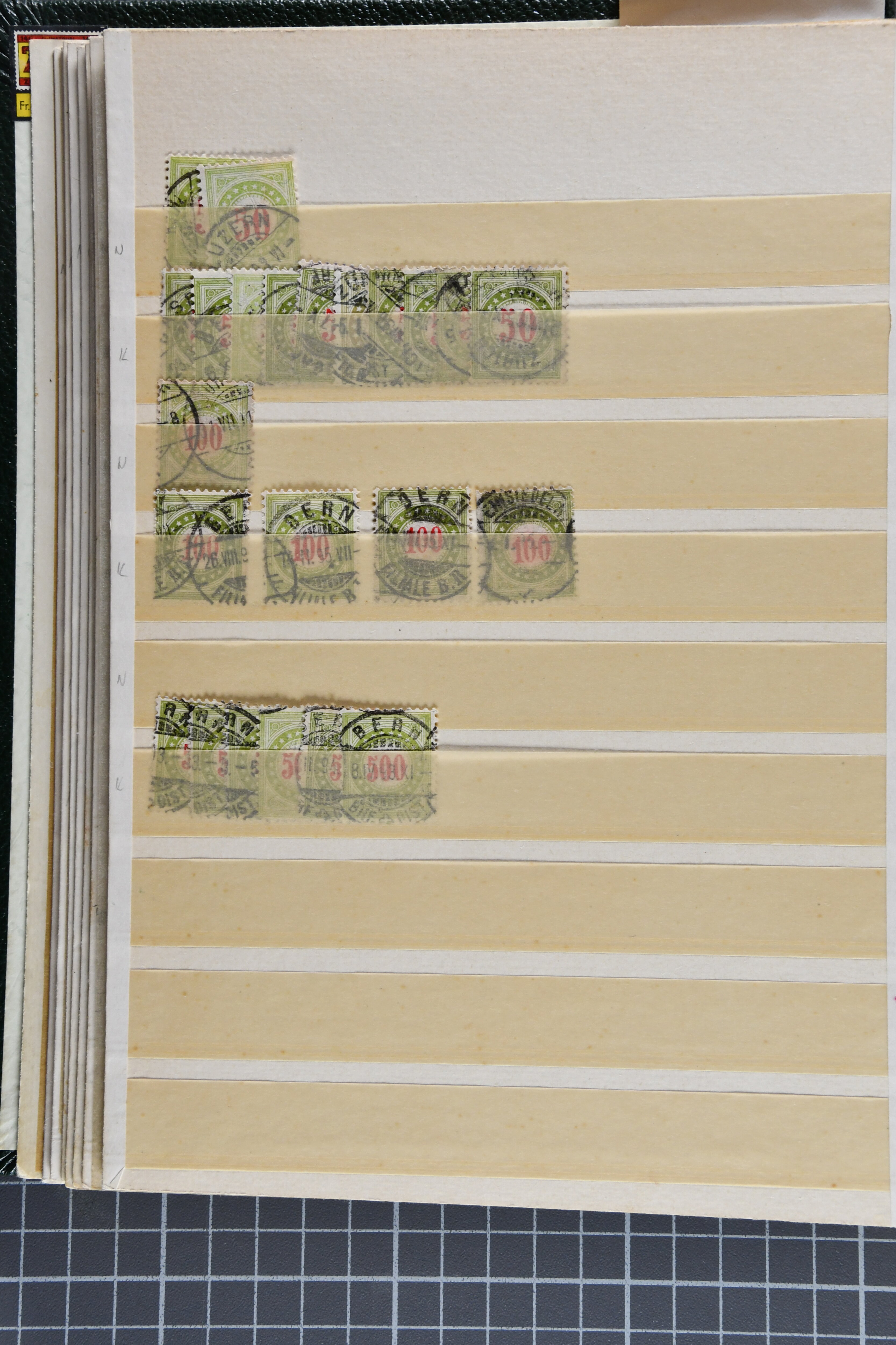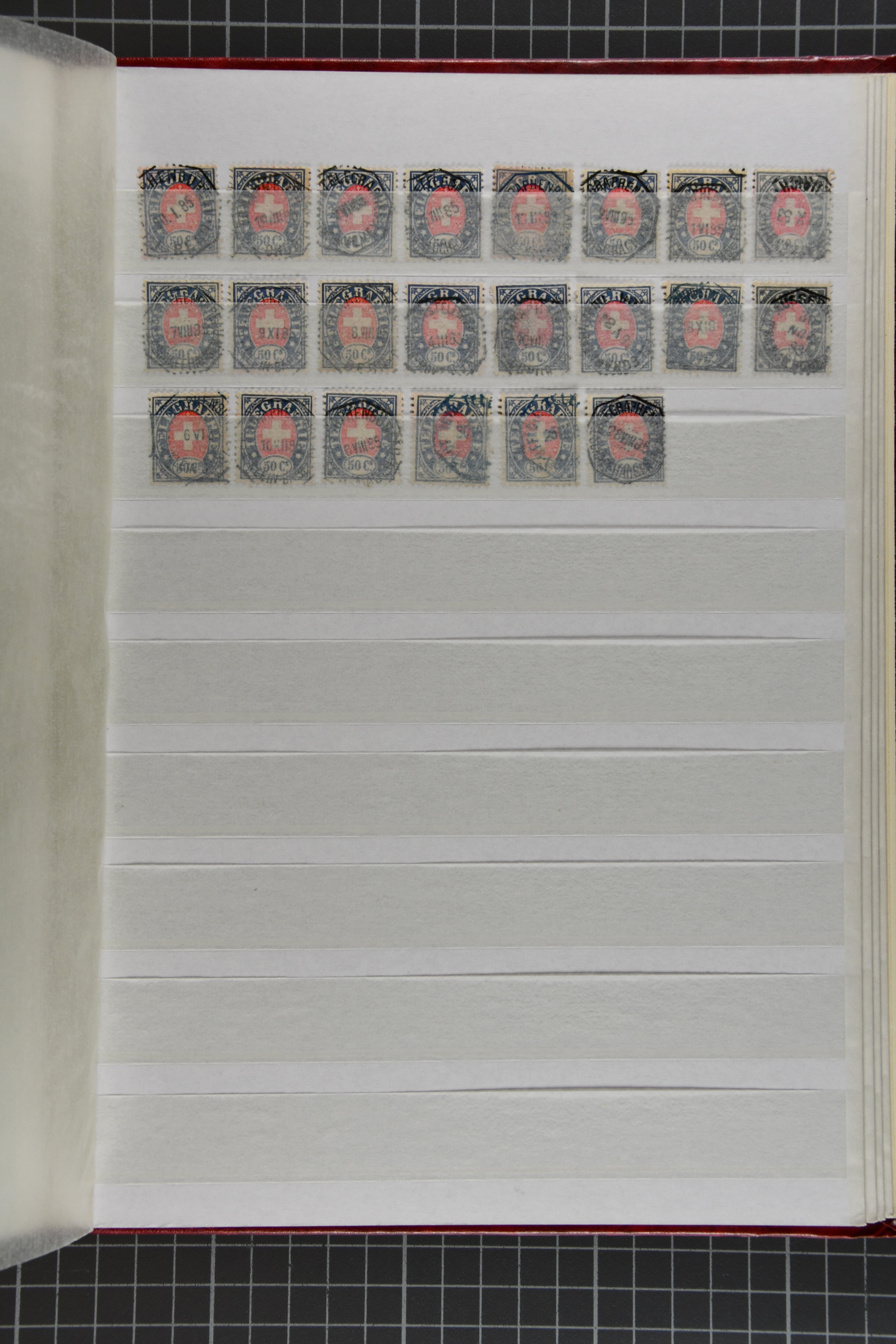 1878/1910: Einsteckbuch mit recht spezialsiert geordnetem Bestand gebraucht und ungebraucht mit Blocks Briefen, enthalten ein bisher ungelisteter Zwergstempel "THÖRIGEN" auf 10 Rp. blau. Geschätzter Katalogwert