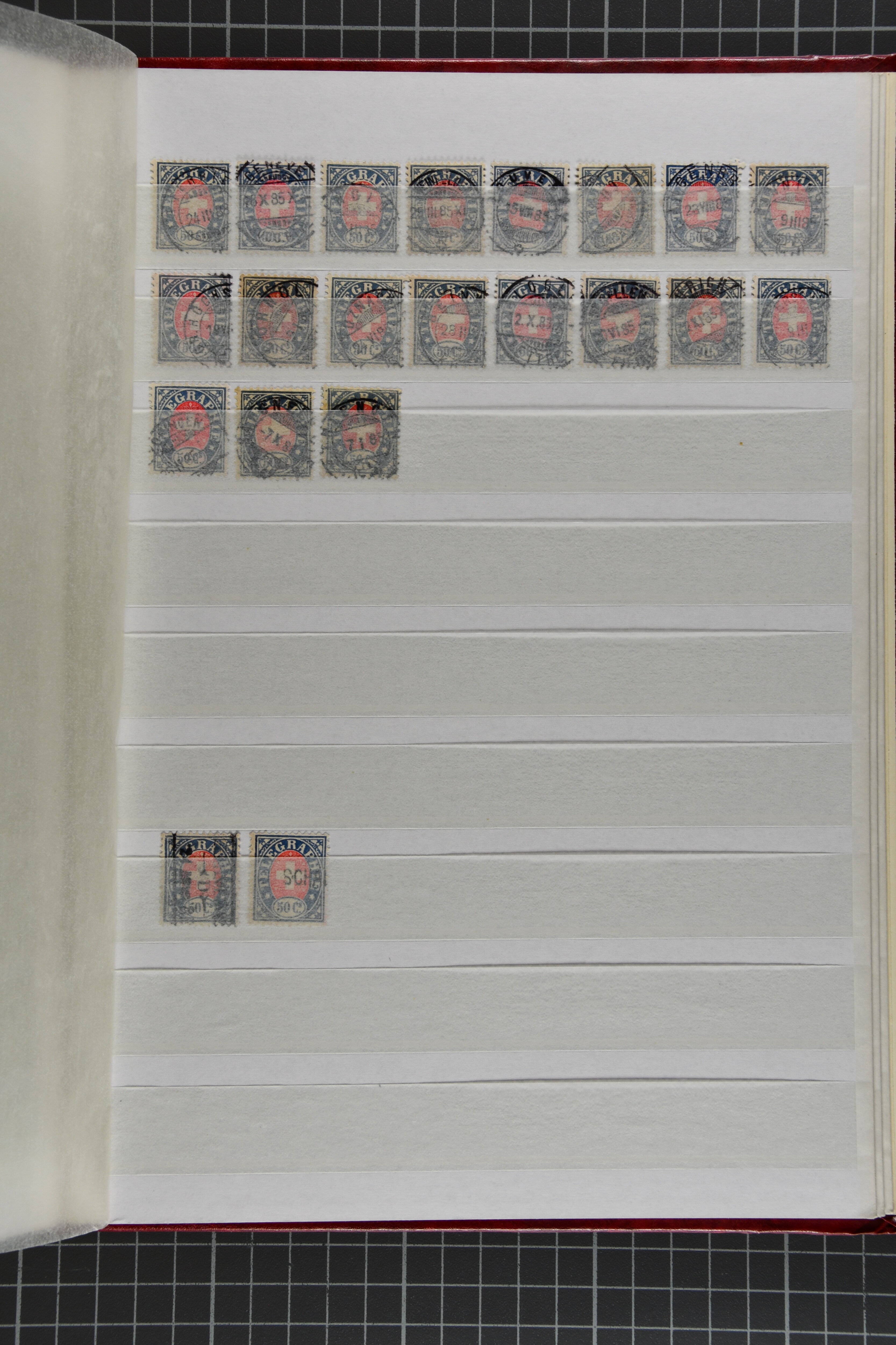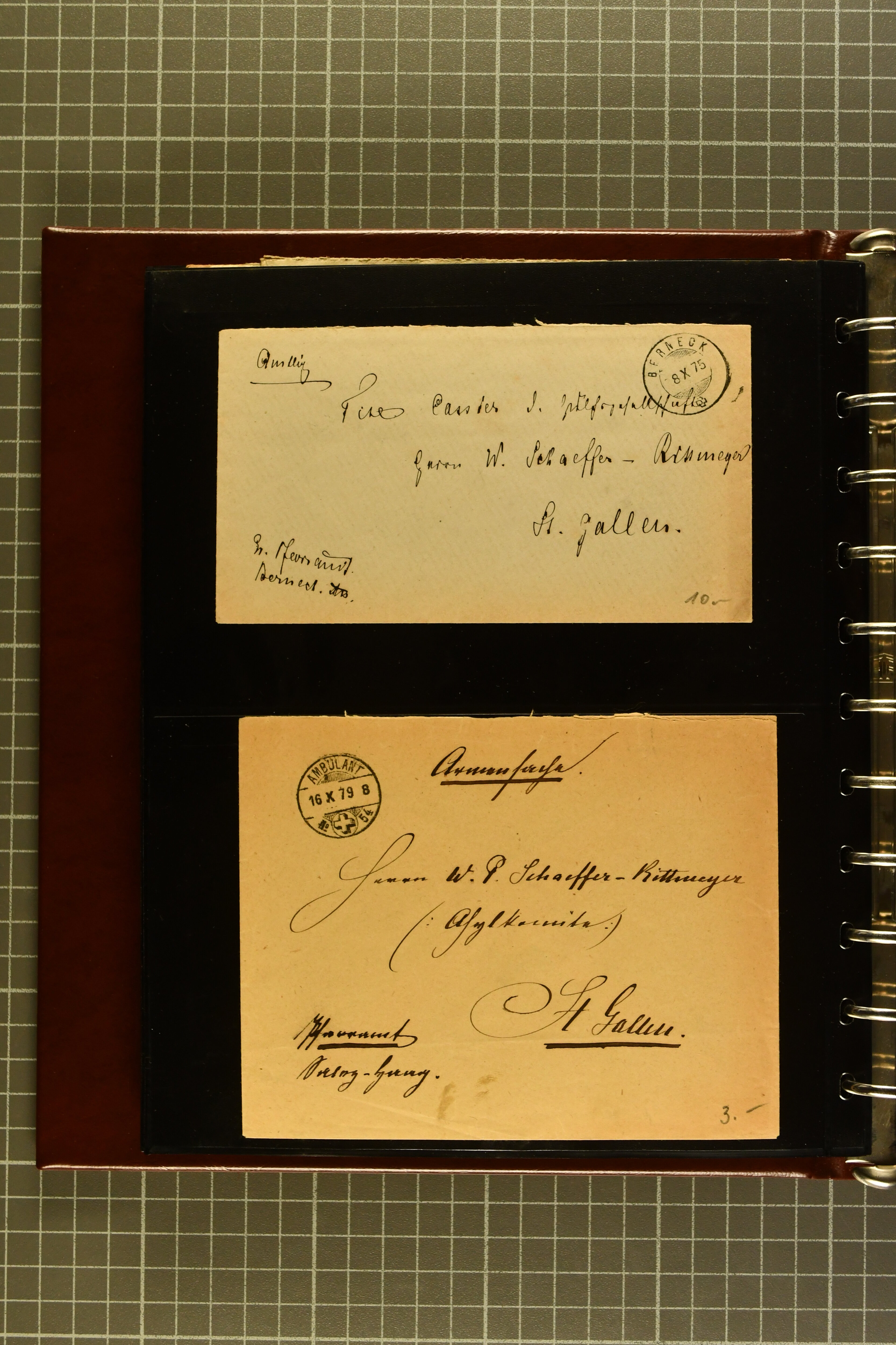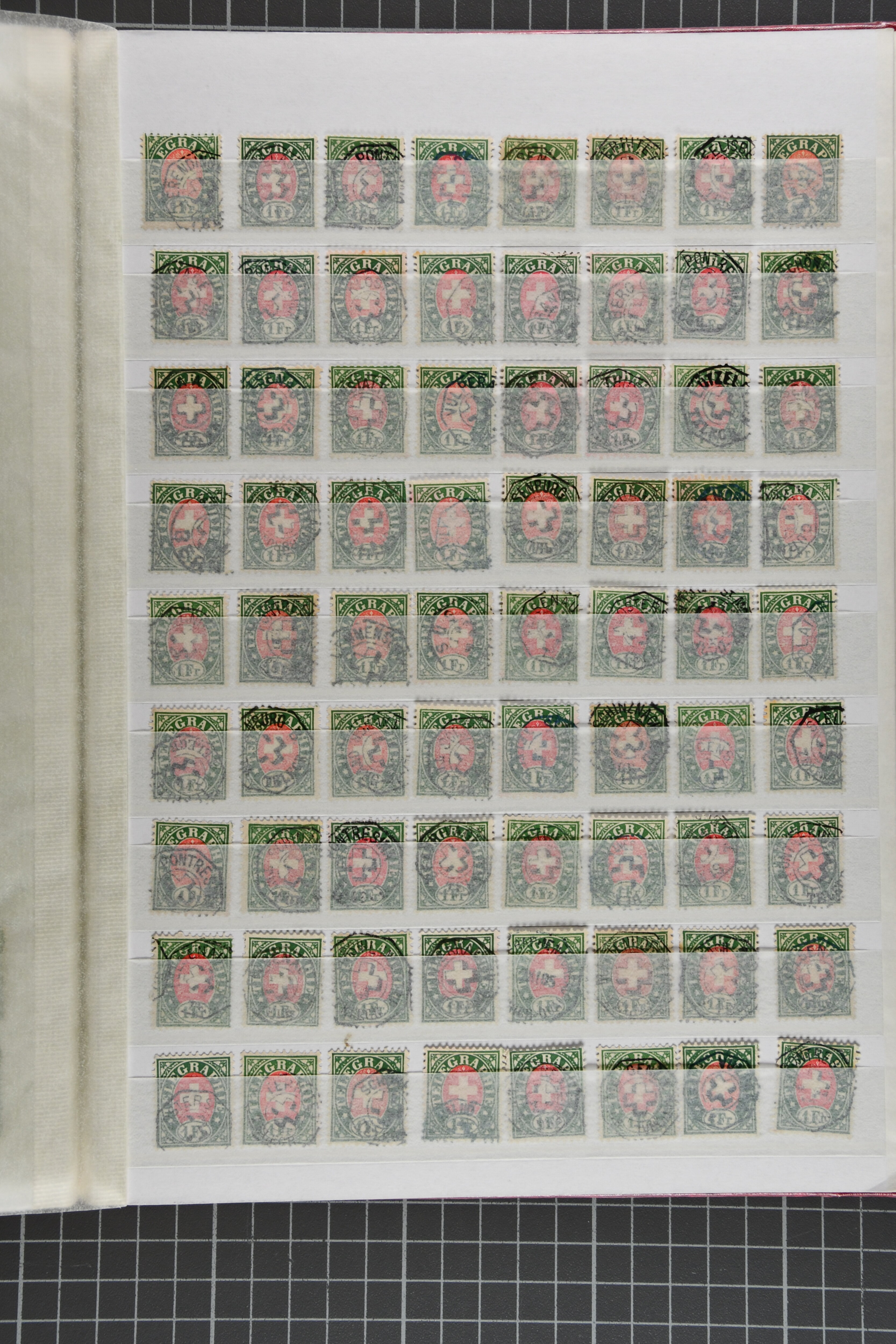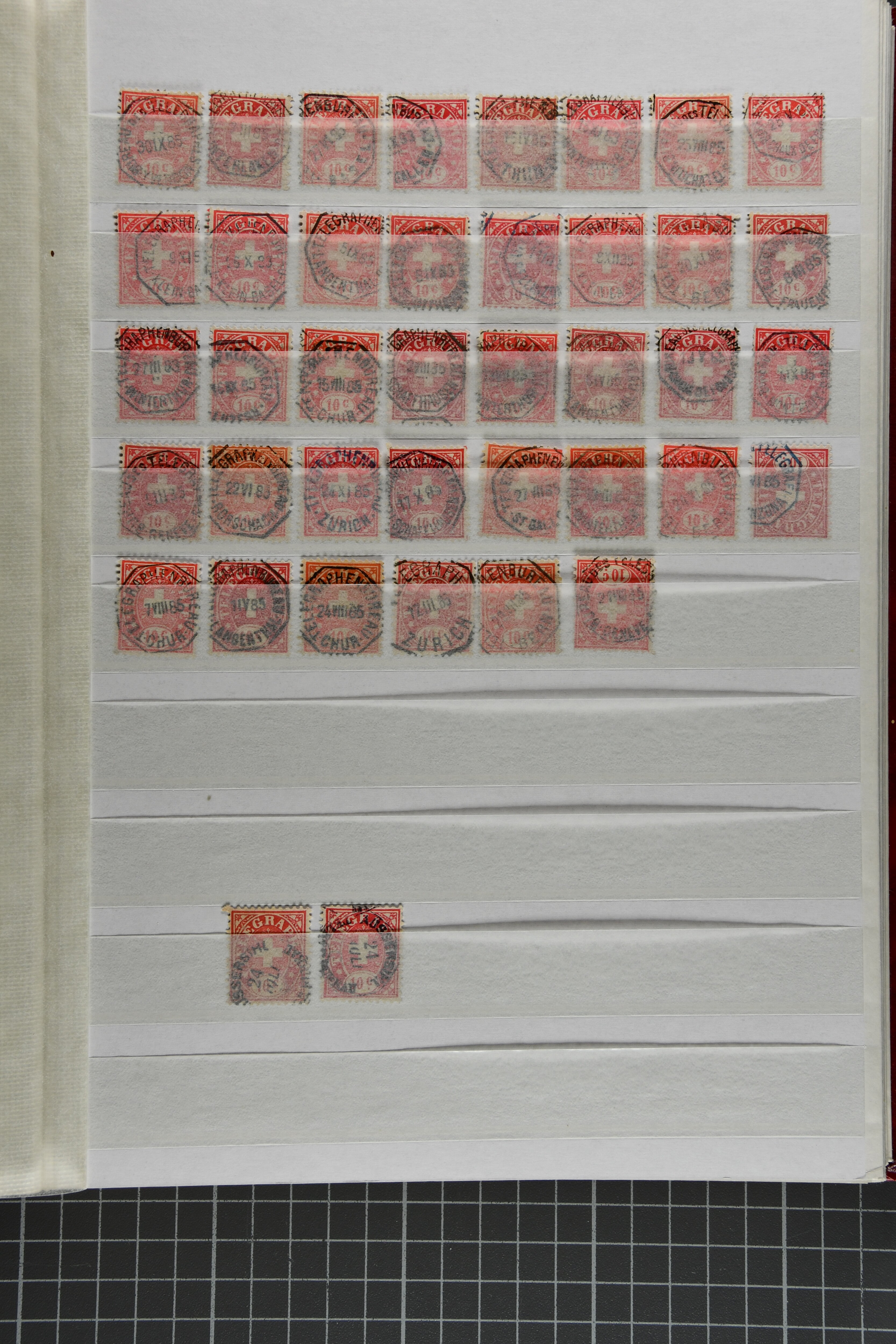 1878/1910: Einsteckbuch mit recht spezialsiert geordnetem Bestand gebraucht und ungebraucht mit Blocks Briefen, enthalten ein bisher ungelisteter Zwergstempel "THÖRIGEN" auf 10 Rp. blau. Geschätzter Katalogwert