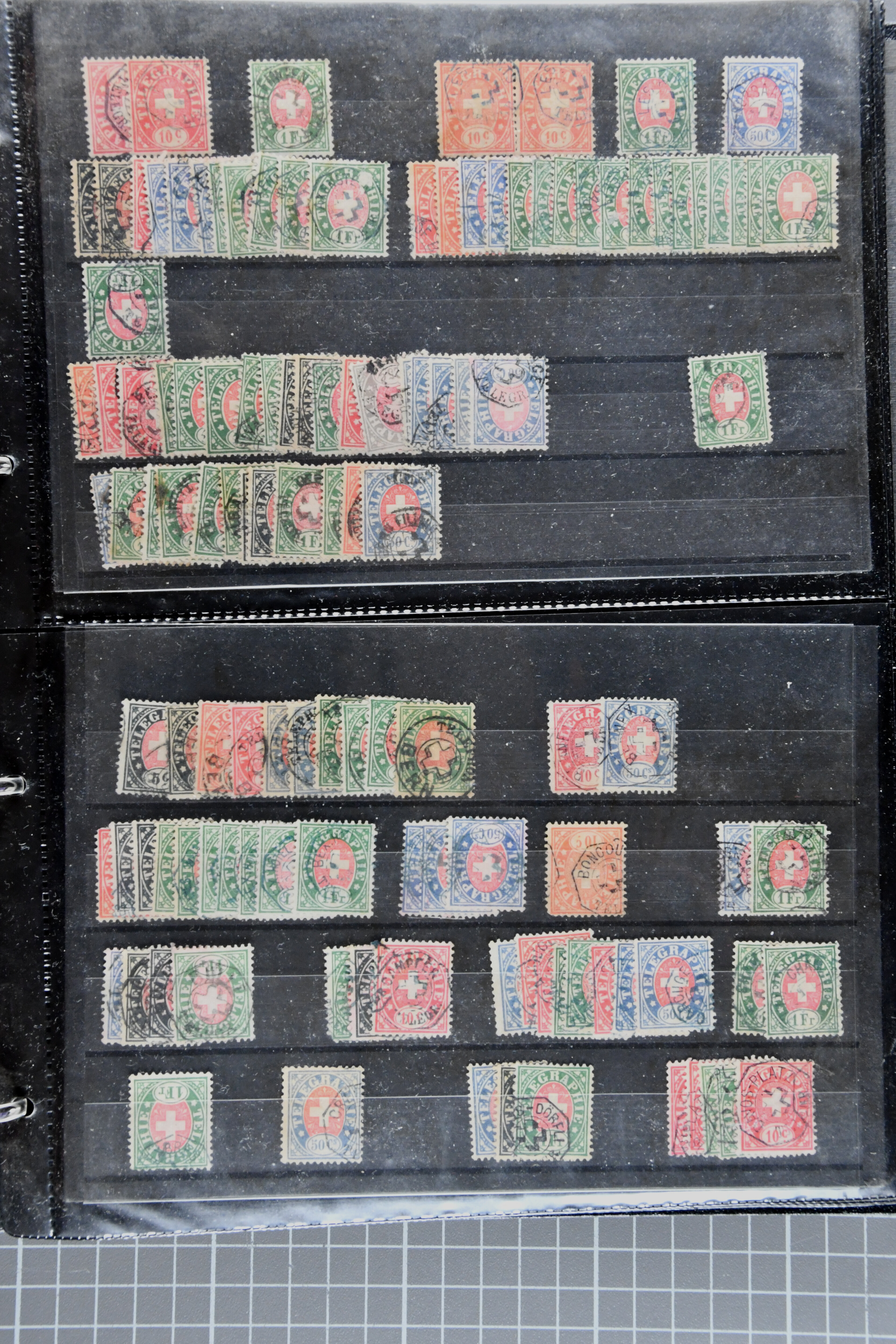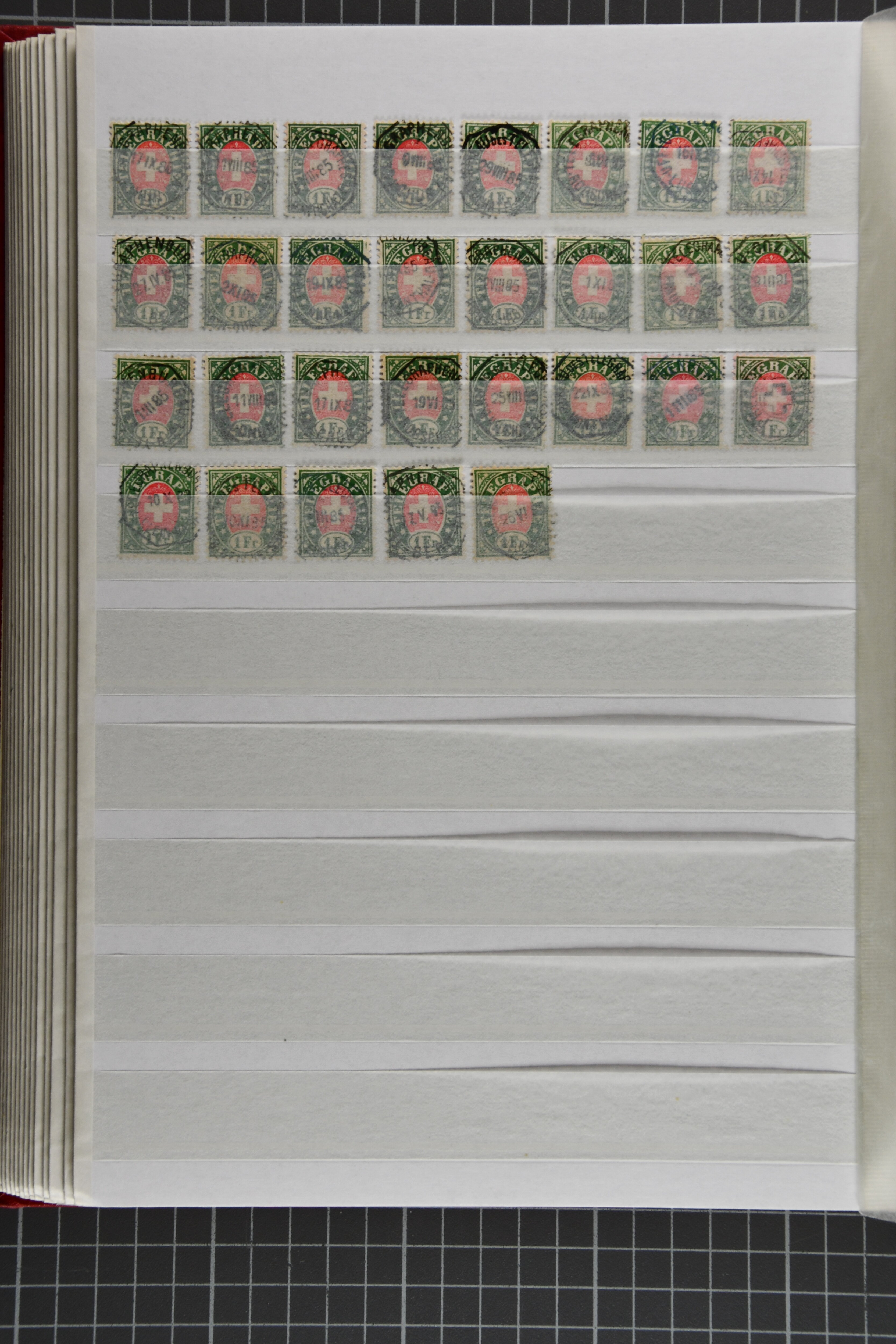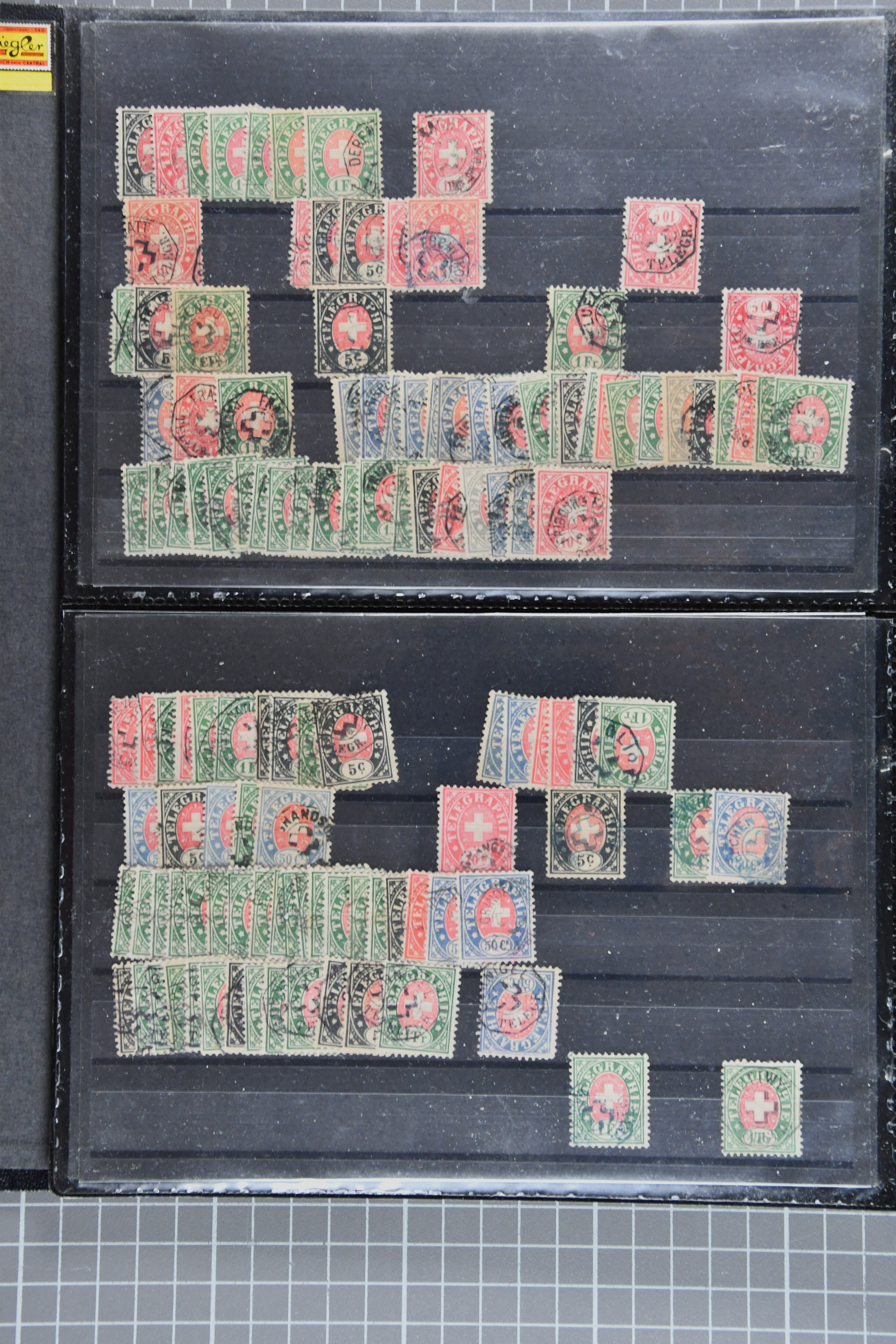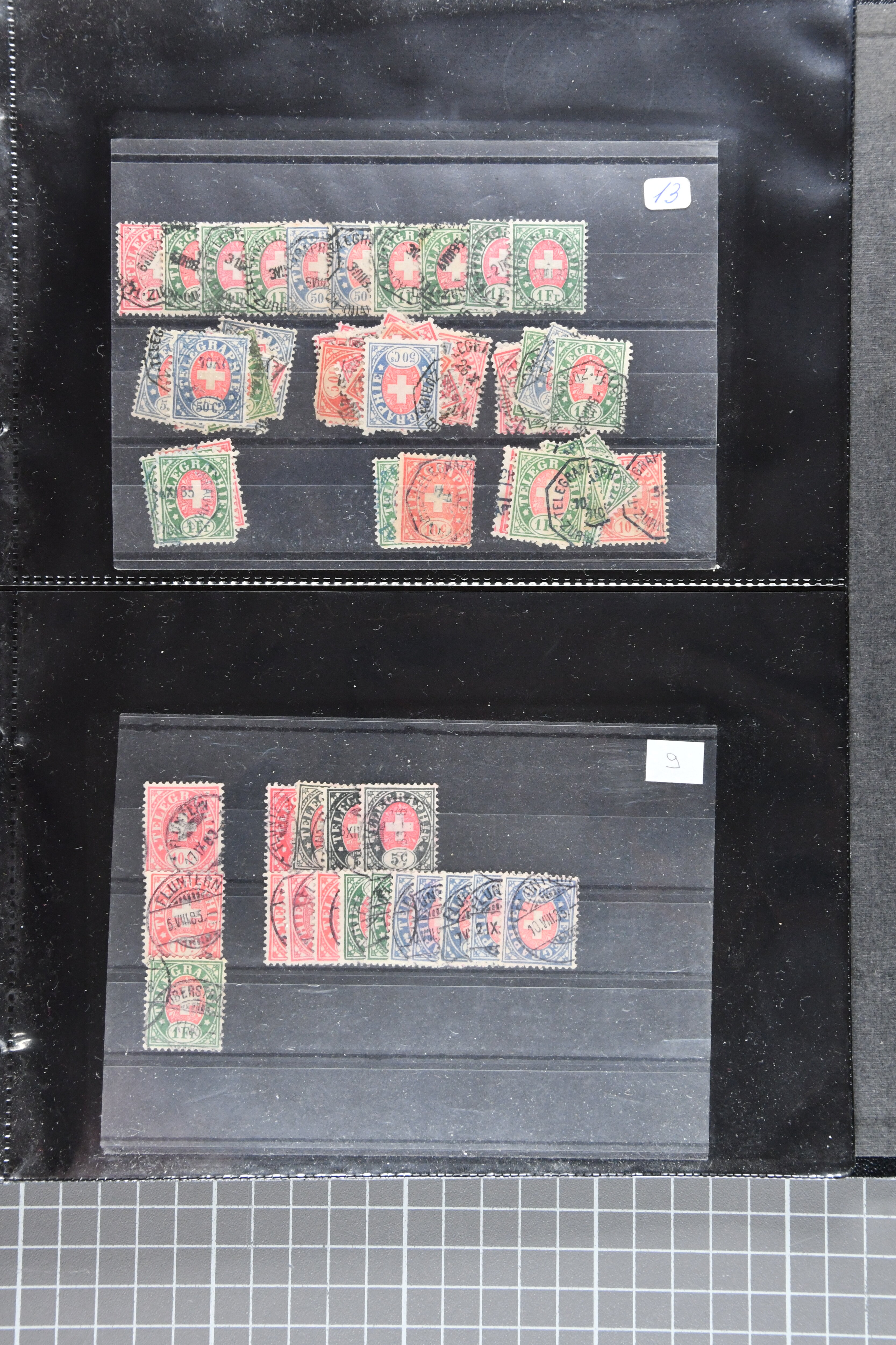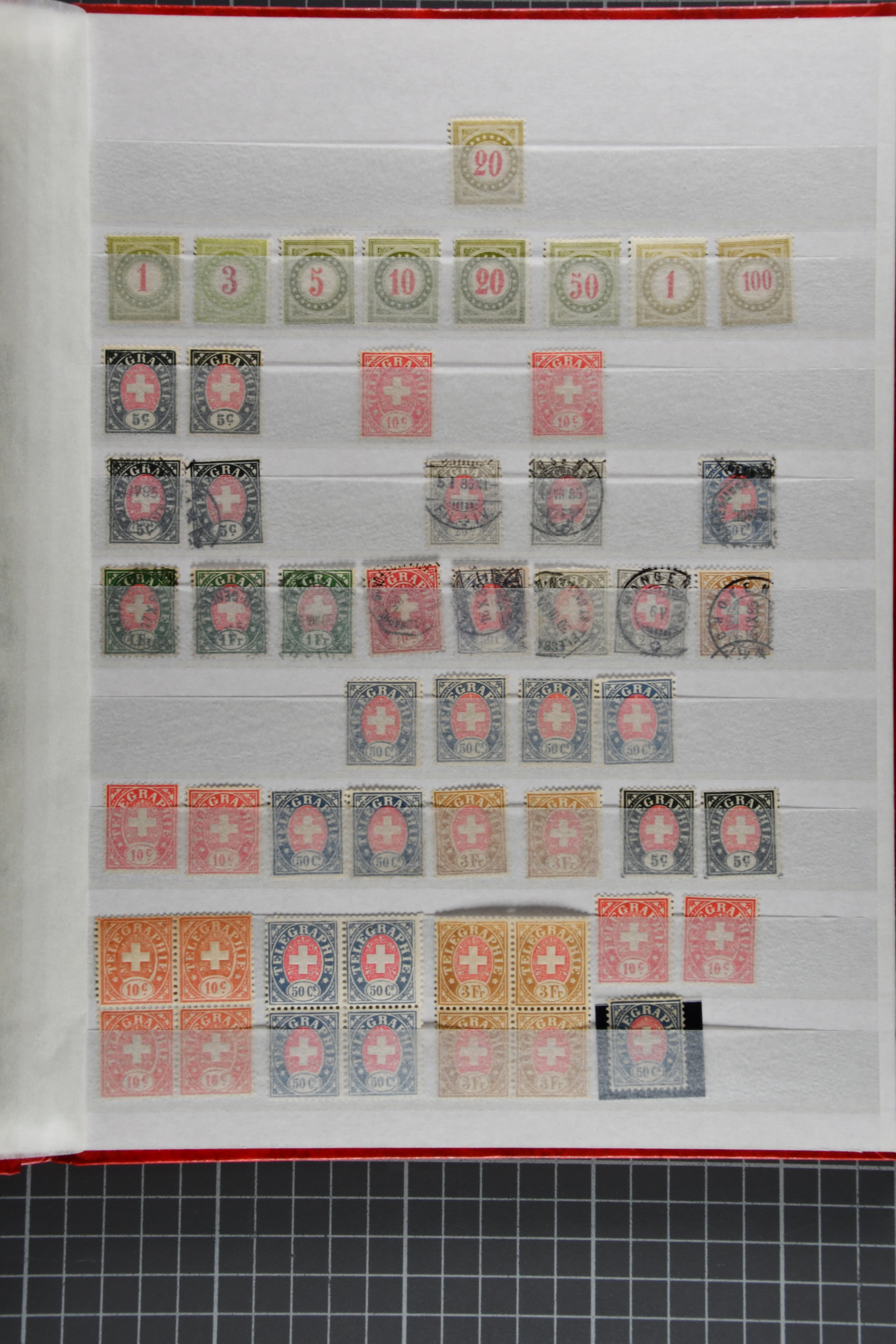 1878/1910: Einsteckbuch mit recht spezialsiert geordnetem Bestand gebraucht und ungebraucht mit Blocks Briefen, enthalten ein bisher ungelisteter Zwergstempel "THÖRIGEN" auf 10 Rp. blau. Geschätzter Katalogwert