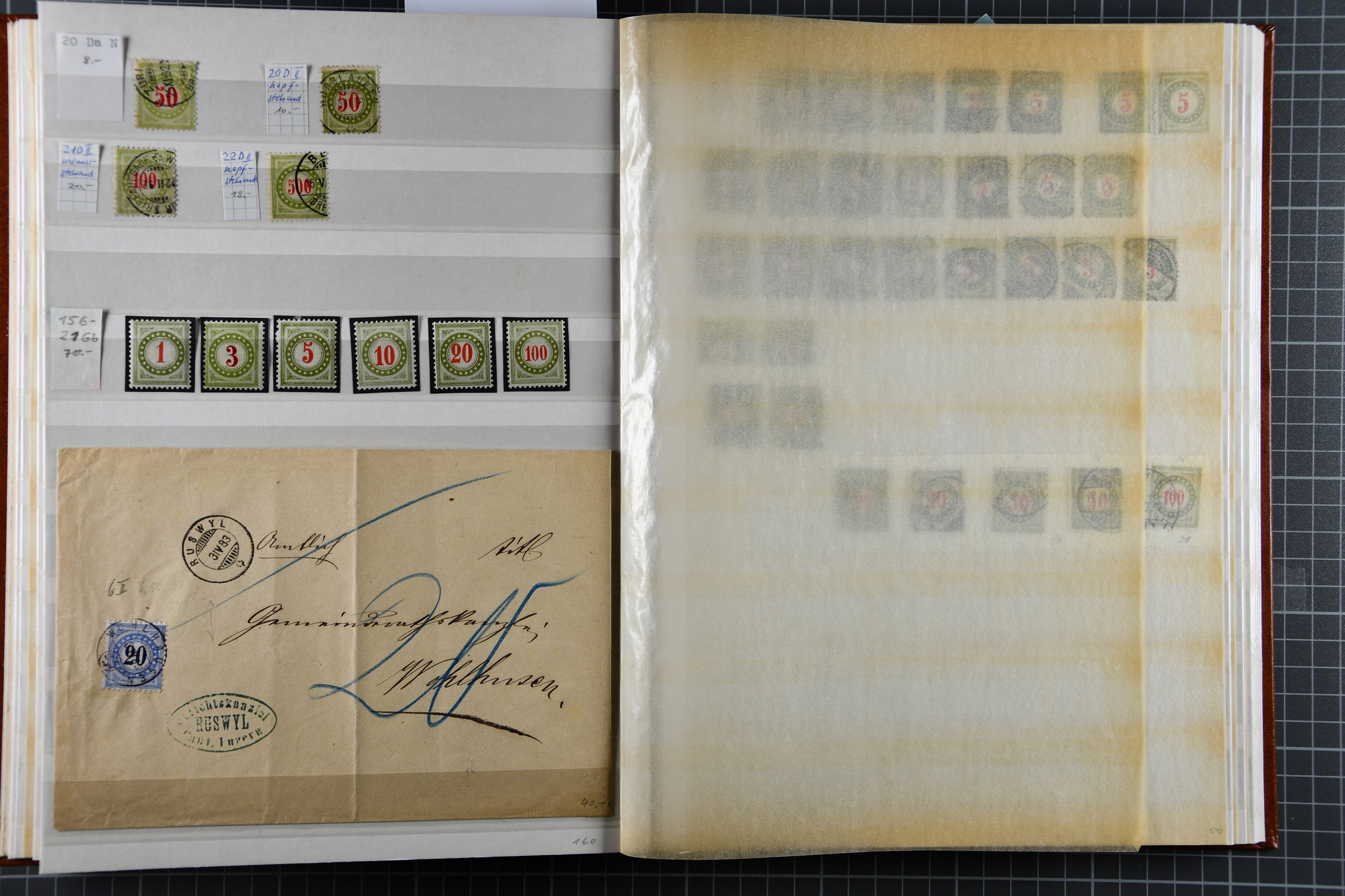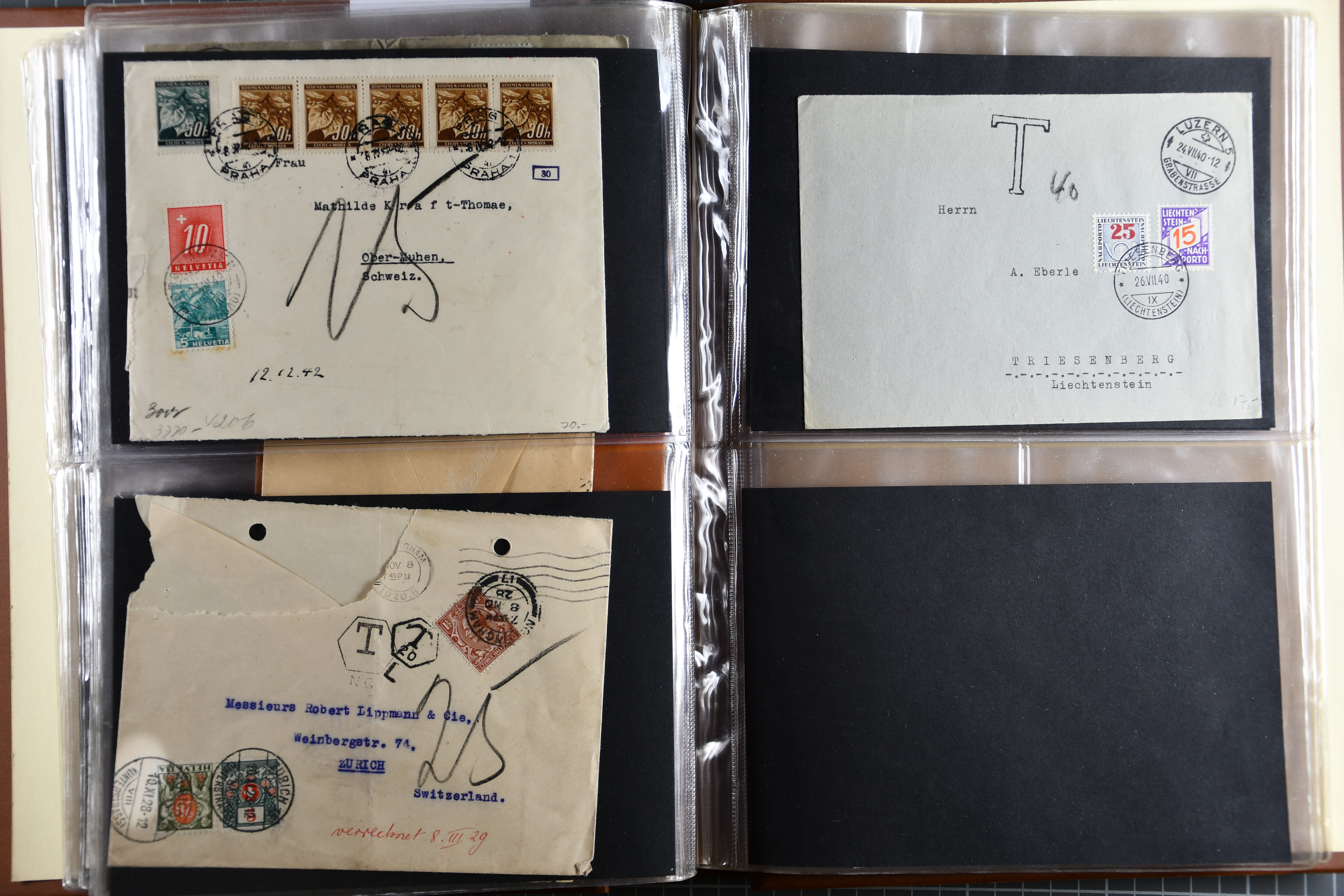 Taxierungen. Zudem drei Belege mit liechtensteinischen Nachportomarken, davon zwei in Mischfrankatur mit schweizerischen Portomarken. Überwiegend in guter Bedarfserhaltung. (Image 1)