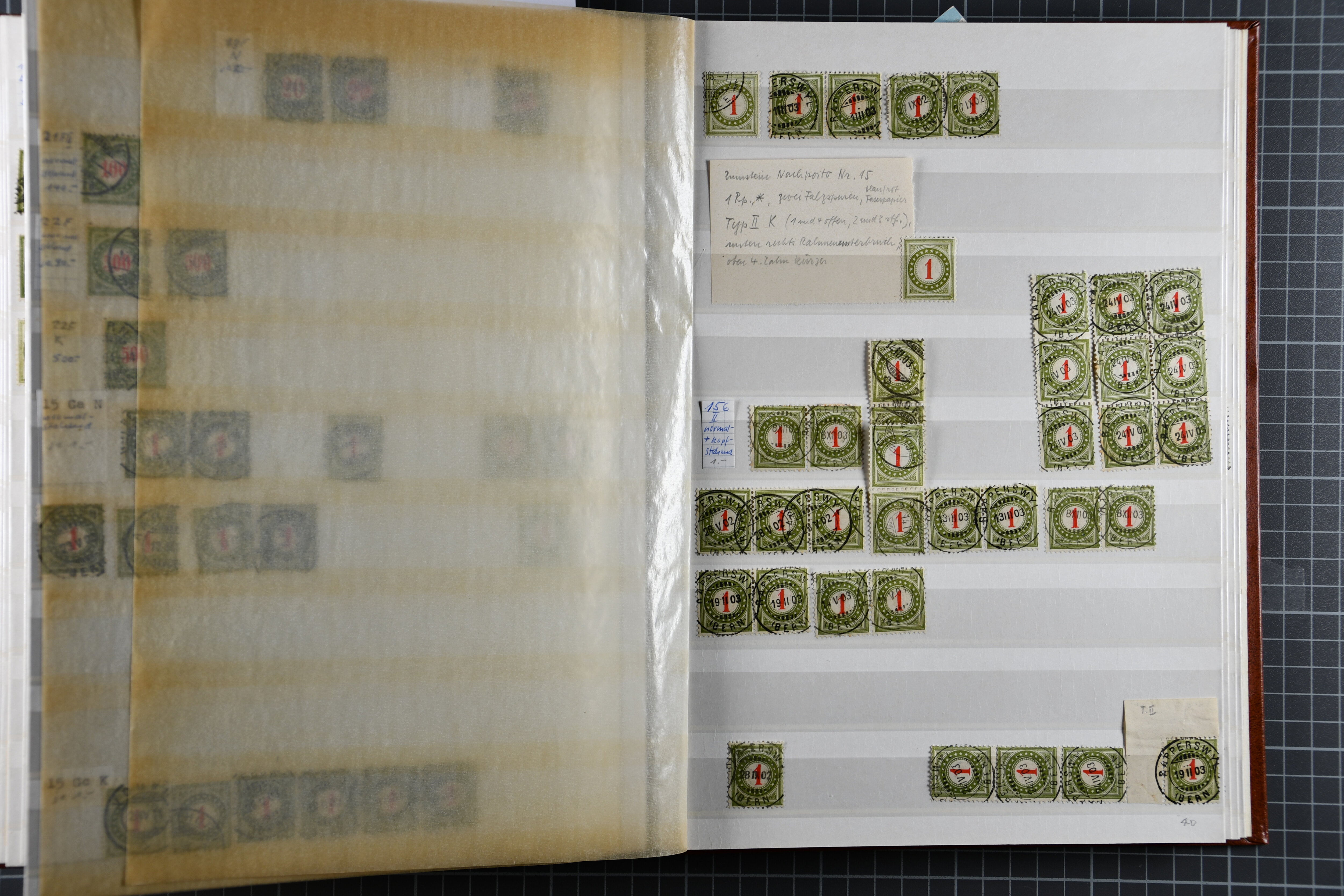 Ämter). Ergänzt durch Tüten und auf Steckseiten vorgeordnete Marken mit etlichen tausend Werten, sowie einen letzten Ordner mit Marken als Farbmuster. (Image 1)