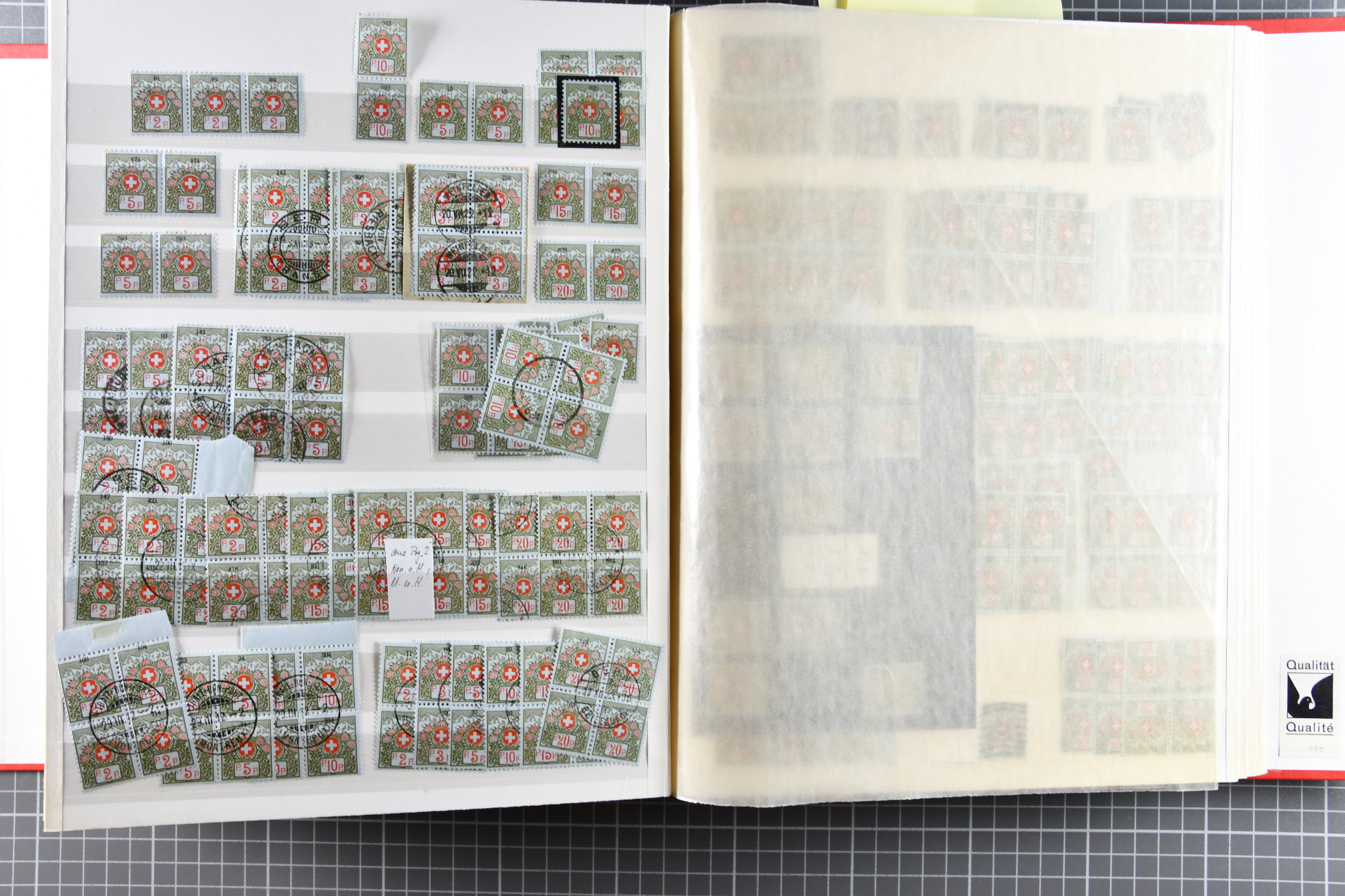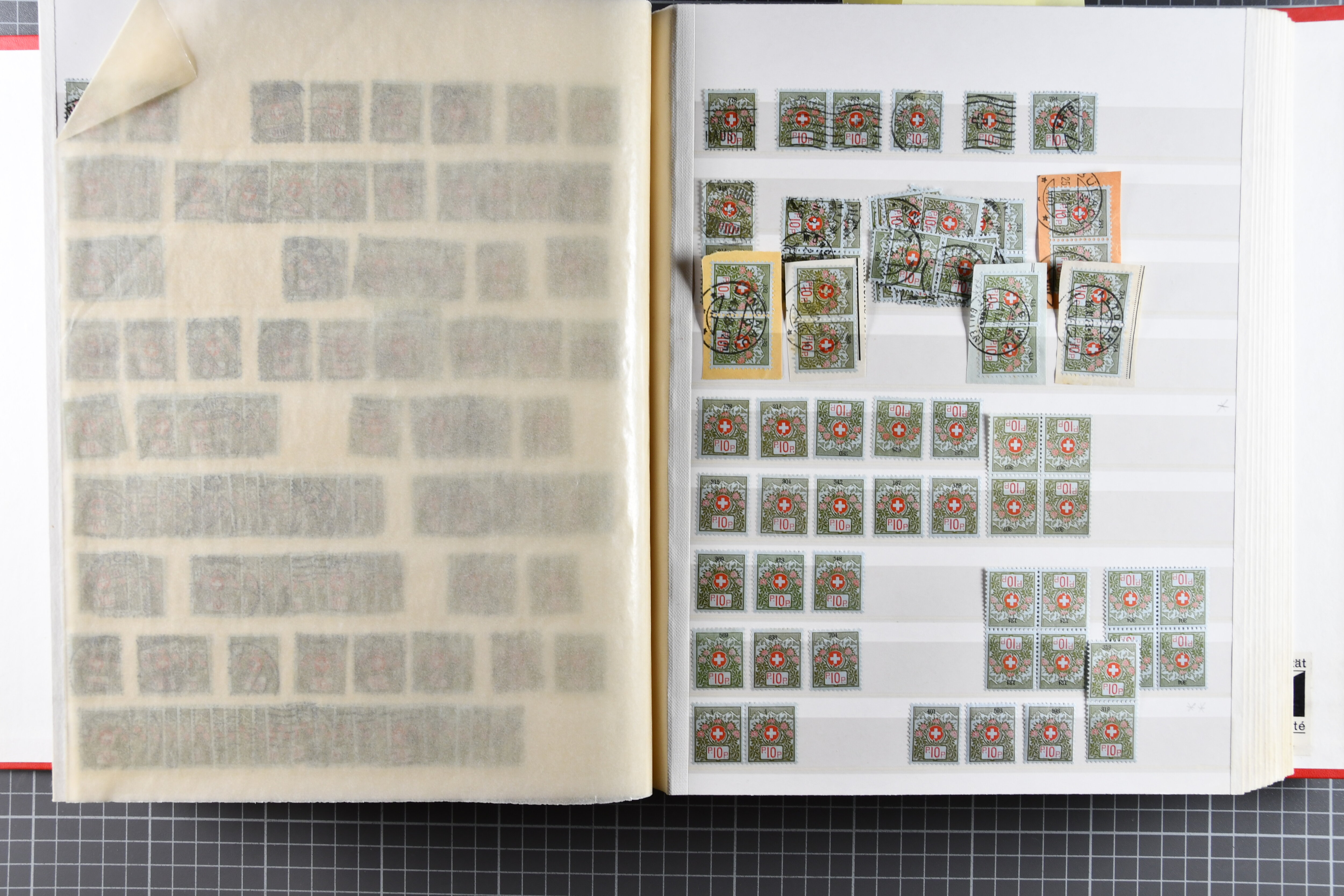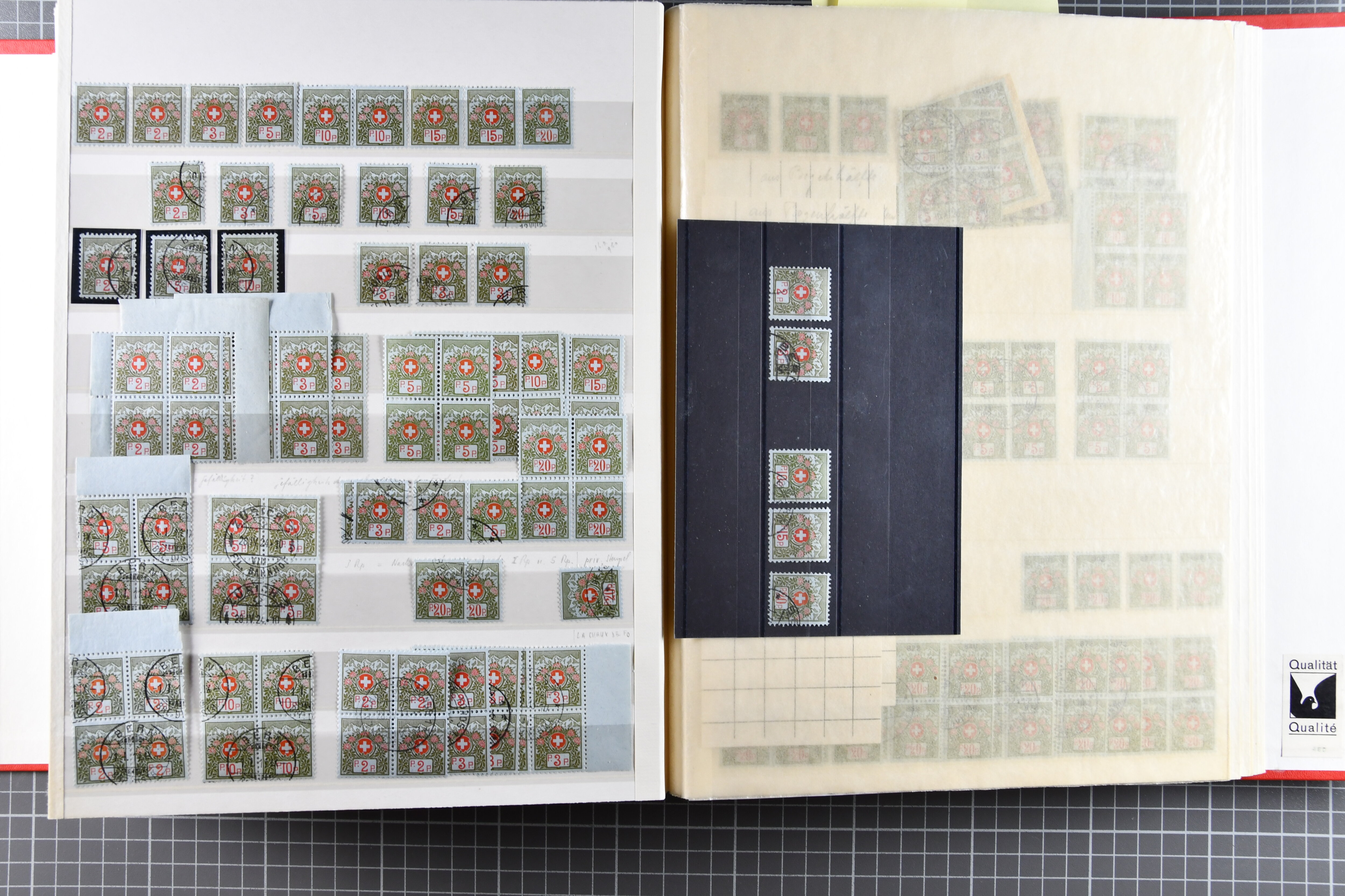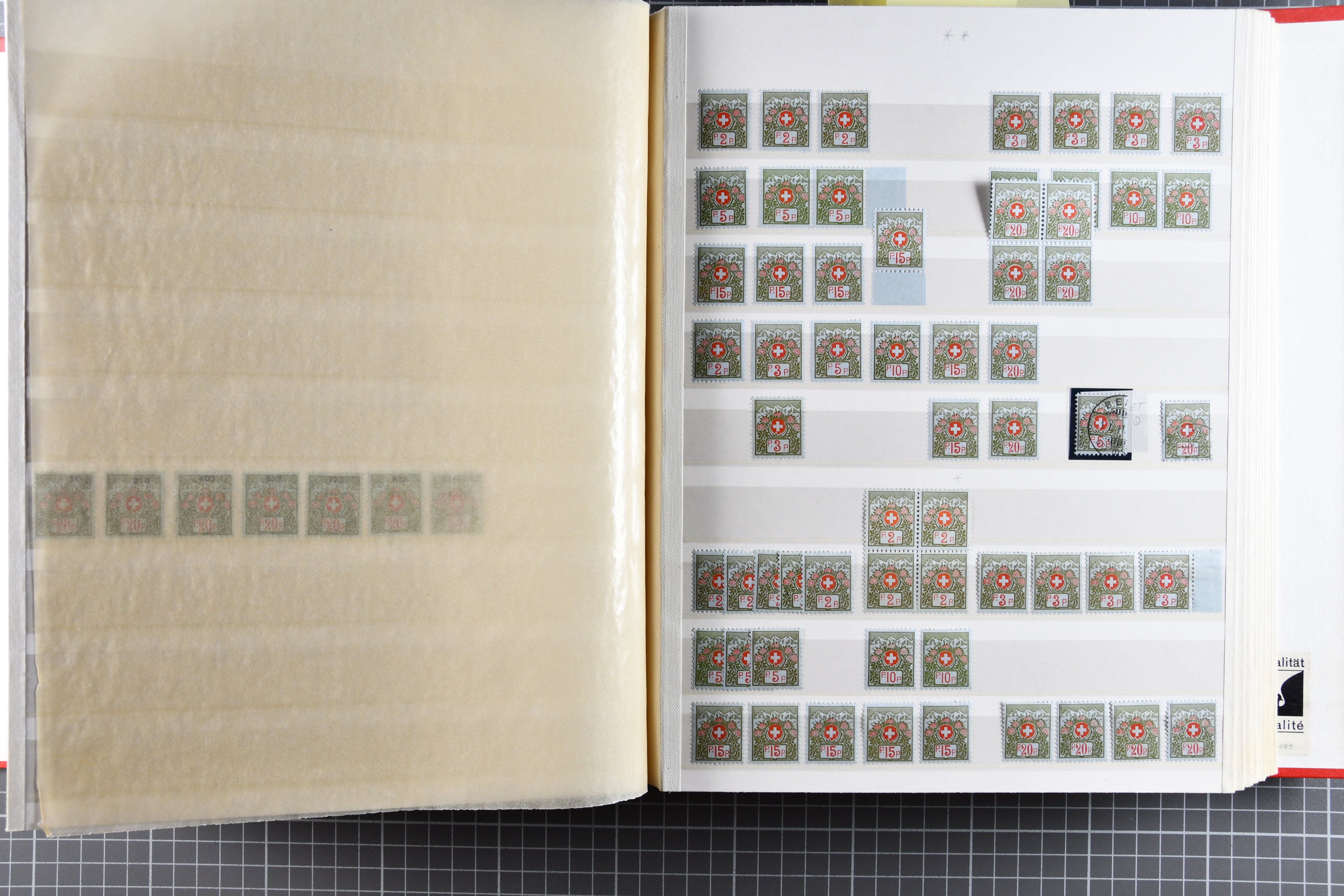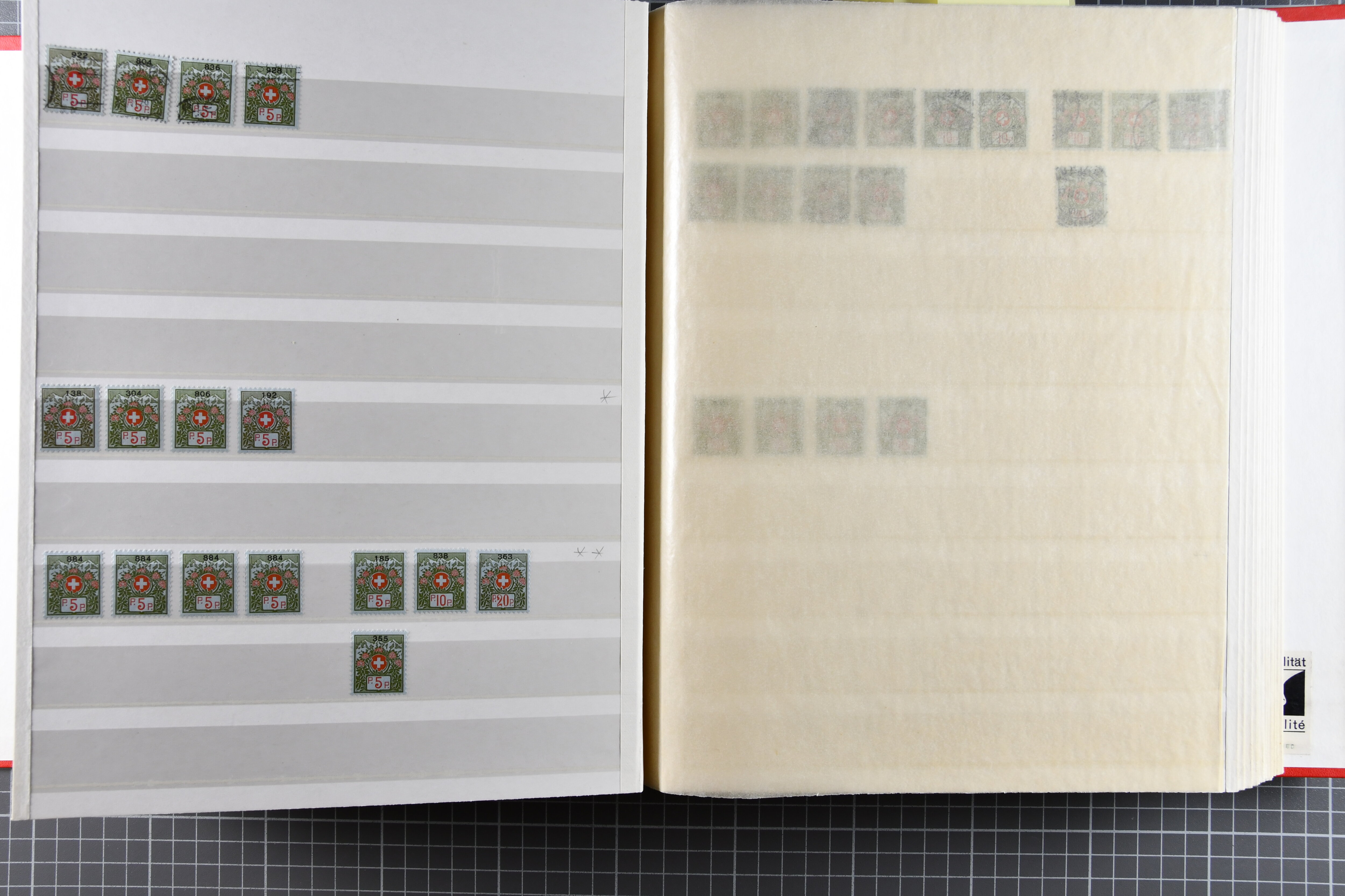 1911/43: Portofreiheitsmarken, Bestand der Ausgaben Alpenrosen, Krankenpflegerinnen und Dunant-Bildnis. Reichhaltiges Lagerbuch mit umfangreichem Material, sowohl gestempelt als auch postfrisch, darunter 12Bz mit