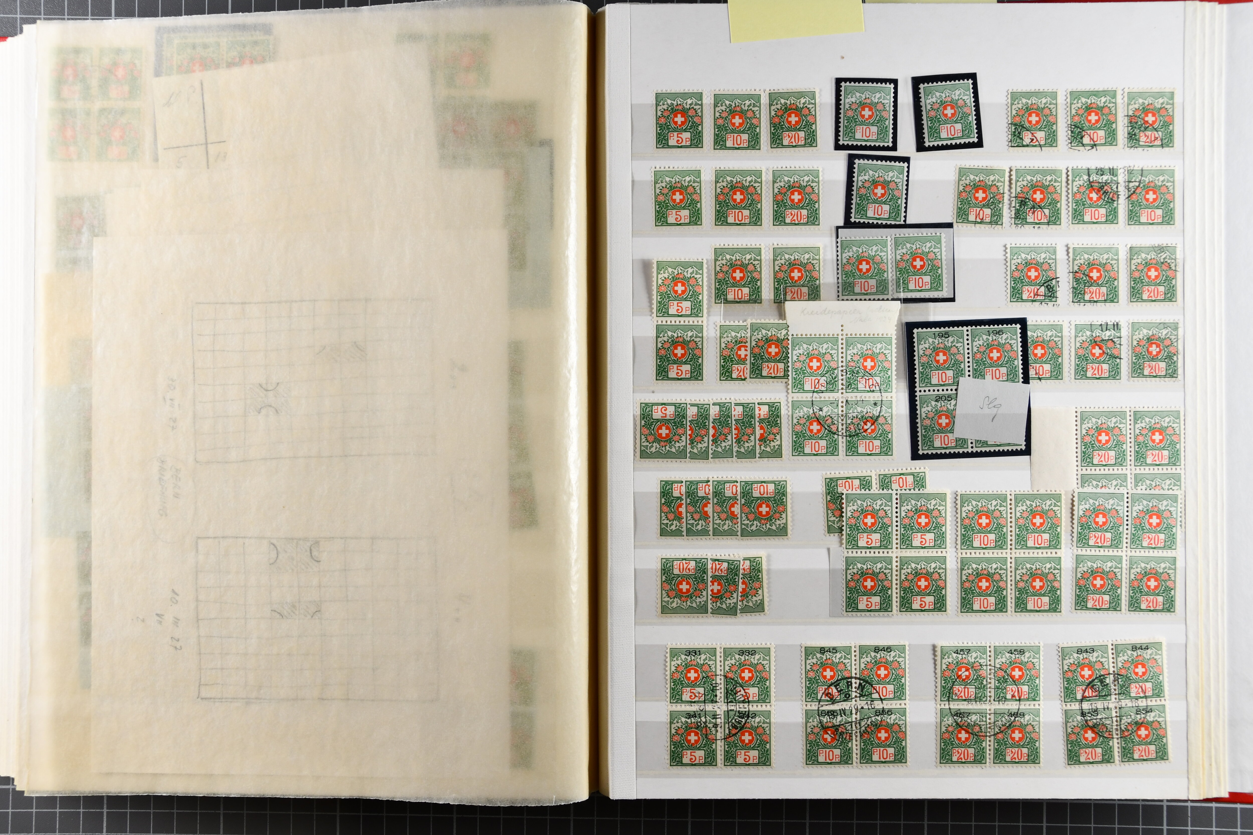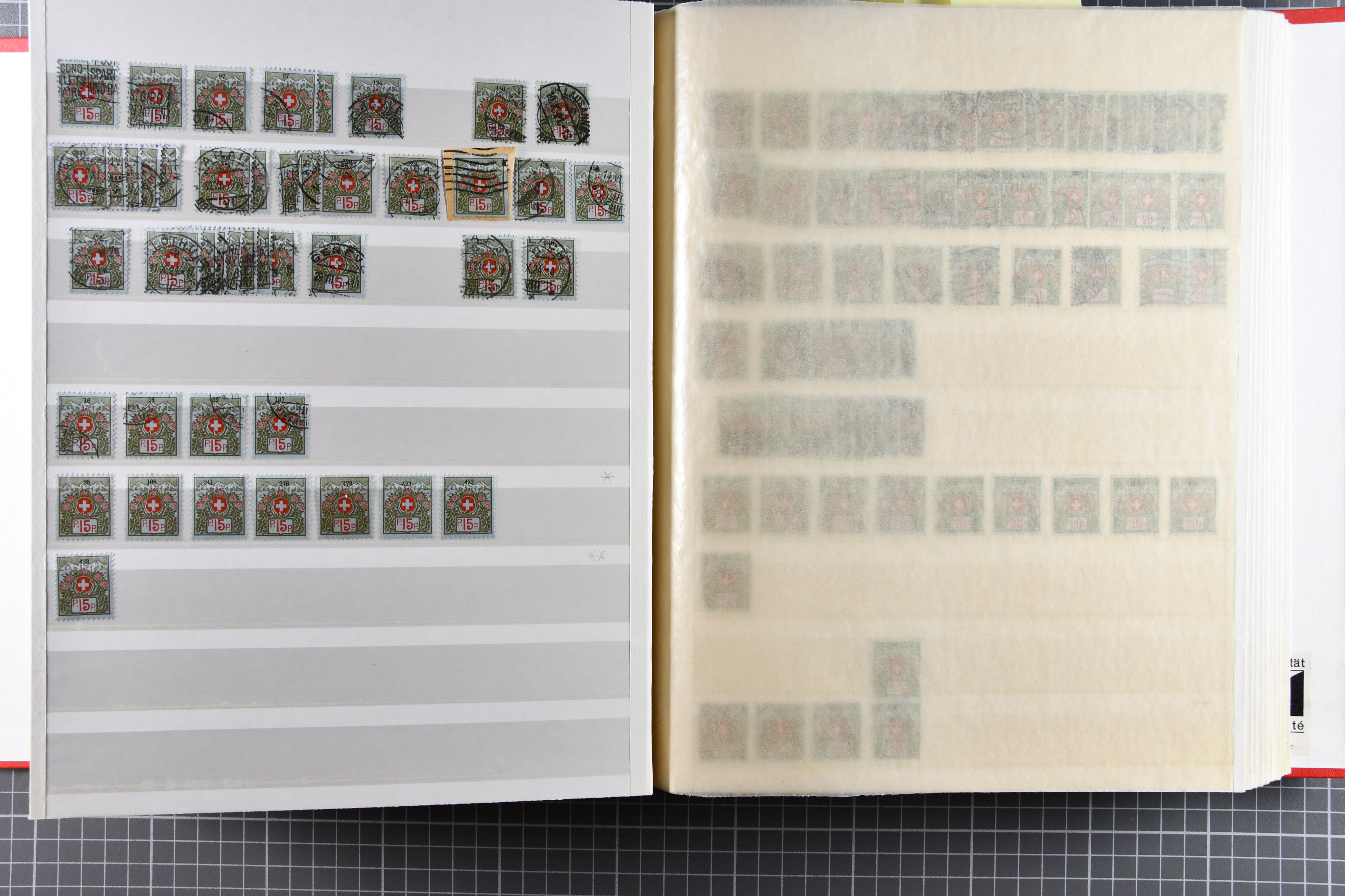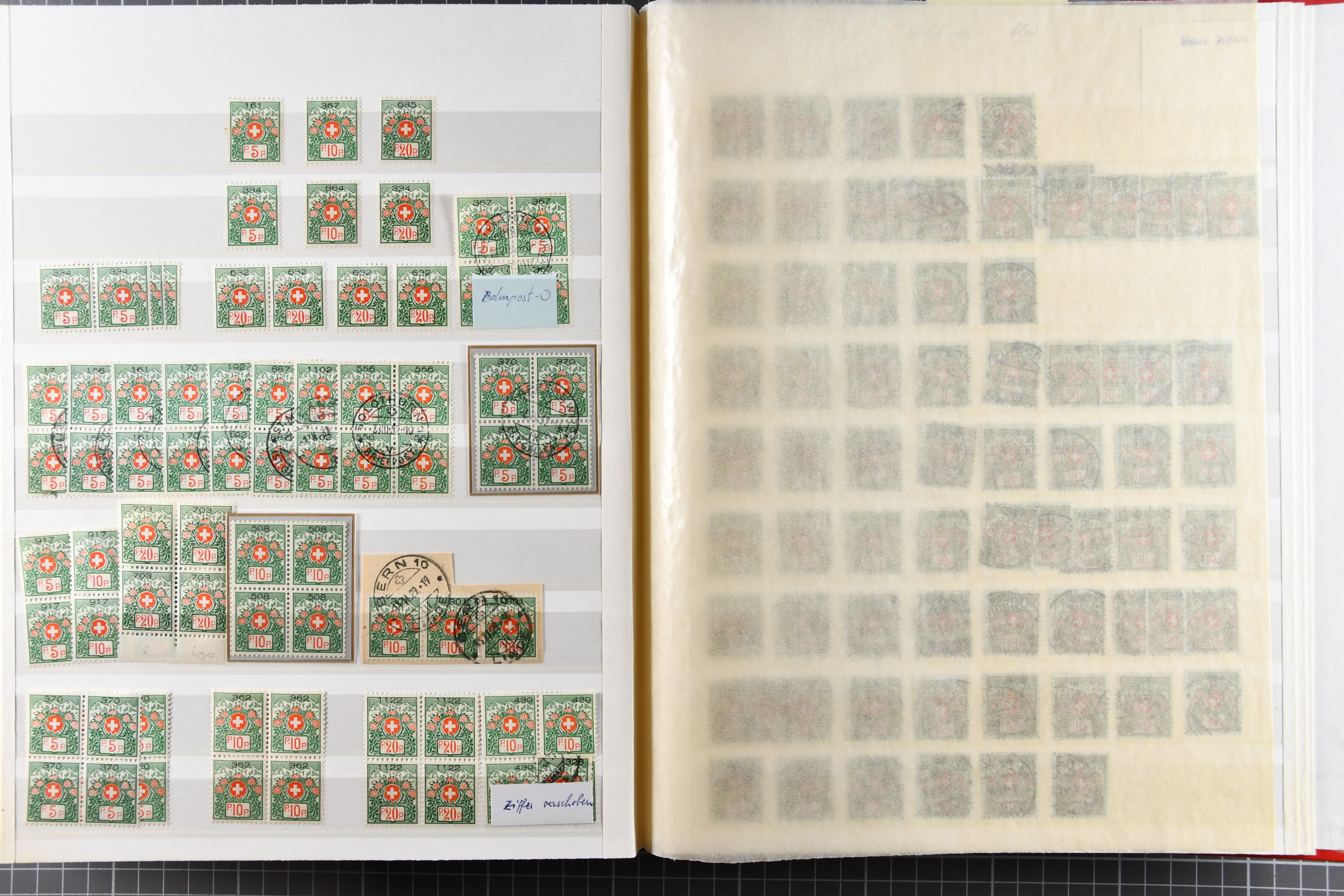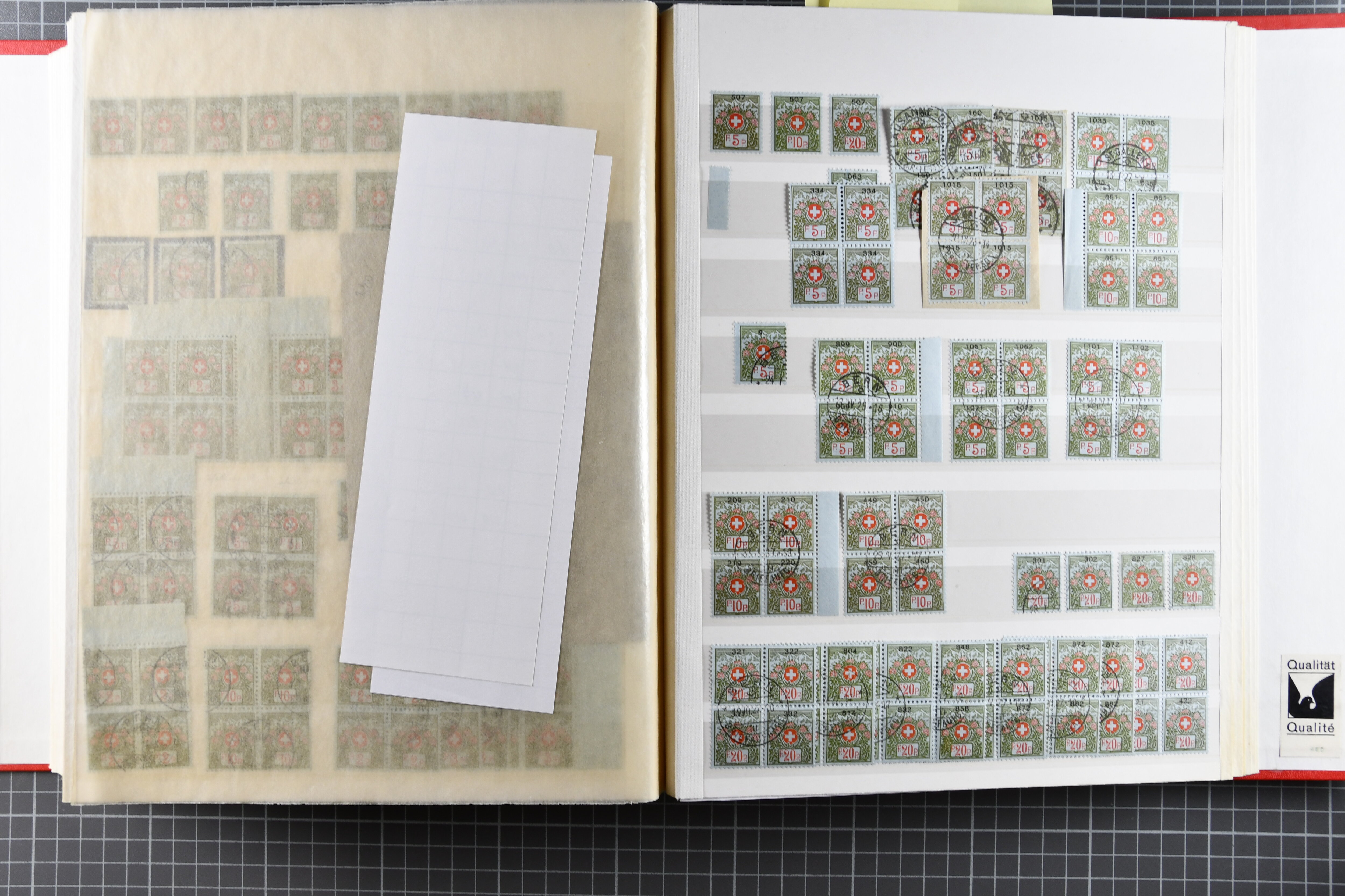 1911/43: Portofreiheitsmarken, Bestand der Ausgaben Alpenrosen, Krankenpflegerinnen und Dunant-Bildnis. Reichhaltiges Lagerbuch mit umfangreichem Material, sowohl gestempelt als auch postfrisch, darunter 12Bz mit