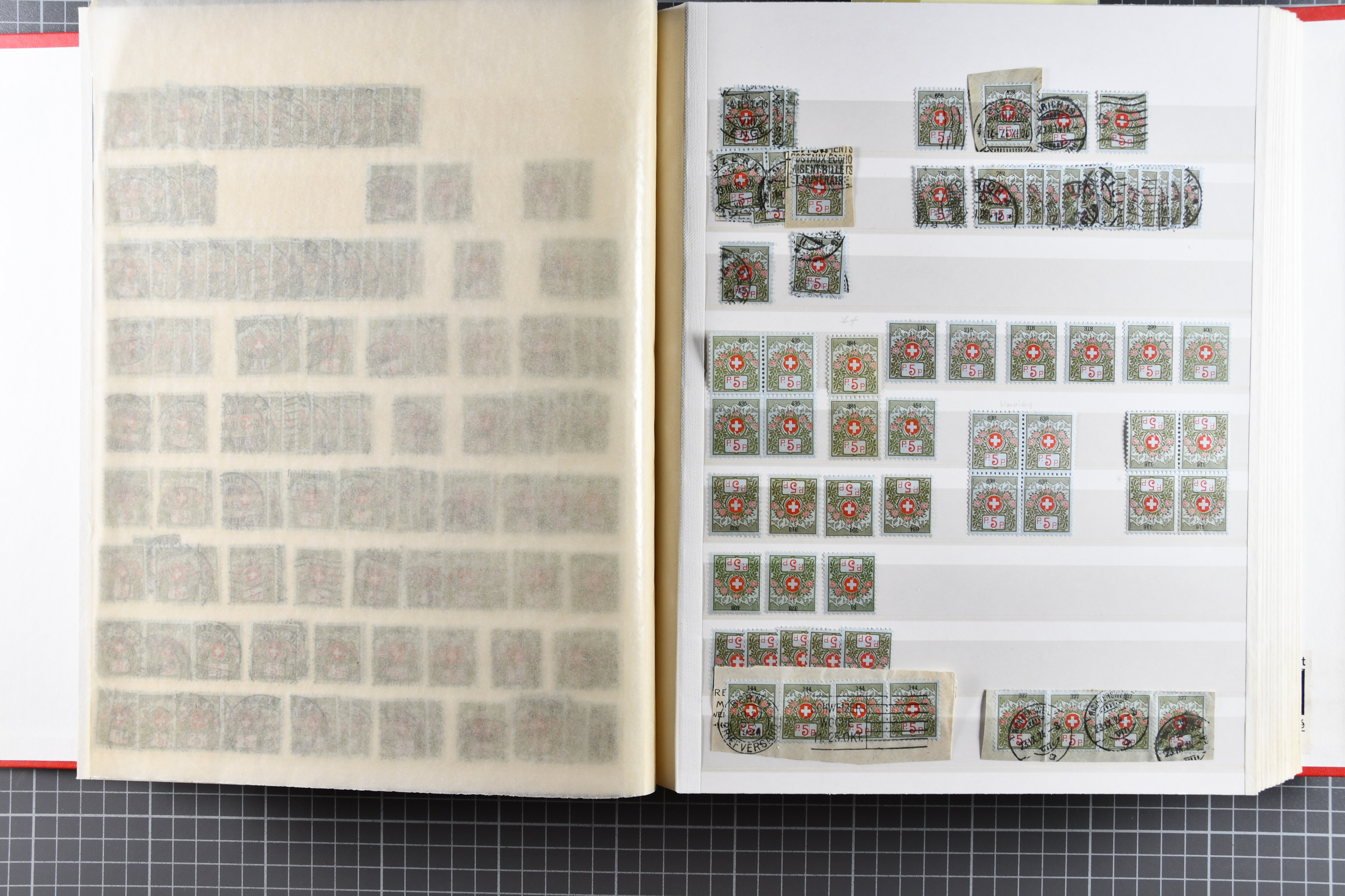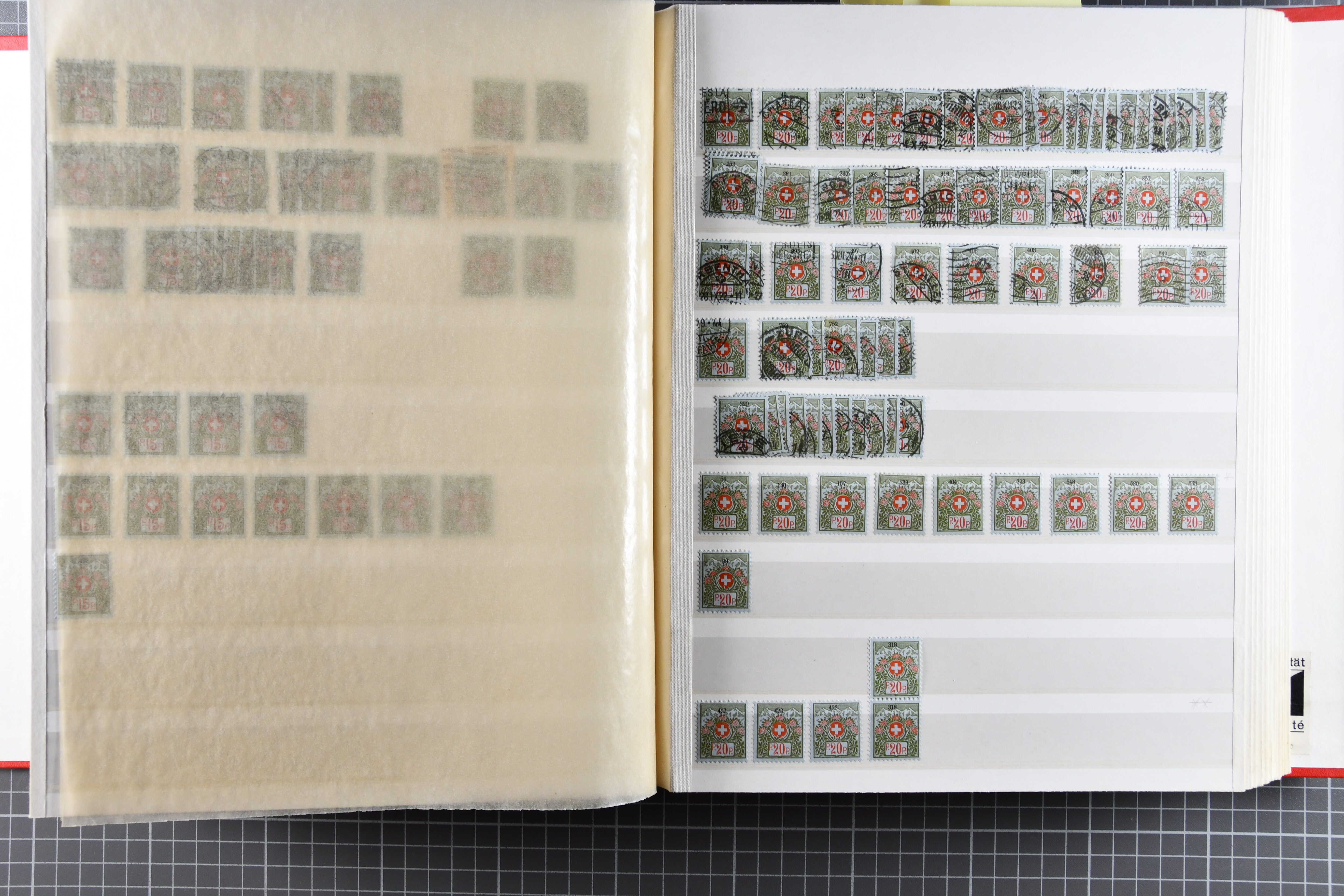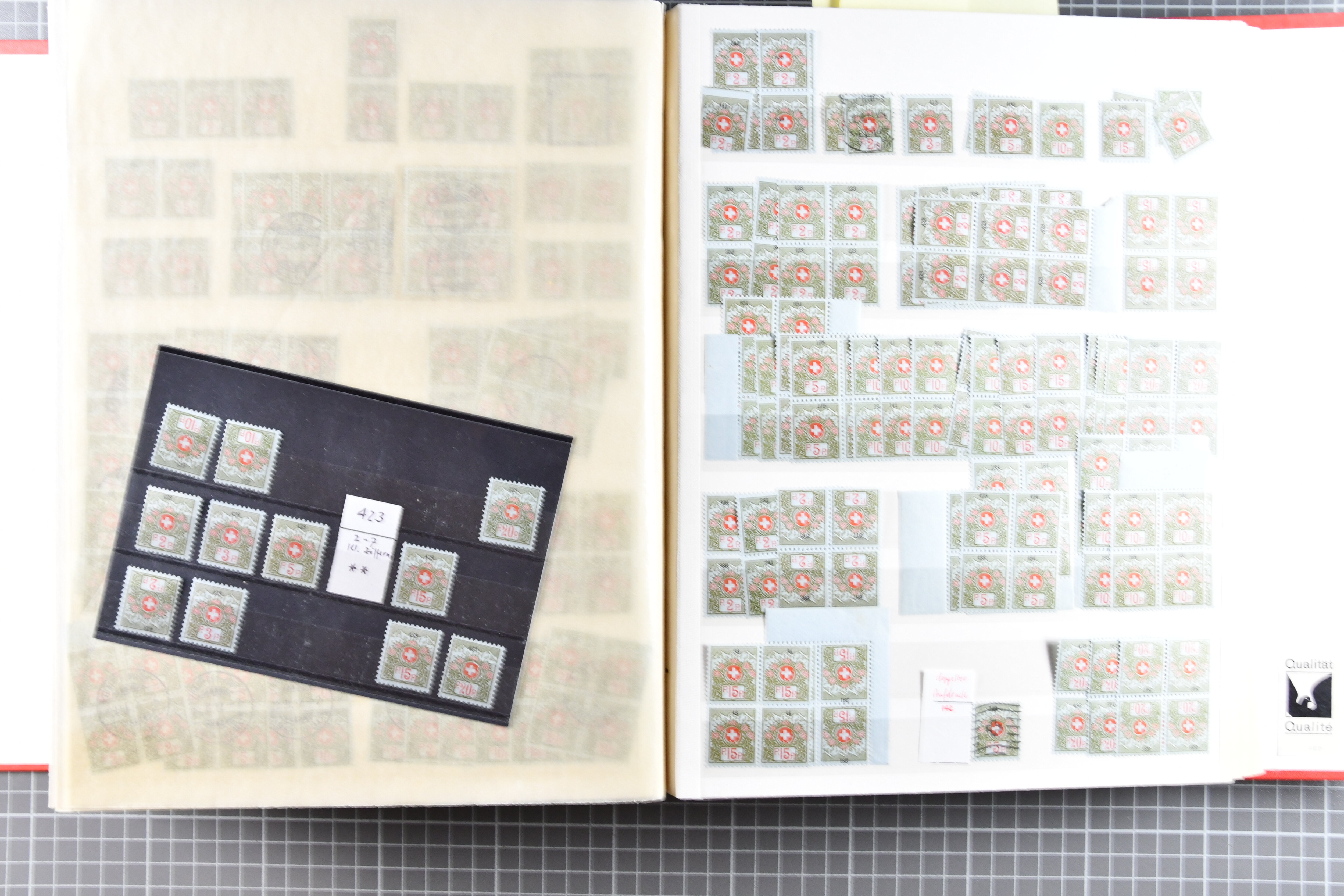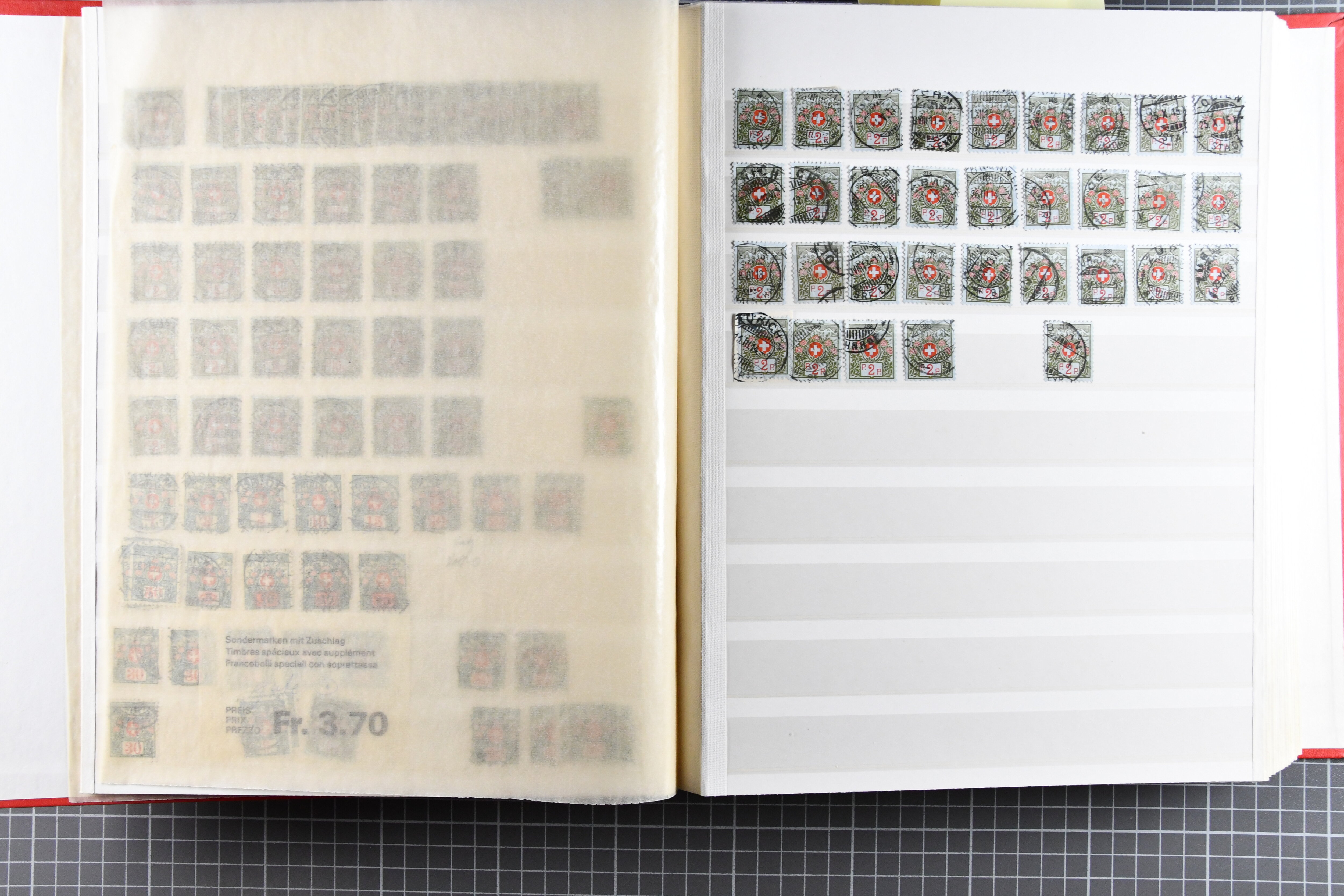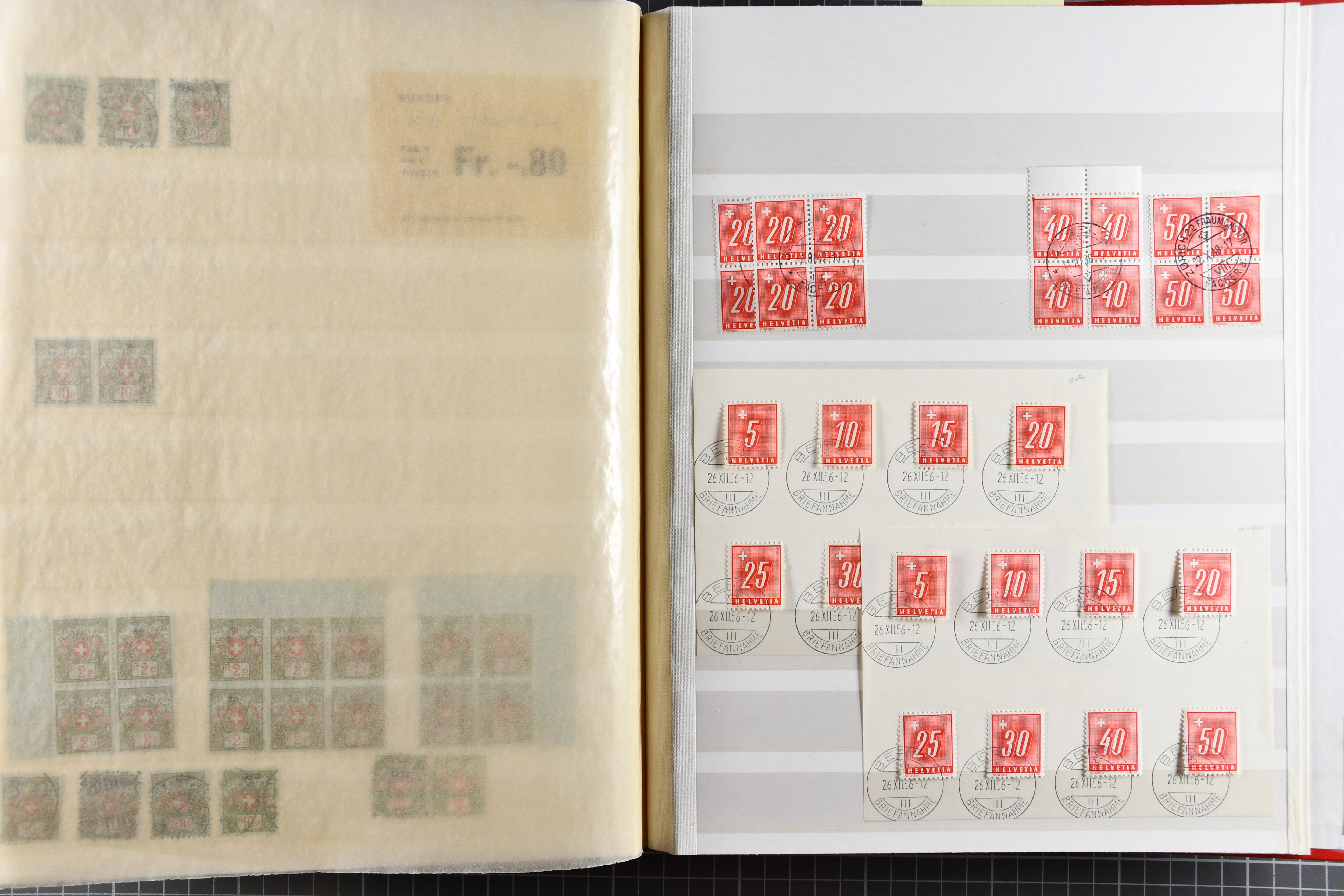1911/43: Portofreiheitsmarken, Bestand der Ausgaben Alpenrosen, Krankenpflegerinnen und Dunant-Bildnis. Reichhaltiges Lagerbuch mit umfangreichem Material, sowohl gestempelt als auch postfrisch, darunter 12Bz mit