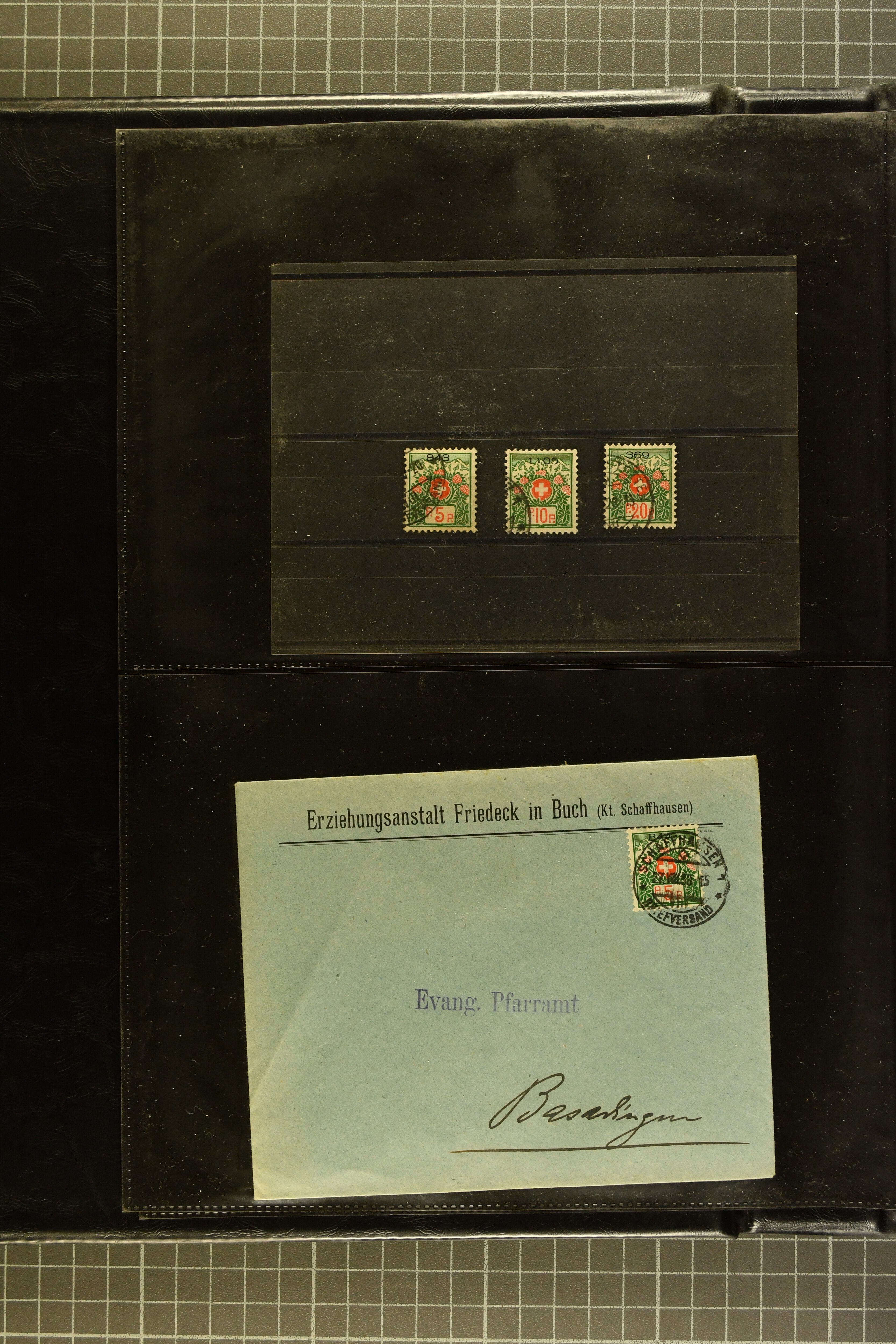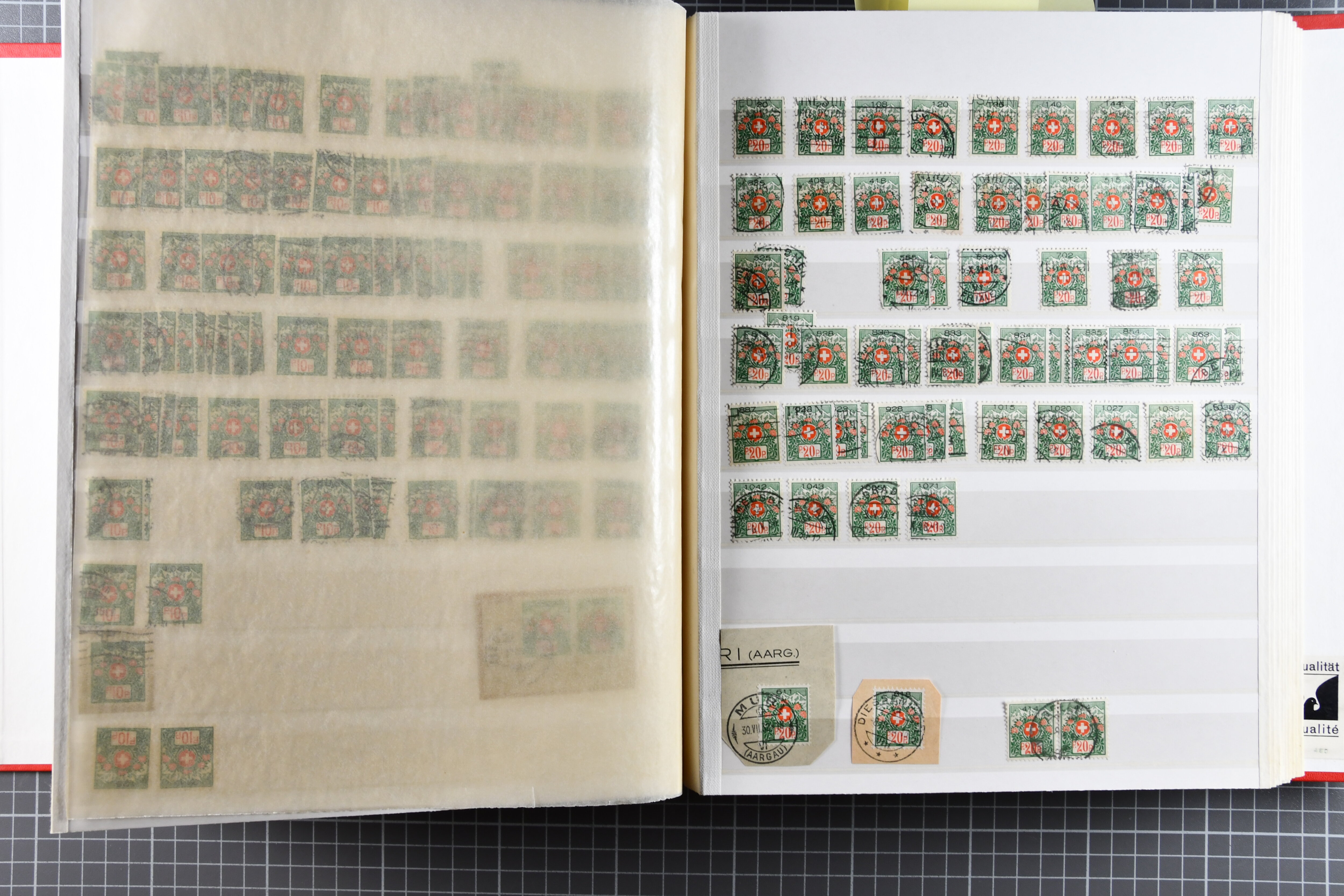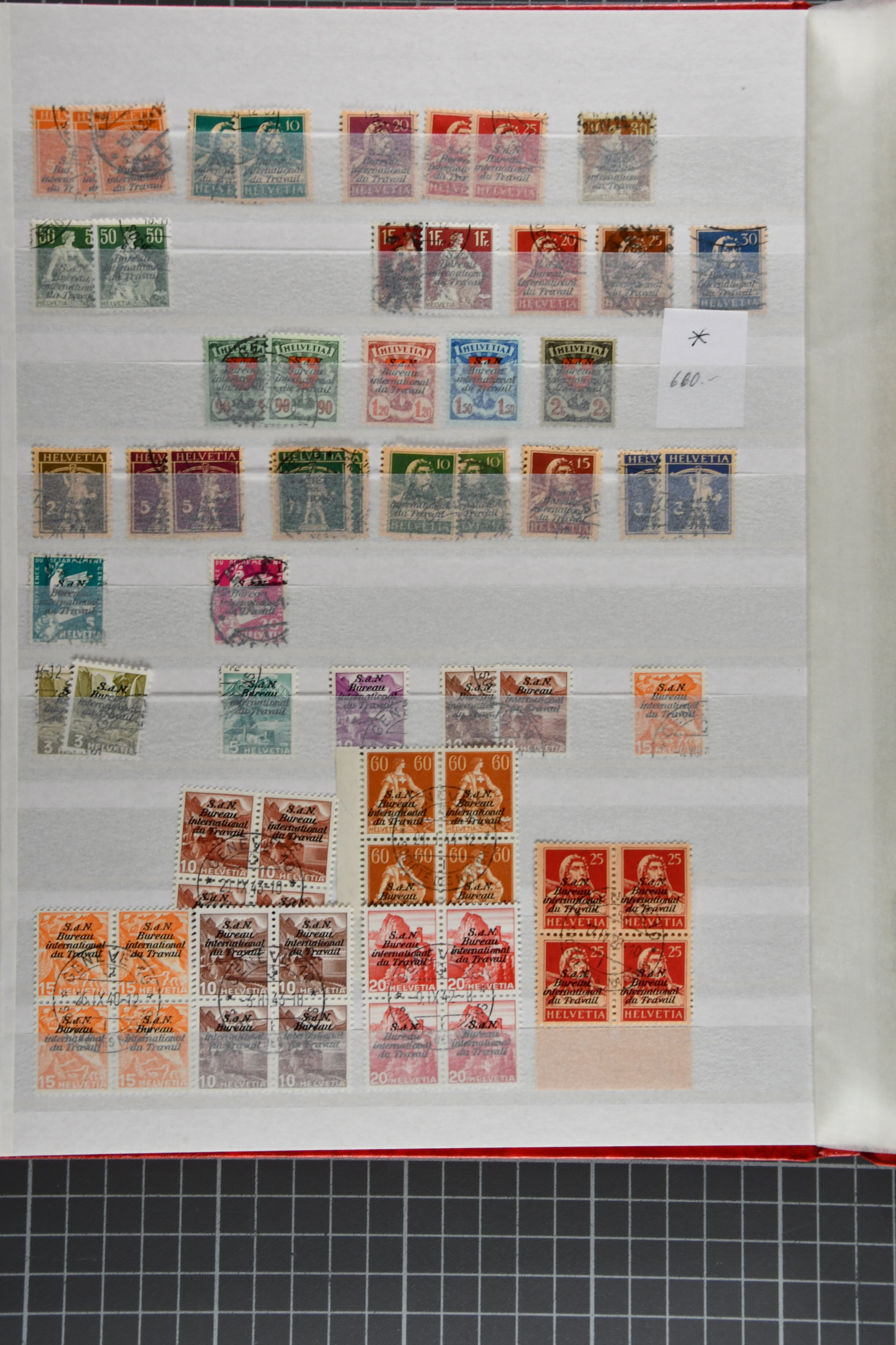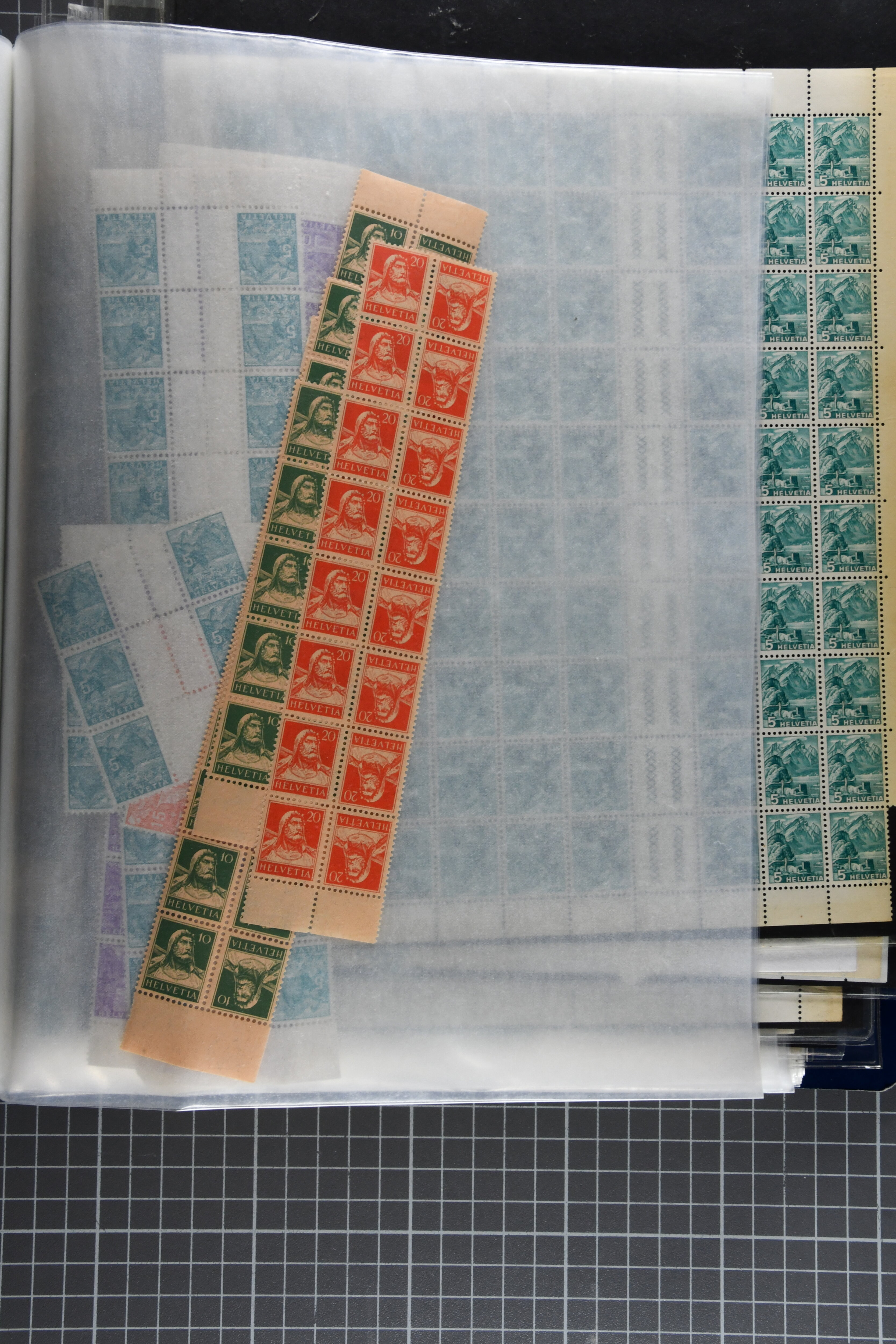 1911/43: Portofreiheitsmarken, Bestand der Ausgaben Alpenrosen, Krankenpflegerinnen und Dunant-Bildnis. Reichhaltiges Lagerbuch mit umfangreichem Material, sowohl gestempelt als auch postfrisch, darunter 12Bz mit