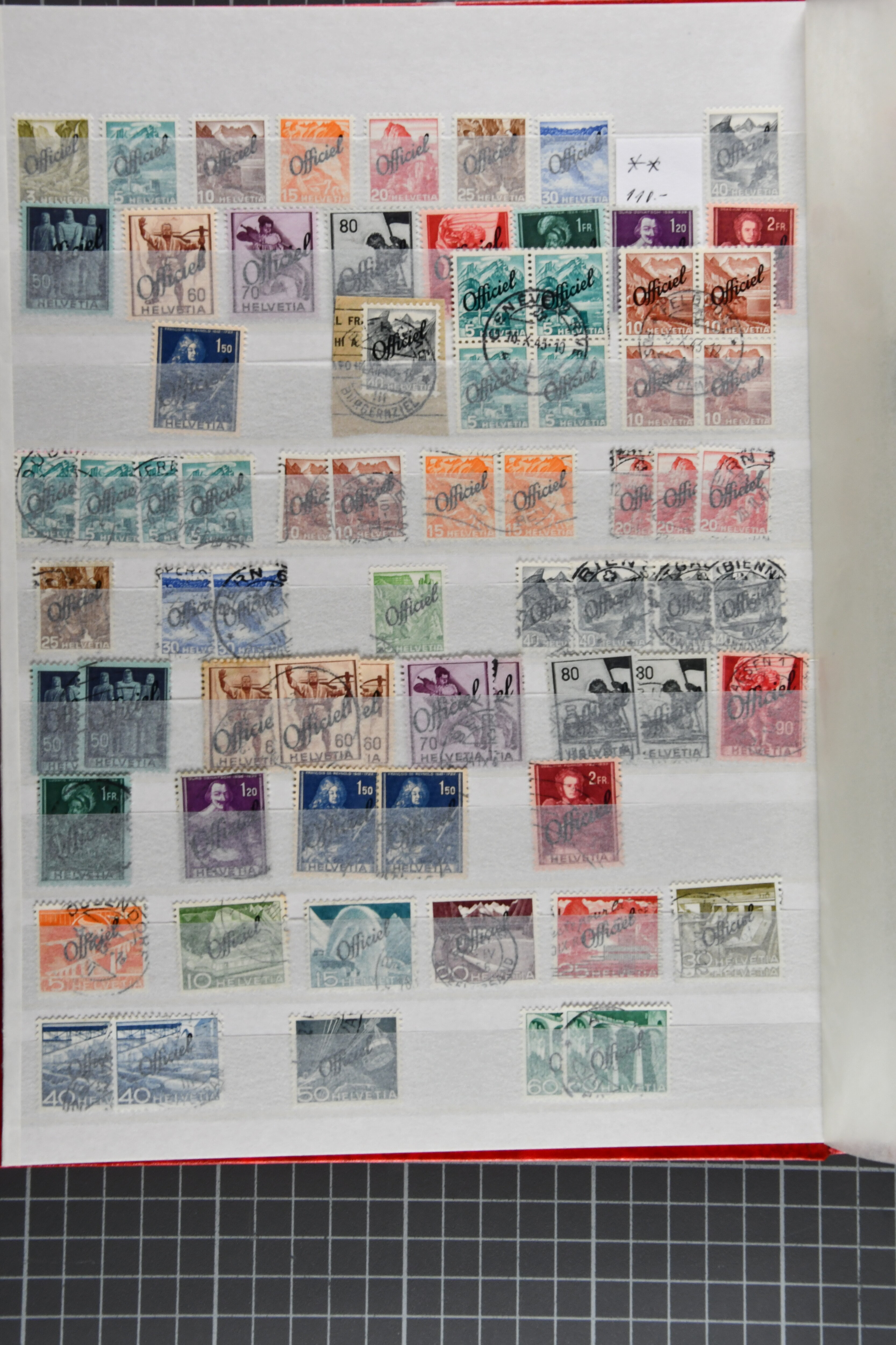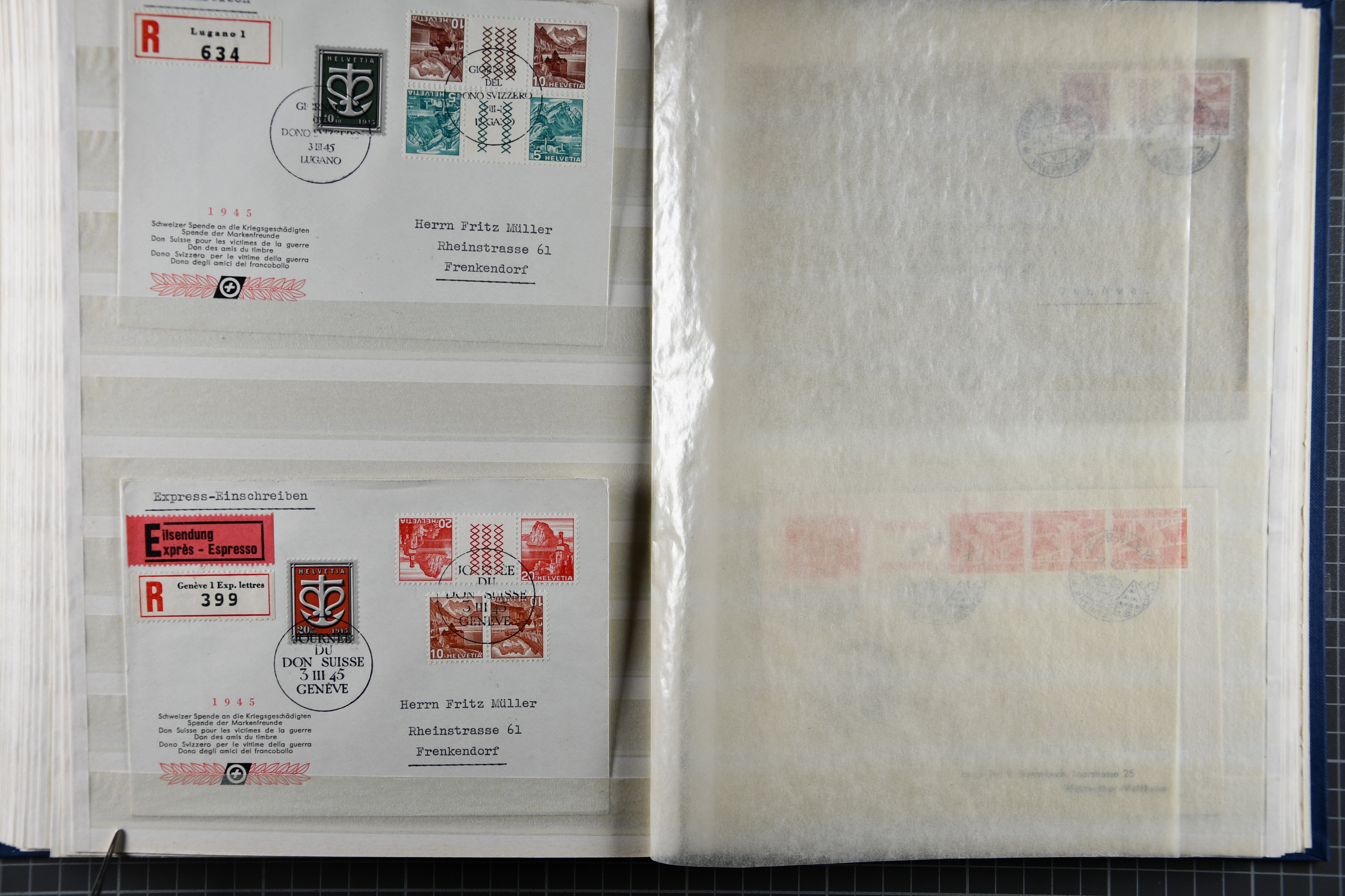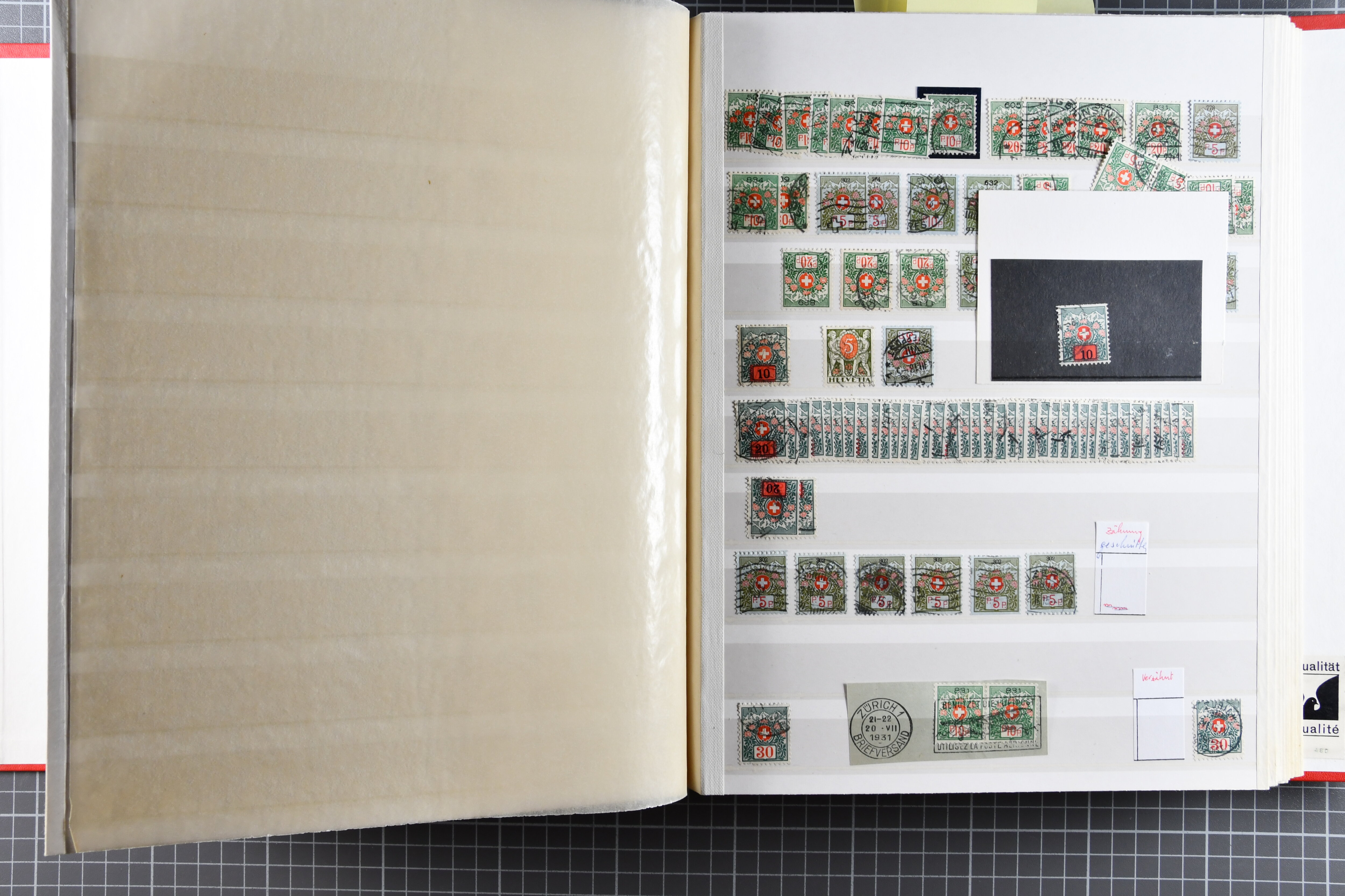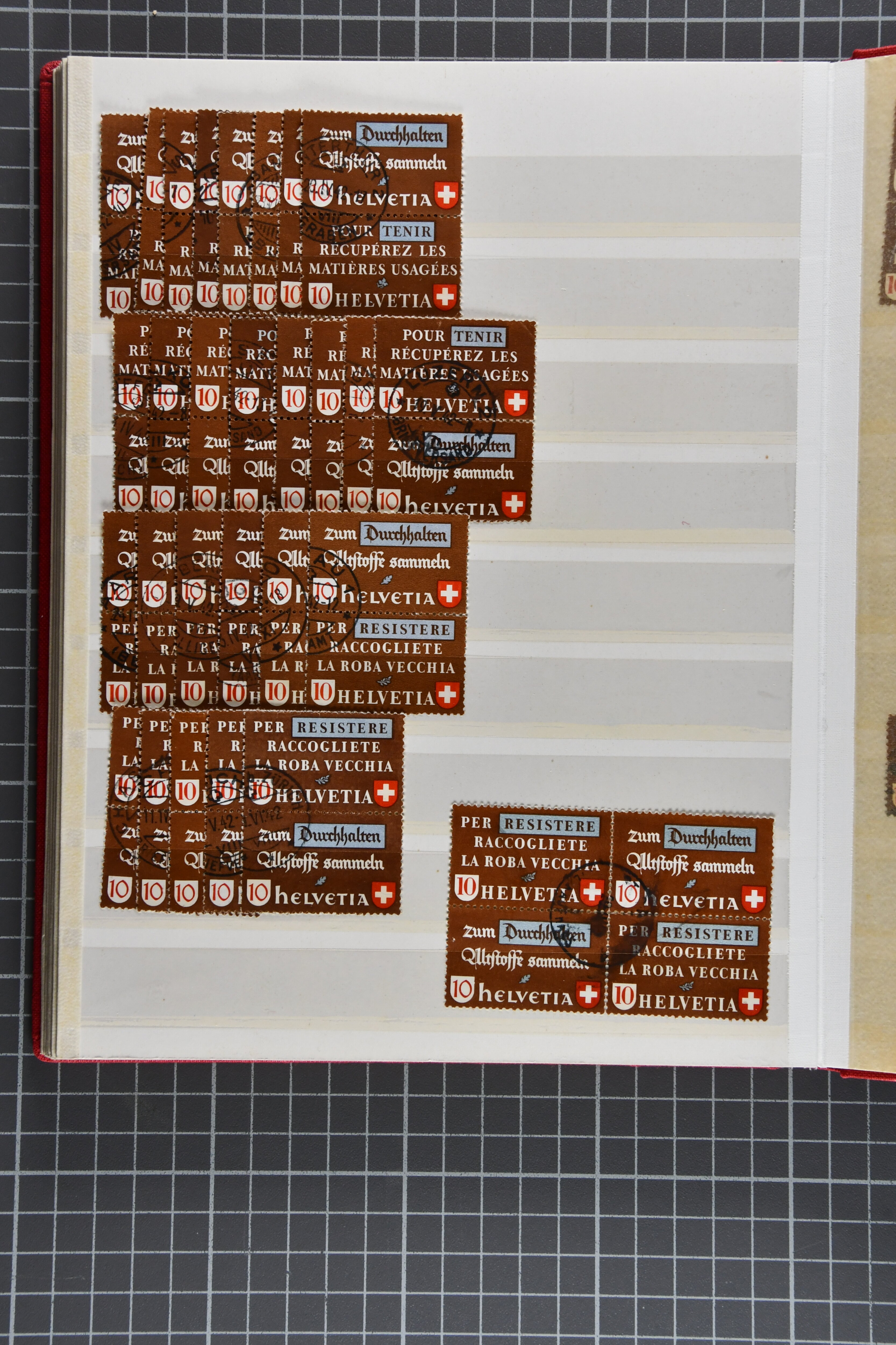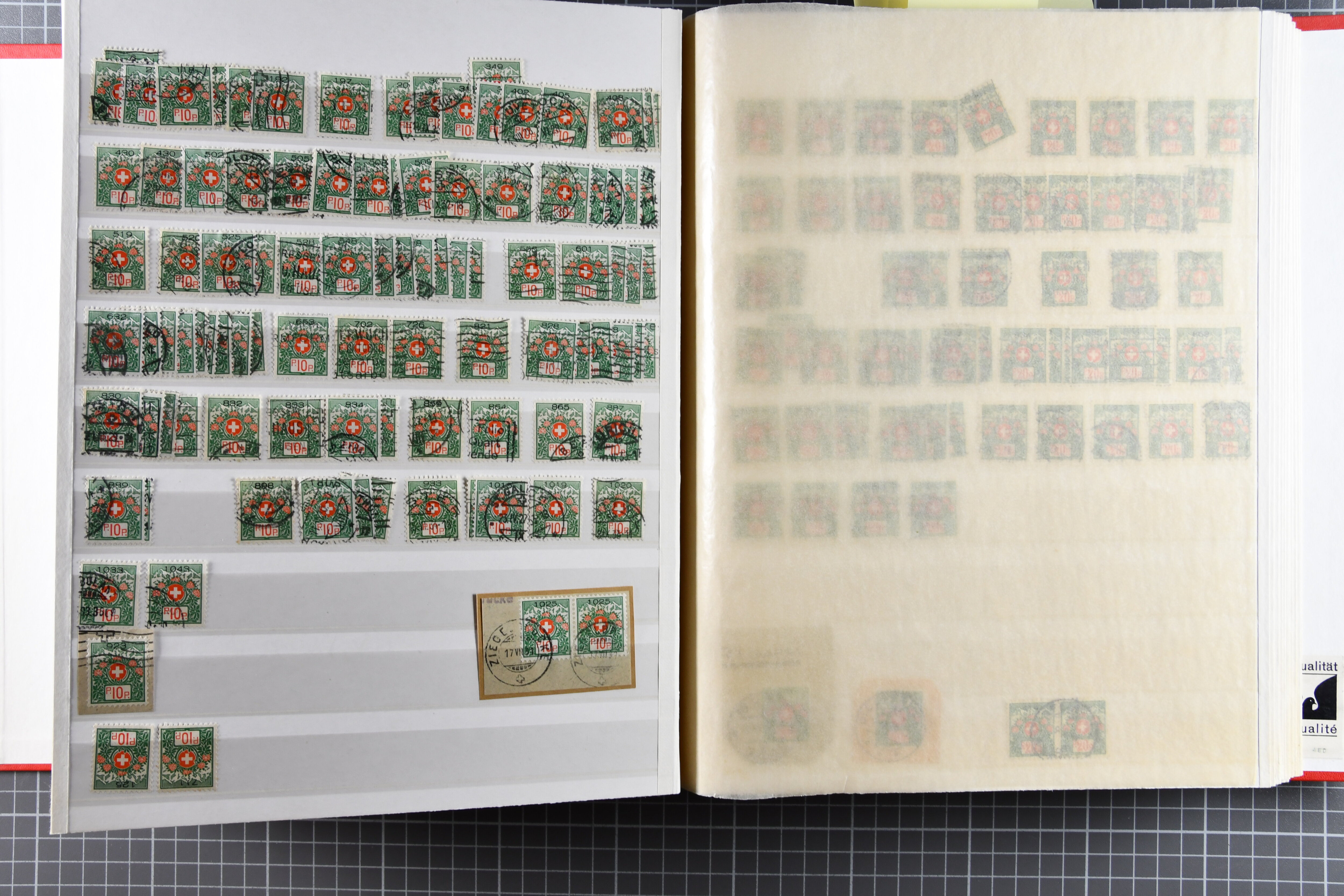 1911/43: Portofreiheitsmarken, Bestand der Ausgaben Alpenrosen, Krankenpflegerinnen und Dunant-Bildnis. Reichhaltiges Lagerbuch mit umfangreichem Material, sowohl gestempelt als auch postfrisch, darunter 12Bz mit