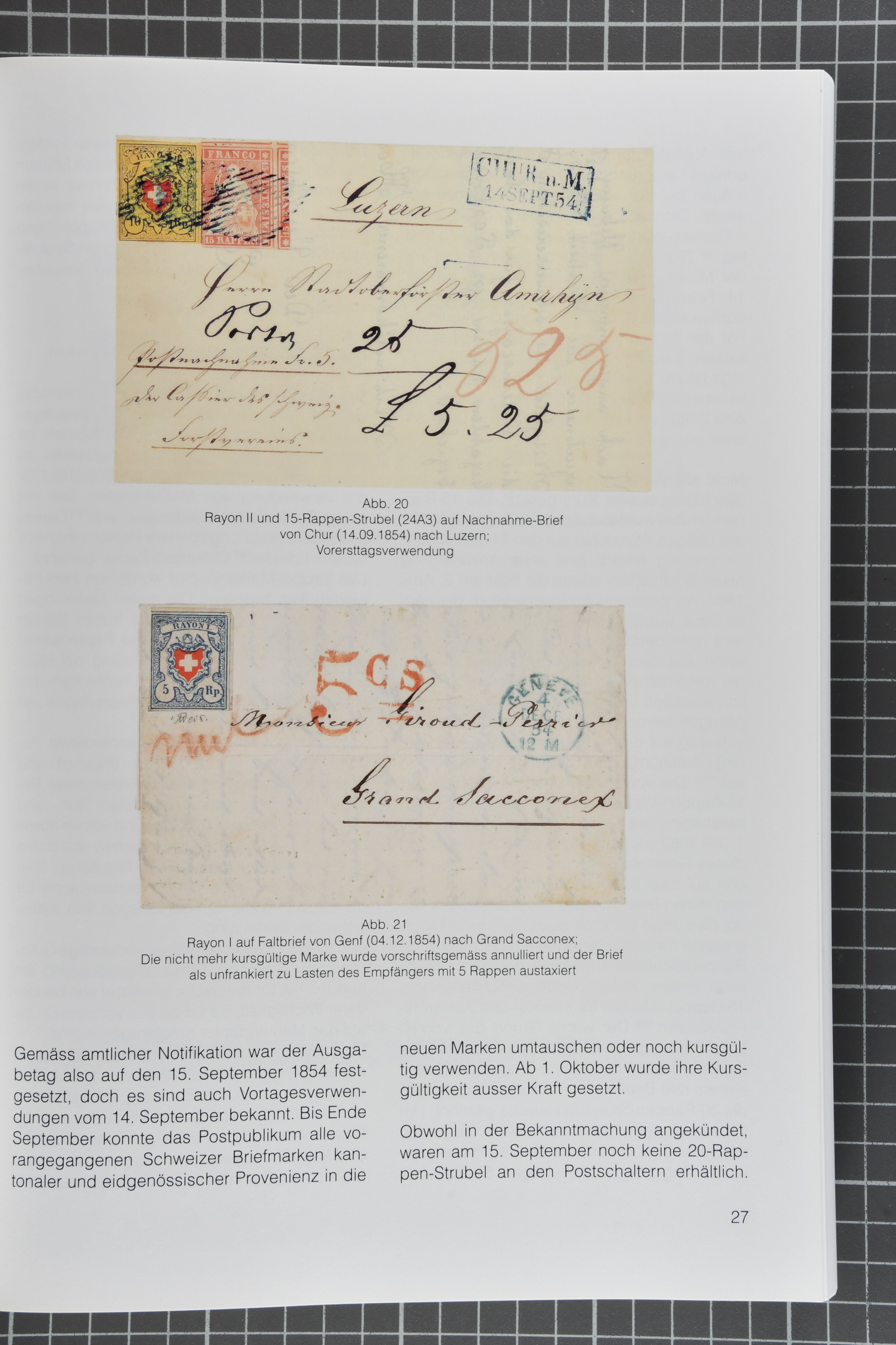 1898: Paul Mirabaud, Axel de Reuterskiöld: "Les Timbres Postes Suisses 1843-1862", Exemplar Nr. 139 (von 200) in sehr frischer Erhaltung mit allen Farbtafeln und fast ohne Stockflecken, eine Umschlagsseite mit