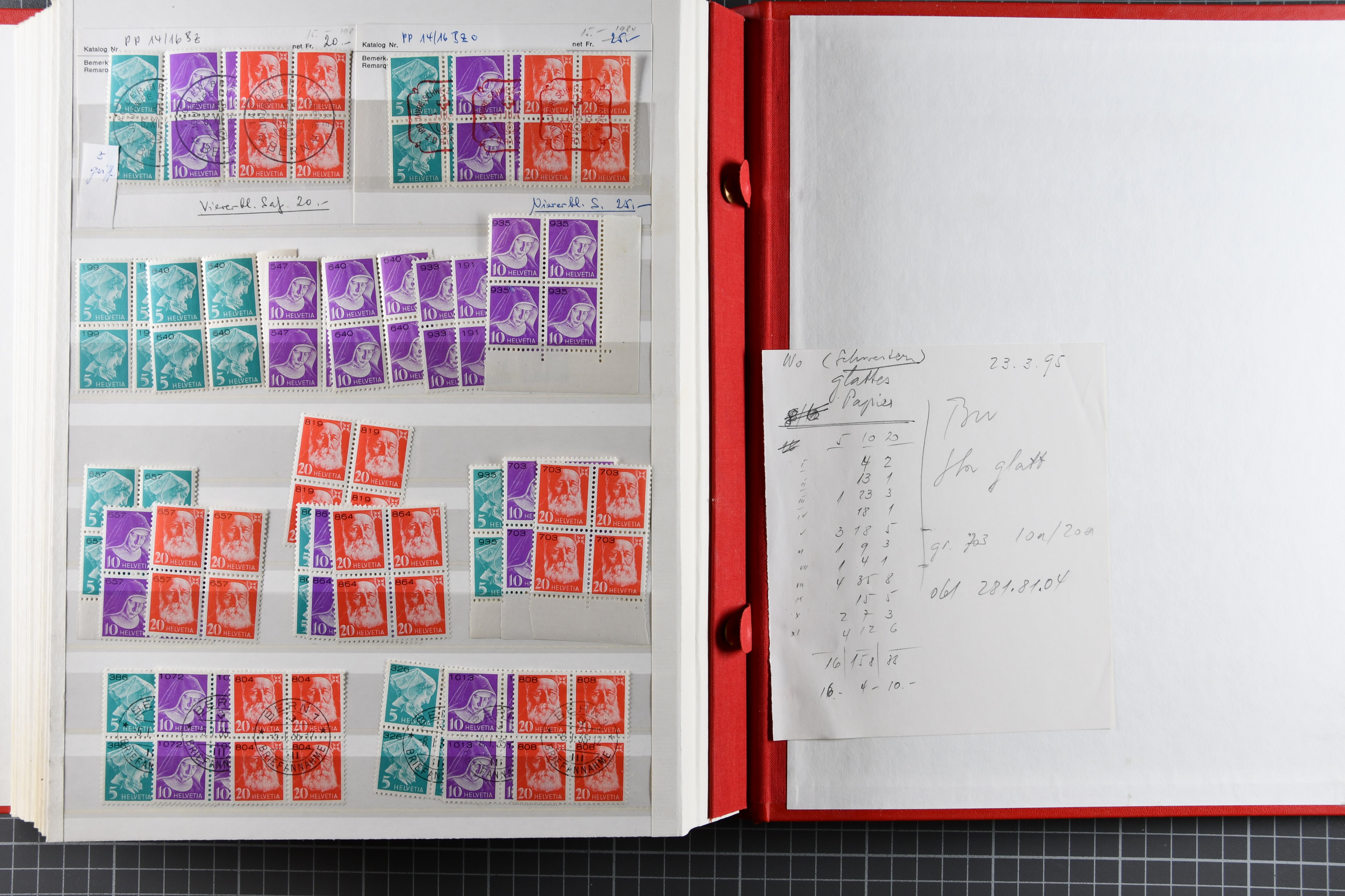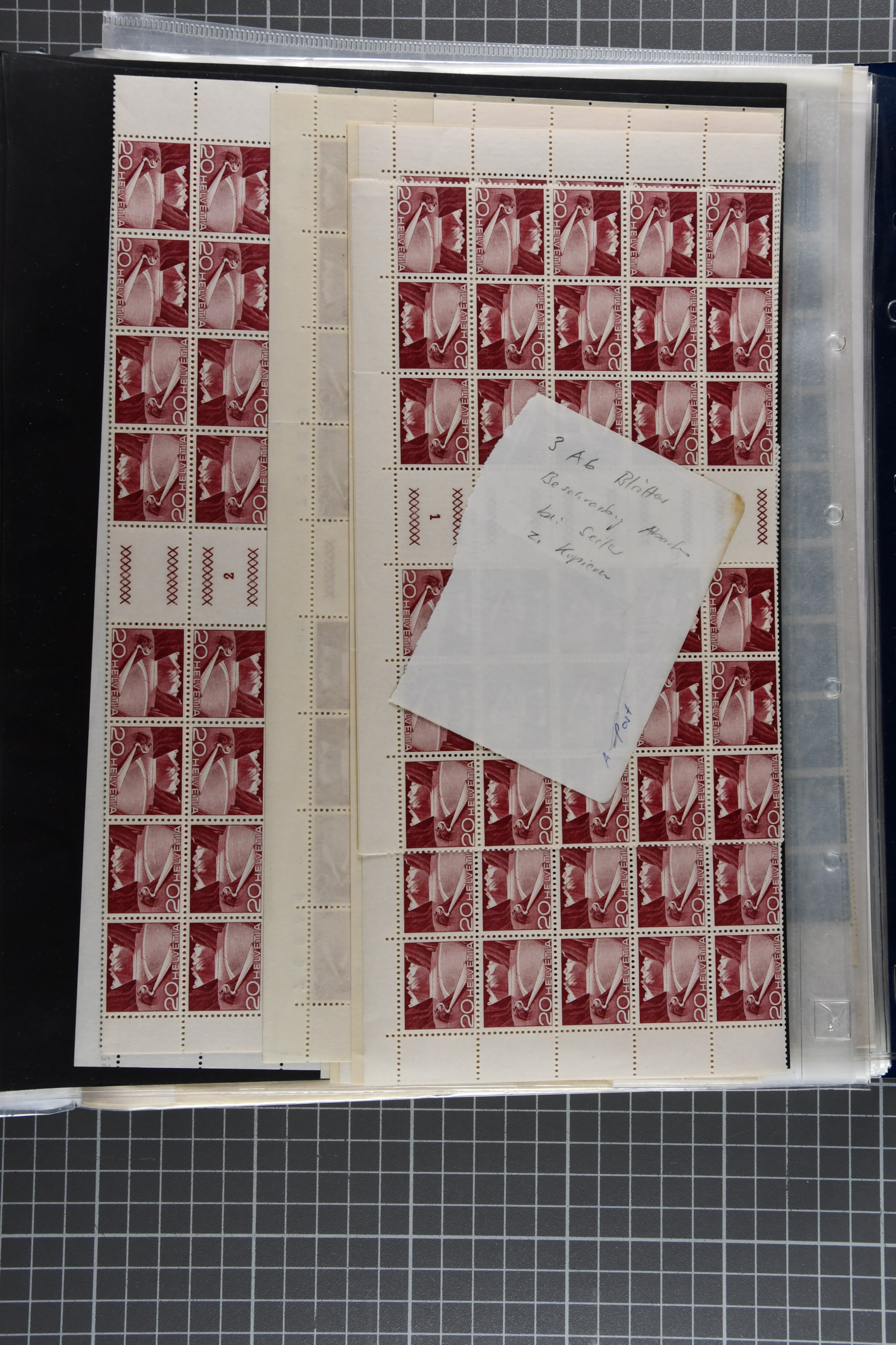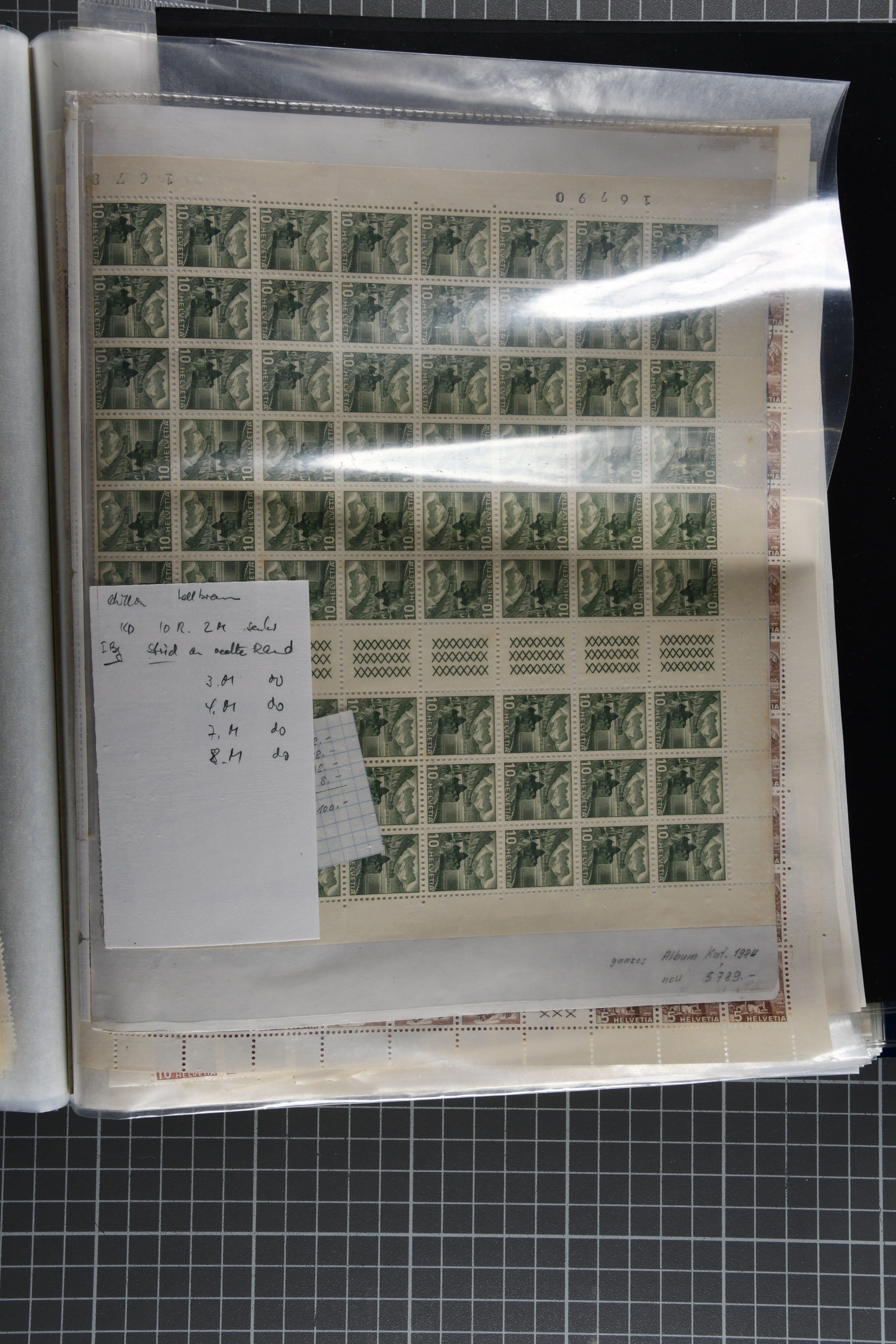 fünf losen postfrischen Exemplaren sowie ein leider nachgestempelter Viererblock. Zudem weitere lose Werte, sortiert nach Abarten und Institutionsnummern, dazu noch Massenware. dazu etwas Dokumentation. Ungewöhnliche Menge dieser Ausgaben! (Image 1)