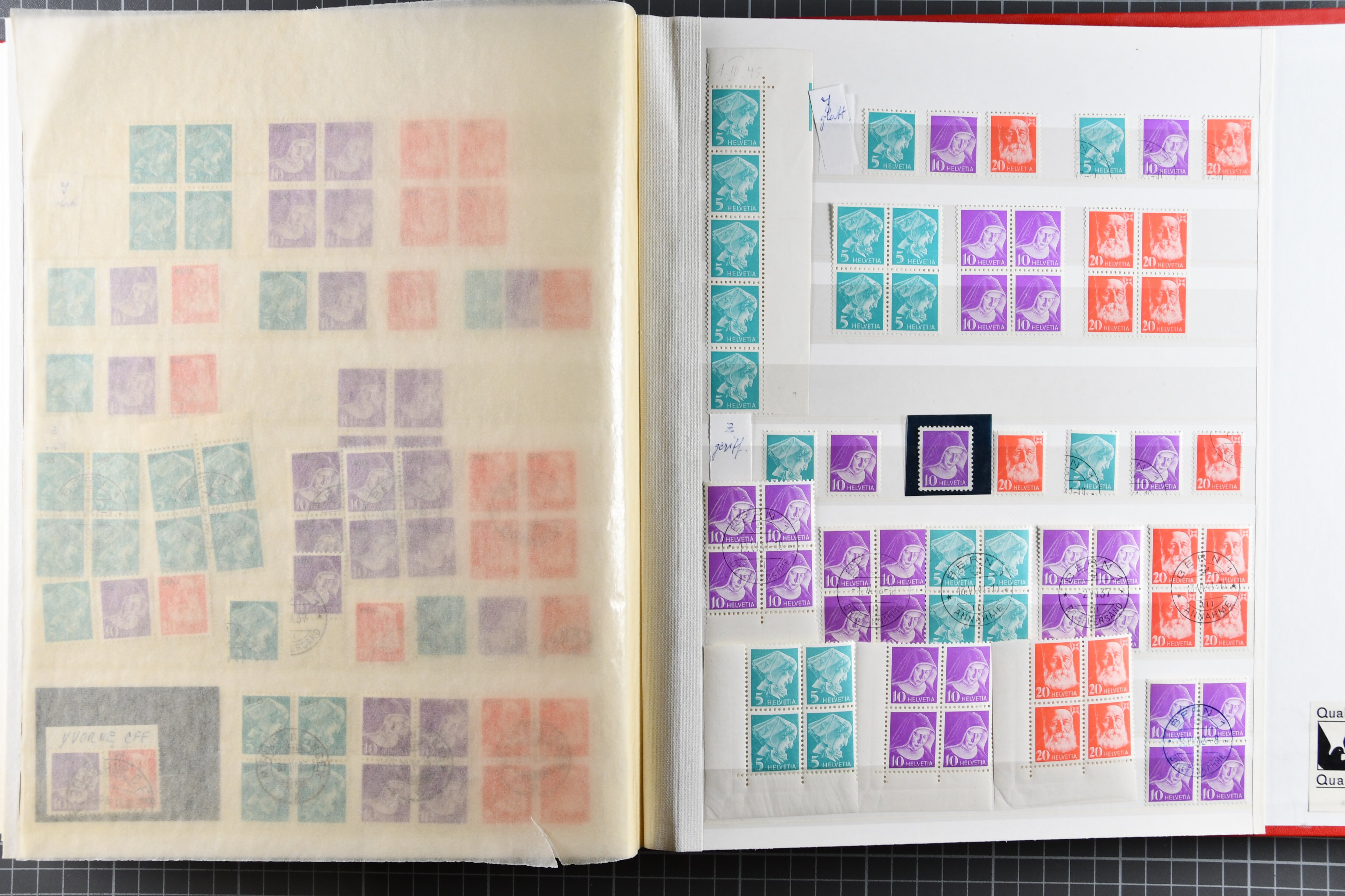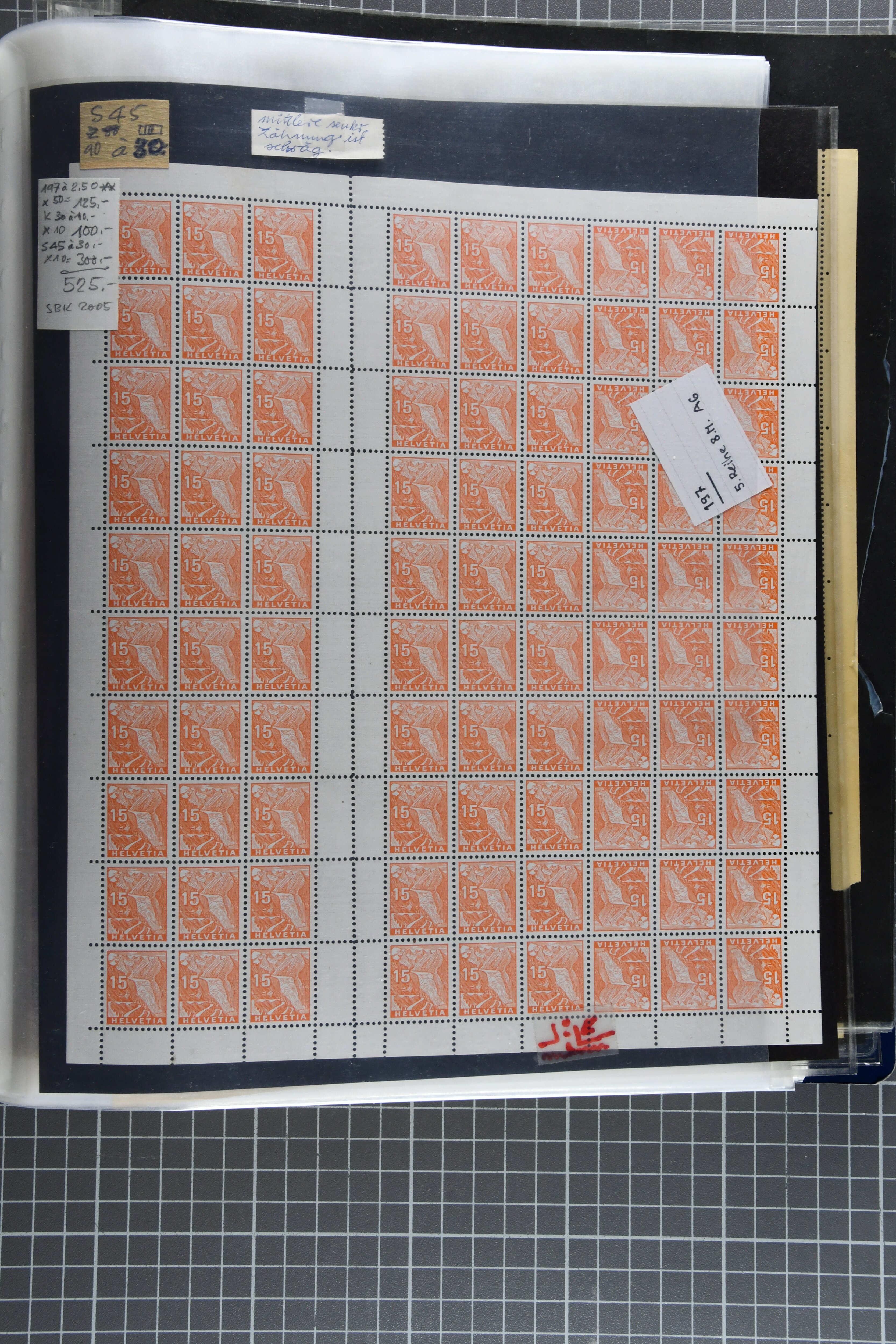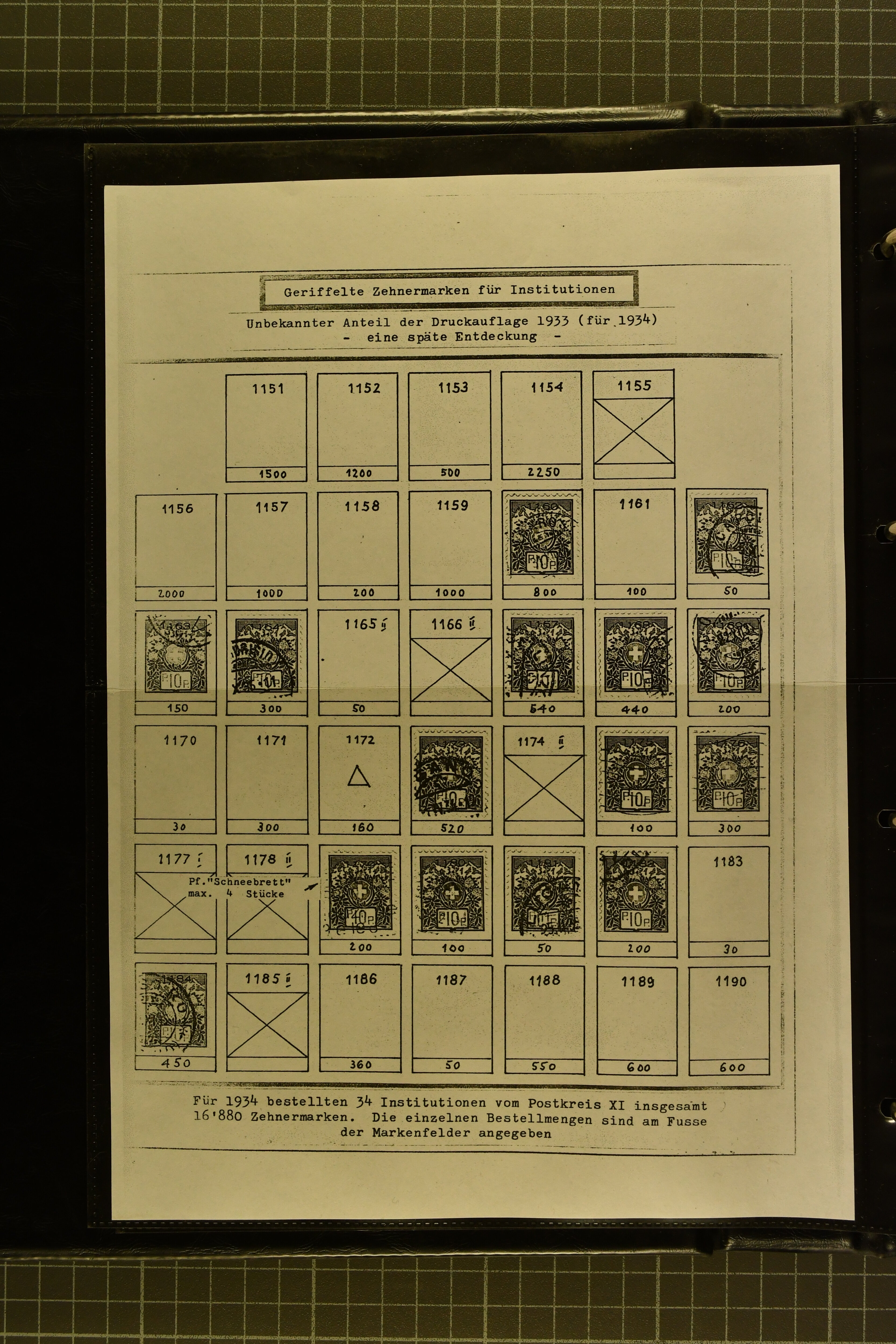 fünf losen postfrischen Exemplaren sowie ein leider nachgestempelter Viererblock. Zudem weitere lose Werte, sortiert nach Abarten und Institutionsnummern, dazu noch Massenware. dazu etwas Dokumentation. Ungewöhnliche Menge dieser Ausgaben! (Image 1)