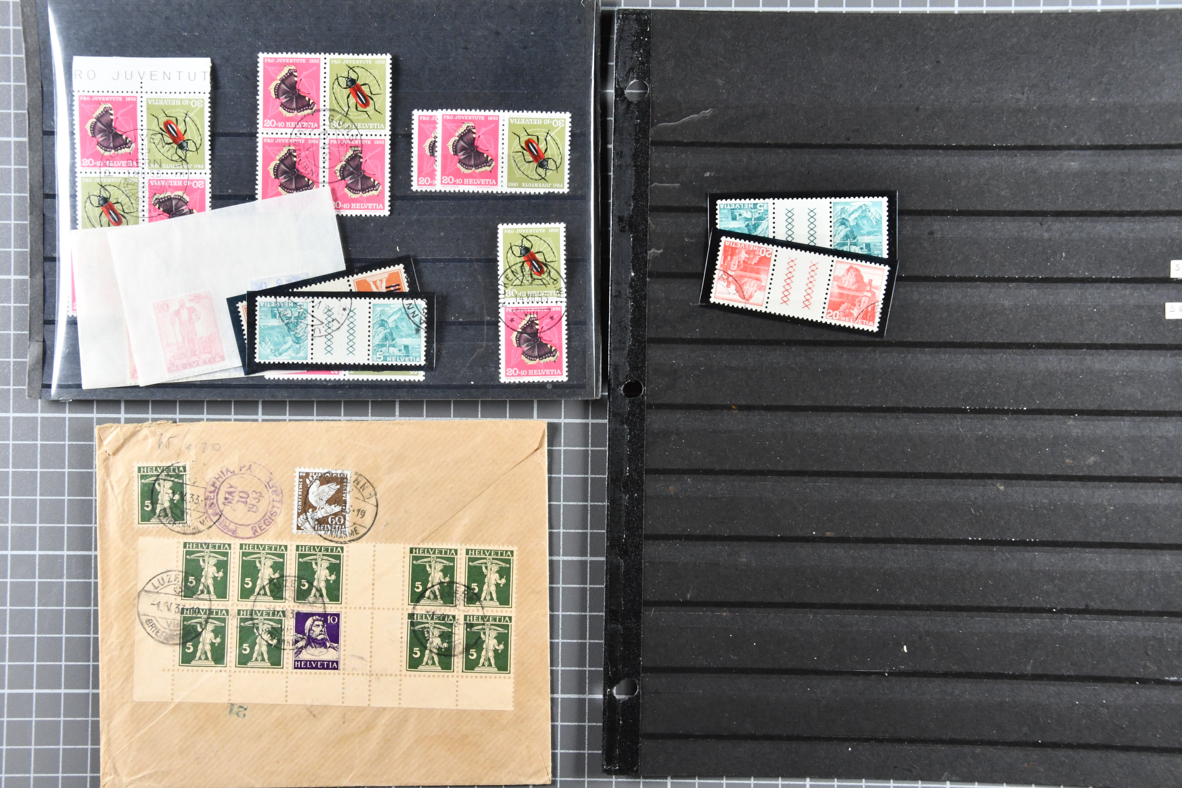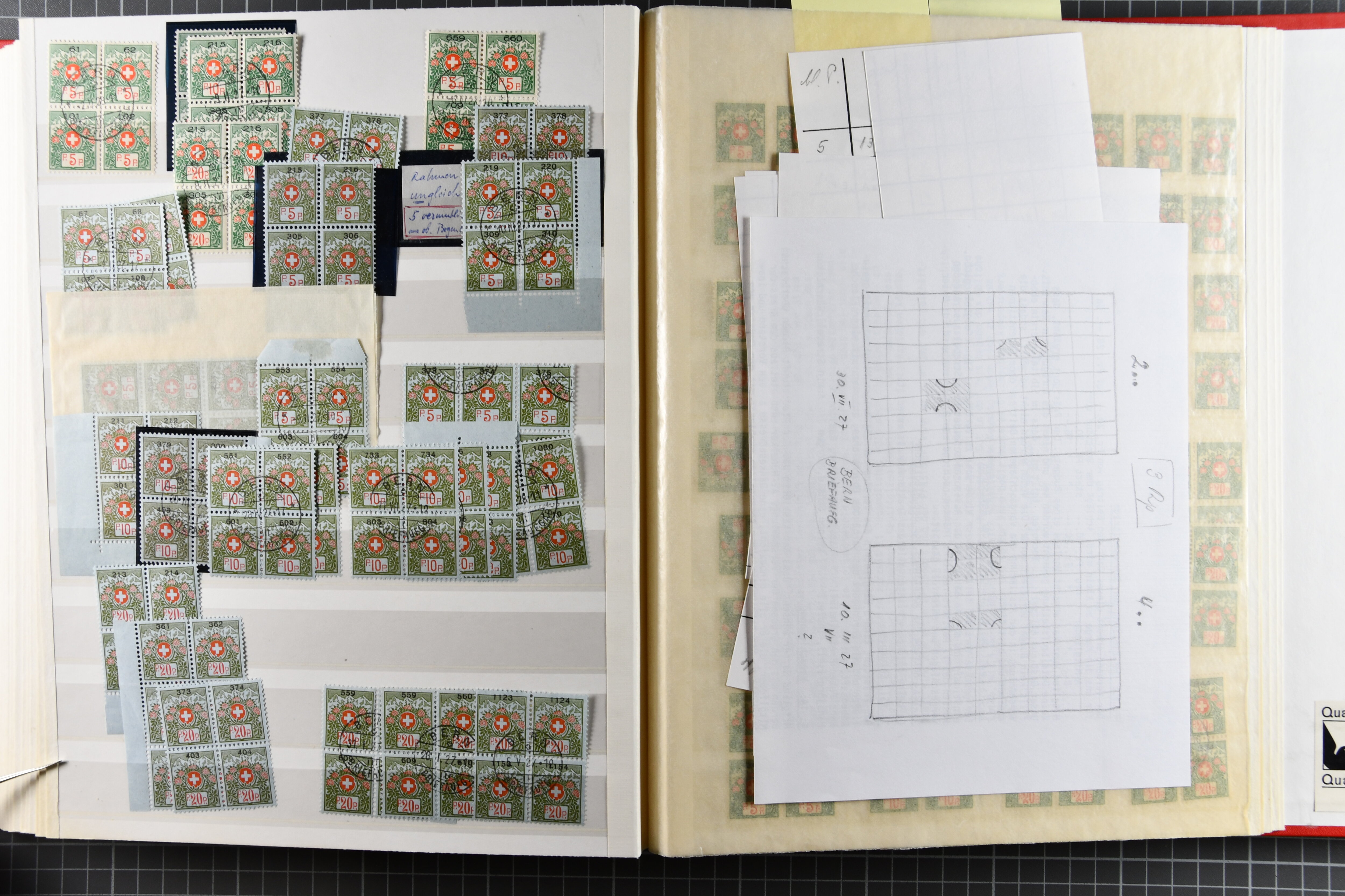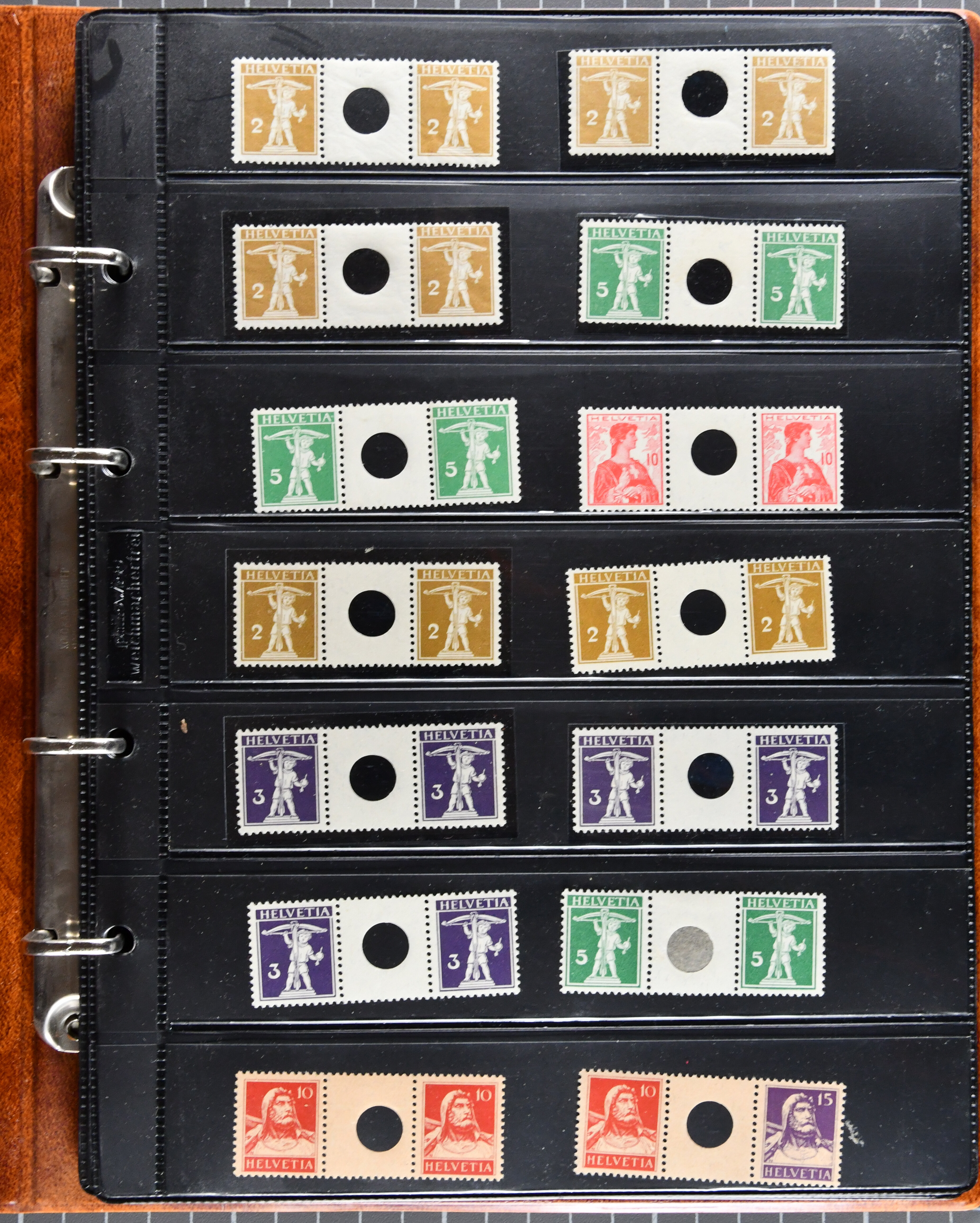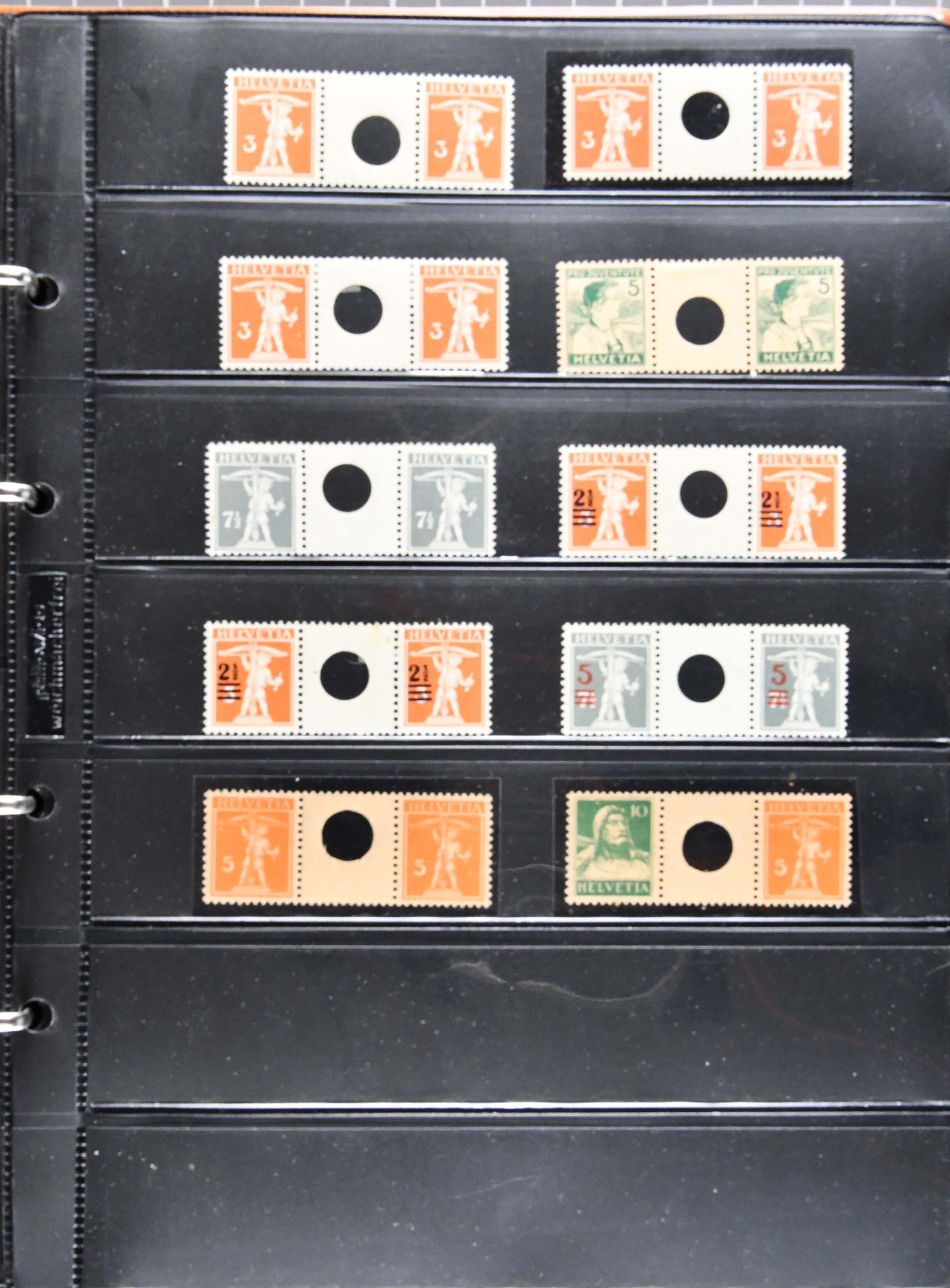 1909/70ca.: Konvolut Zusammendrucke, Kehrdrucke und Zwischenstege aus dem Bestand eines Abartensammlers, daher teilweise mit Notizen versehen. Bogenalbum mit vielen Zwischensteg-Bogen, darunter Pro Juventute