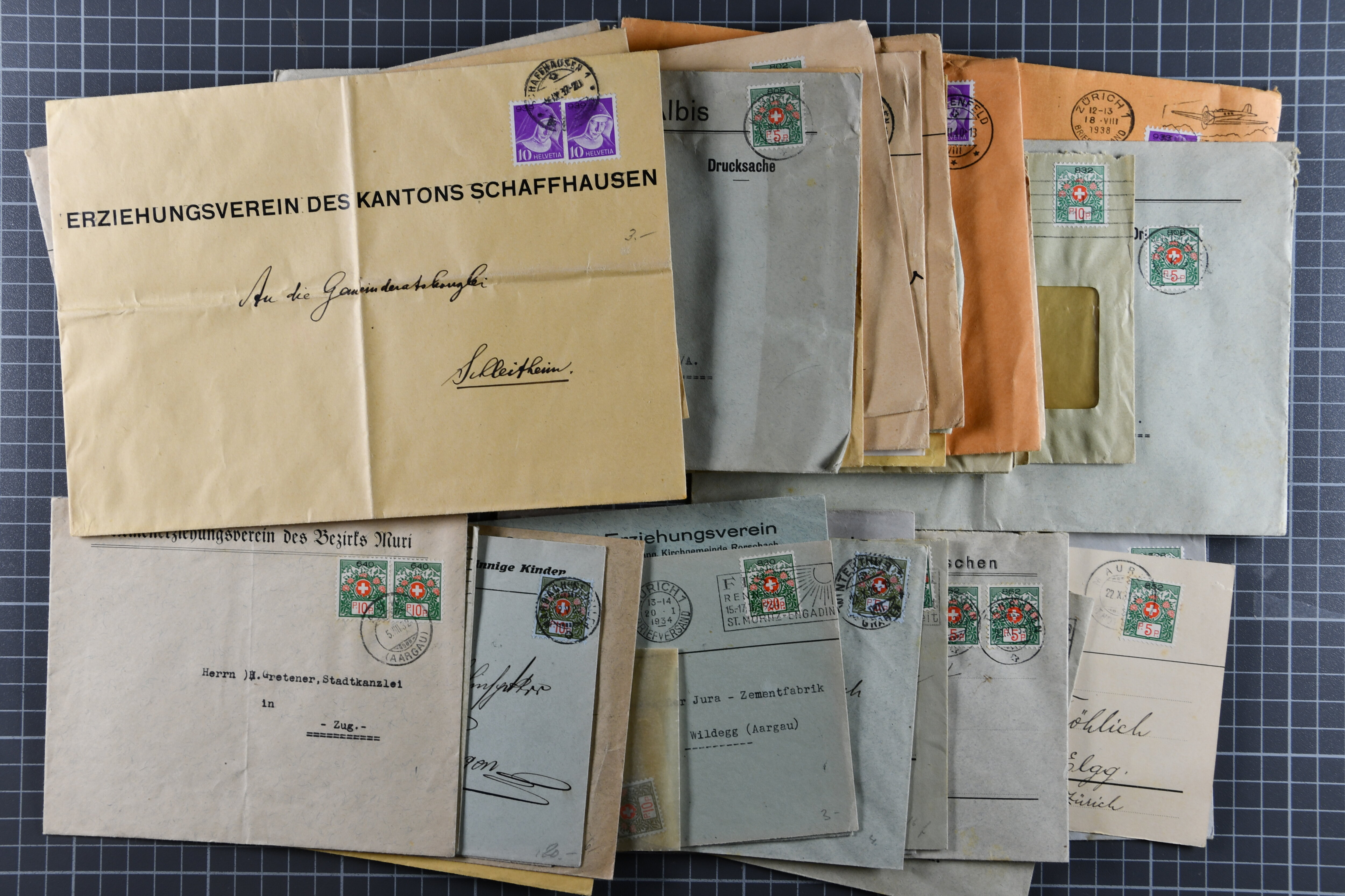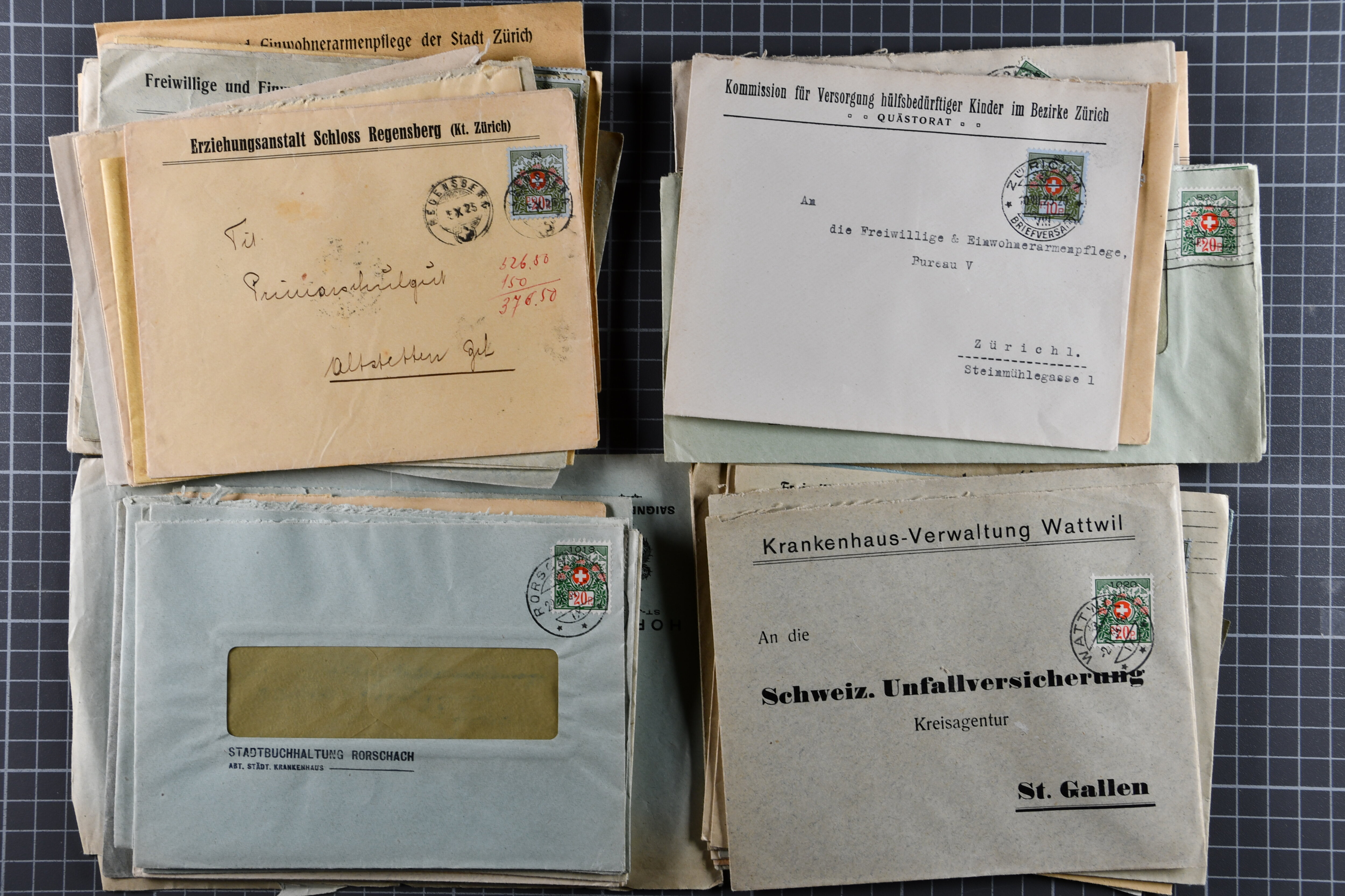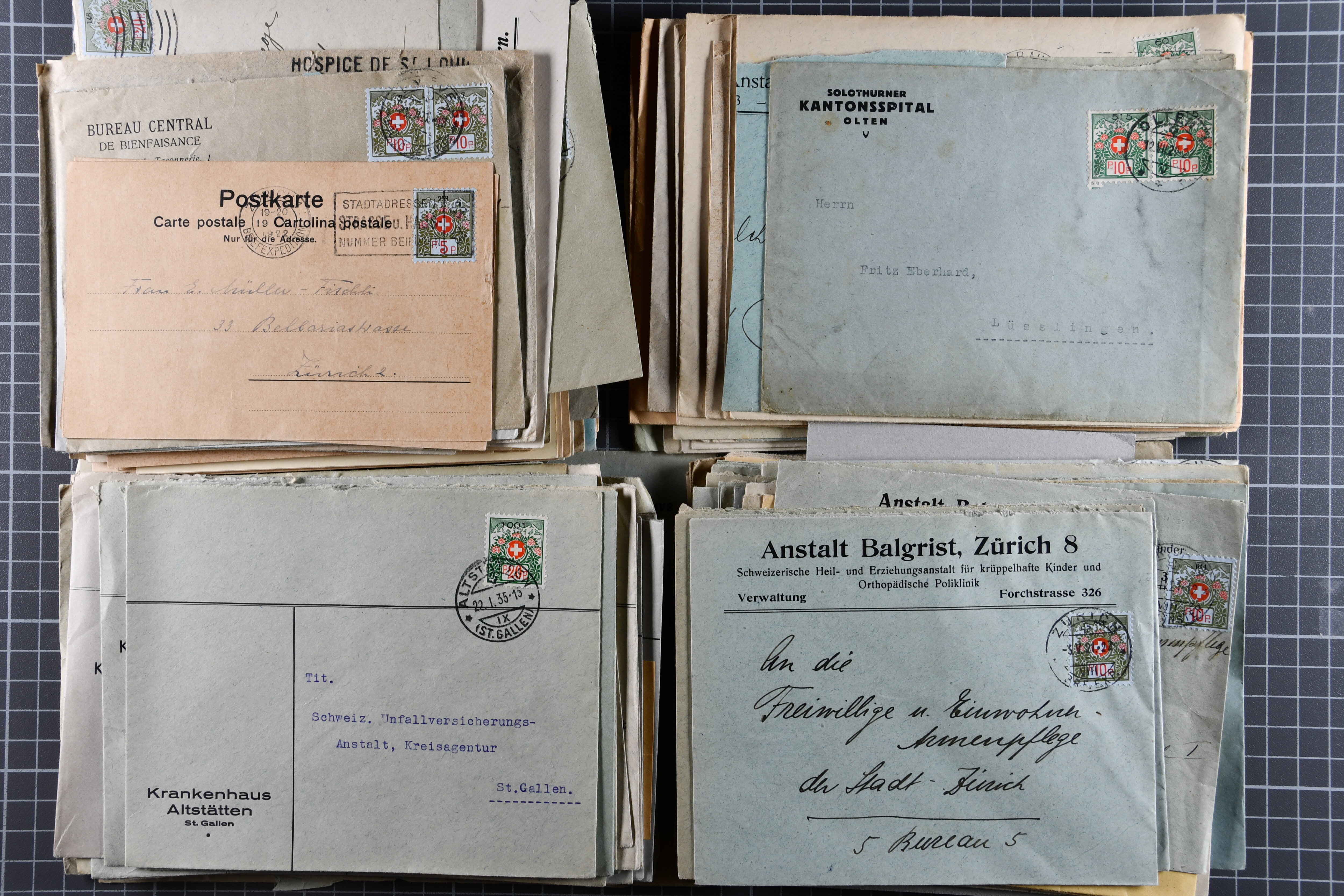 1911/43: PORTOFREIHEIT: Umfangreicher Bestand von geschätzt 1'100-1'200 Briefen eingiermassen vielfältig der Ausgaben Alpenrosen und Krankenschwestern, Hendri Dunant. Soweit gute Bedarfserhaltung mit vielen