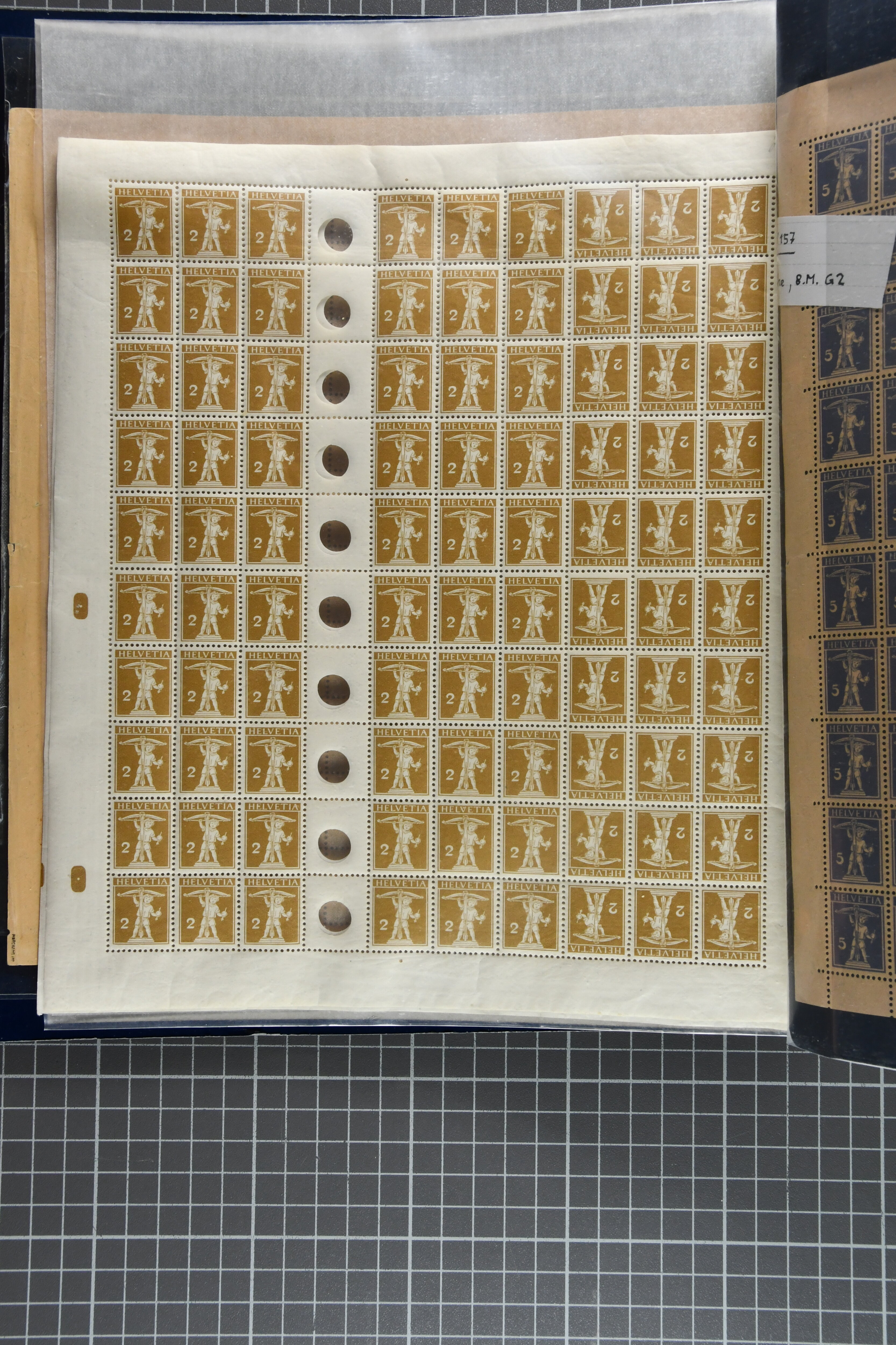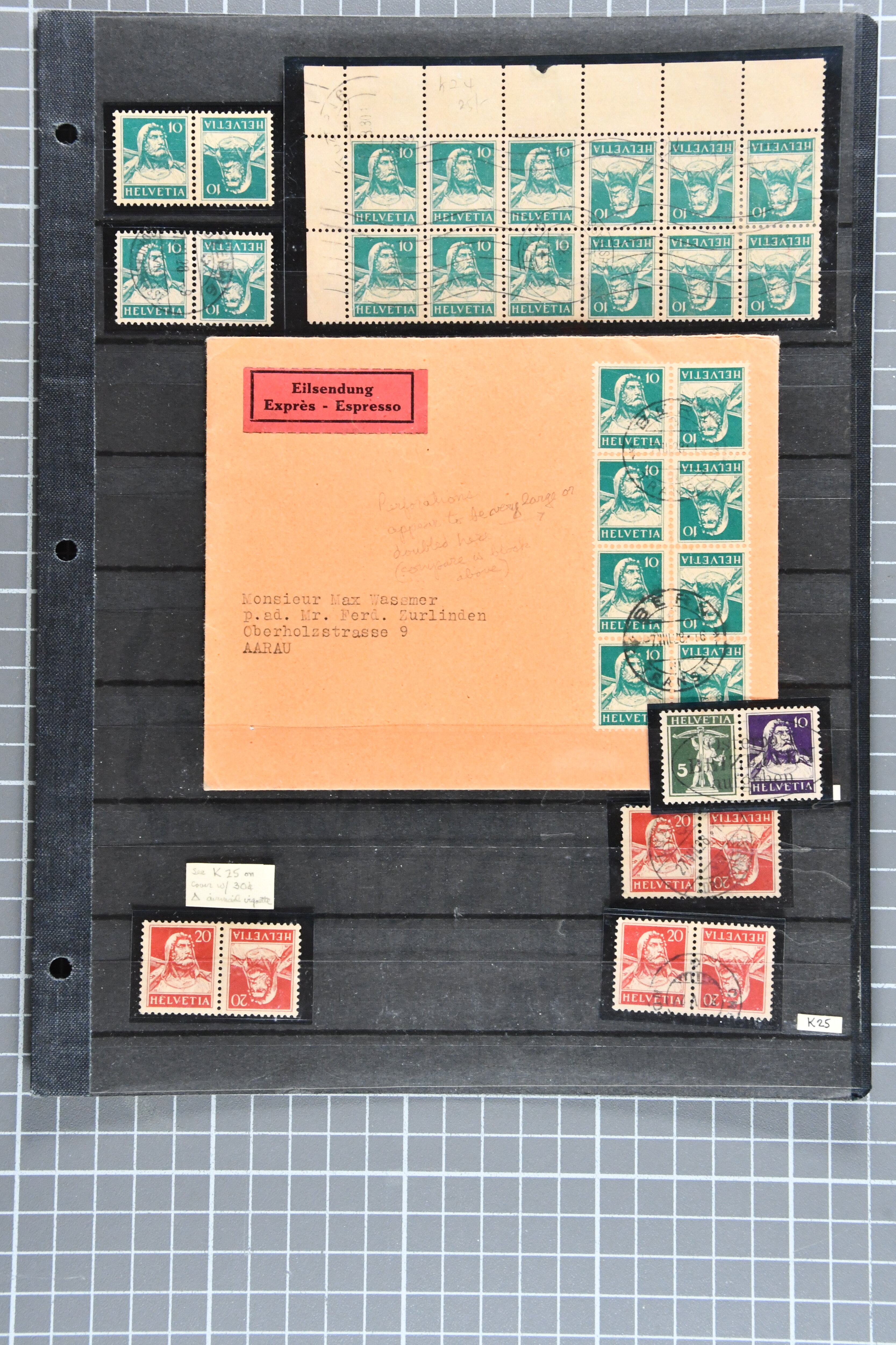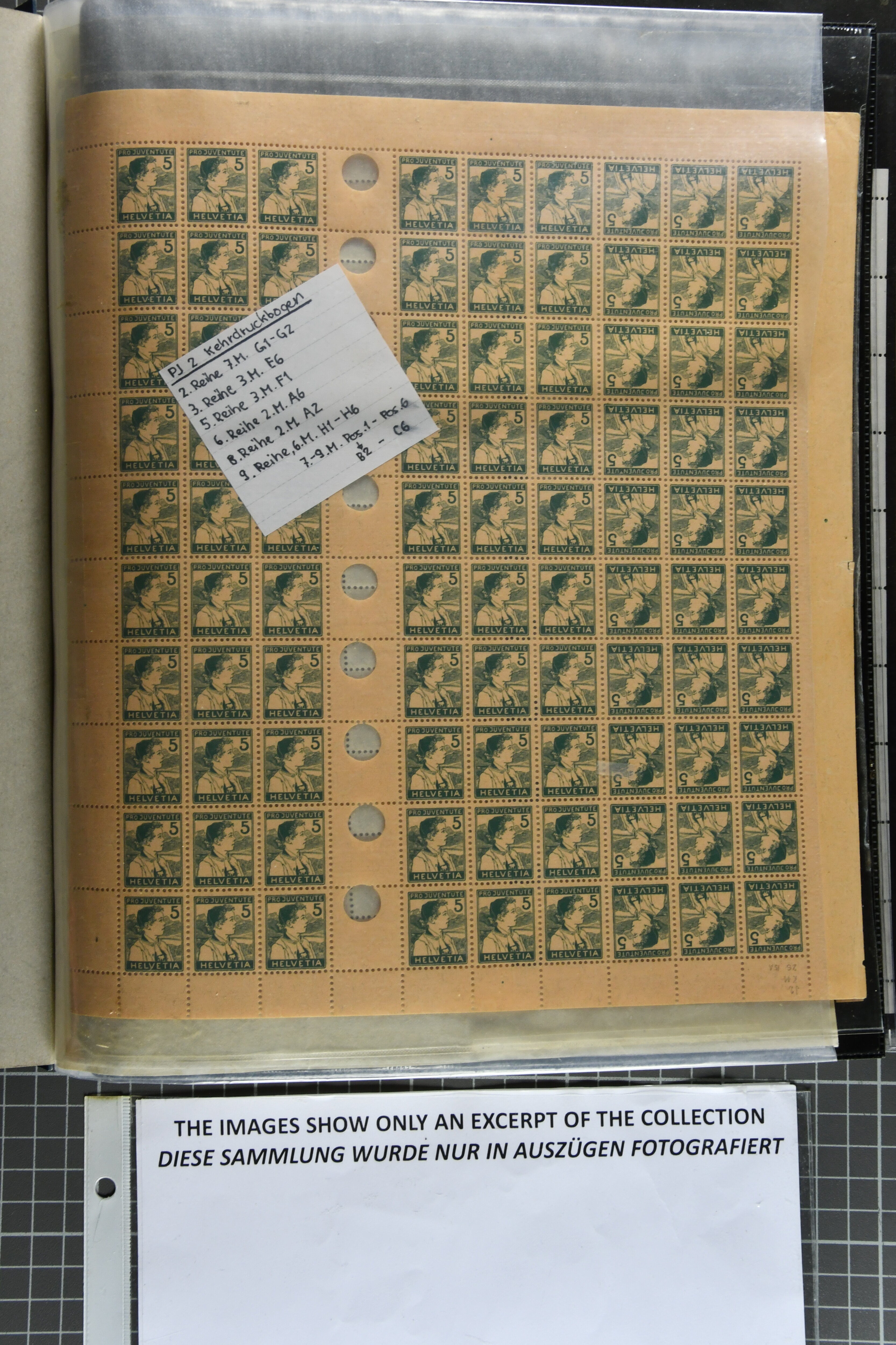 Zwischensteg-Bogen Appenzellerknabe, mit kleinen Randmängeln (SBK = CHF 6000), z.B. auch 5 rp. Pilatus Stiechtiefdruckausgabe vielfach usw. kleines Lagerbuch mit gestempelten Kehdrucken und Zusammenhängenden; Sammlung der Zwischenstegen ungebraucht