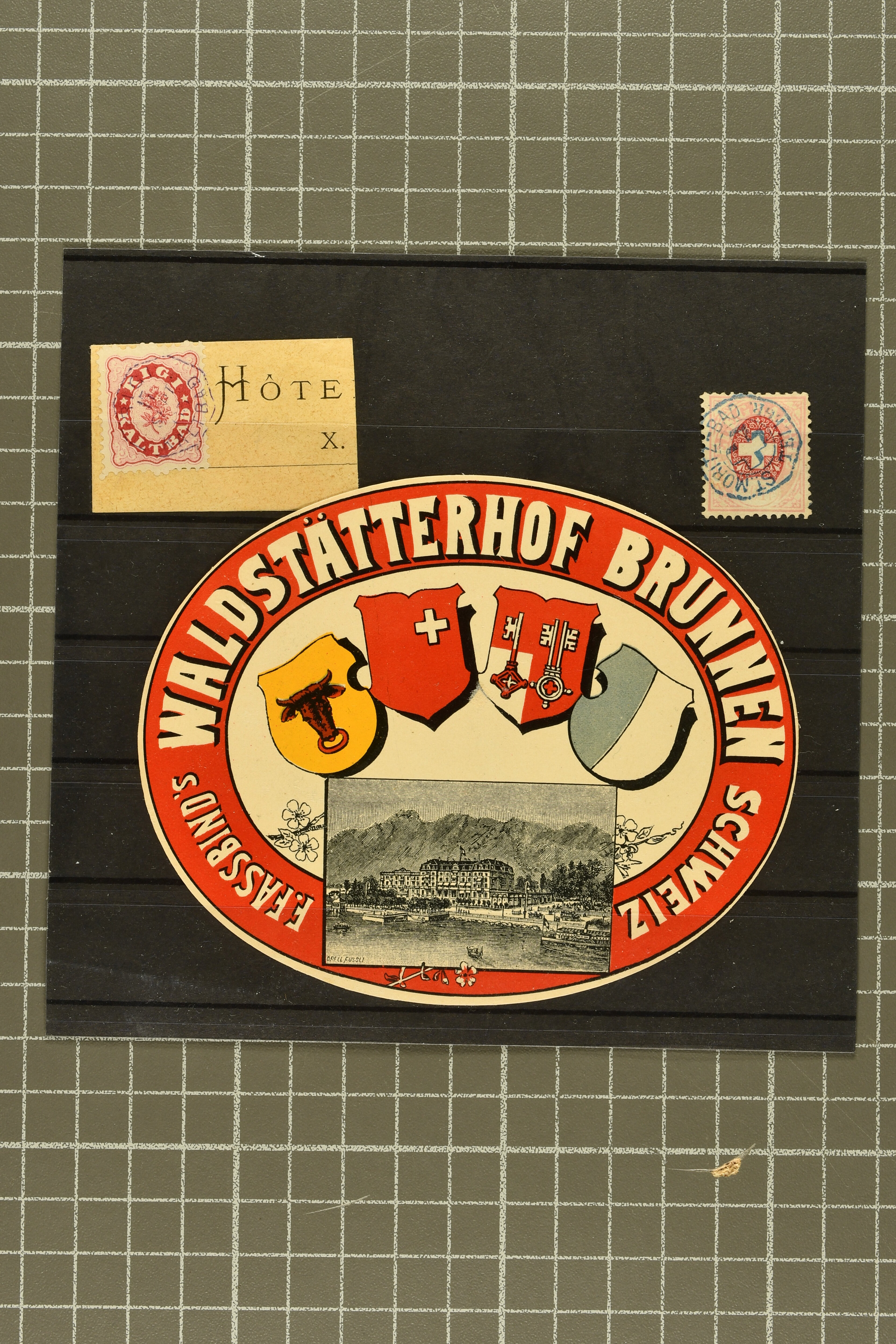 1875/1900 (ca.): Hotels: Lot mit Hotelpostmarke Rigi-Katlbad purpurrot (SBK 26), zart entw. mit Achteckstp. "RIGI / KALTBAD 13. SEPT. 63" in violett auf Briefstück, Telegraphenmarke 20 Fr. rosa/karmin auf weissem