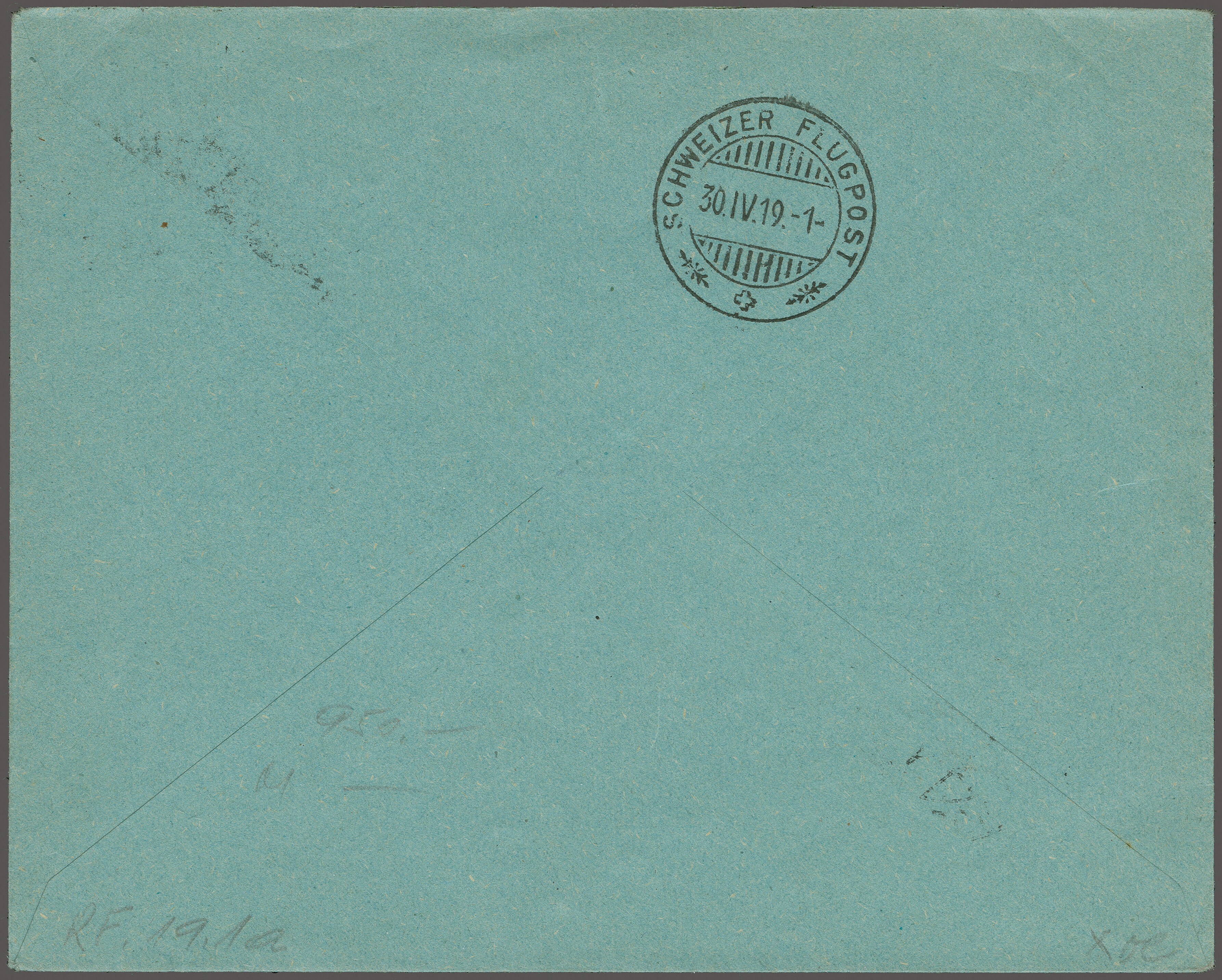 Flugpost 30.IV.19-1-". Ein besonders sauberer Erstflugbeleg. (Image 1)