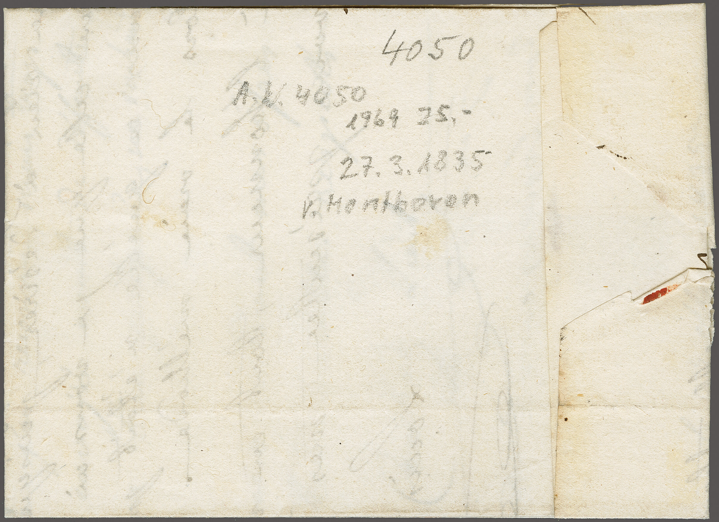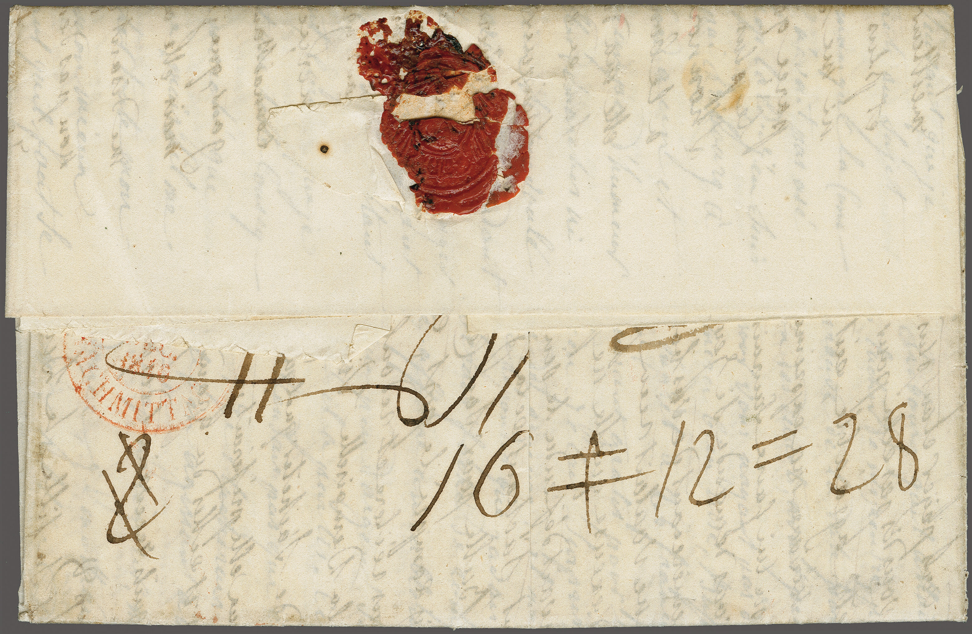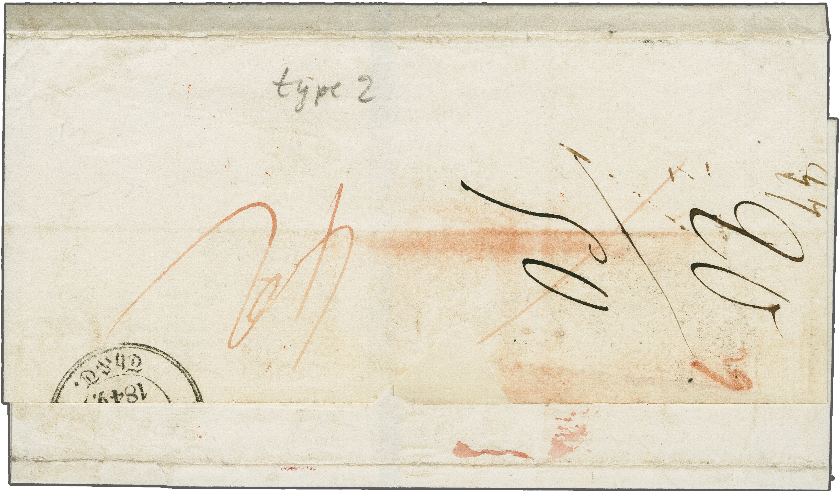"Postgeschichte von Genf", S. 136. Anmerkung: Der Kanton Genf hatte zu dieser Zeit keine direkten Postverträge mit den deutschen Staaten, sodass der Brief zu den Bedingungen des Vertrags von 1835 zwischen Thurn und Taxis und Basel befördert werden