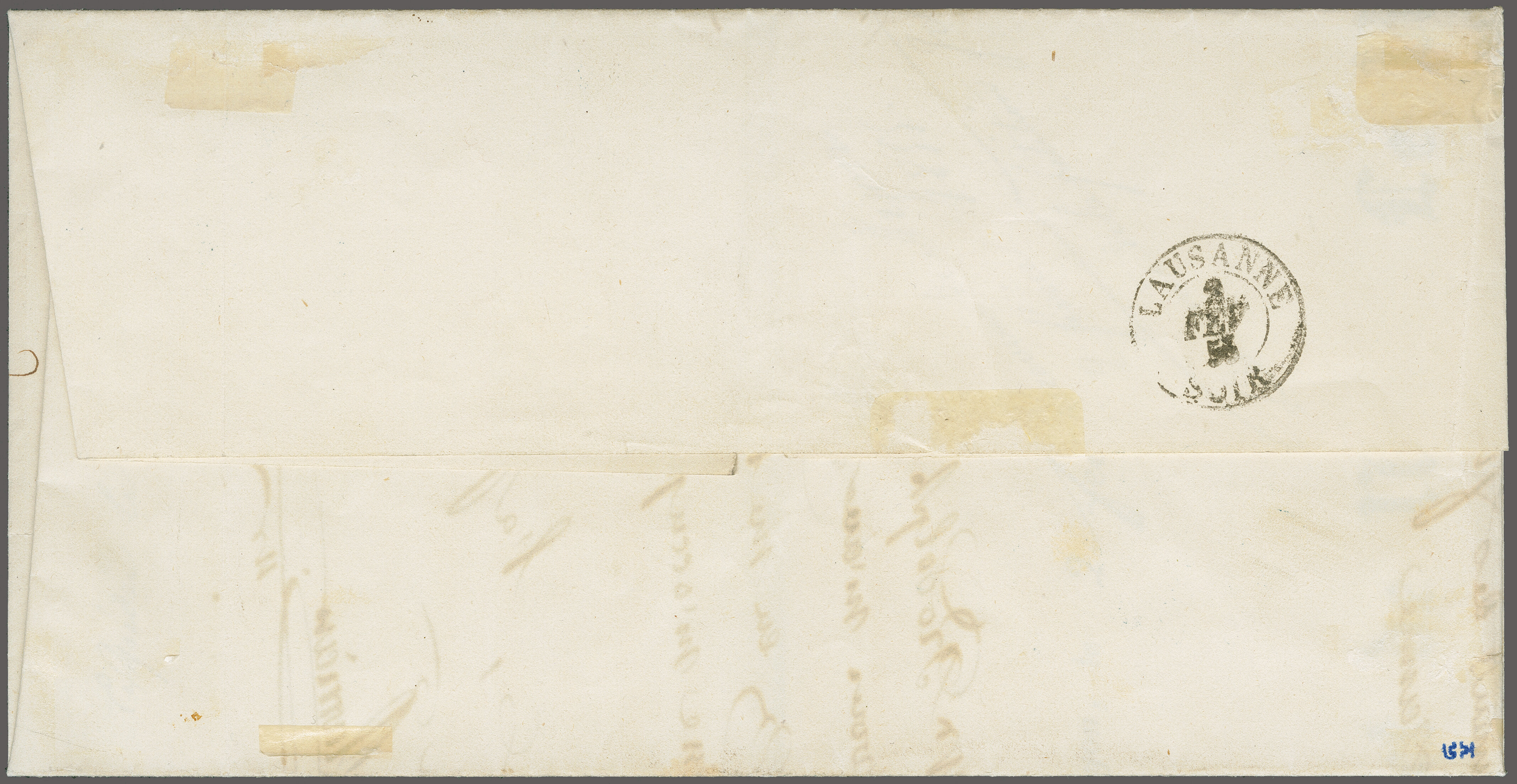 Letzteres dem vom Empfänger erhobenen US-Inlandsporto für die Strecke bis New Orleans entspricht. Teilw. Tintenfrass und in den Falten leicht fragil, nichtsdestotrotz ein interessanter und ansprechender Transatlantikbrief im ersten eidgenössischen