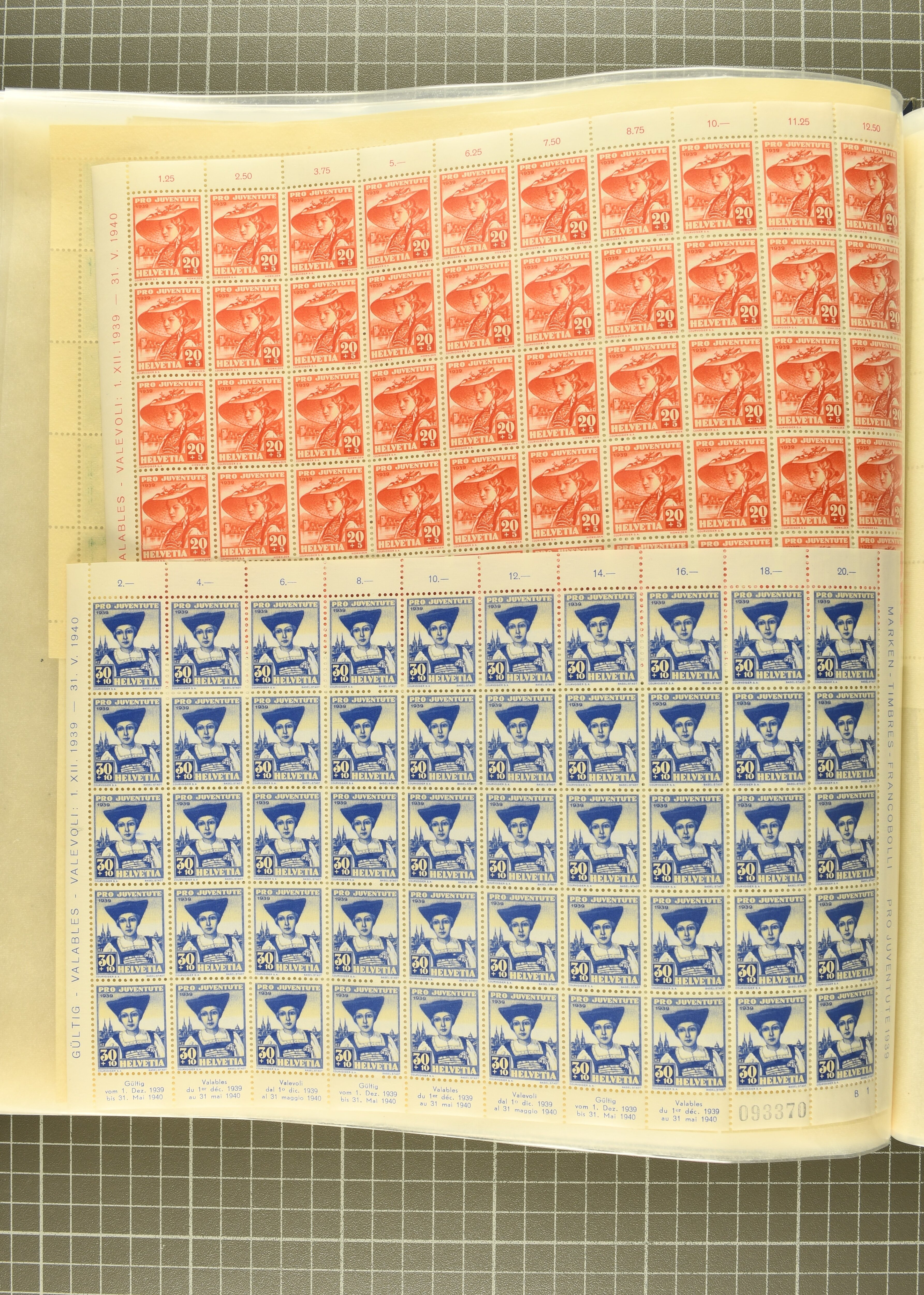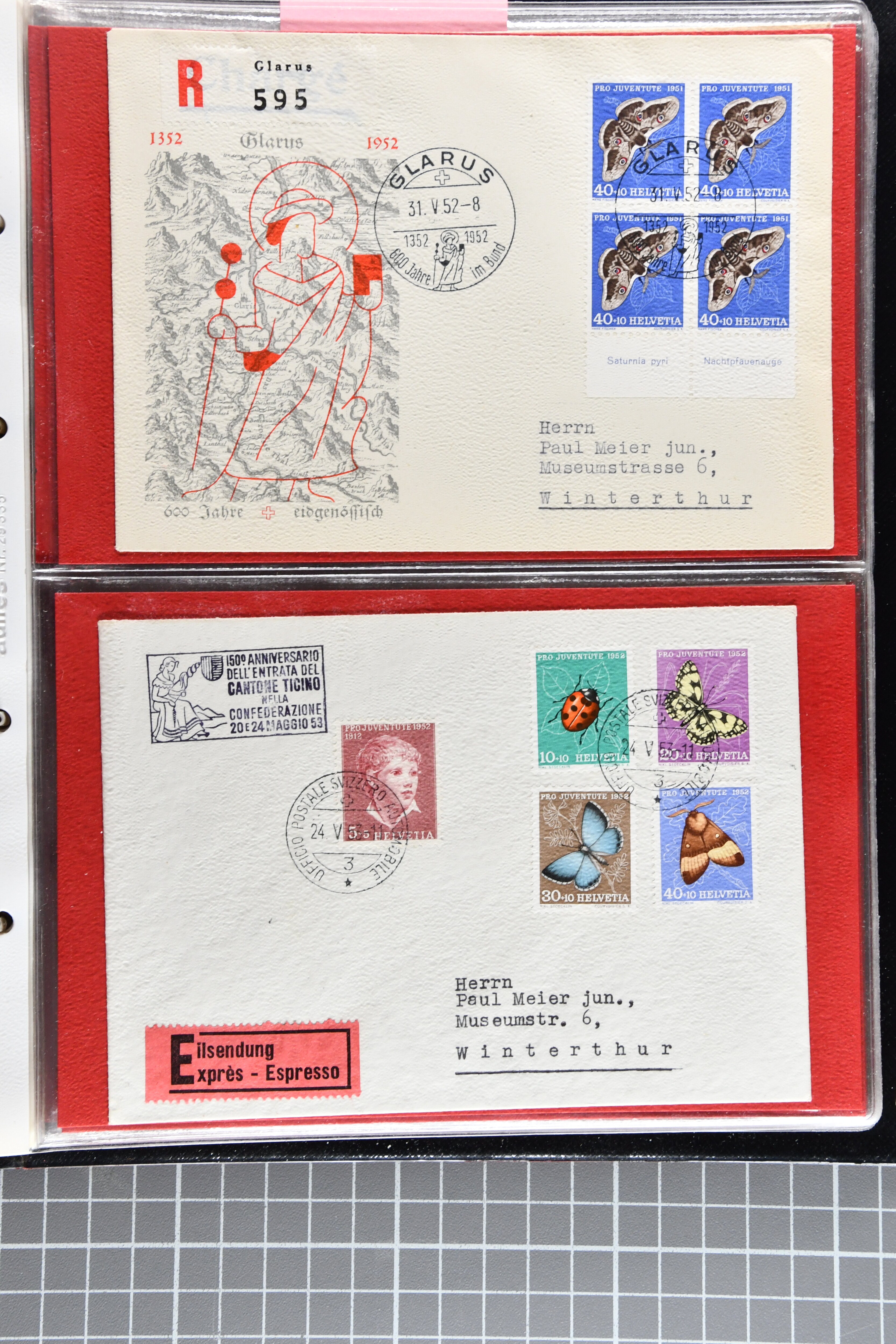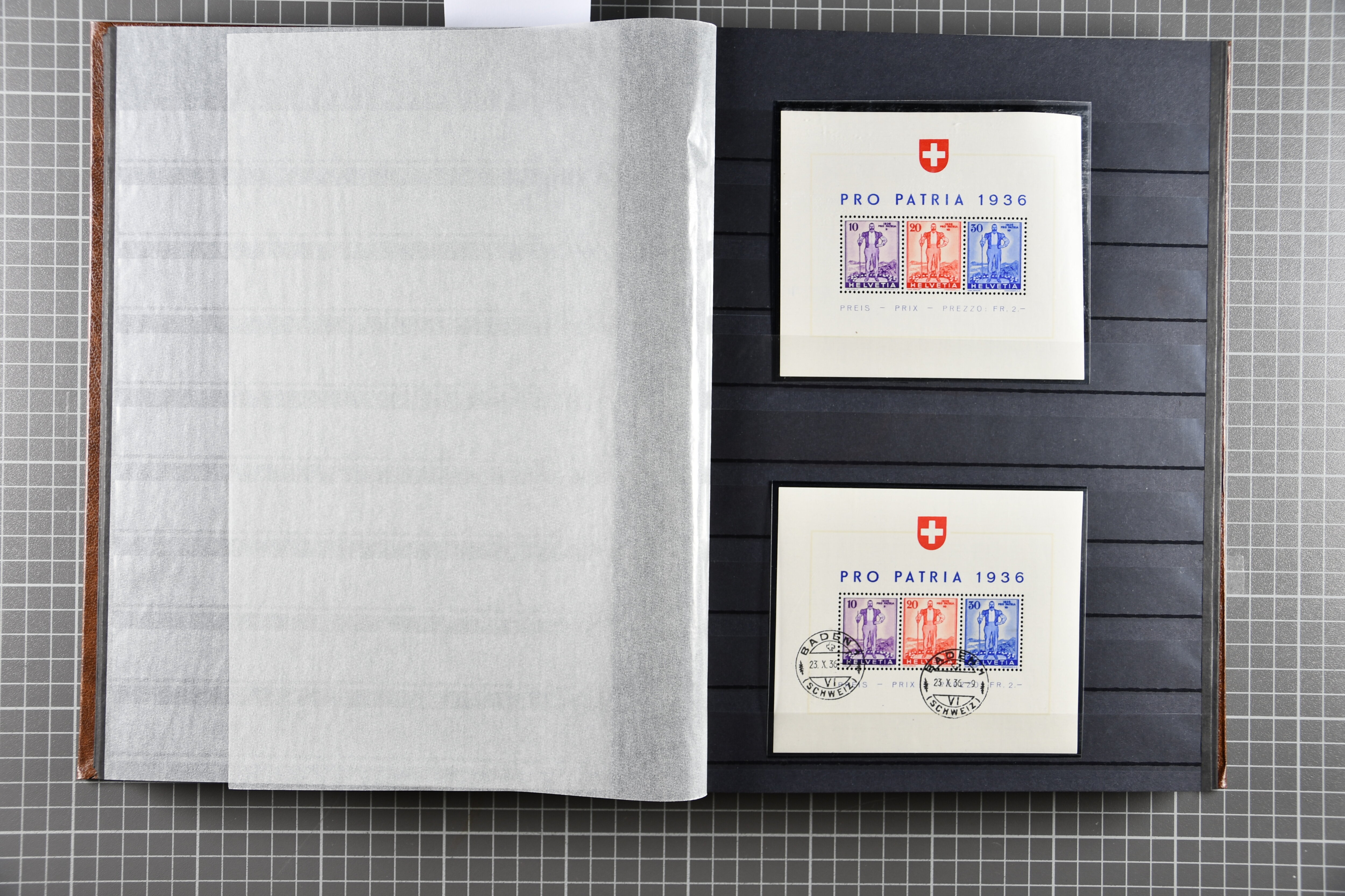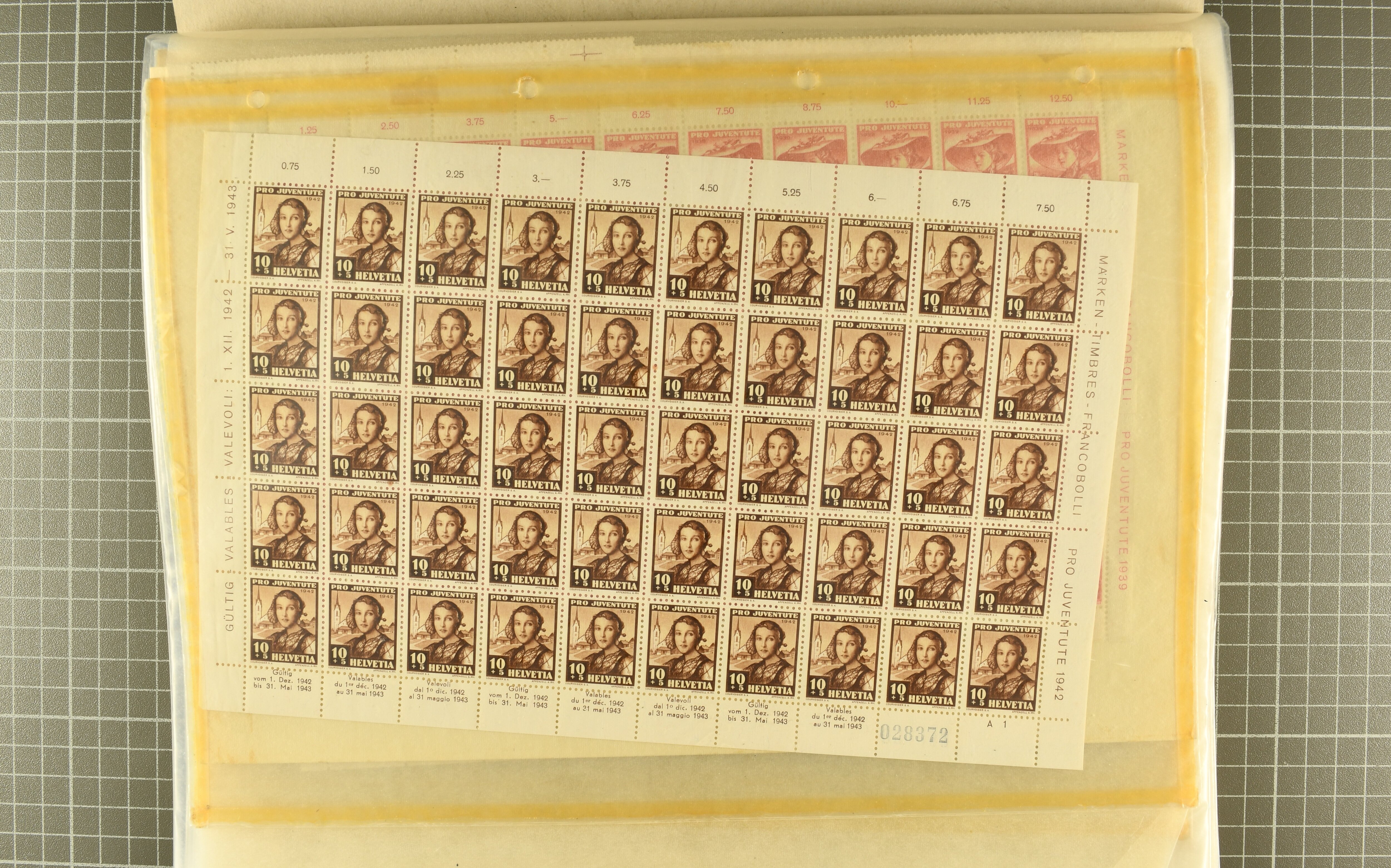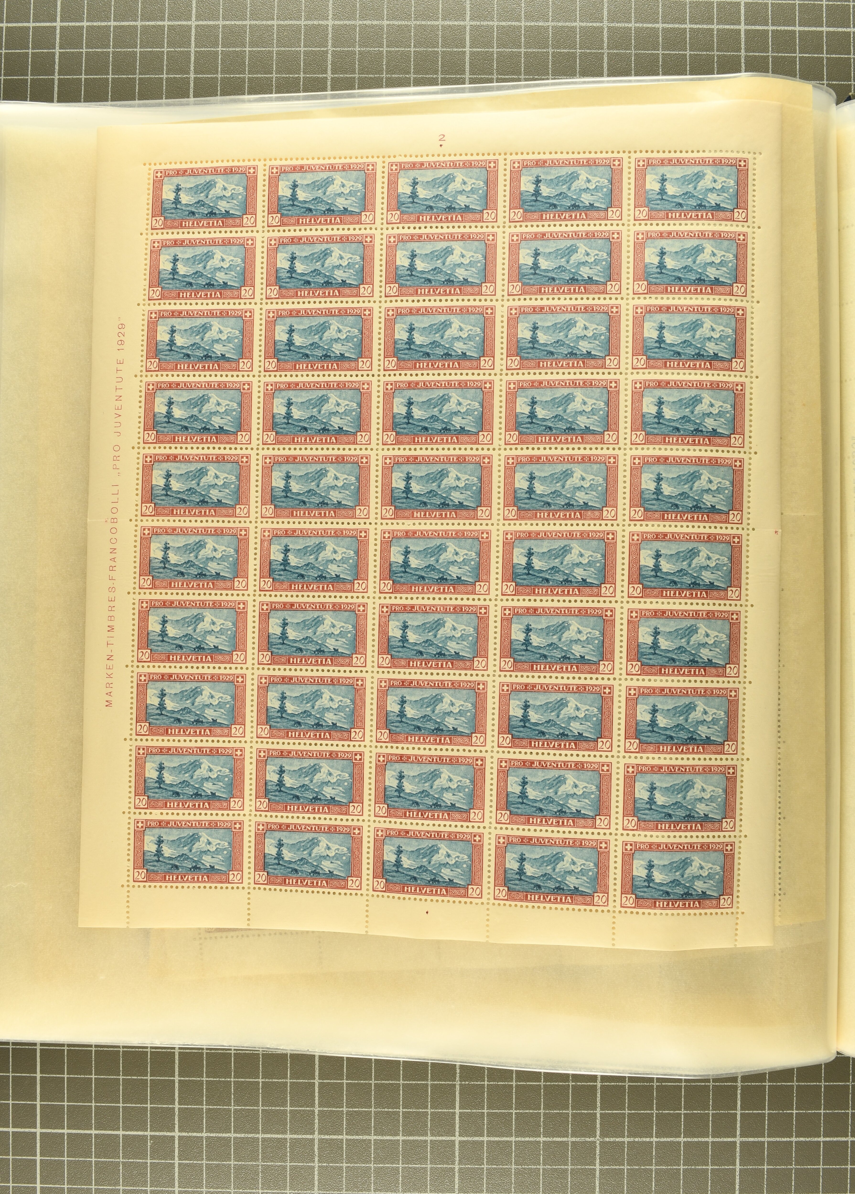 Blockausschnitten 1941 zusammen klar entw. am Ersttag mit Halbmondstempel "SCHWEIZ. POSTMUSEUM 1.XII.41", je einem postfrischen und einem schön gestempelten Kehrdruckbogen 1953 und 1954 5 Rp. "Jeremias Gotthelf" mit Doppelprägung (SBK J153DP) postfr.