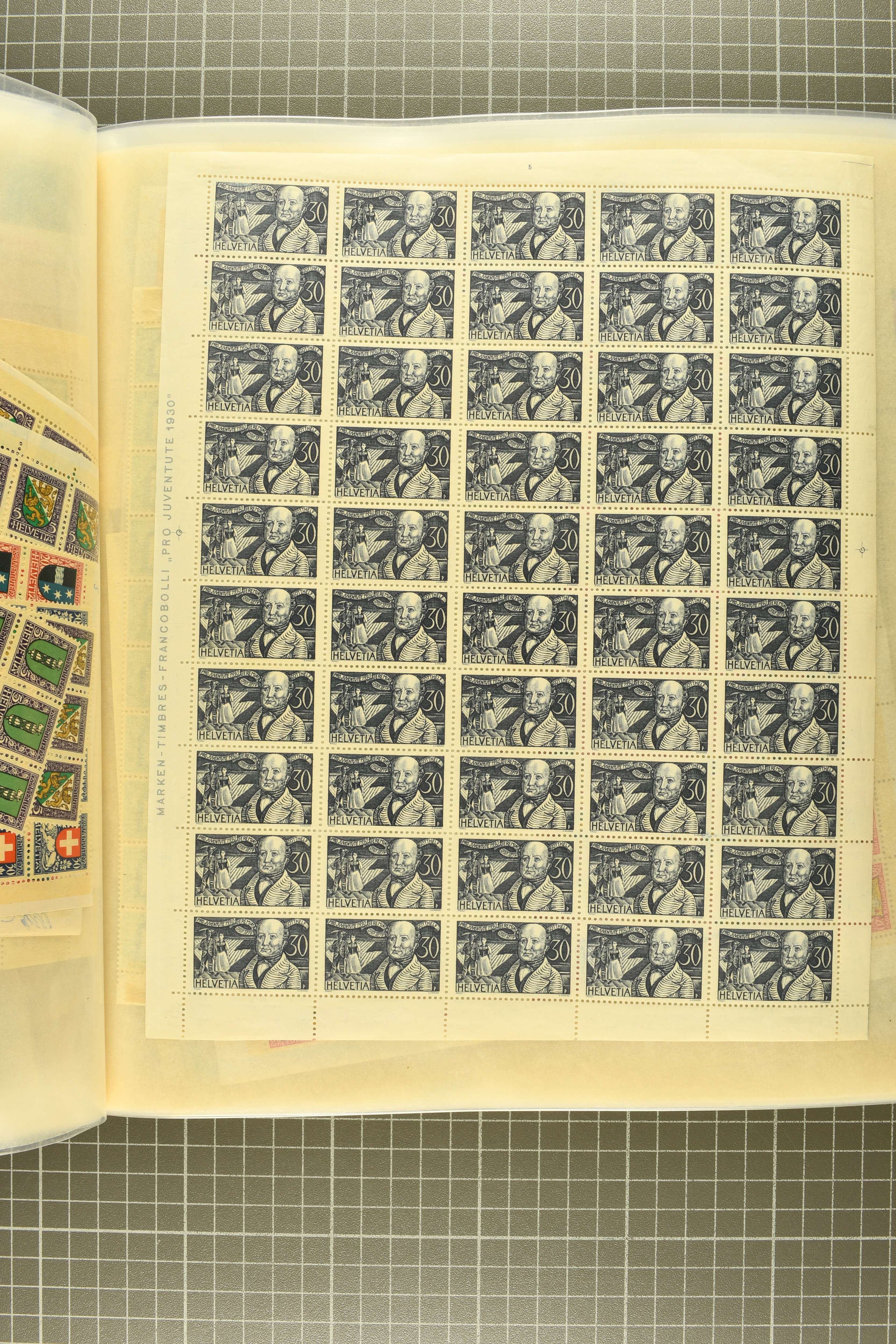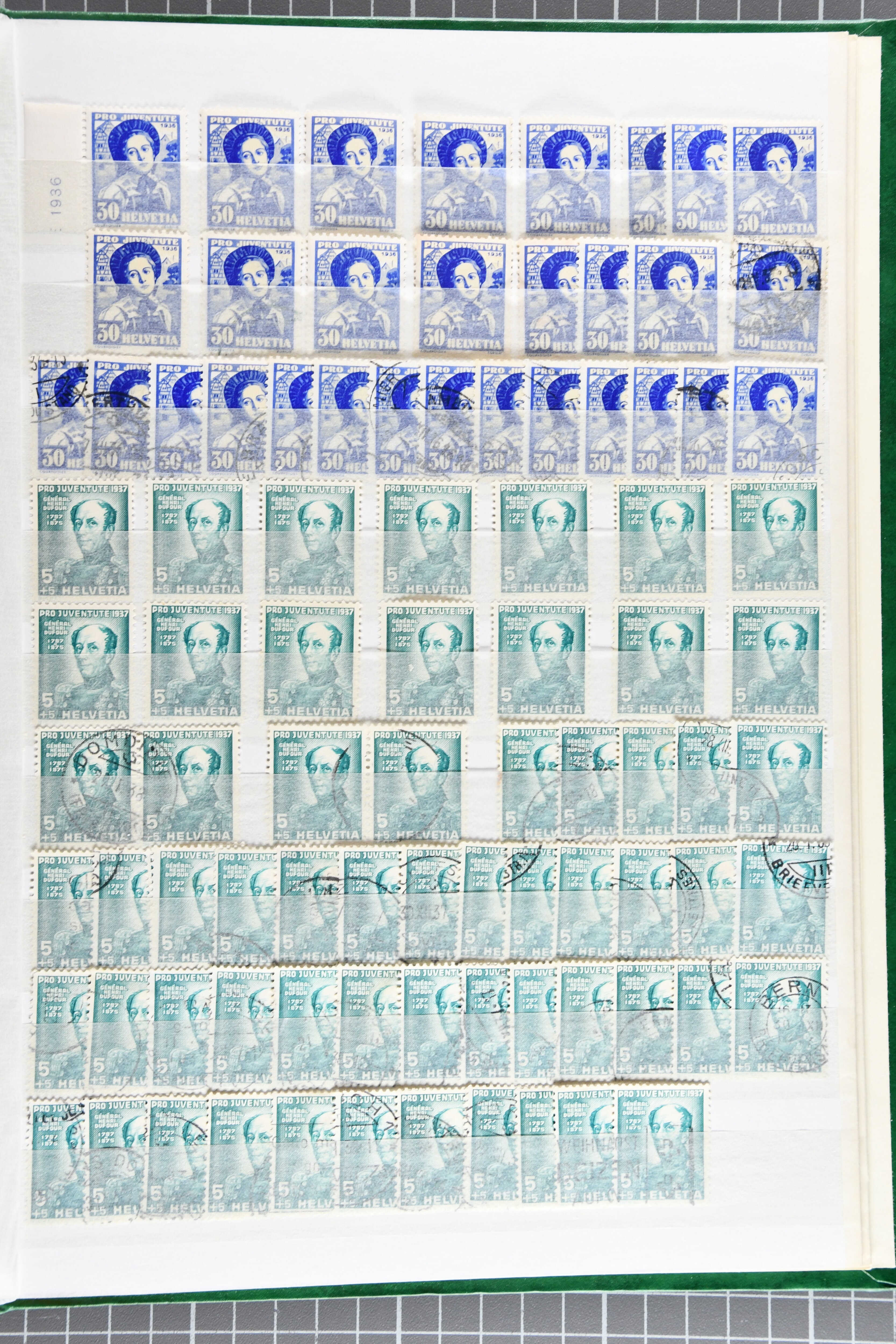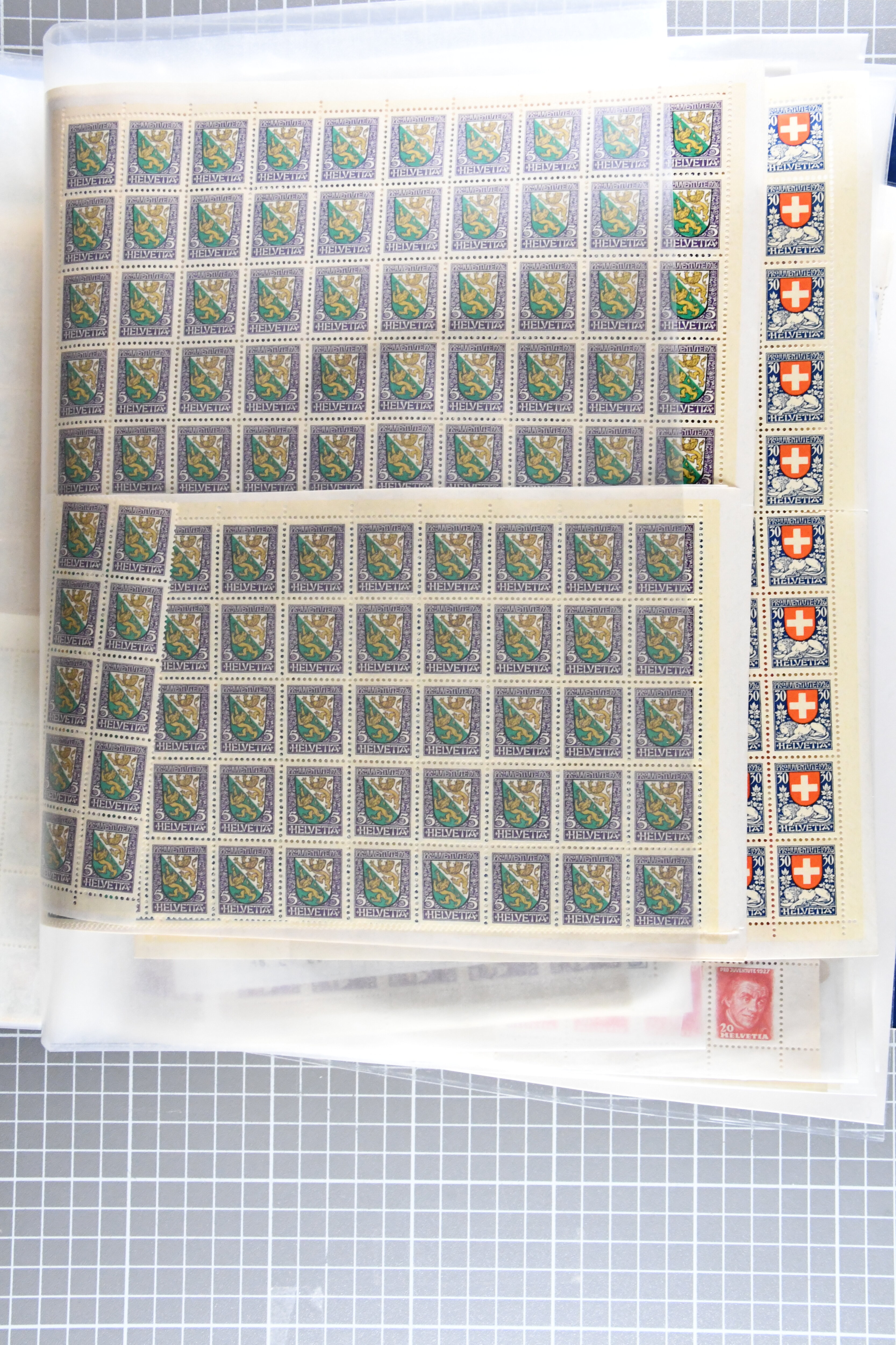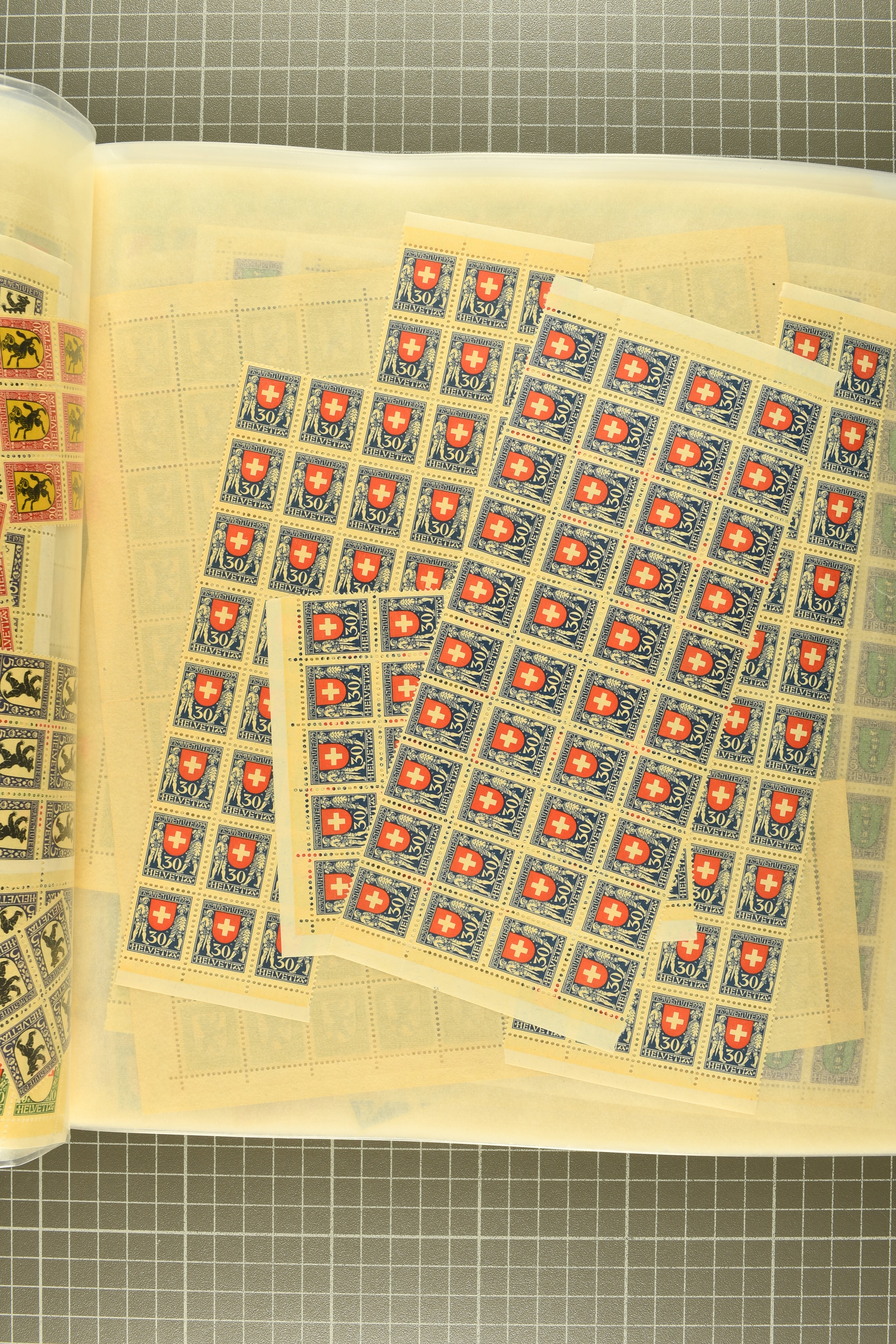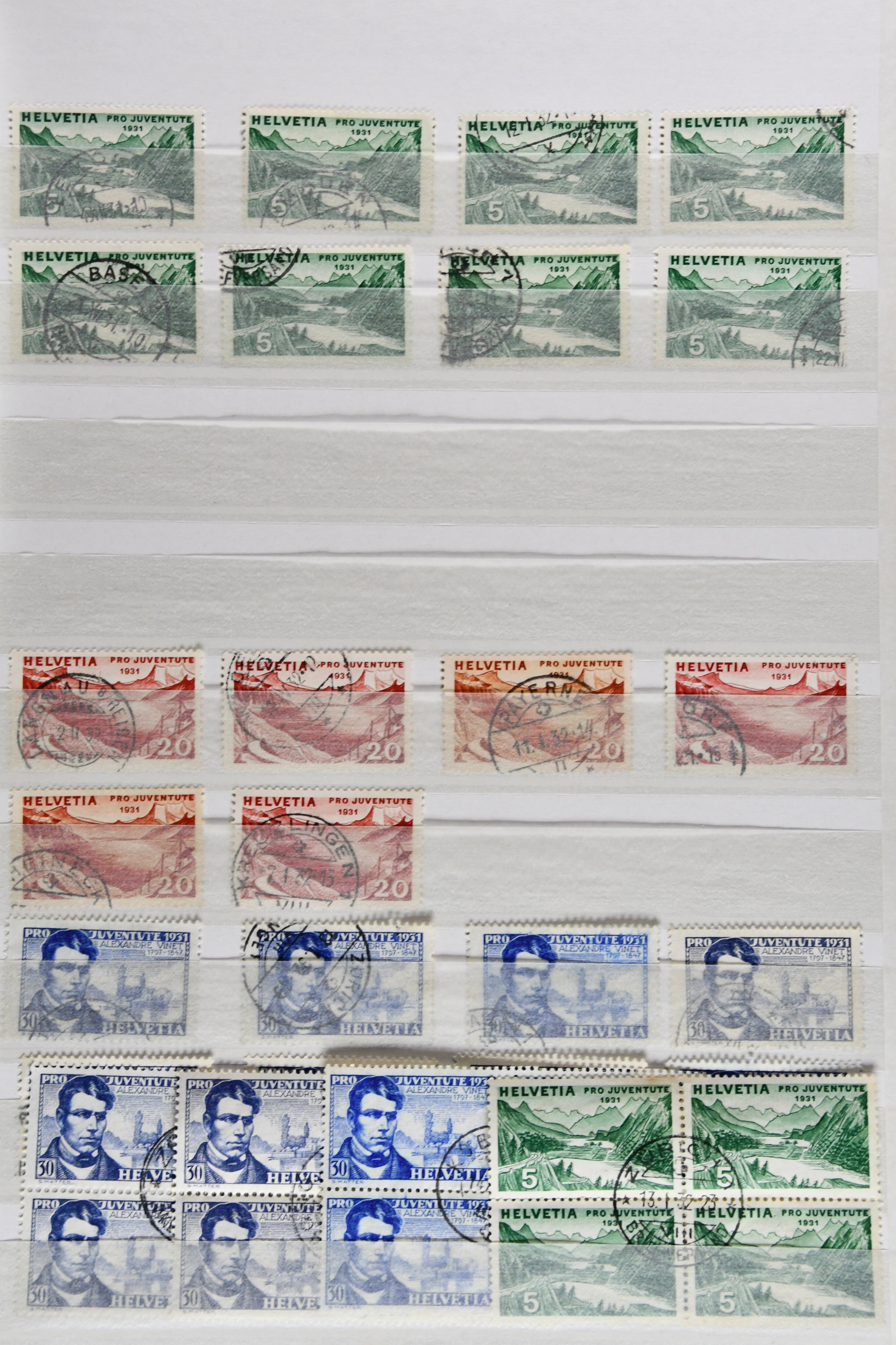 "Schweizerwappen" (3) (SBK J36), 1926, 30 Rp. "Schweizerwappen" (2) (SBK J40), 1931, 30 Rp. "Alexandre Vinet" (3) (SBK J60), 1934, 30 Rp. "Albrecht von Haller" (SBK J72), oder 1936, "Zürcherin" (SBK J80) aber auch viele kompl. Bogenserien oder die