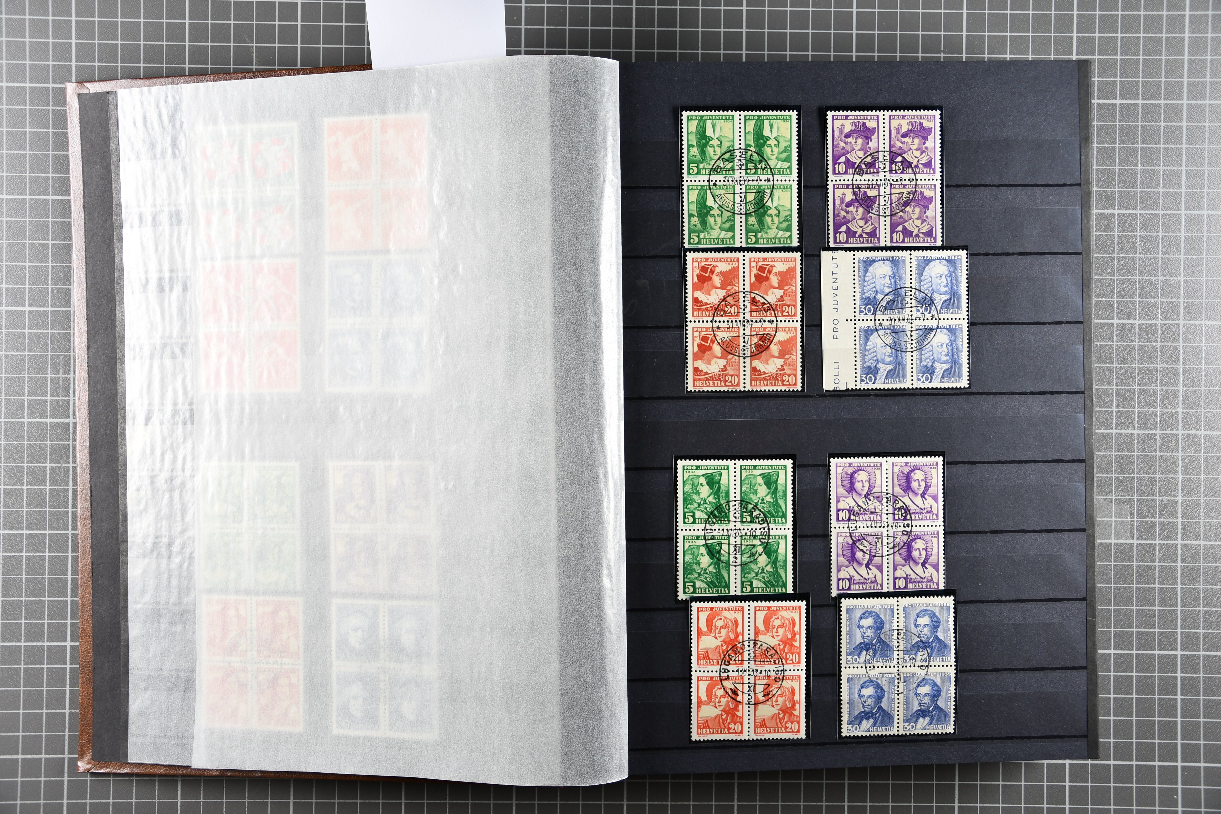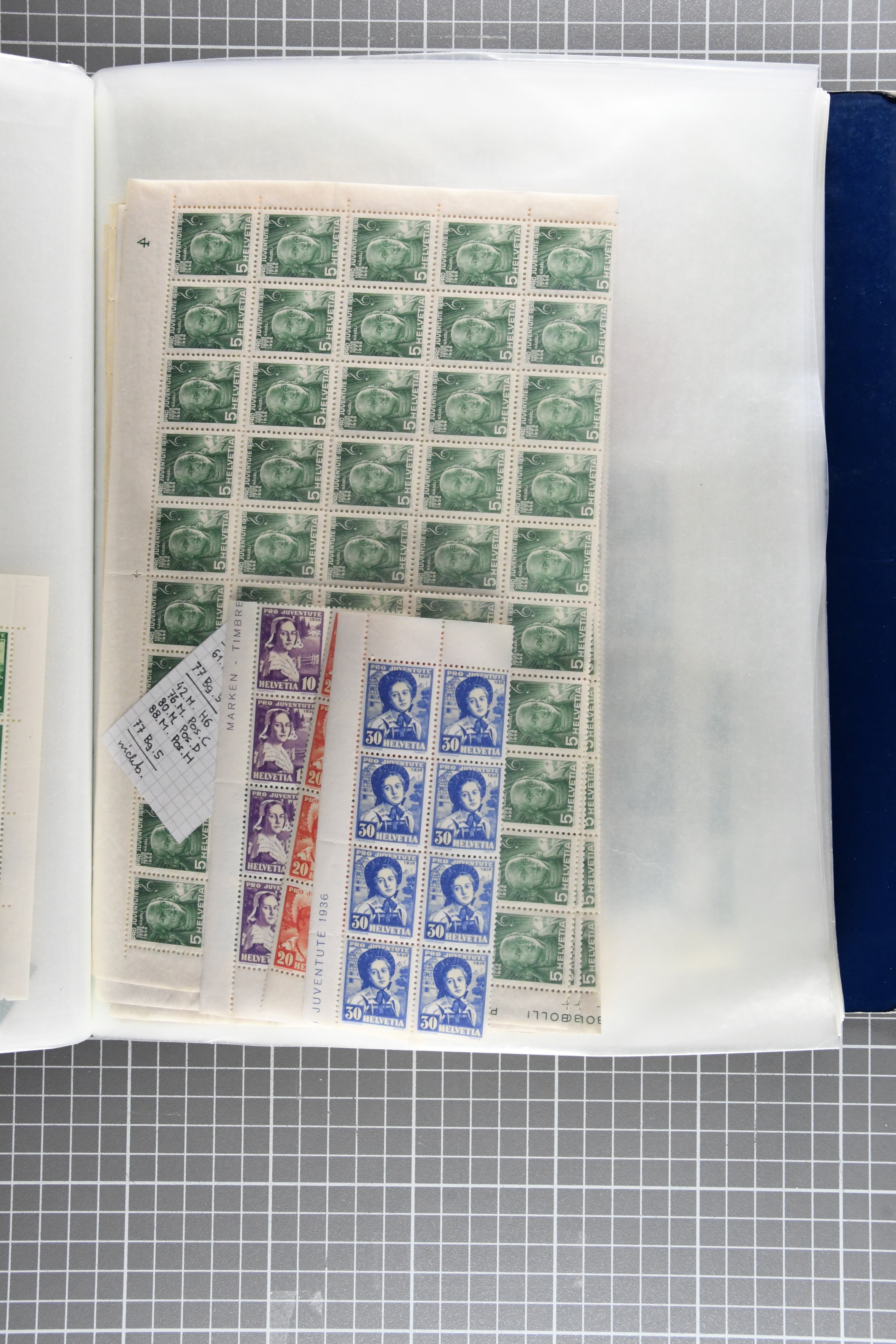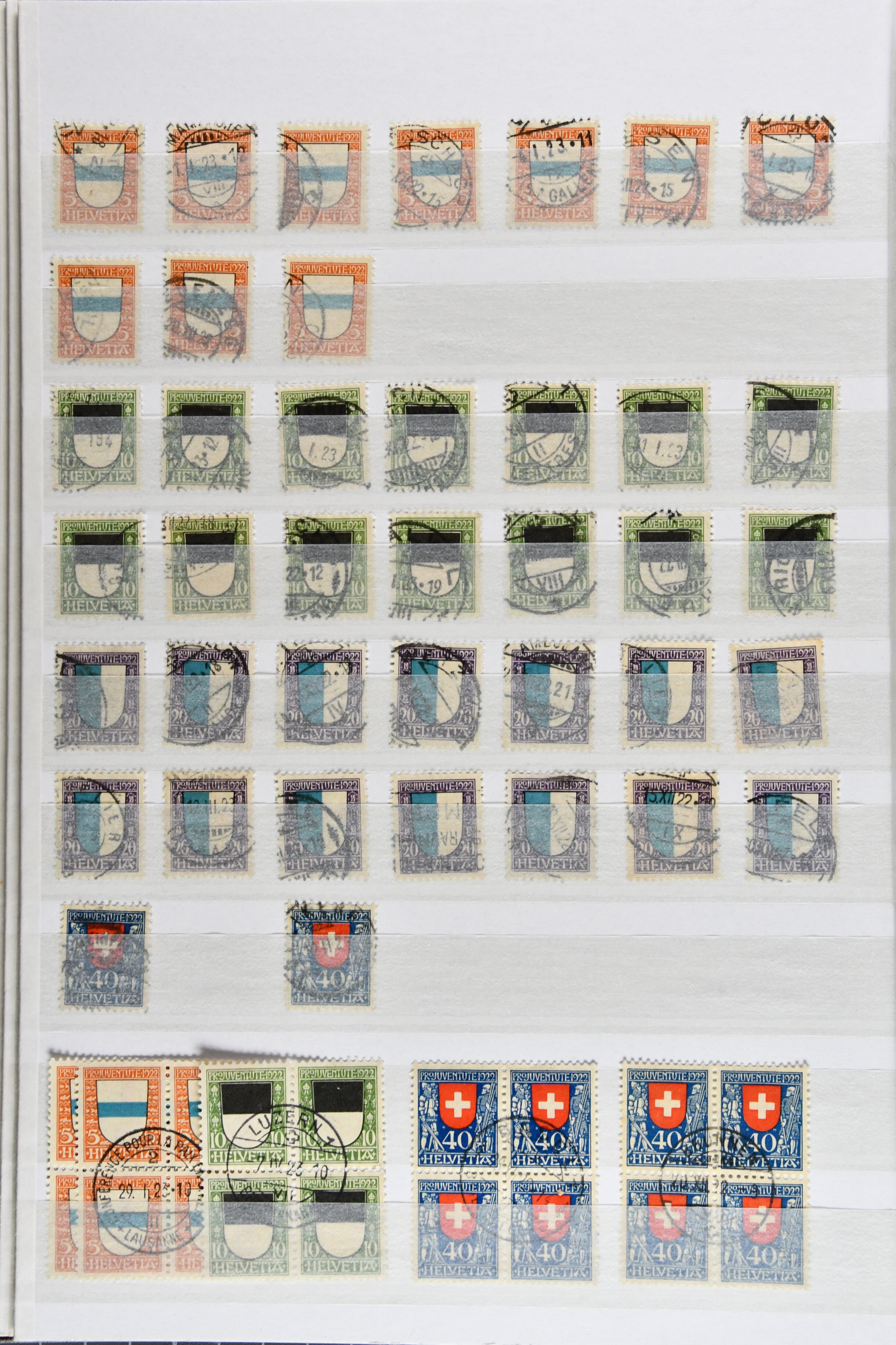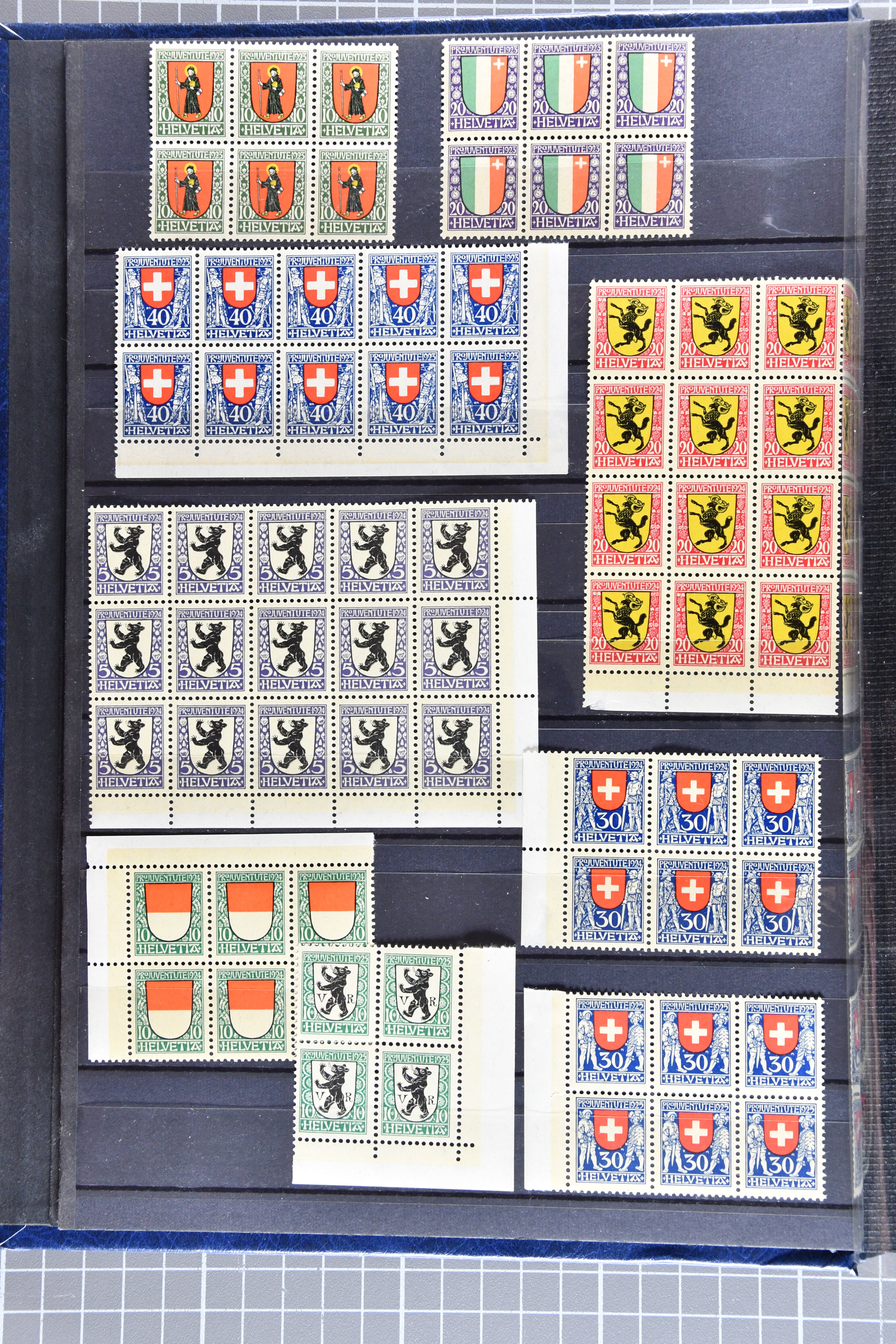 "Schweizerwappen" (3) (SBK J36), 1926, 30 Rp. "Schweizerwappen" (2) (SBK J40), 1931, 30 Rp. "Alexandre Vinet" (3) (SBK J60), 1934, 30 Rp. "Albrecht von Haller" (SBK J72), oder 1936, "Zürcherin" (SBK J80) aber auch viele kompl. Bogenserien oder die