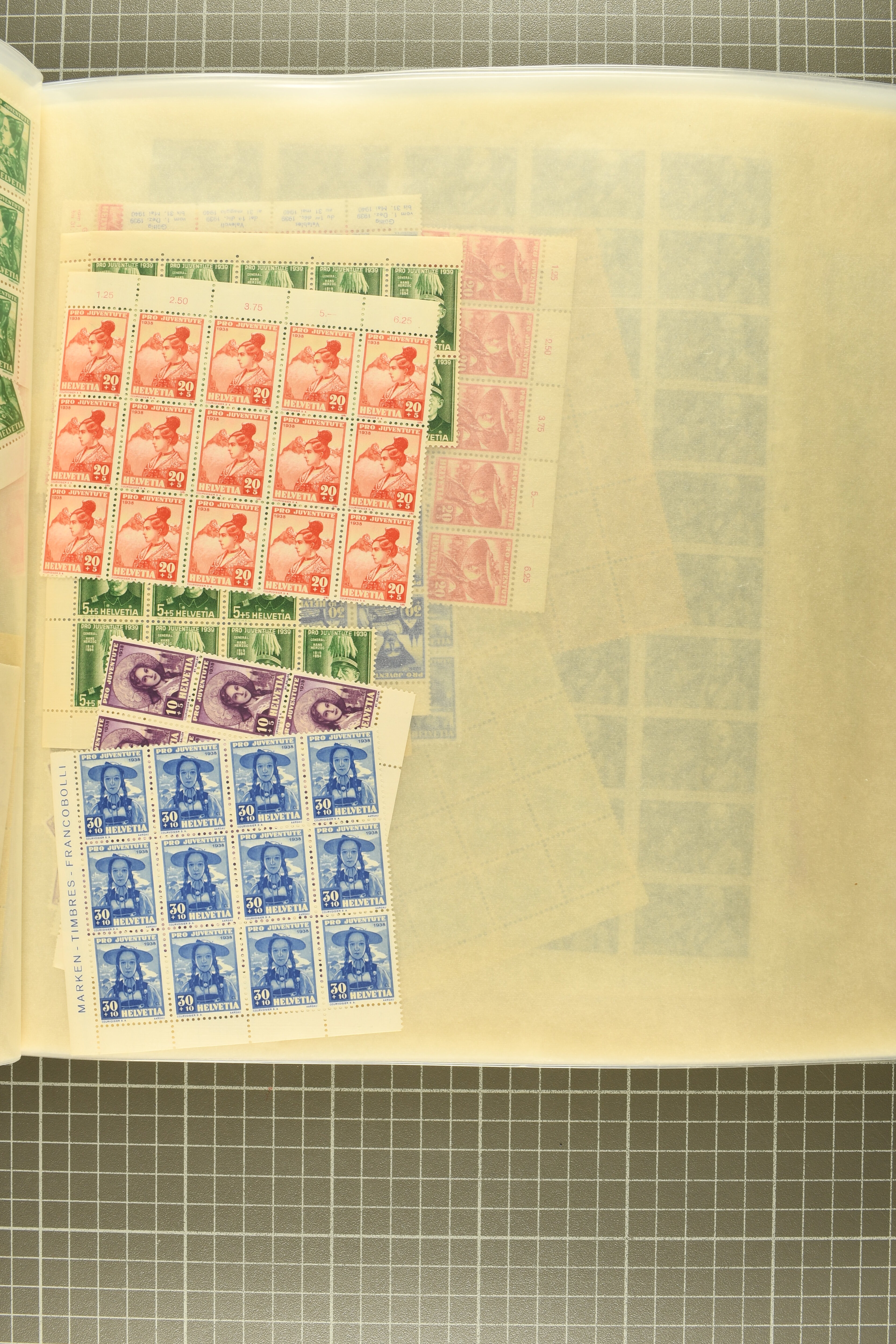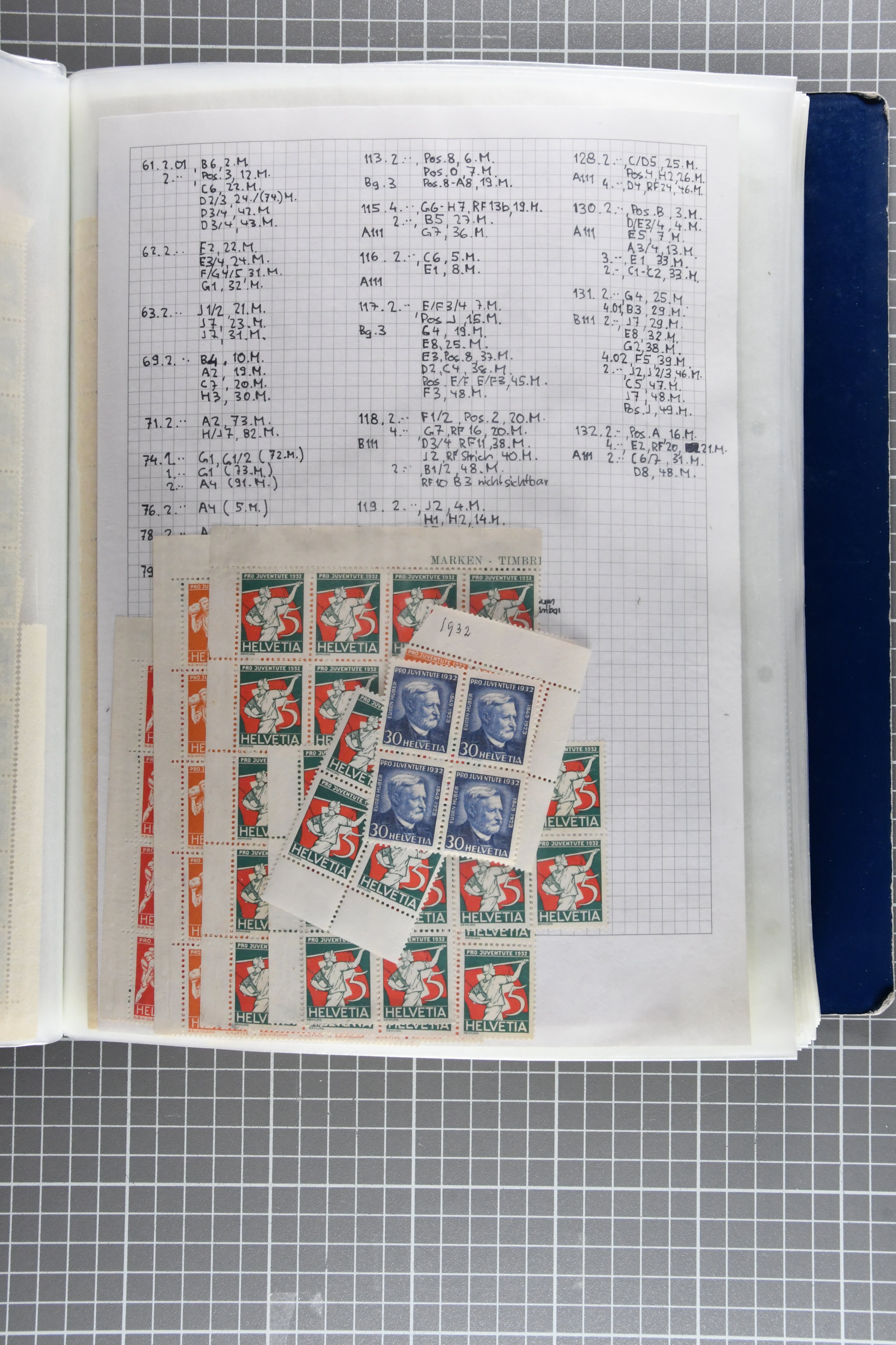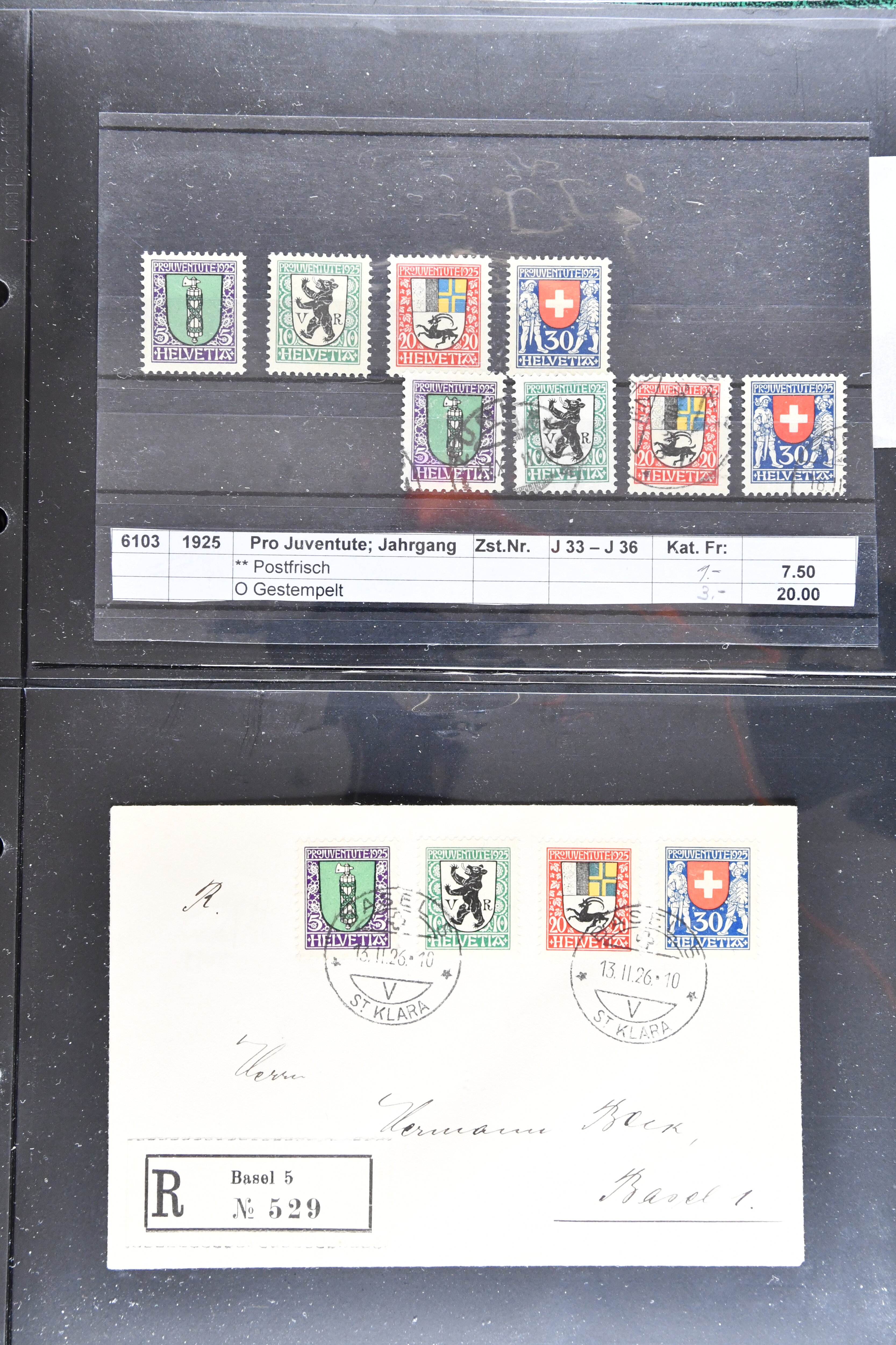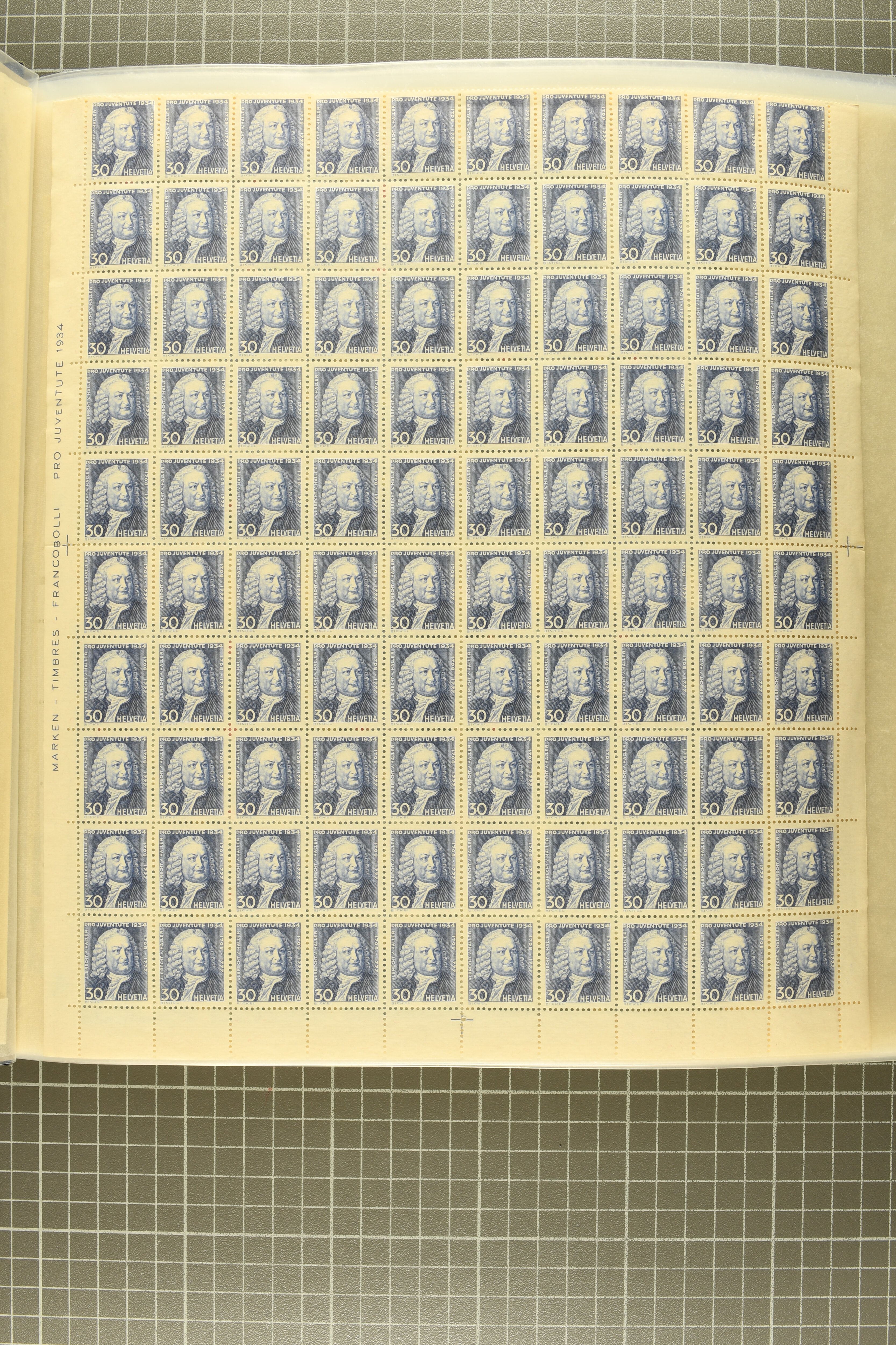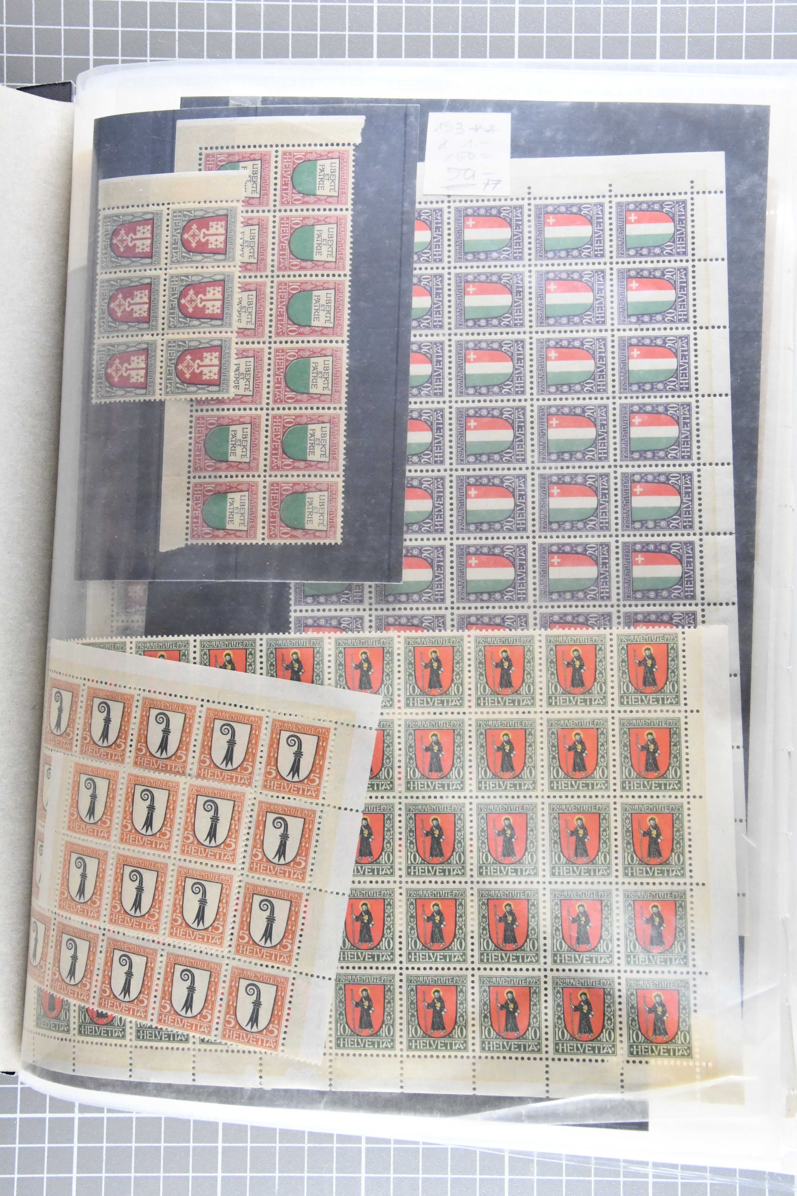 "Schweizerwappen" (3) (SBK J36), 1926, 30 Rp. "Schweizerwappen" (2) (SBK J40), 1931, 30 Rp. "Alexandre Vinet" (3) (SBK J60), 1934, 30 Rp. "Albrecht von Haller" (SBK J72), oder 1936, "Zürcherin" (SBK J80) aber auch viele kompl. Bogenserien oder die