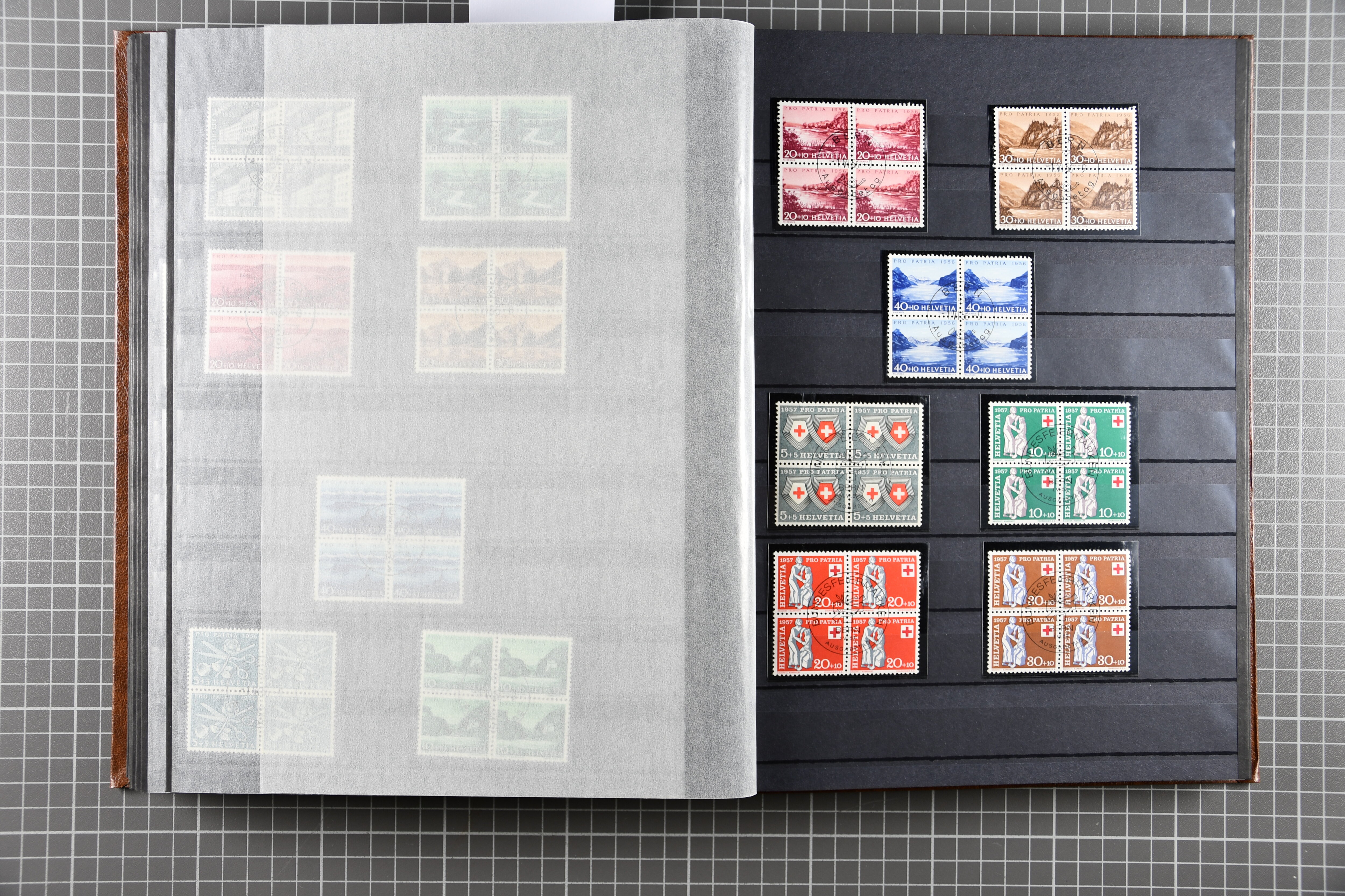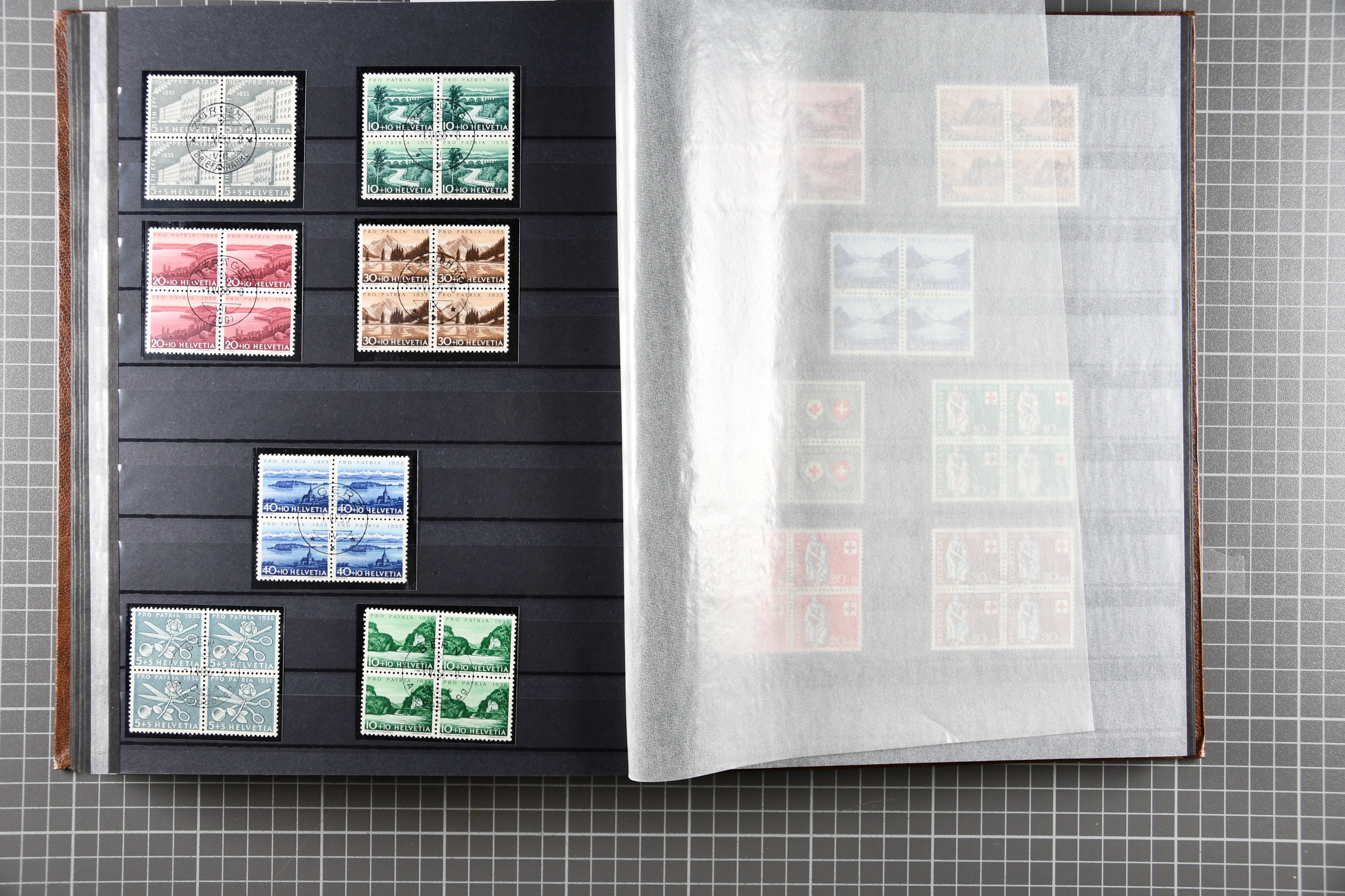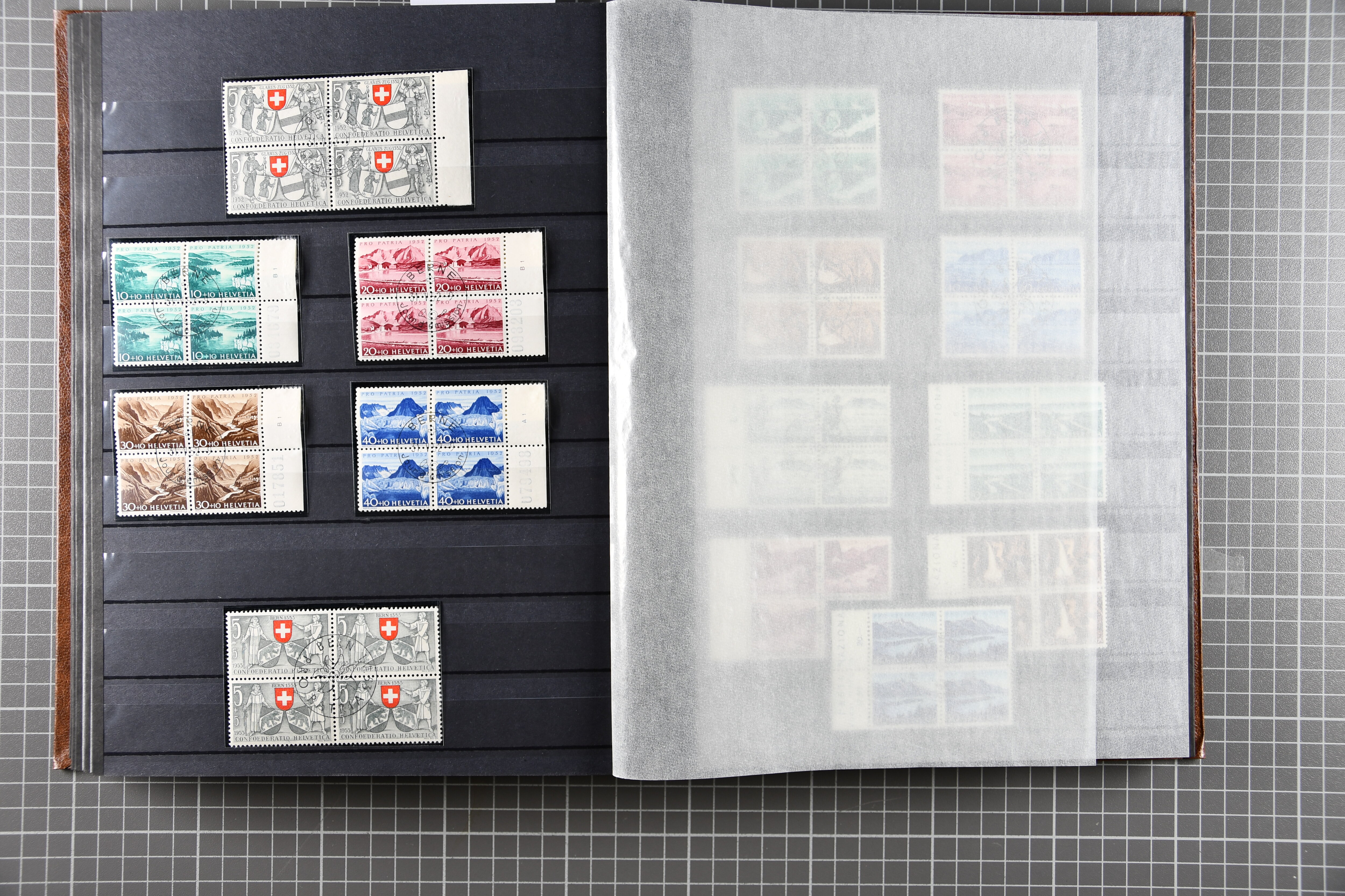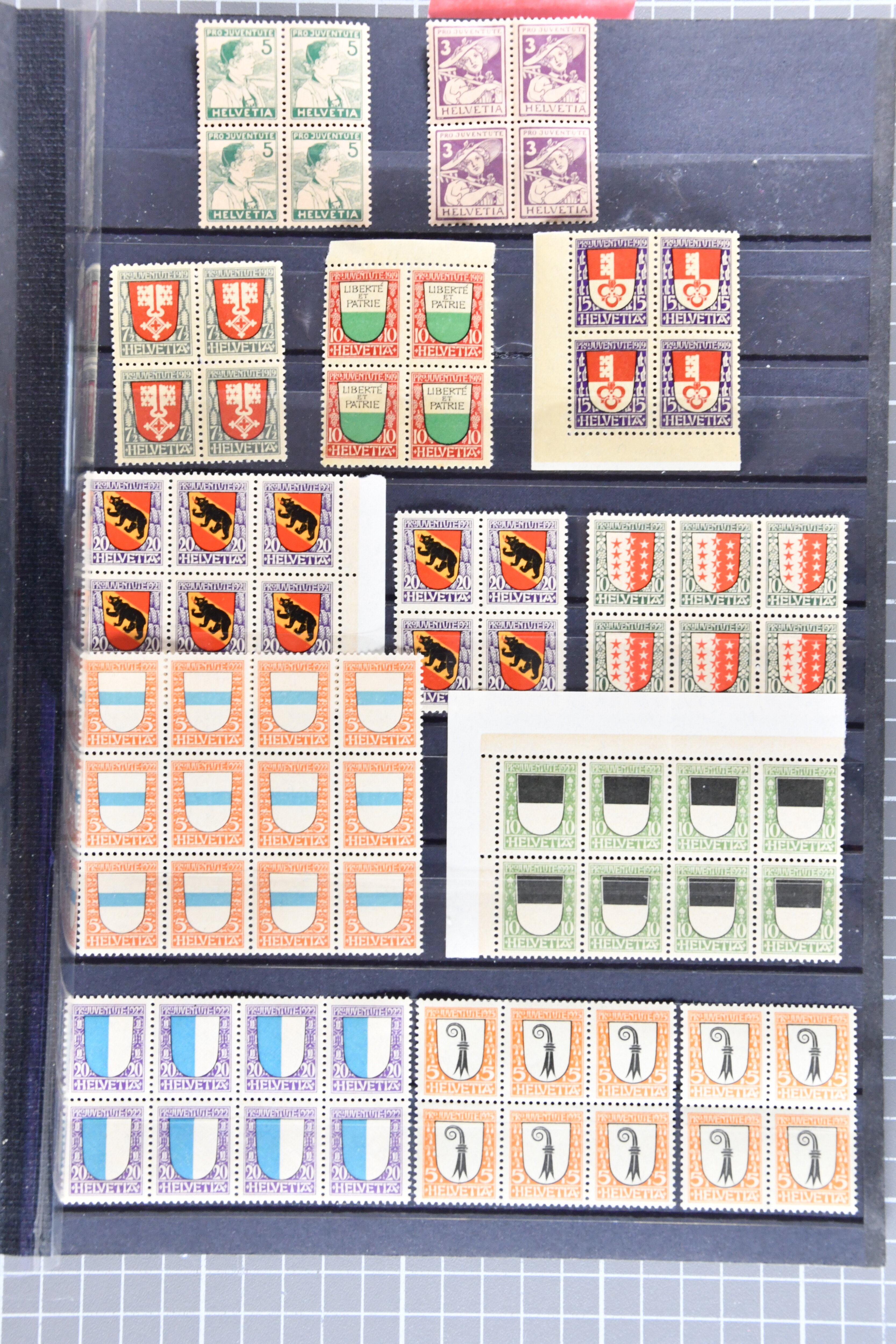 Sammlung der Viererblocks Pro Patria, es sind jeweils auch die Blocks enthalten. Pro Patria 40er-Block ist postfrisch, Block Pro Juventute 1942 sowie Pro Patria 1936 und 1941 sind jeweils postfrisch und gestempelt. SBK = CHF 12'800. (Image 1)