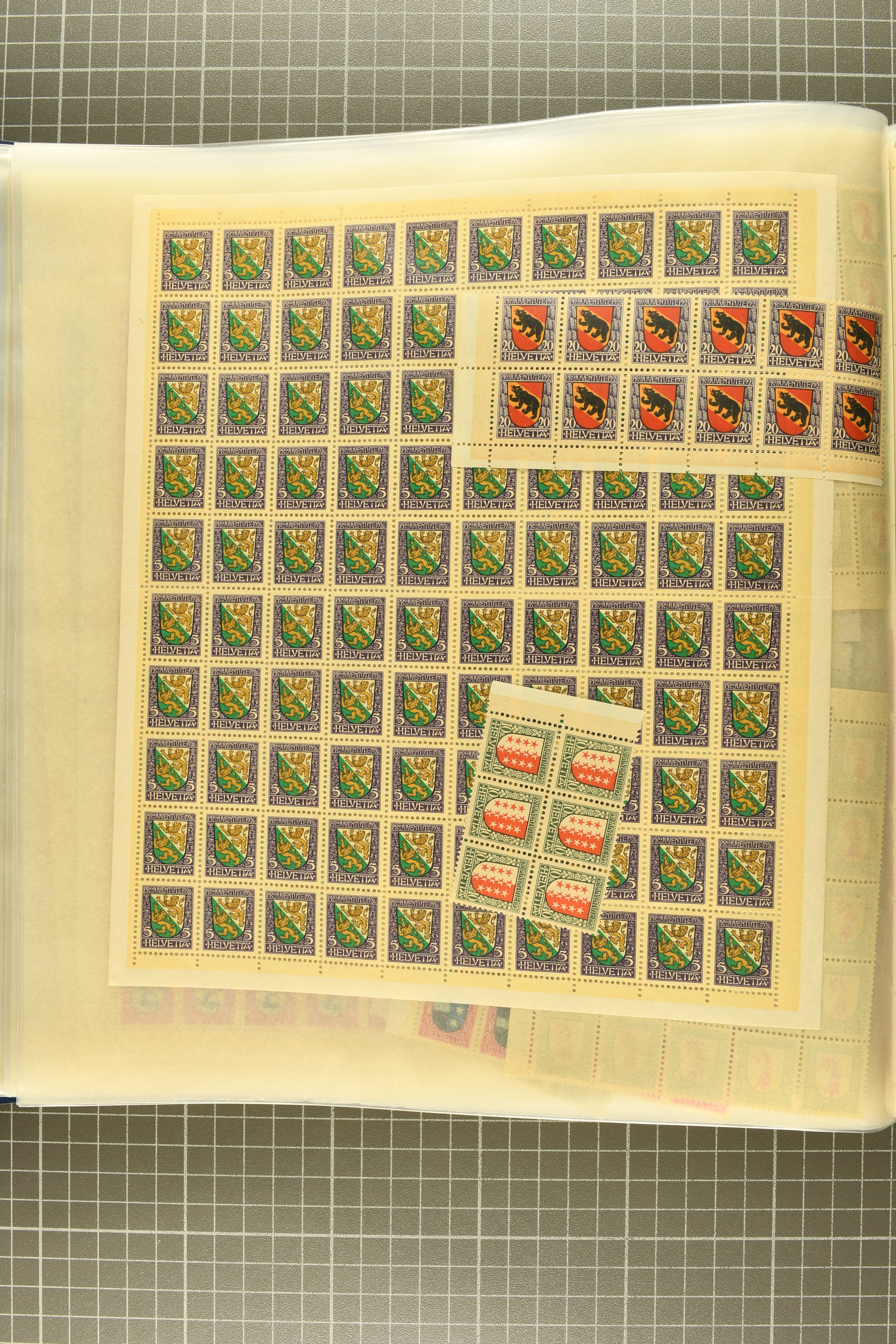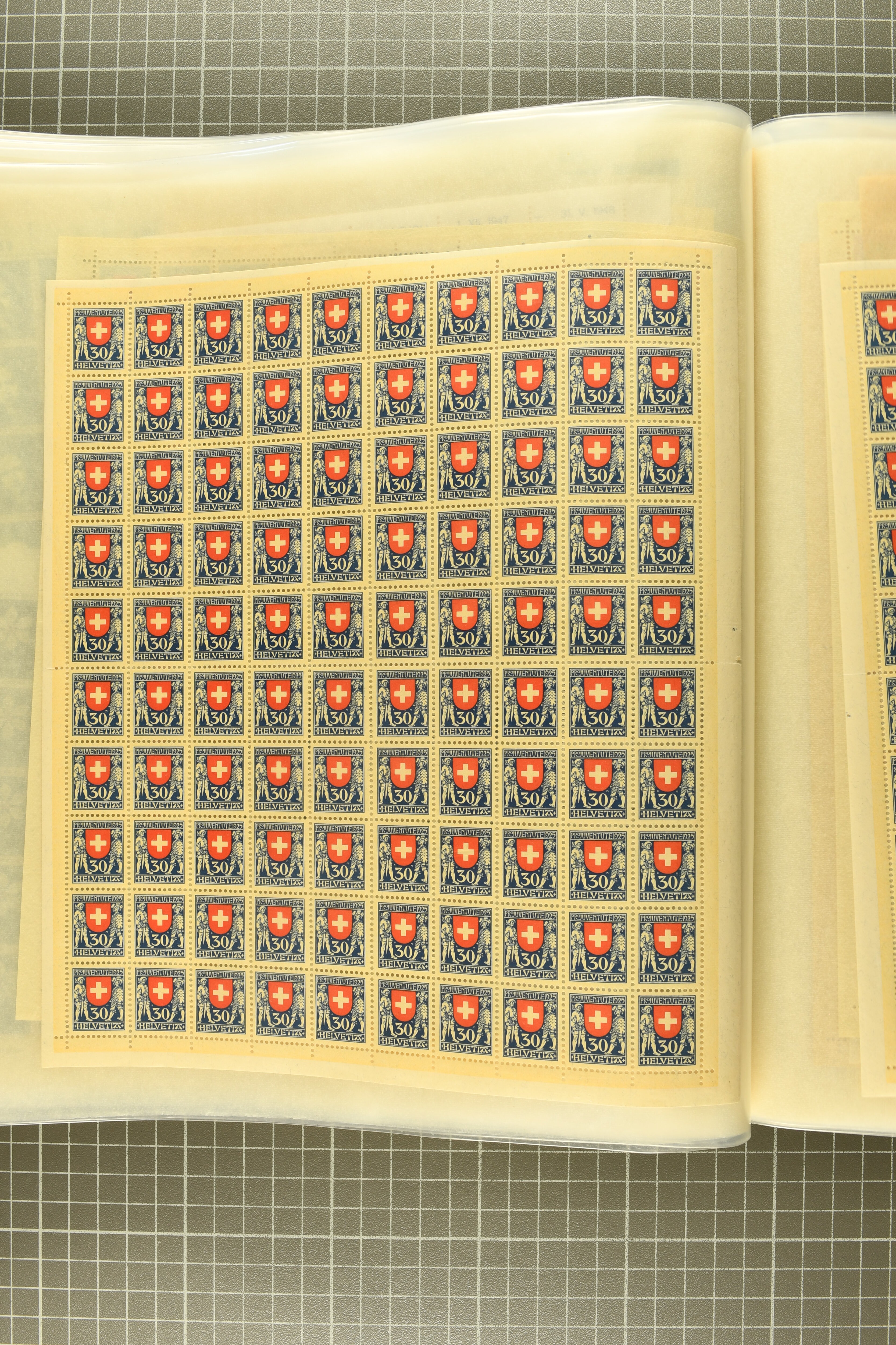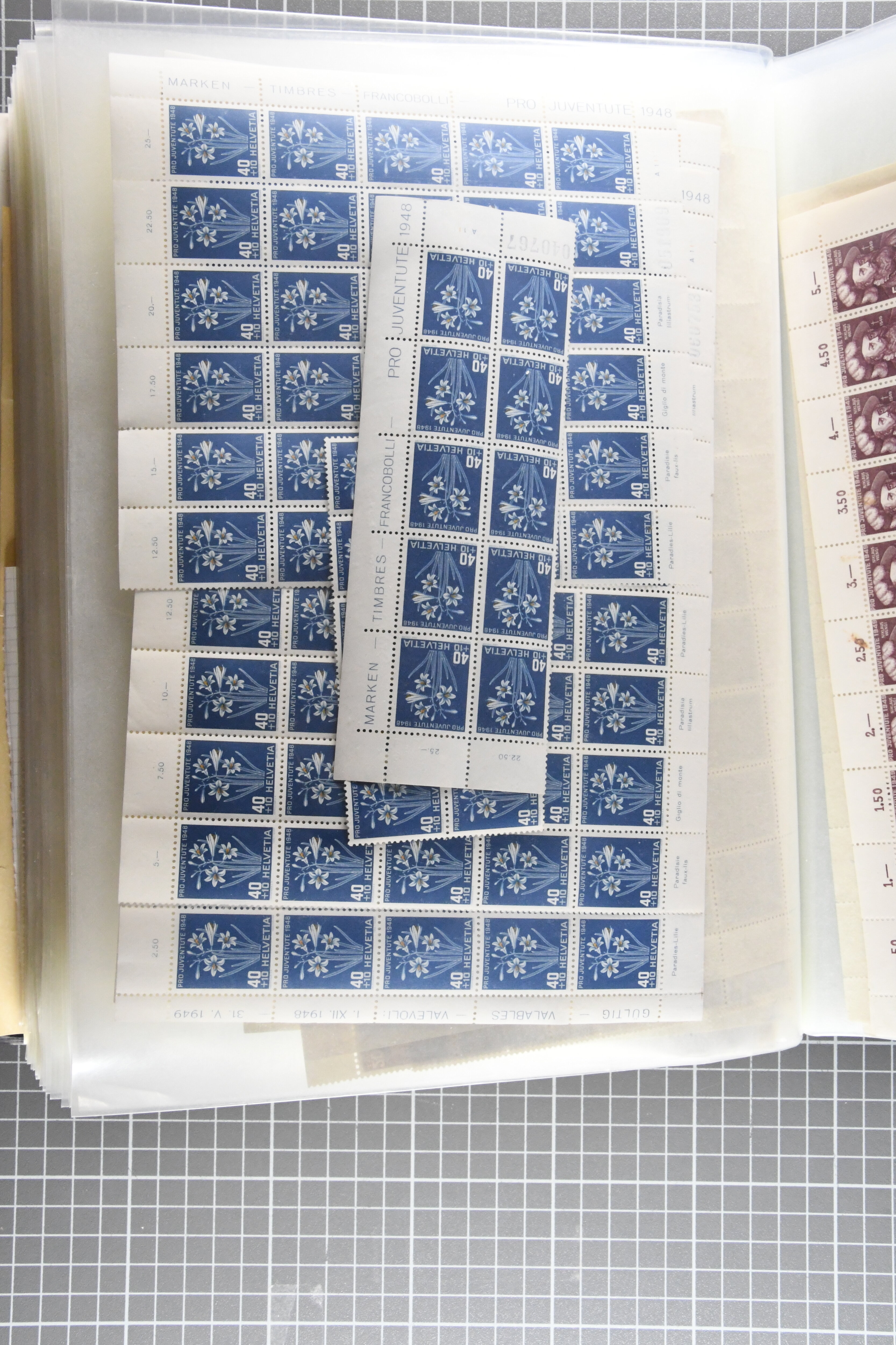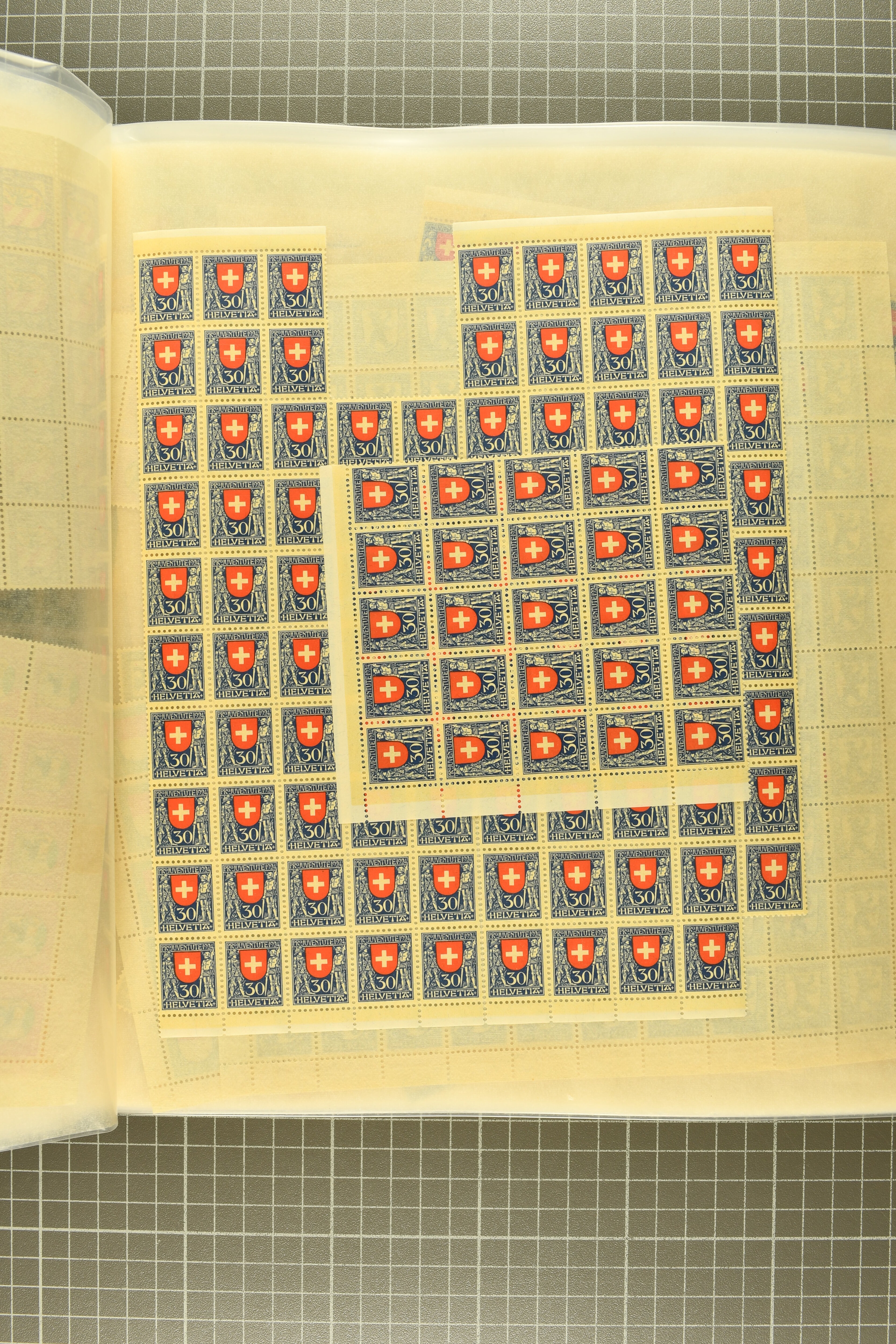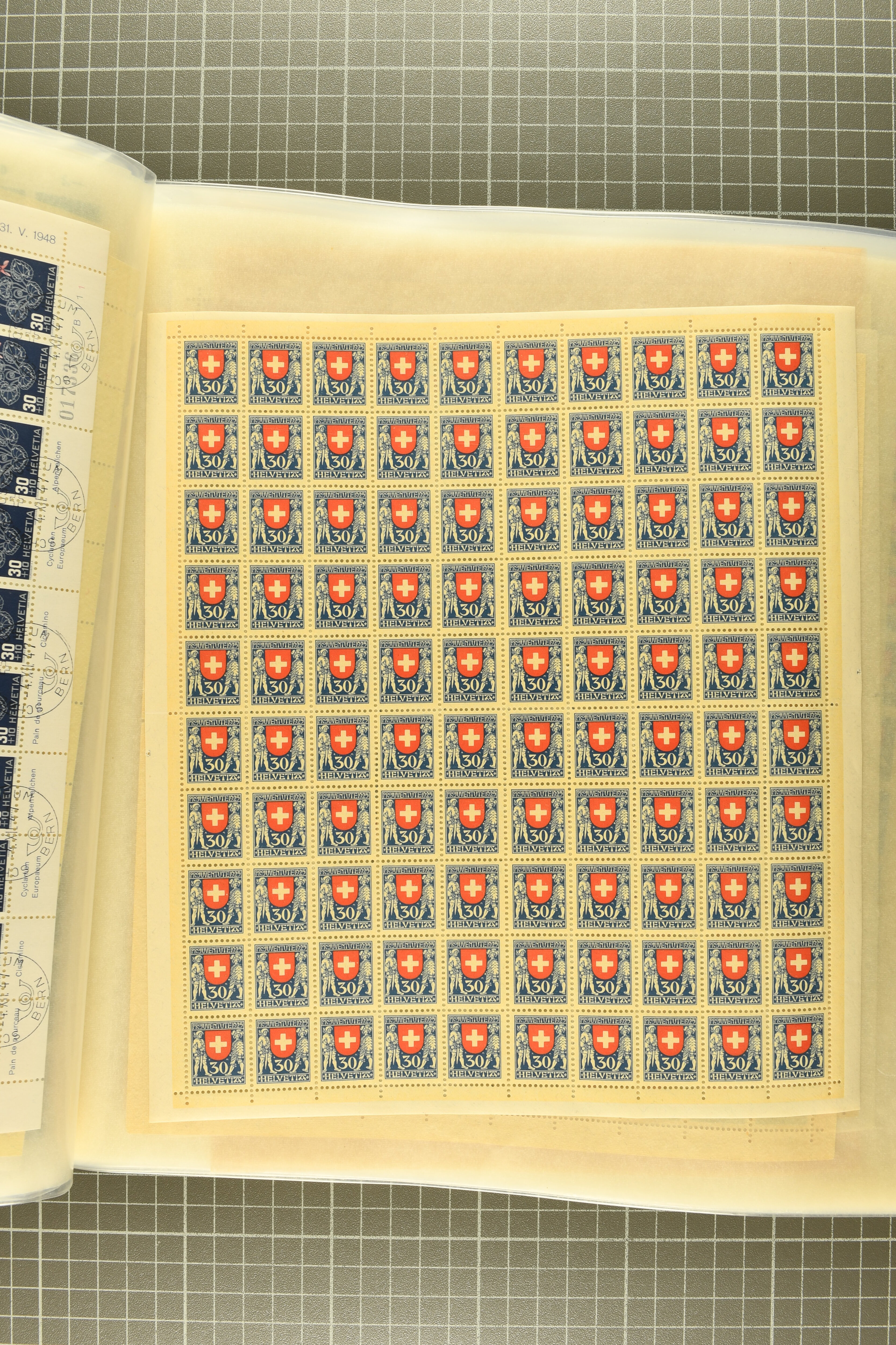 1925/67: Umfangreicher Lagerbestand hunderter postfrischer und einiger gestempelter Bogen und Bogenteile. Dabei viele hohe Werte der frühen Jahre in kompletten Fünfziger- oder Hunderterbogen wie z.B. 1925, 30 Rp.