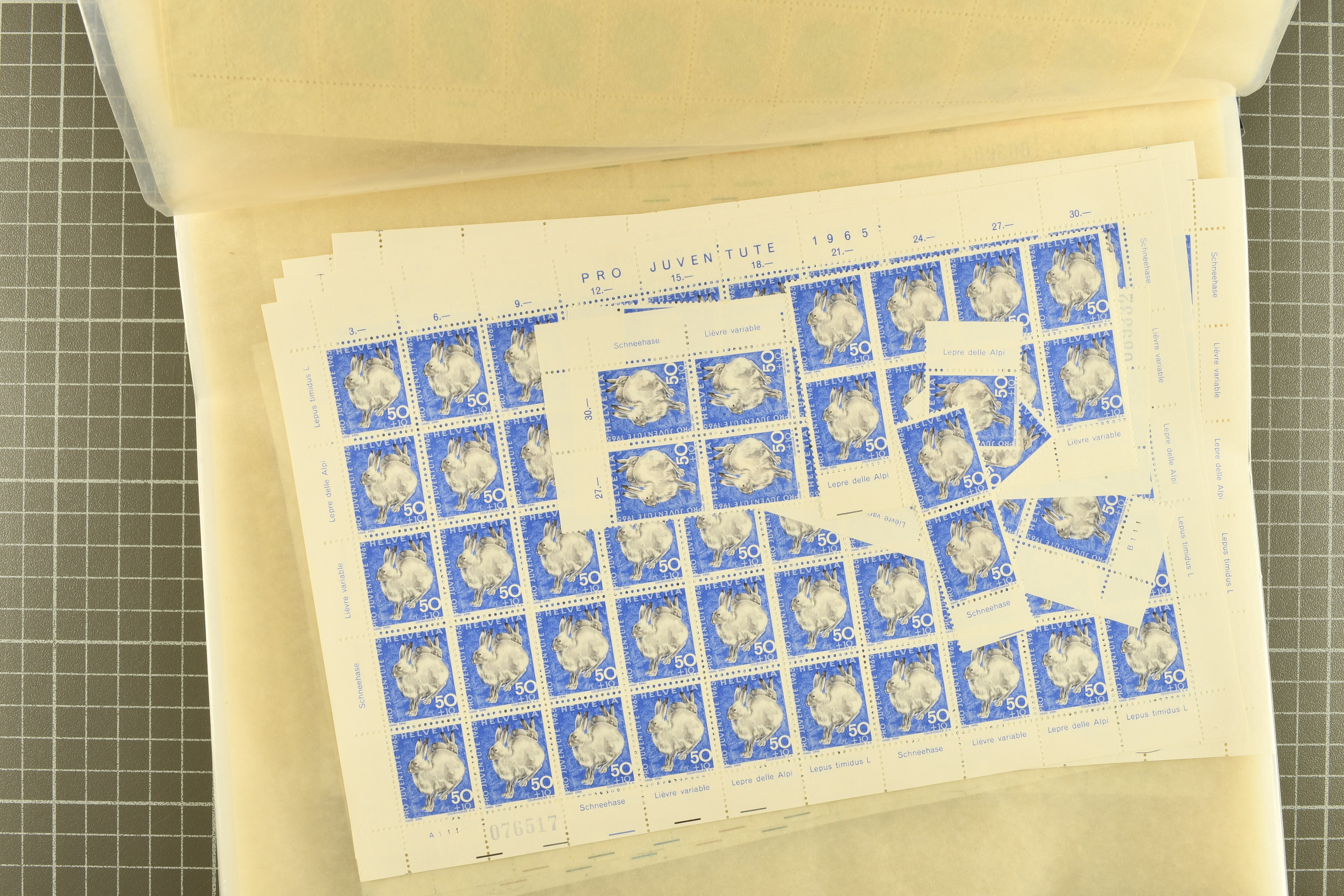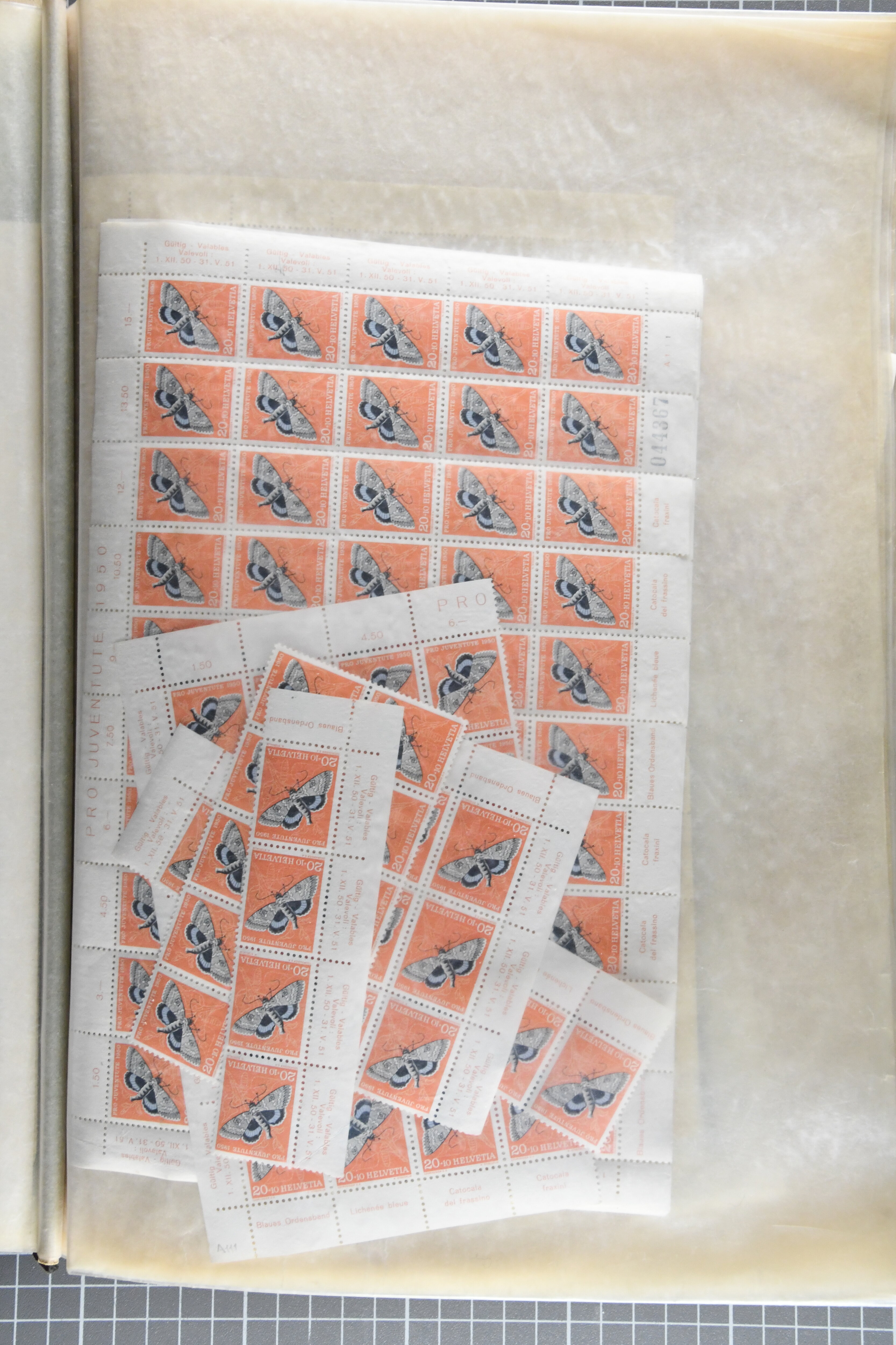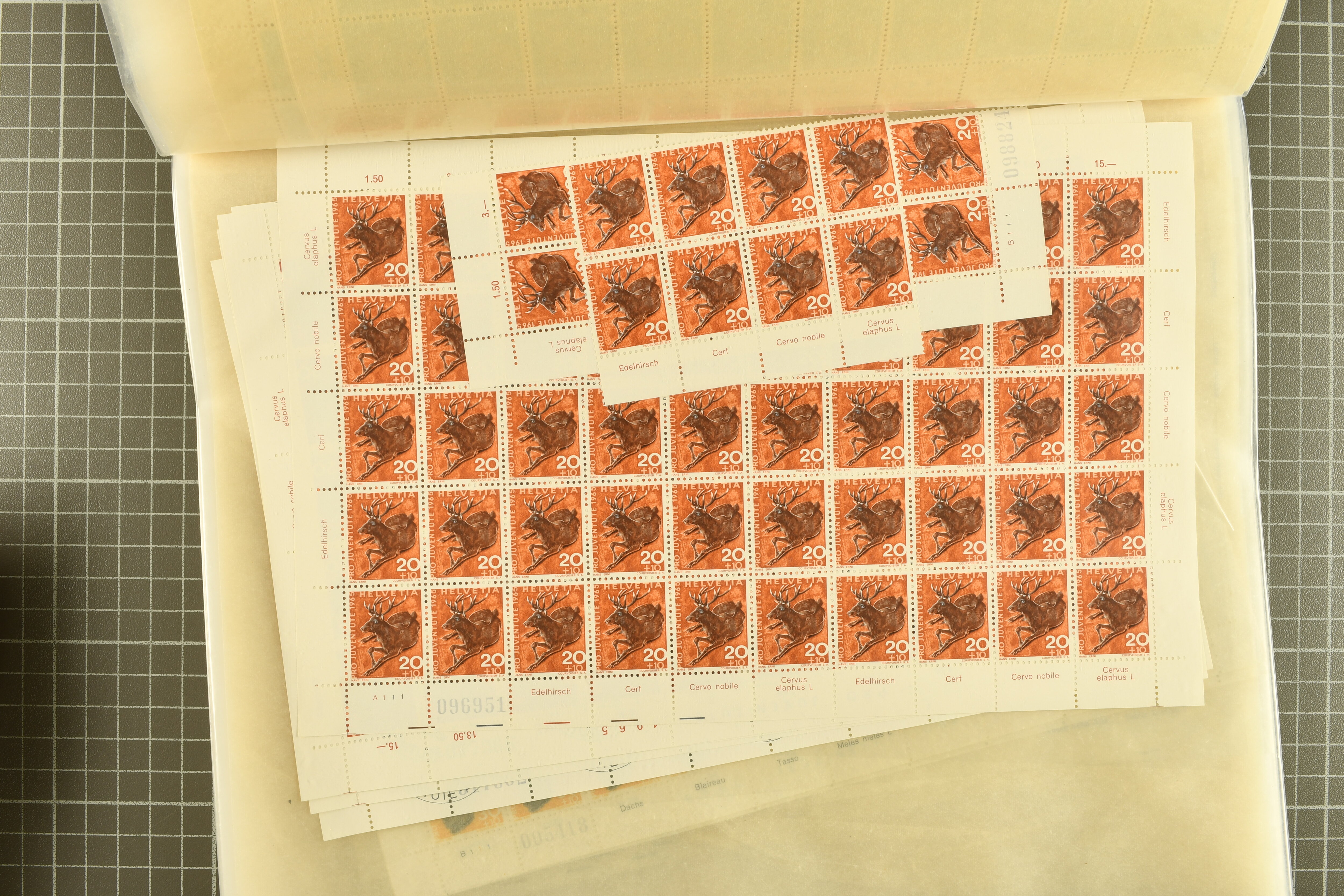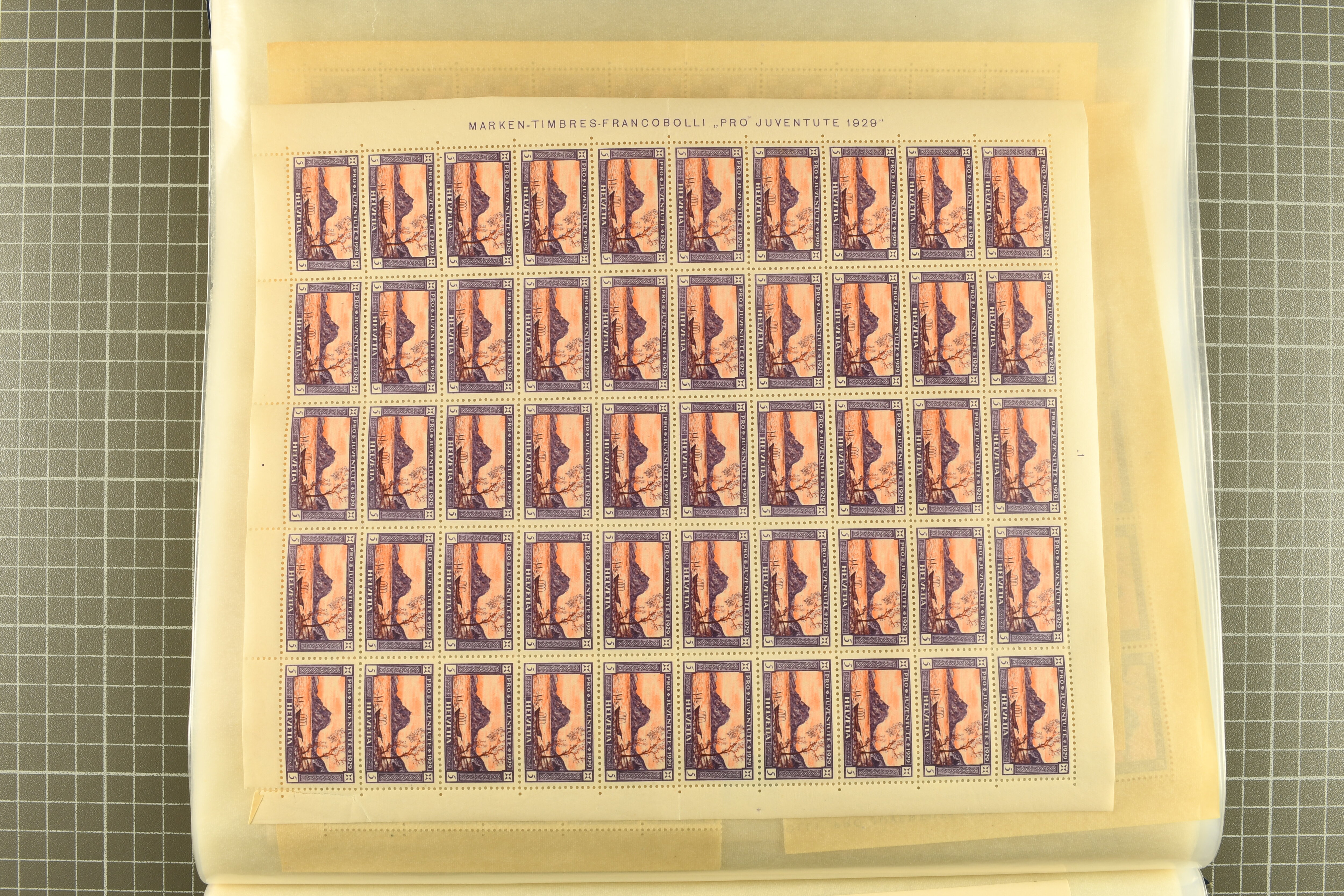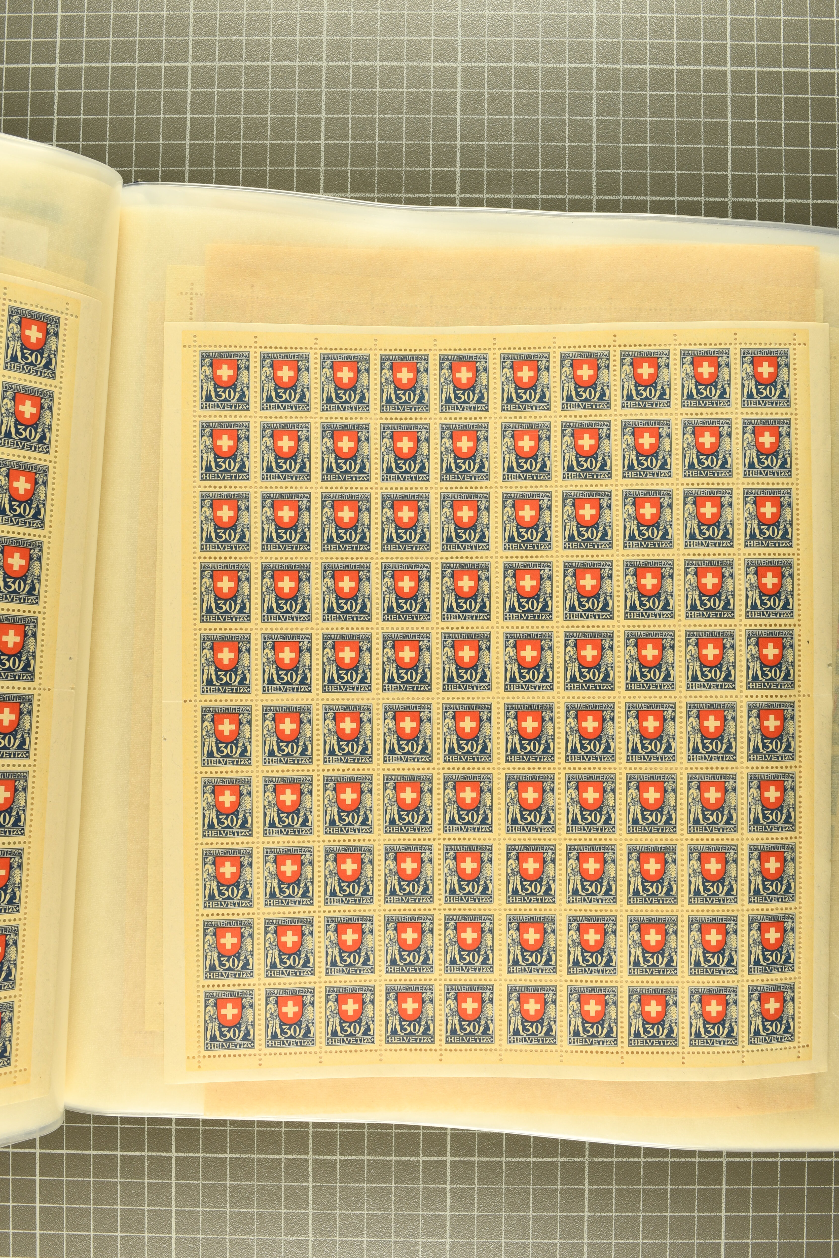 1925/67: Umfangreicher Lagerbestand hunderter postfrischer und einiger gestempelter Bogen und Bogenteile. Dabei viele hohe Werte der frühen Jahre in kompletten Fünfziger- oder Hunderterbogen wie z.B. 1925, 30 Rp.